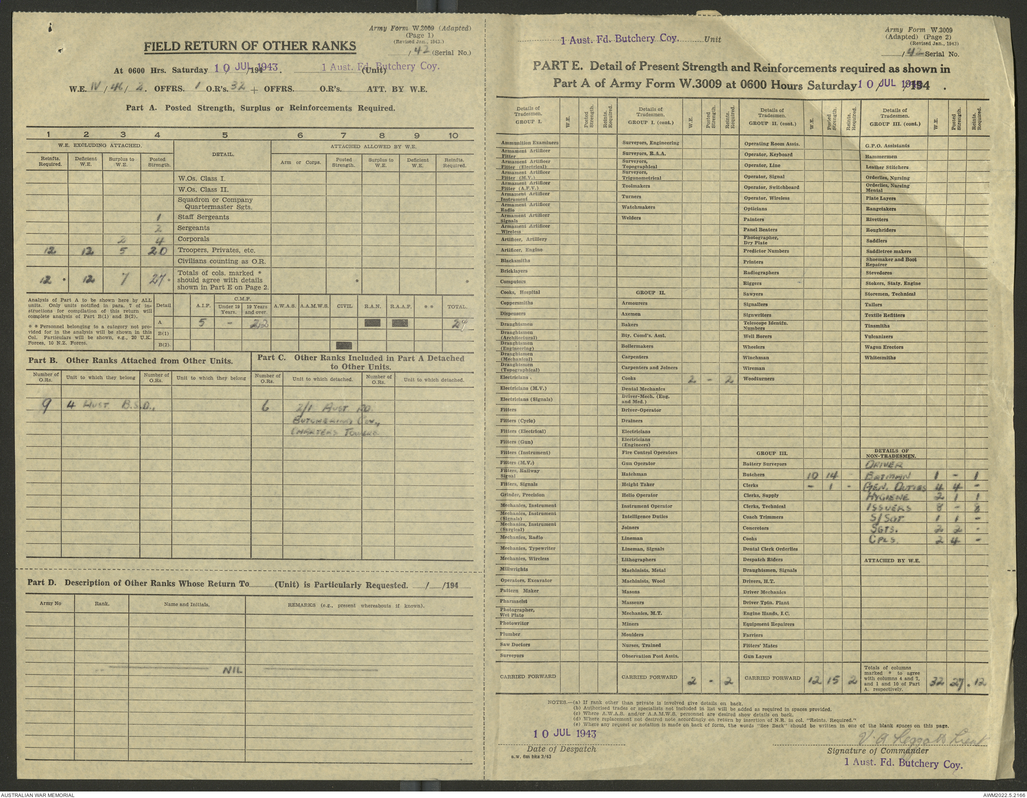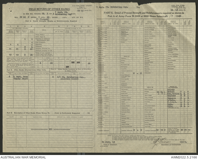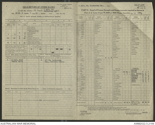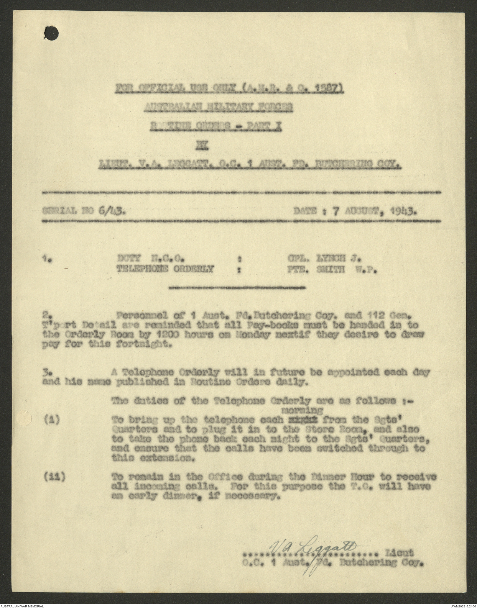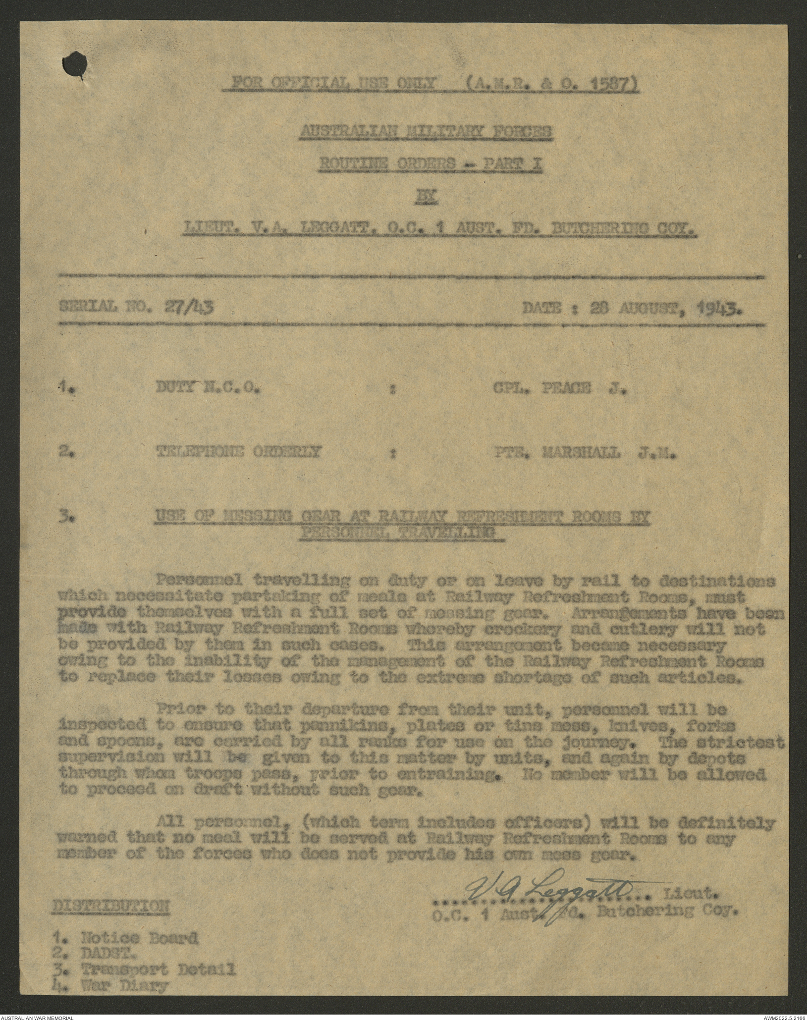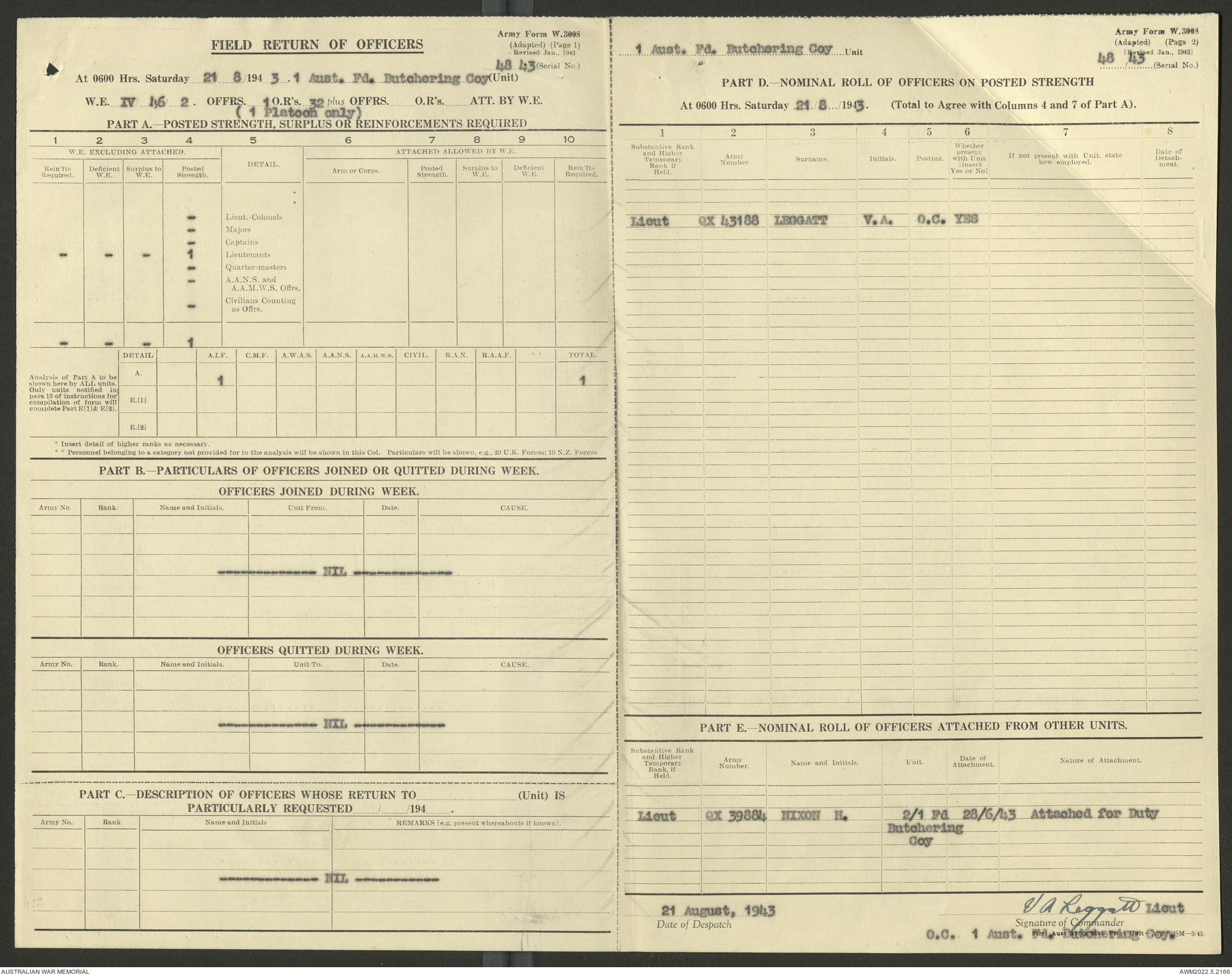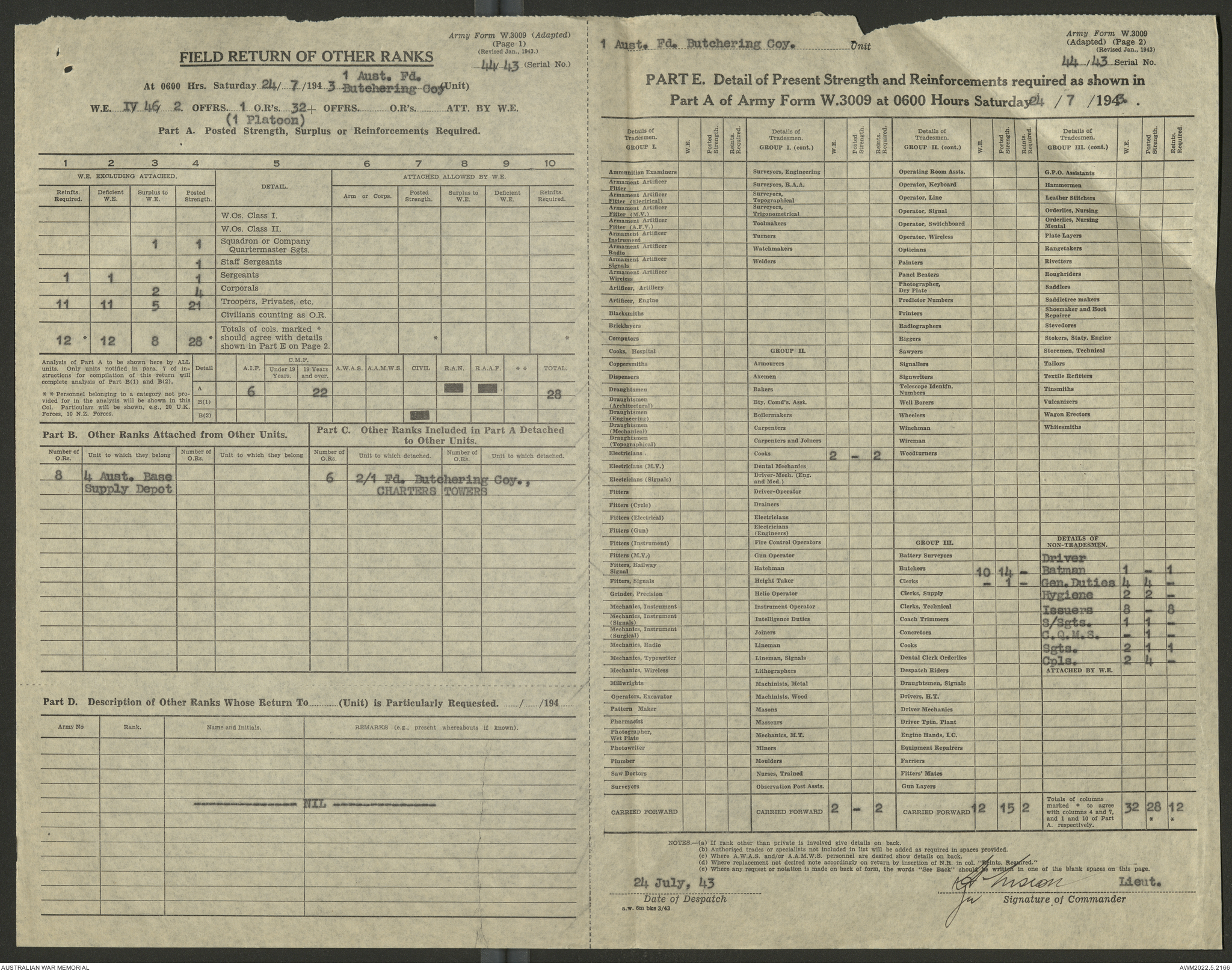 AWM52 10/28/1/1 - [Unit War Diaries, 1939-45 War] 1 Australian Field Butchering Company, March 1942 - August 1943