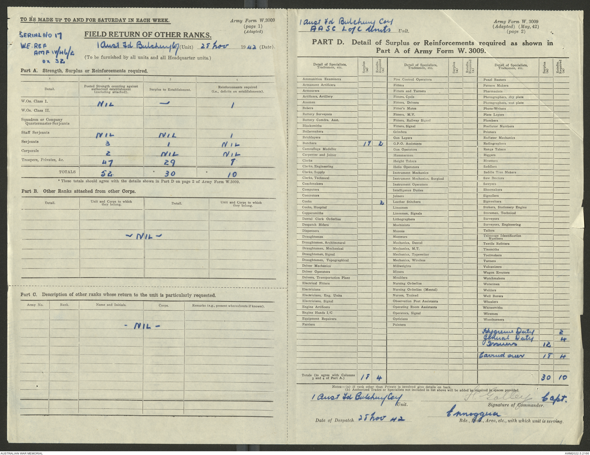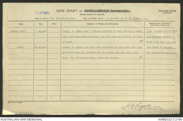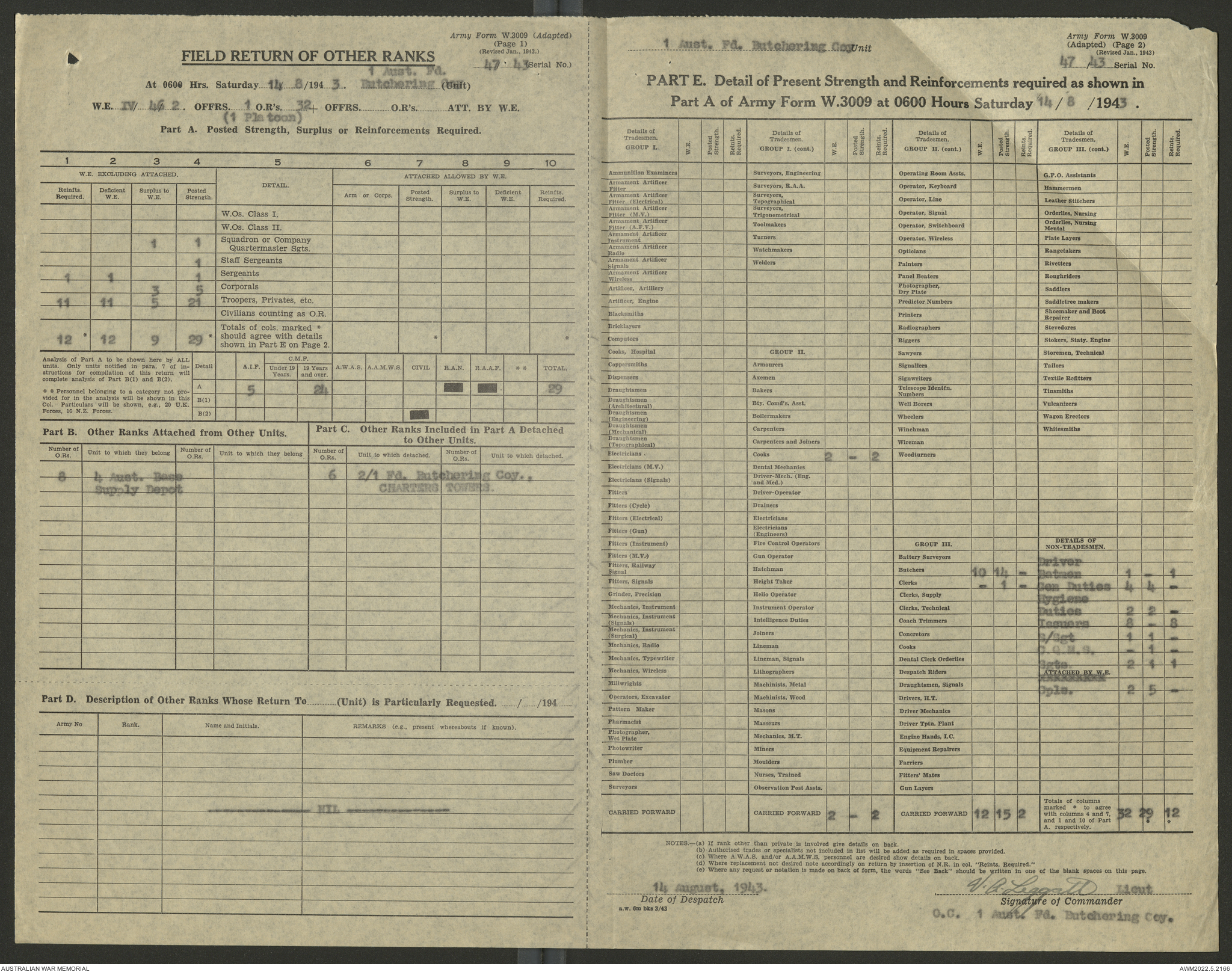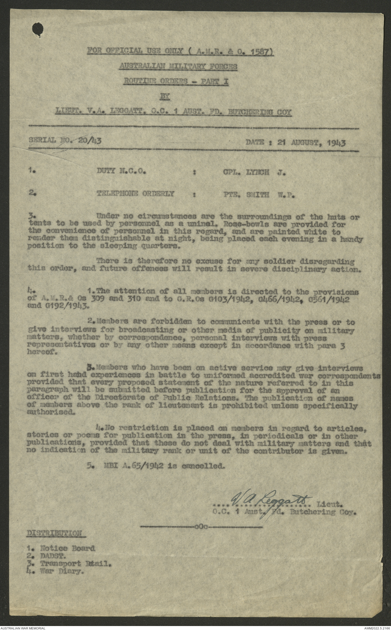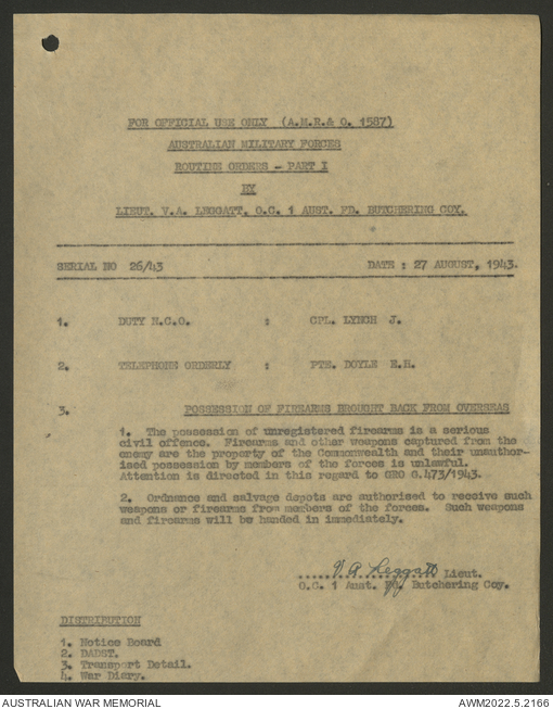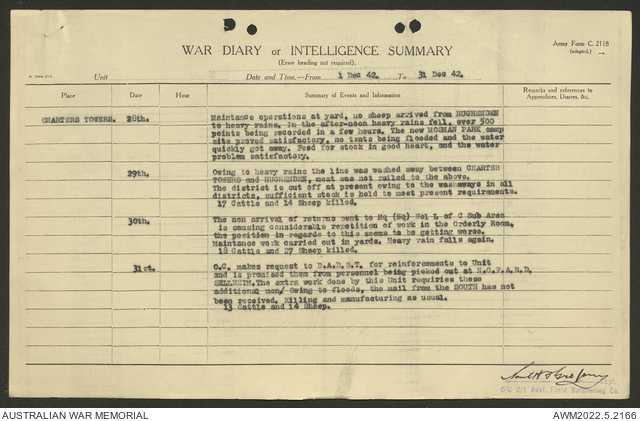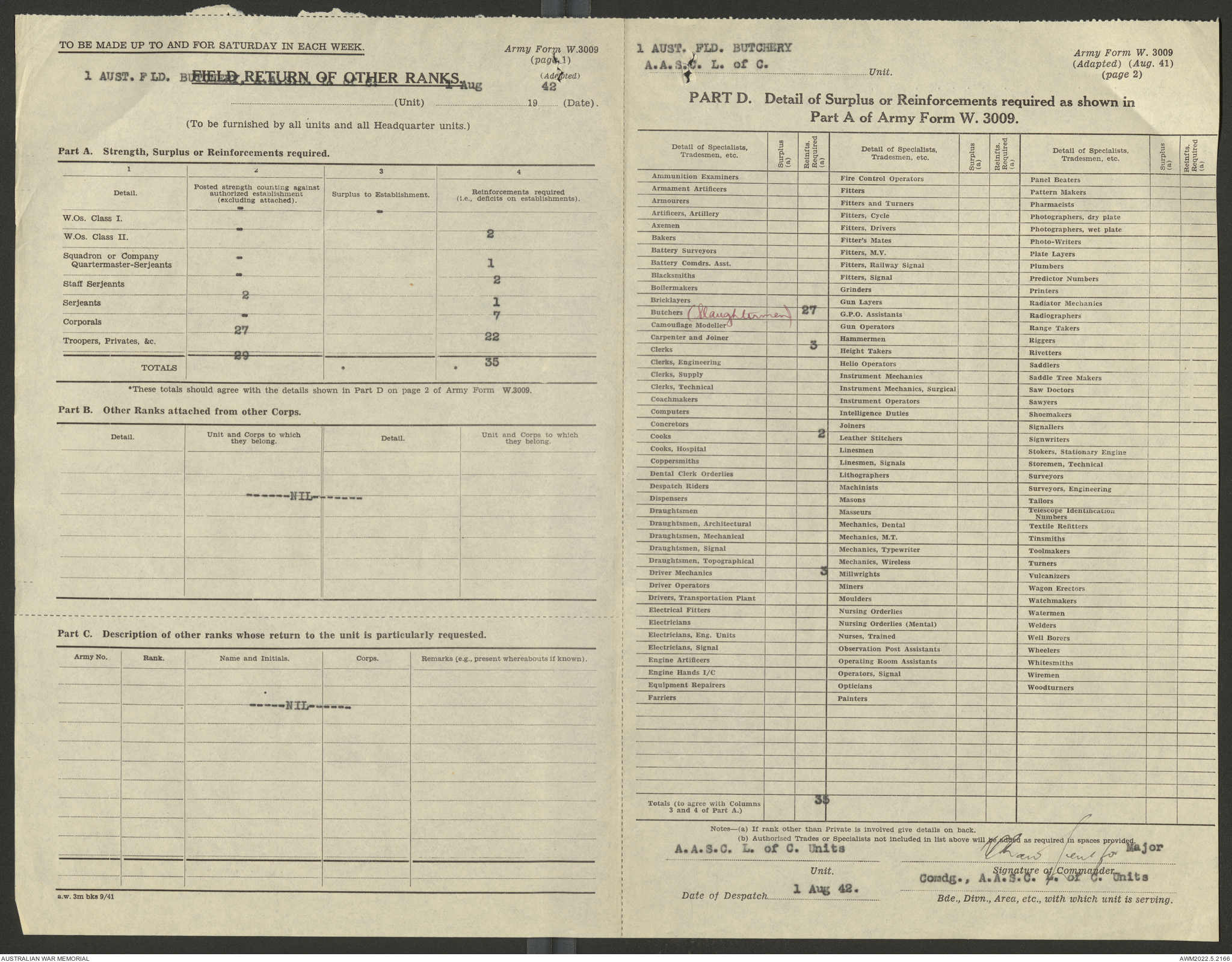 AWM52 10/28/1/1 - [Unit War Diaries, 1939-45 War] 1 Australian Field Butchering Company, March 1942 - August 1943