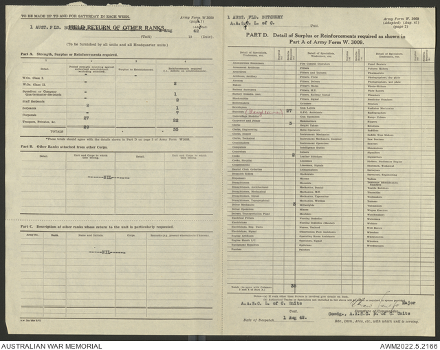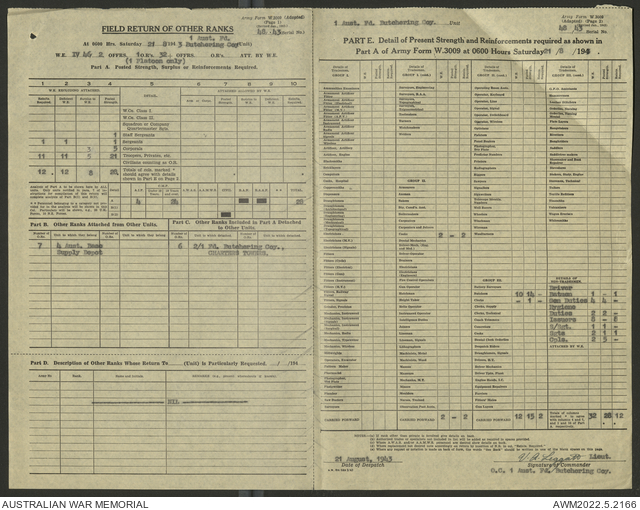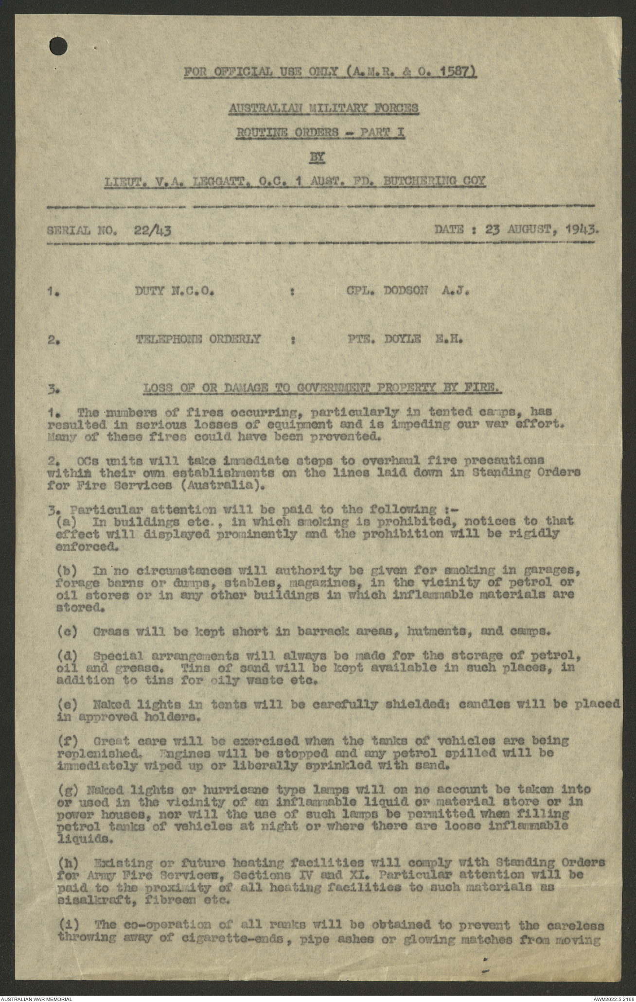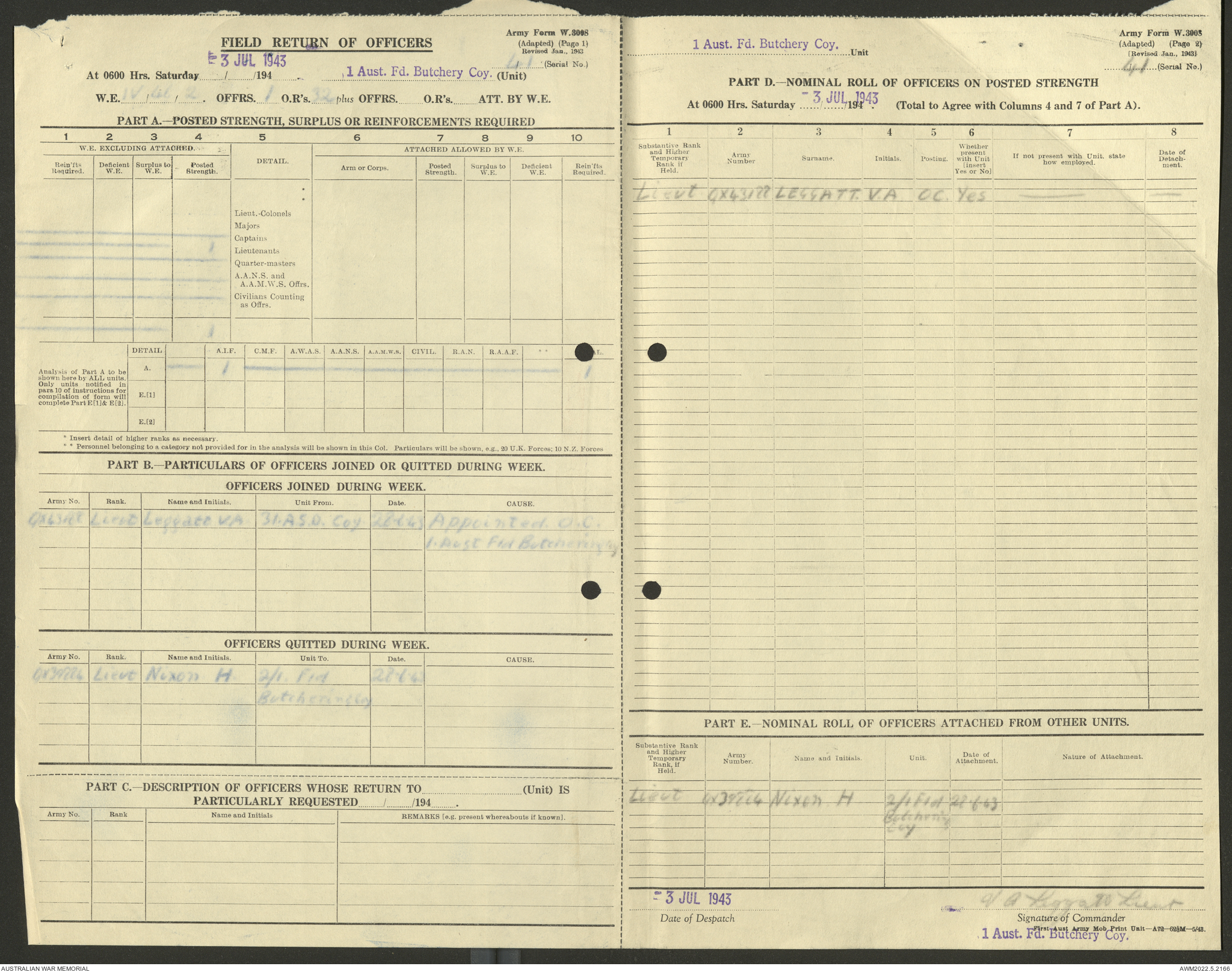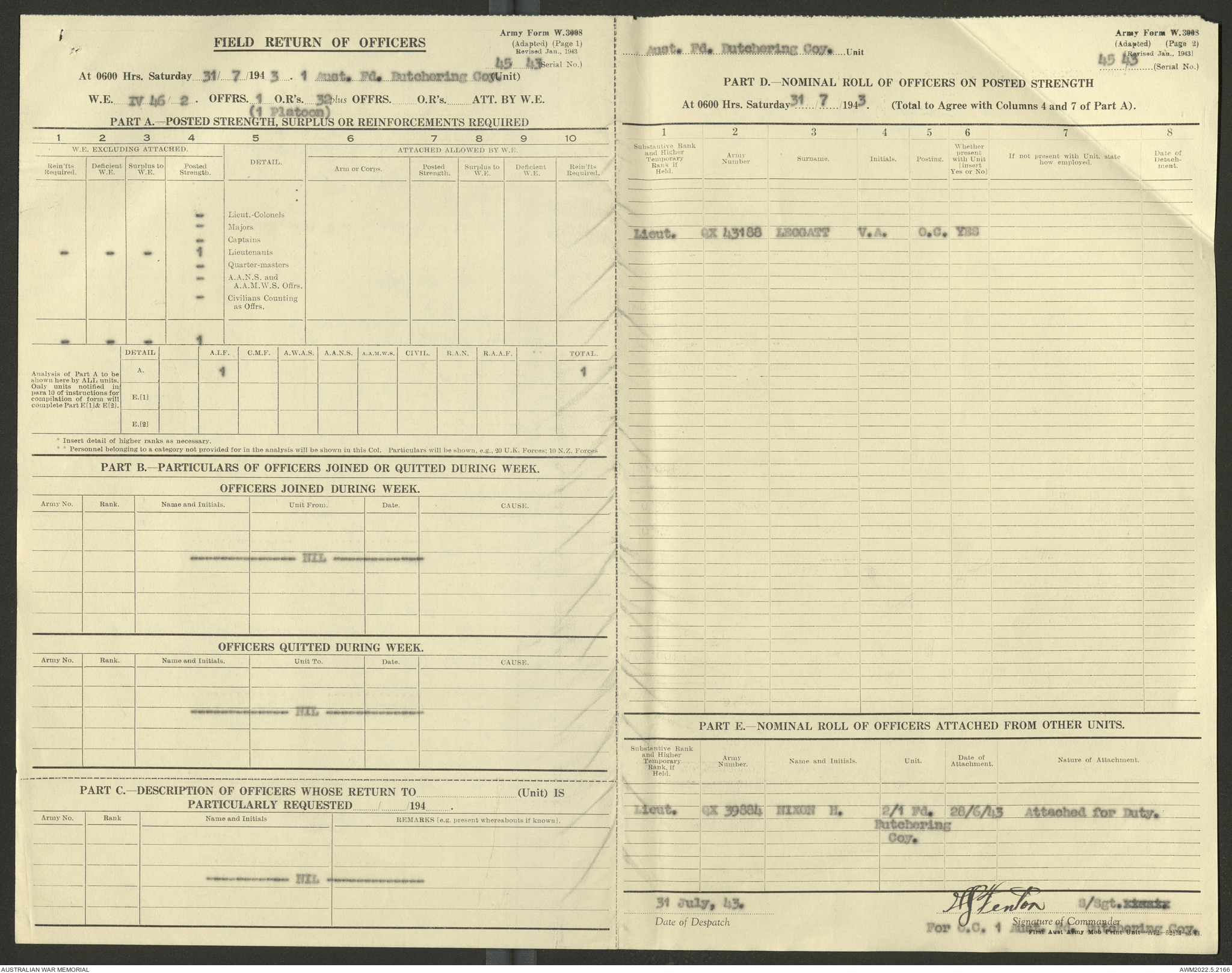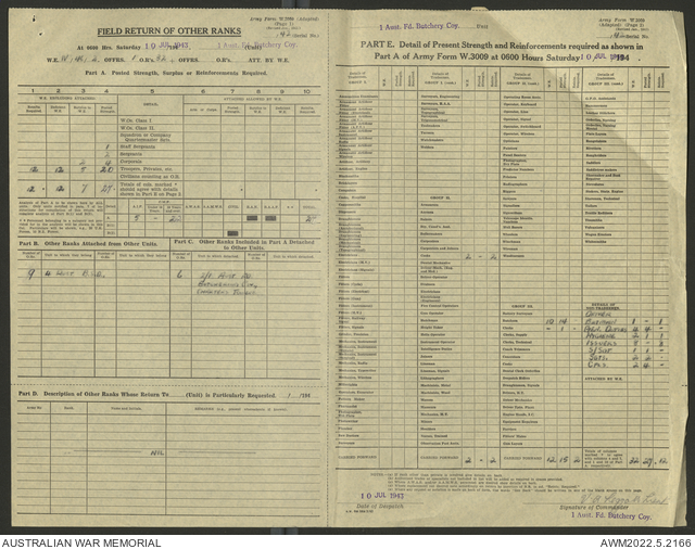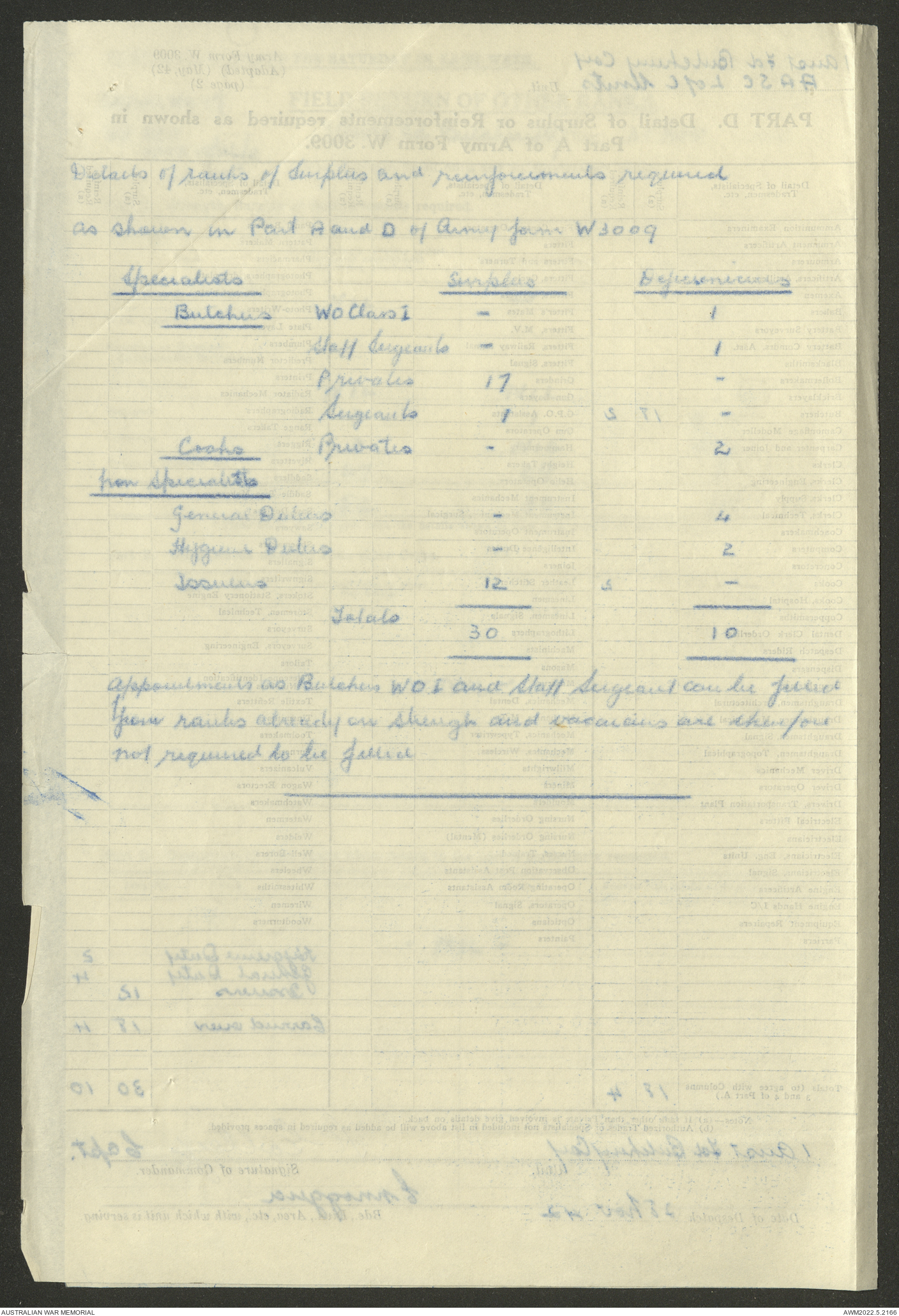 AWM52 10/28/1/1 - [Unit War Diaries, 1939-45 War] 1 Australian Field Butchering Company, March 1942 - August 1943