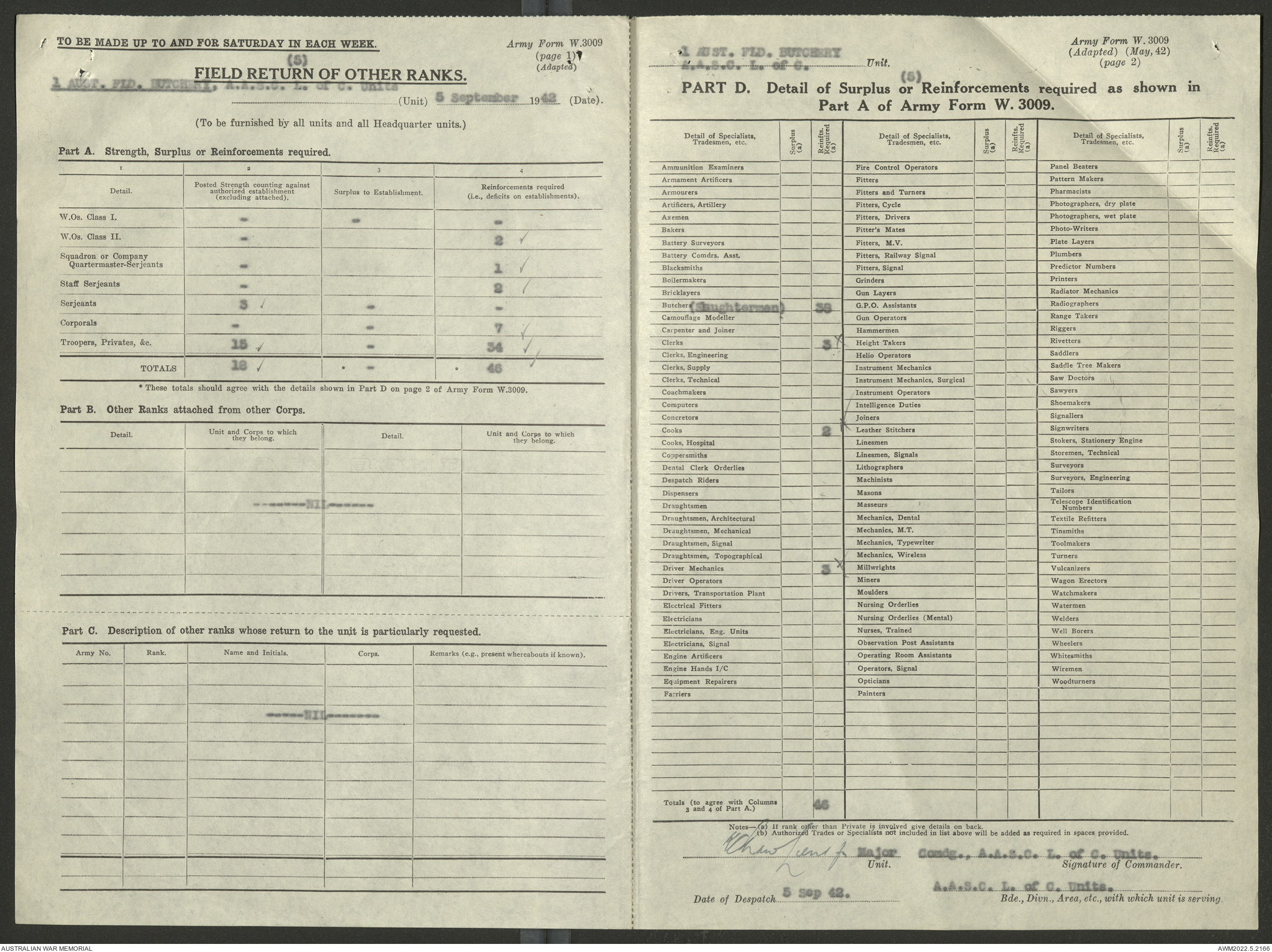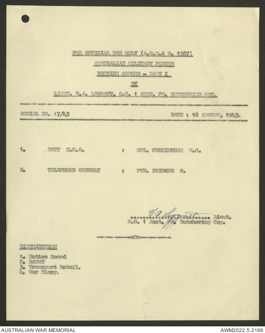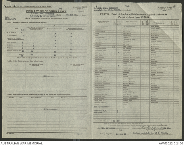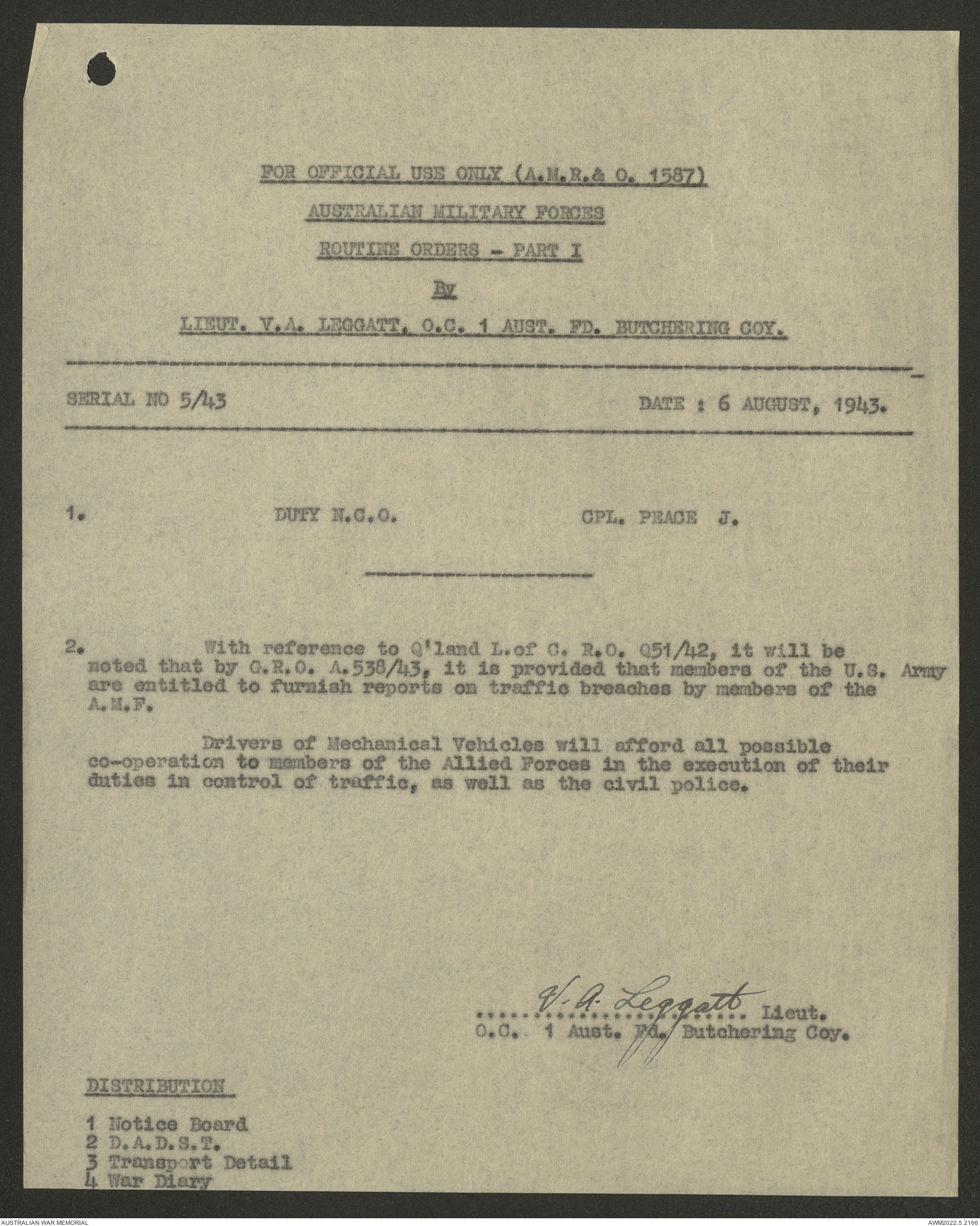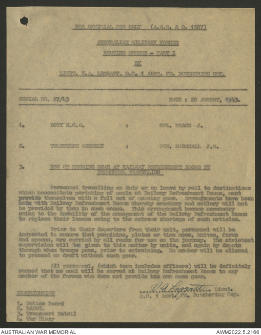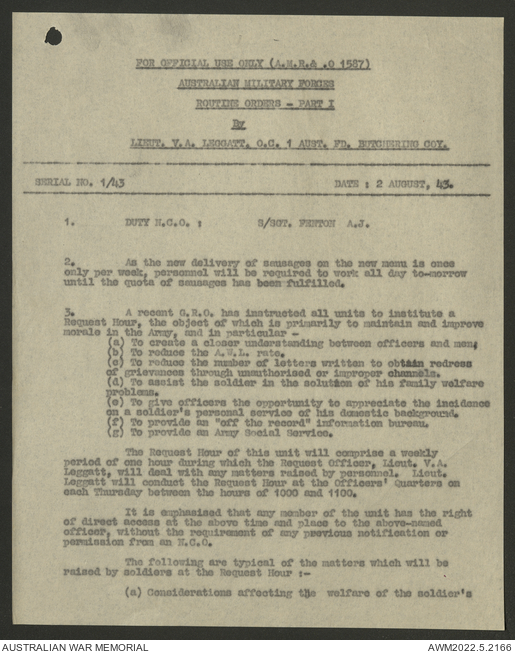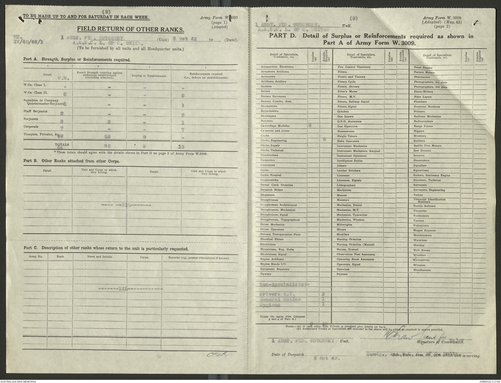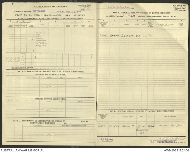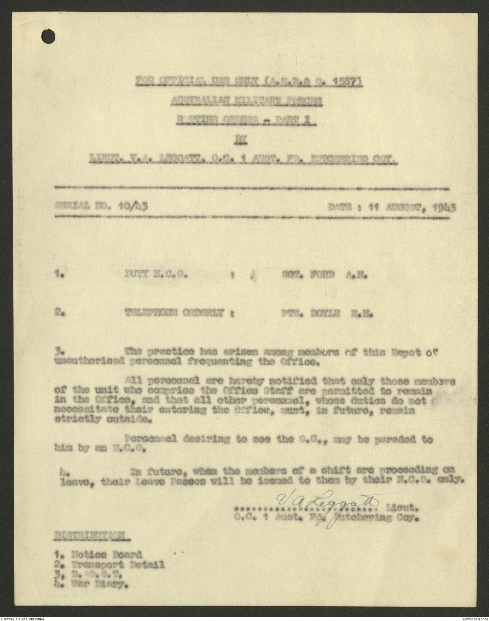 AWM52 10/28/1/1 - [Unit War Diaries, 1939-45 War] 1 Australian Field Butchering Company, March 1942 - August 1943