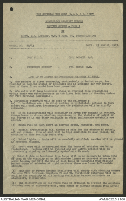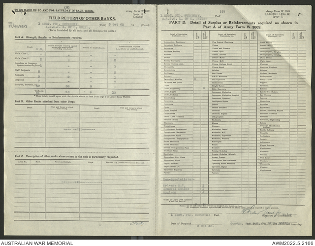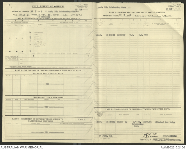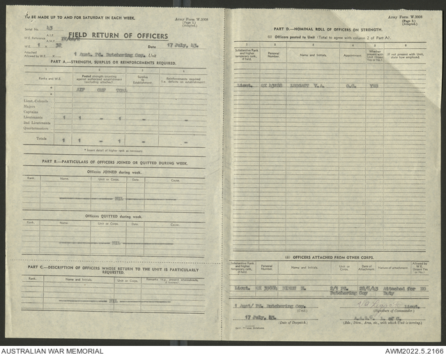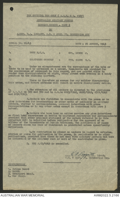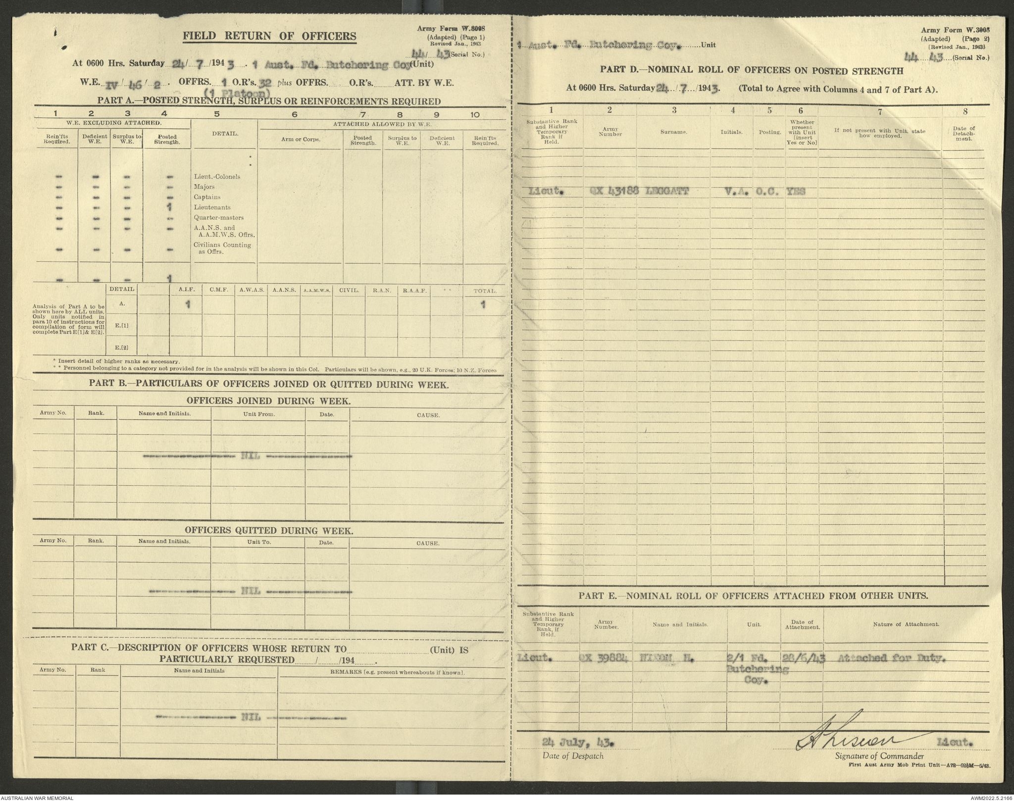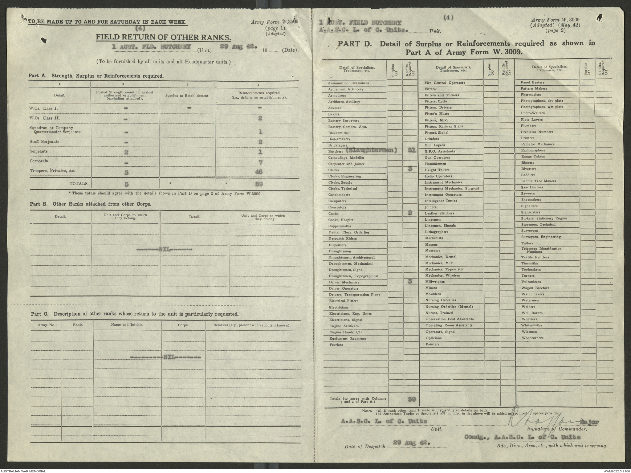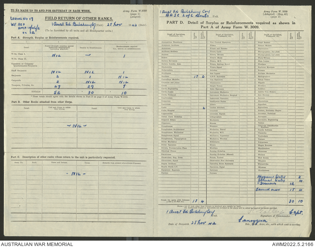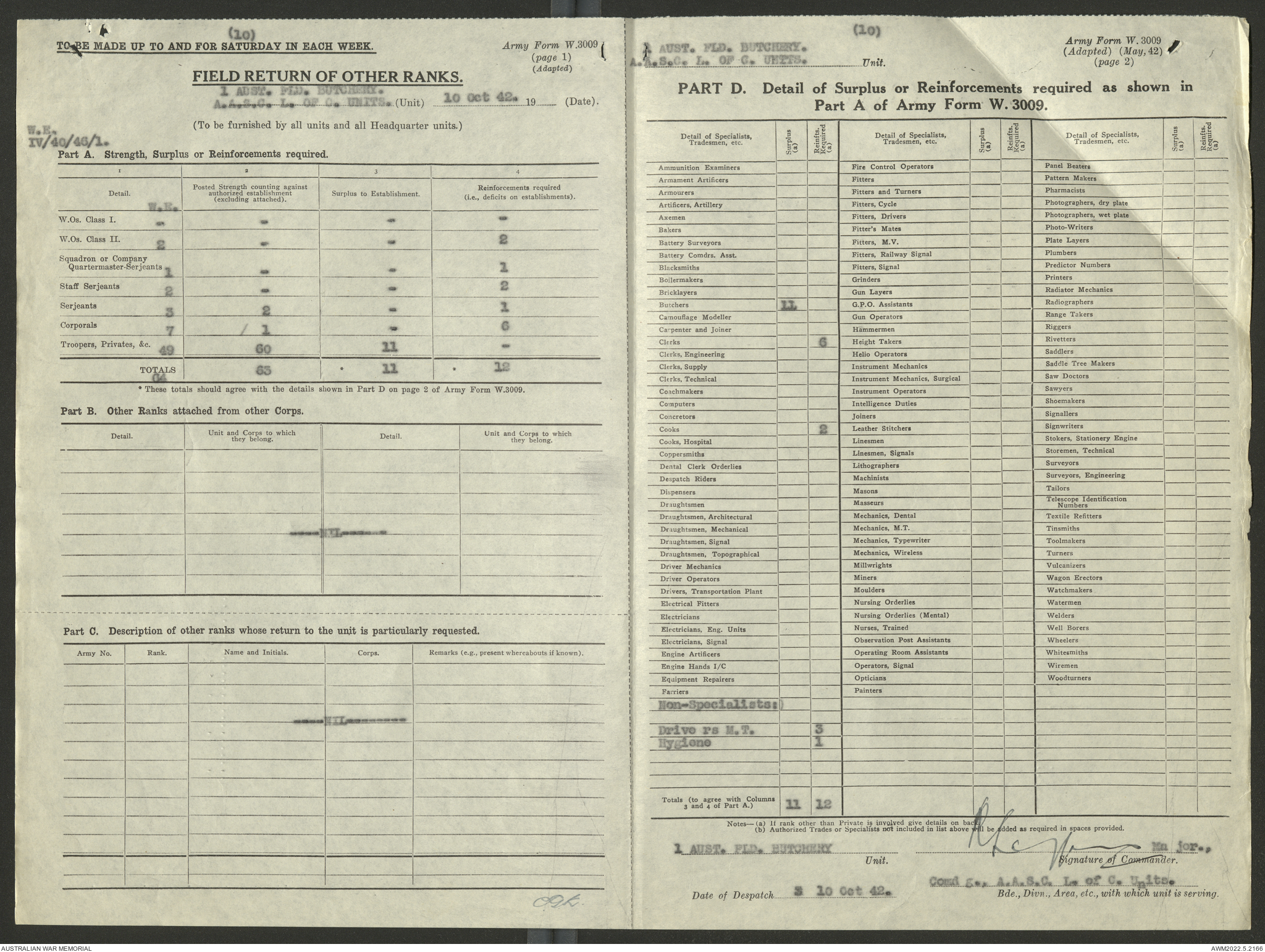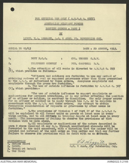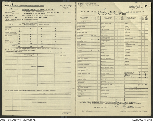 AWM52 10/28/1/1 - [Unit War Diaries, 1939-45 War] 1 Australian Field Butchering Company, March 1942 - August 1943