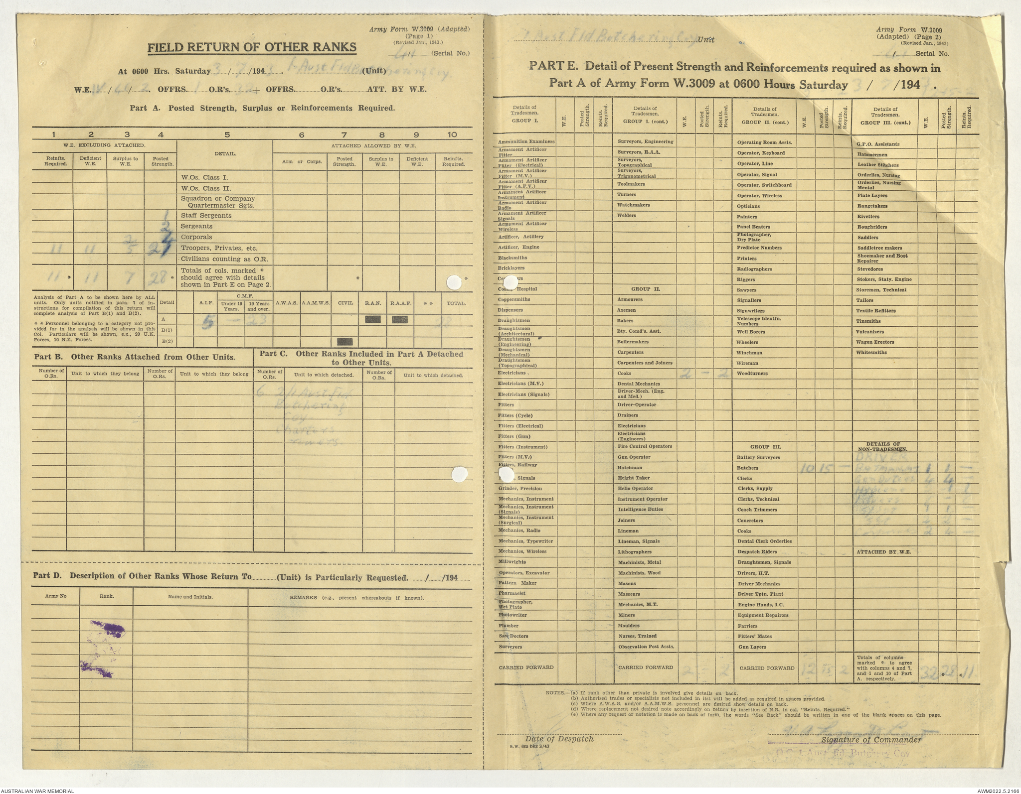 2nd AIF (Australian Imperial Force) and CMF (Citizen Military Forces) unit war diaries, 1939-45 War