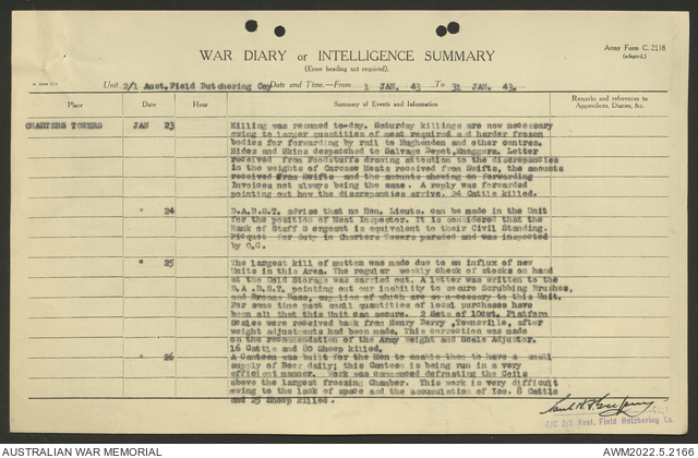 - AWM52 10/28/1 - 1 Australian Field Butchering Company