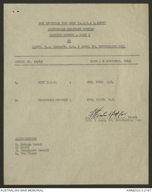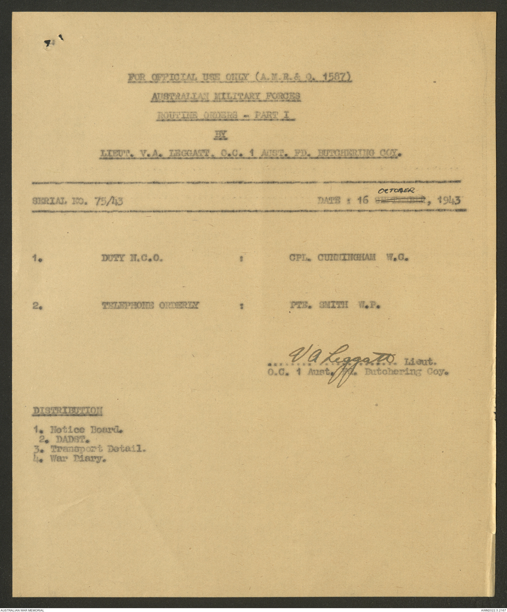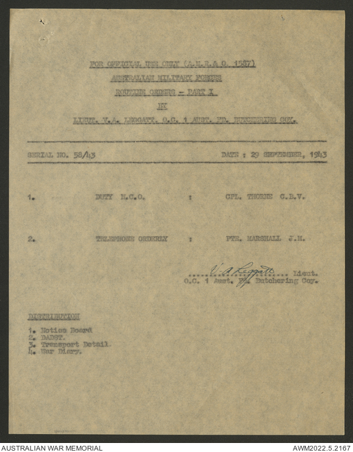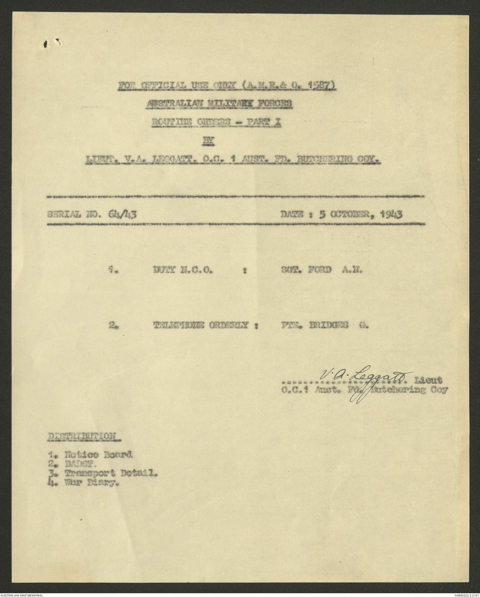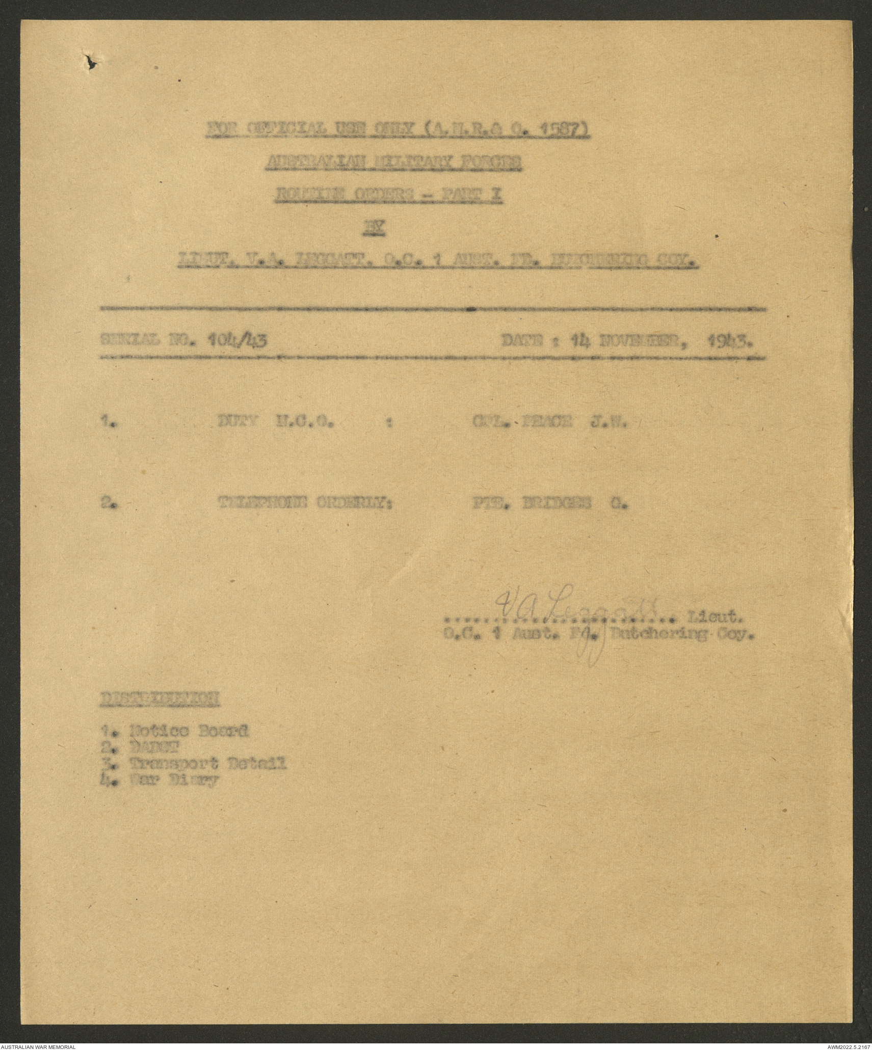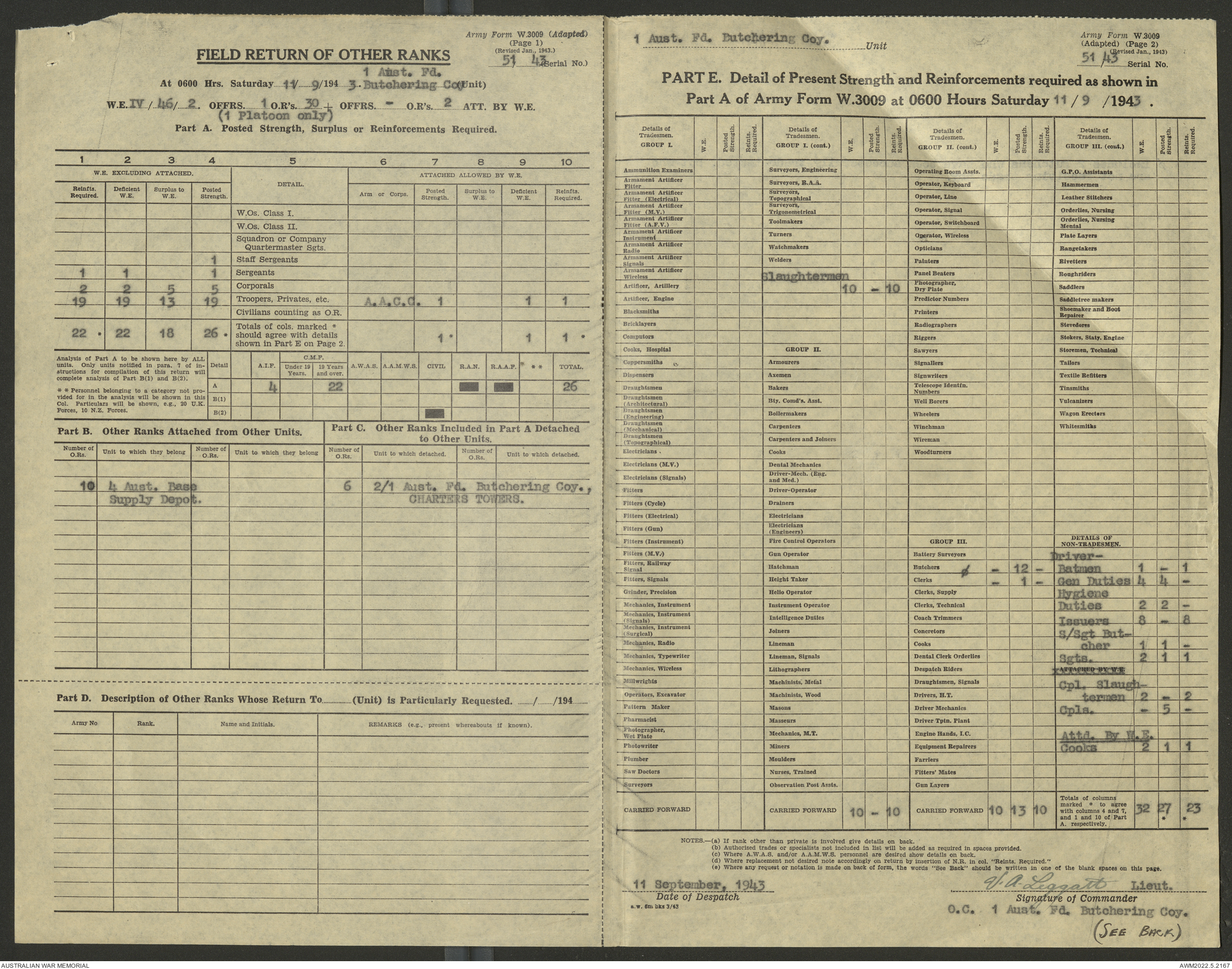 AWM52 10/28/1/2 - [Unit War Diaries, 1939-45 War] 1 Australian Field Butchering Company, September - November 1943