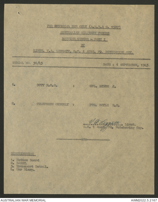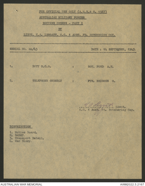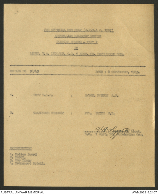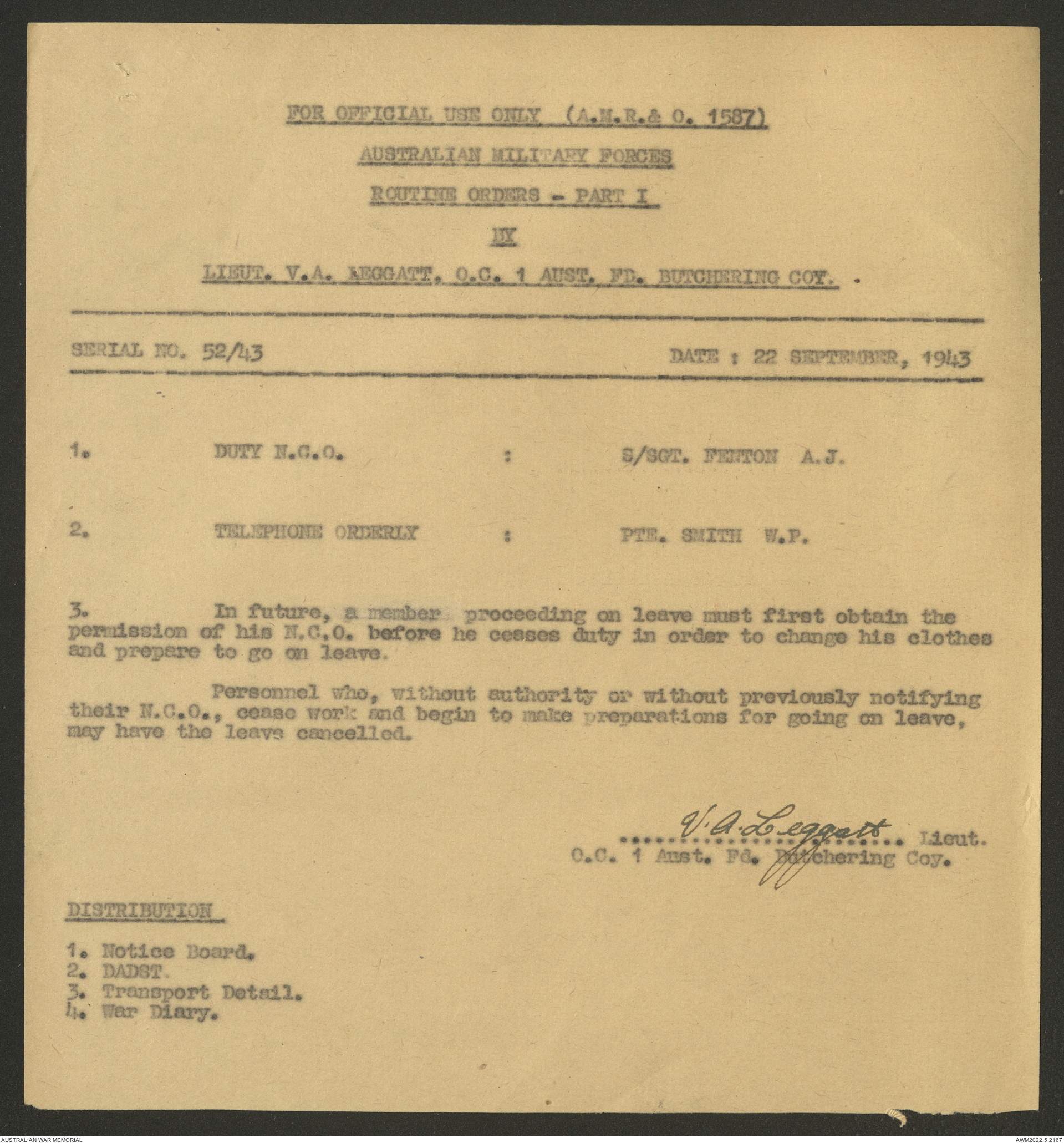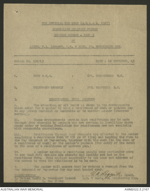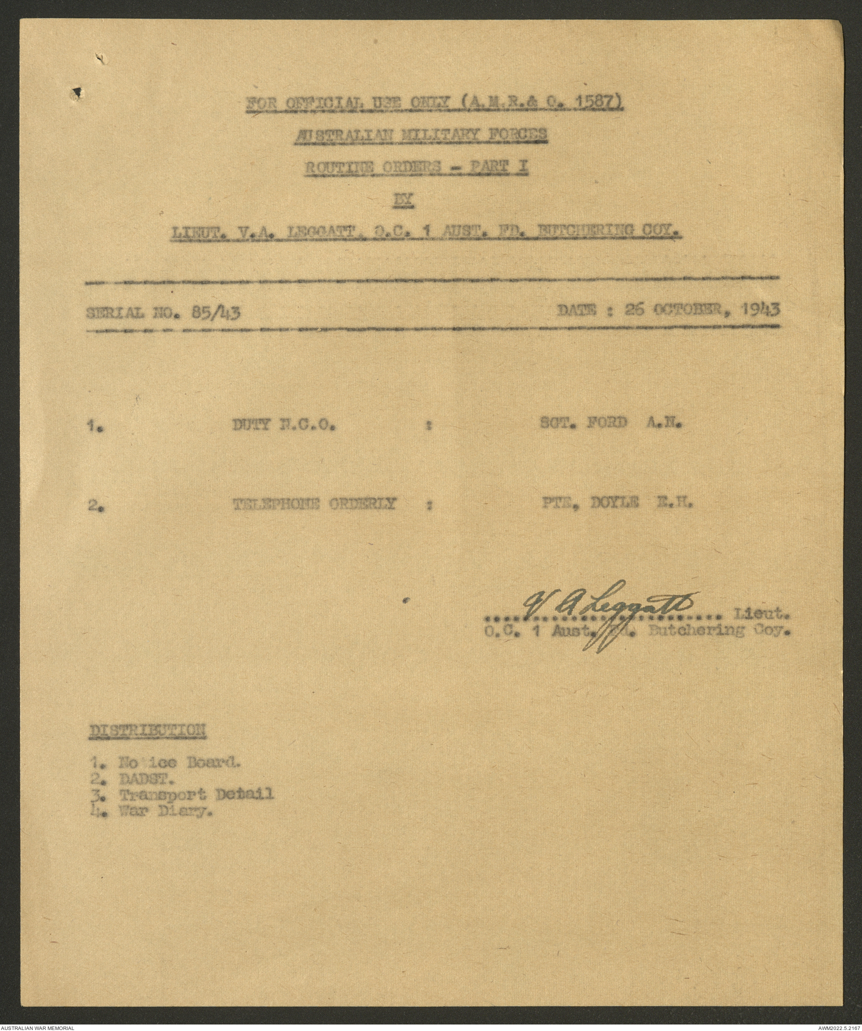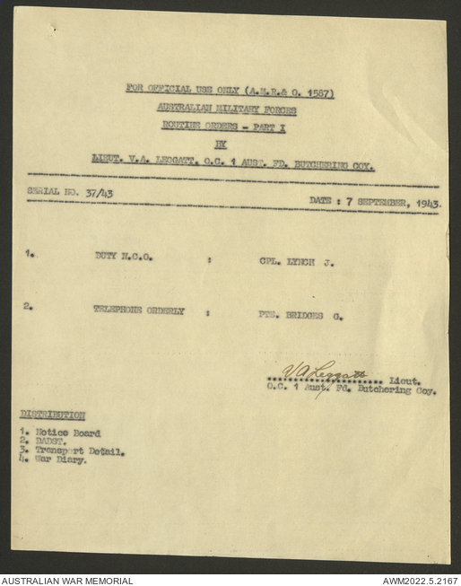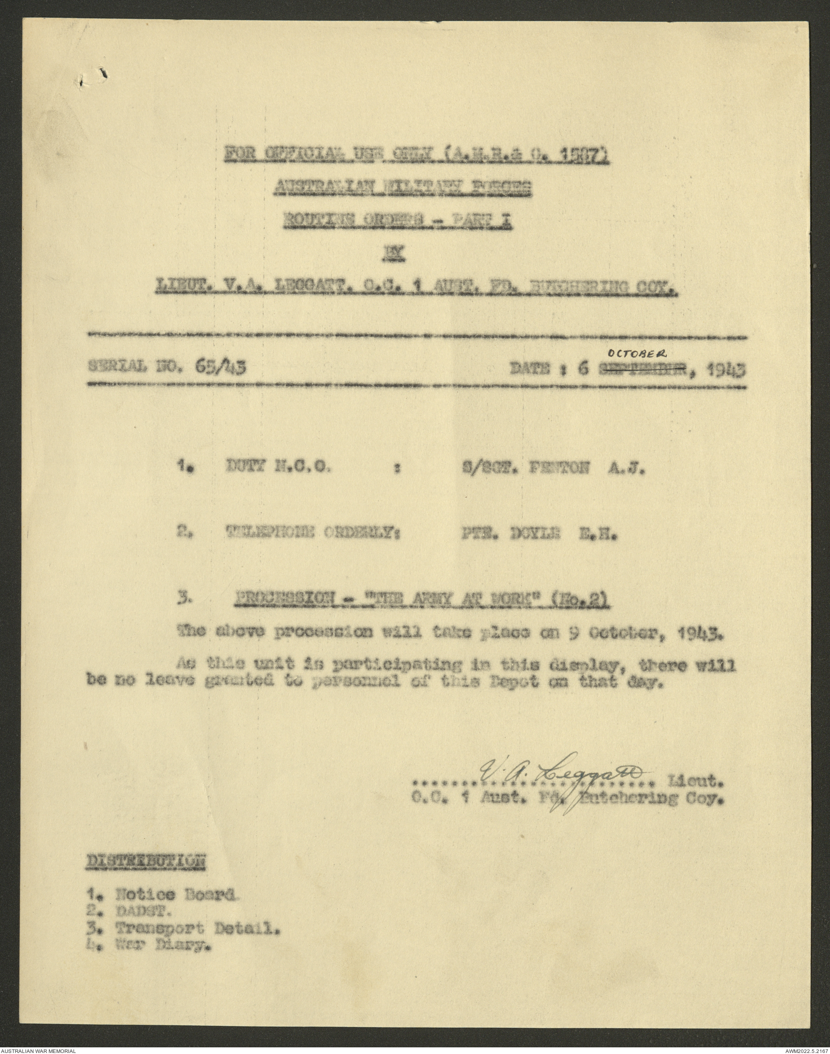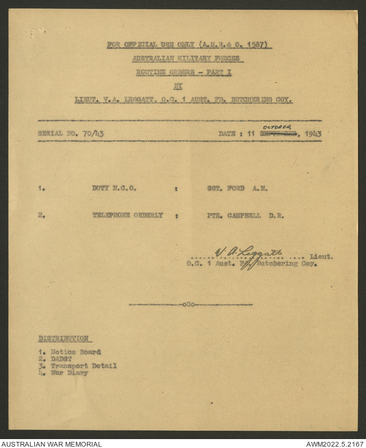 AWM52 10/28/1/2 - [Unit War Diaries, 1939-45 War] 1 Australian Field Butchering Company, September - November 1943