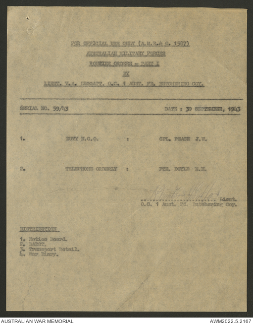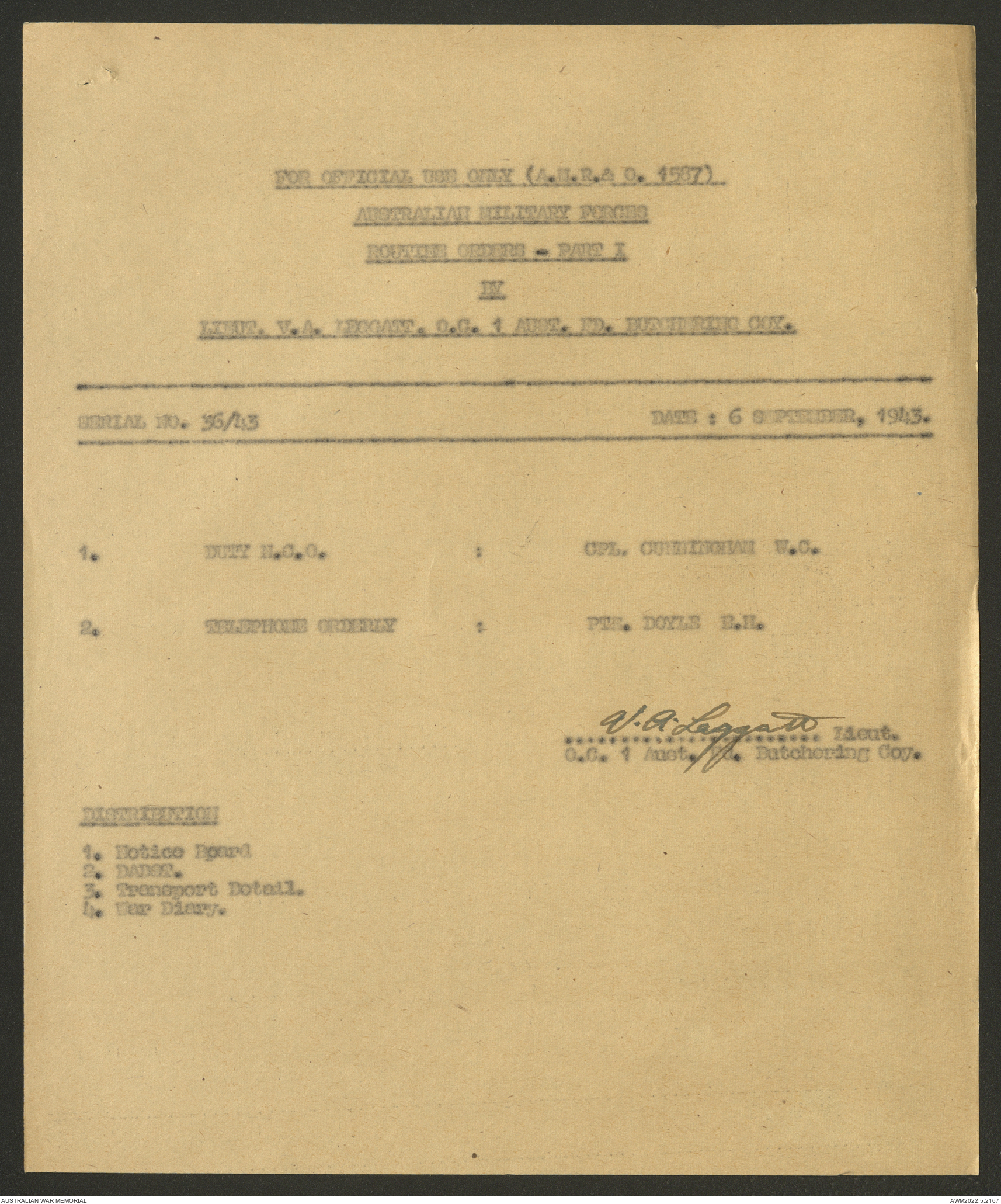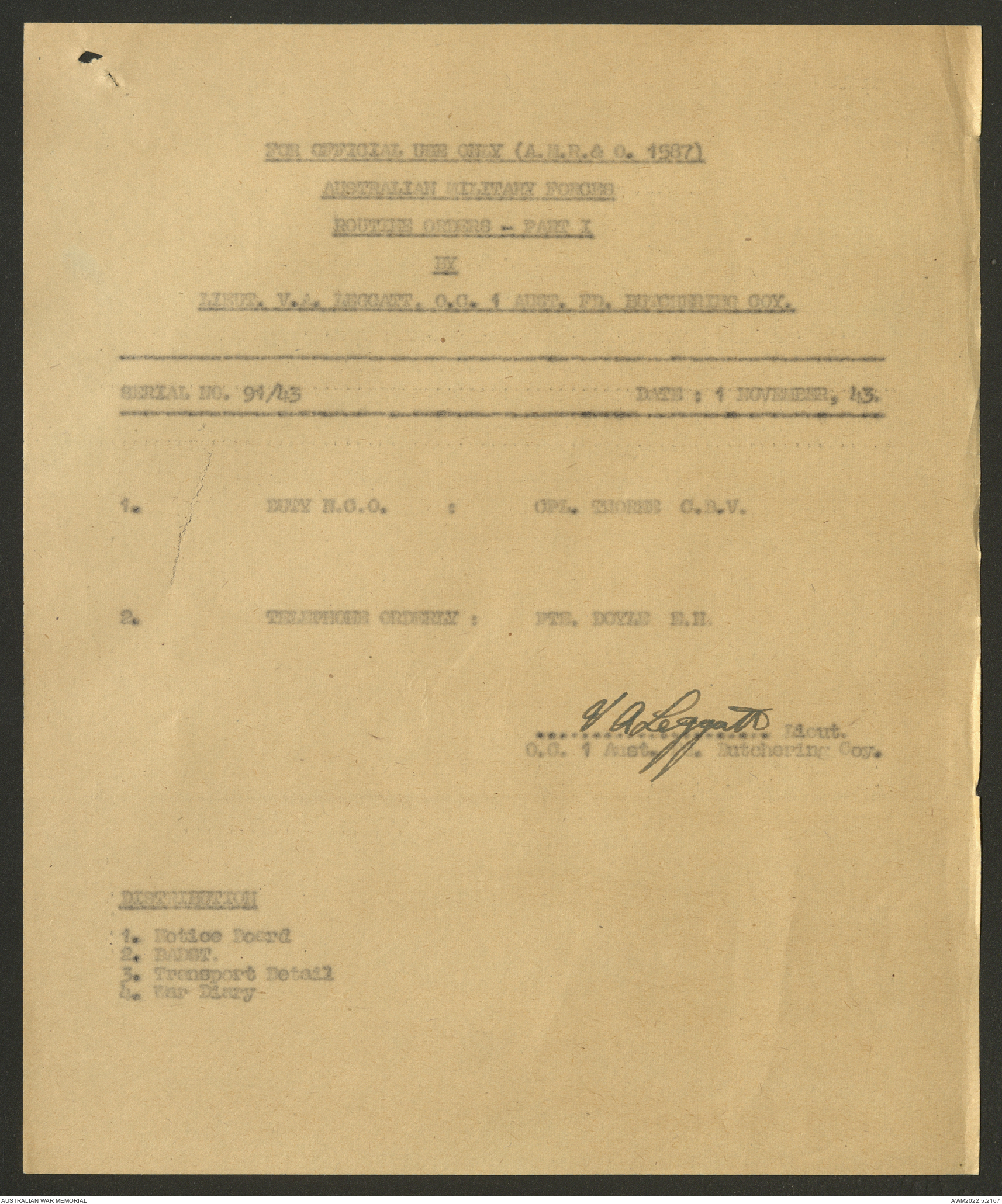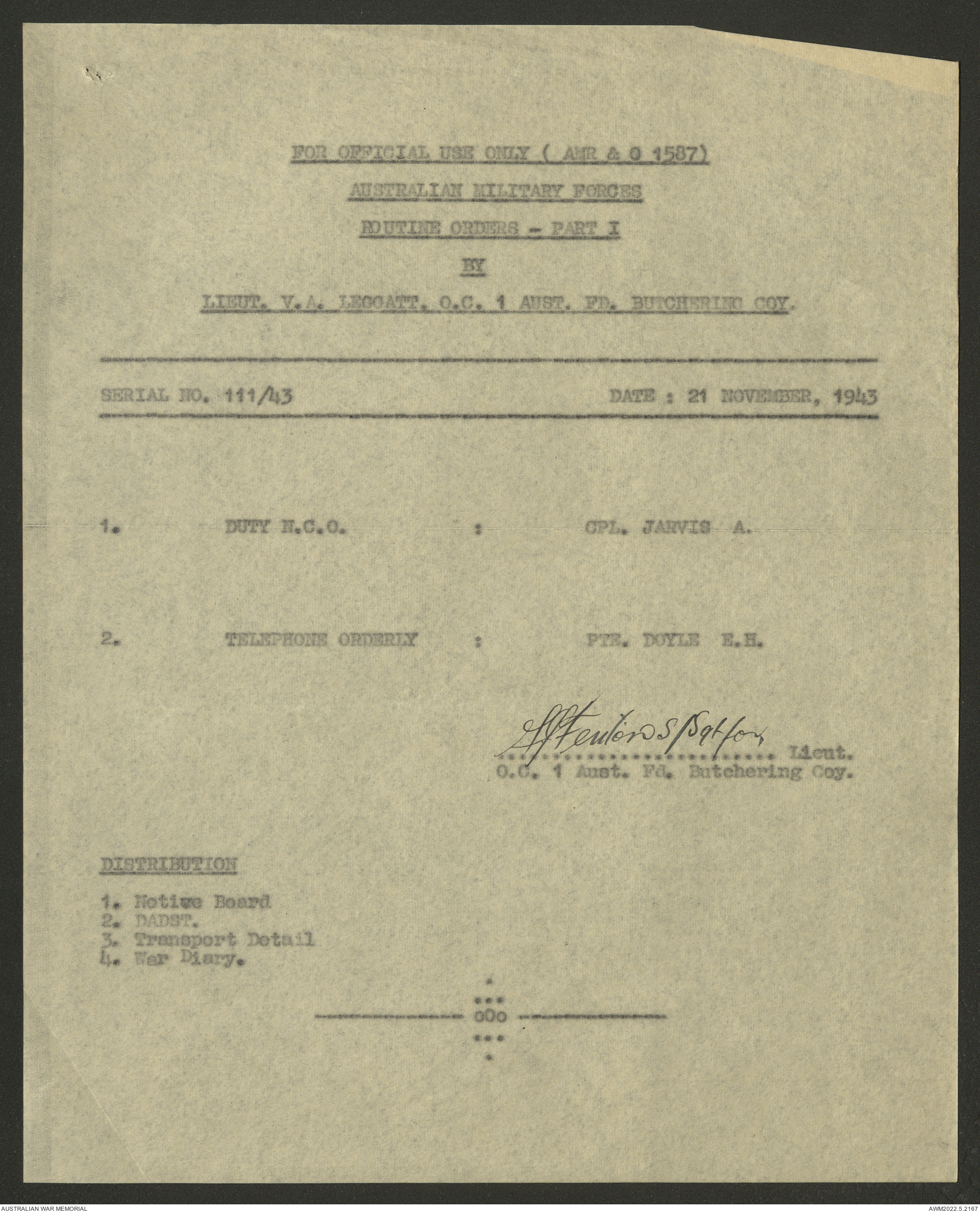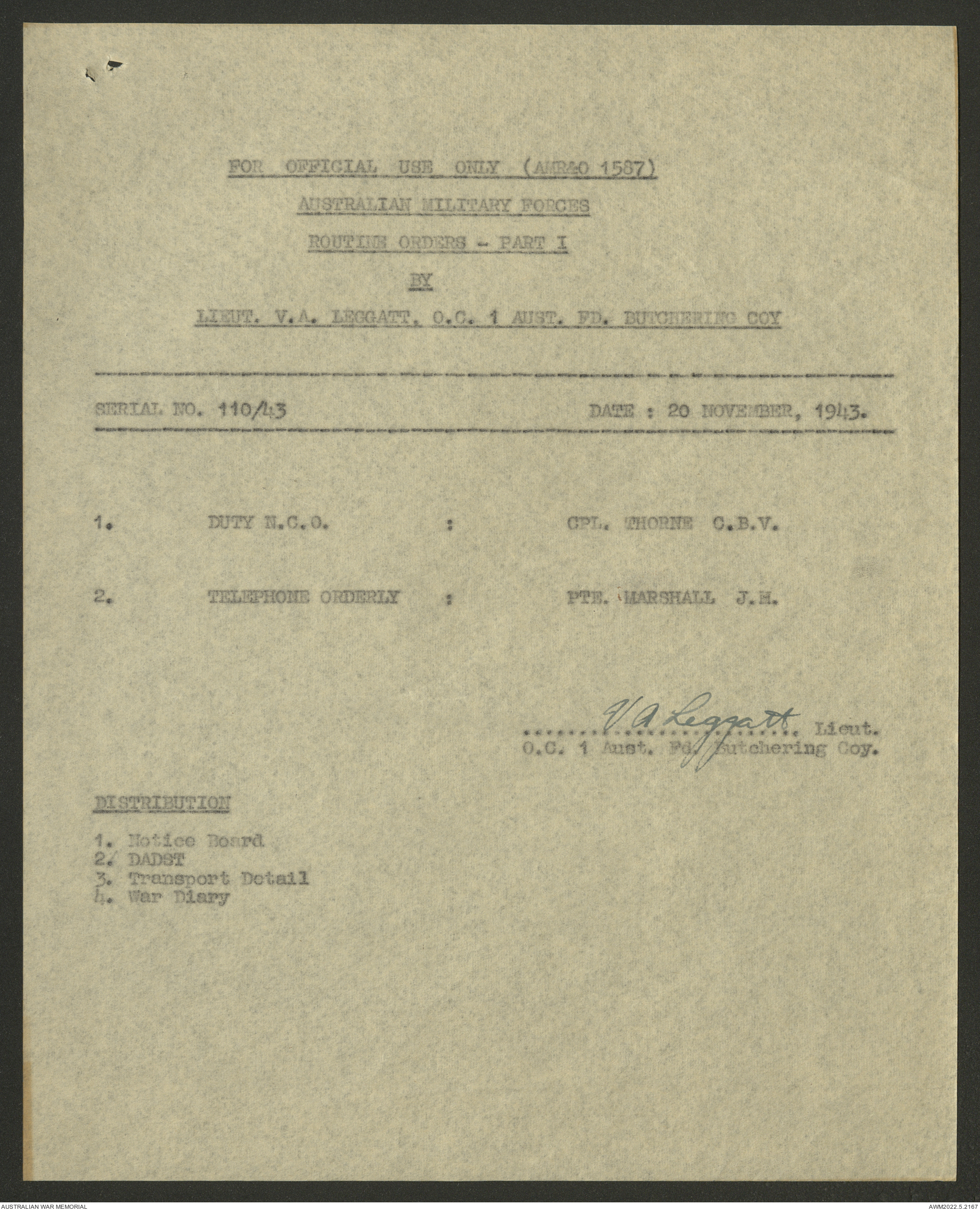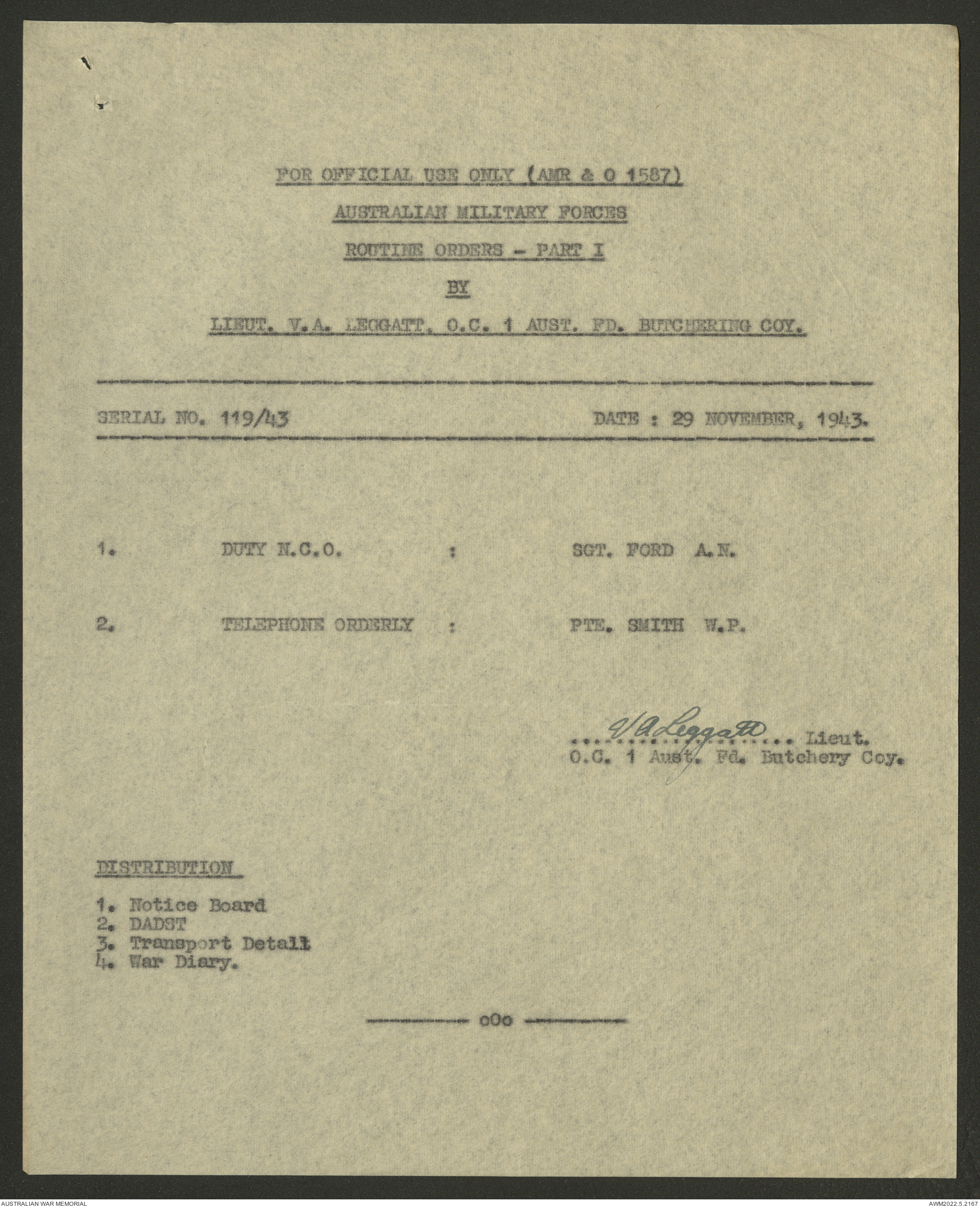 AWM52 10/28/1/2 - [Unit War Diaries, 1939-45 War] 1 Australian Field Butchering Company, September - November 1943