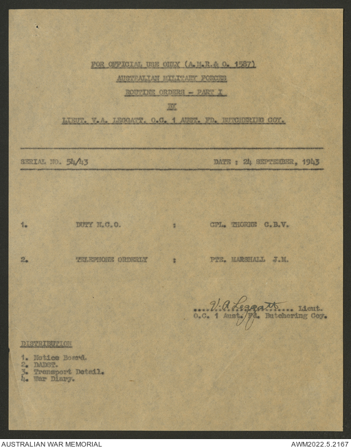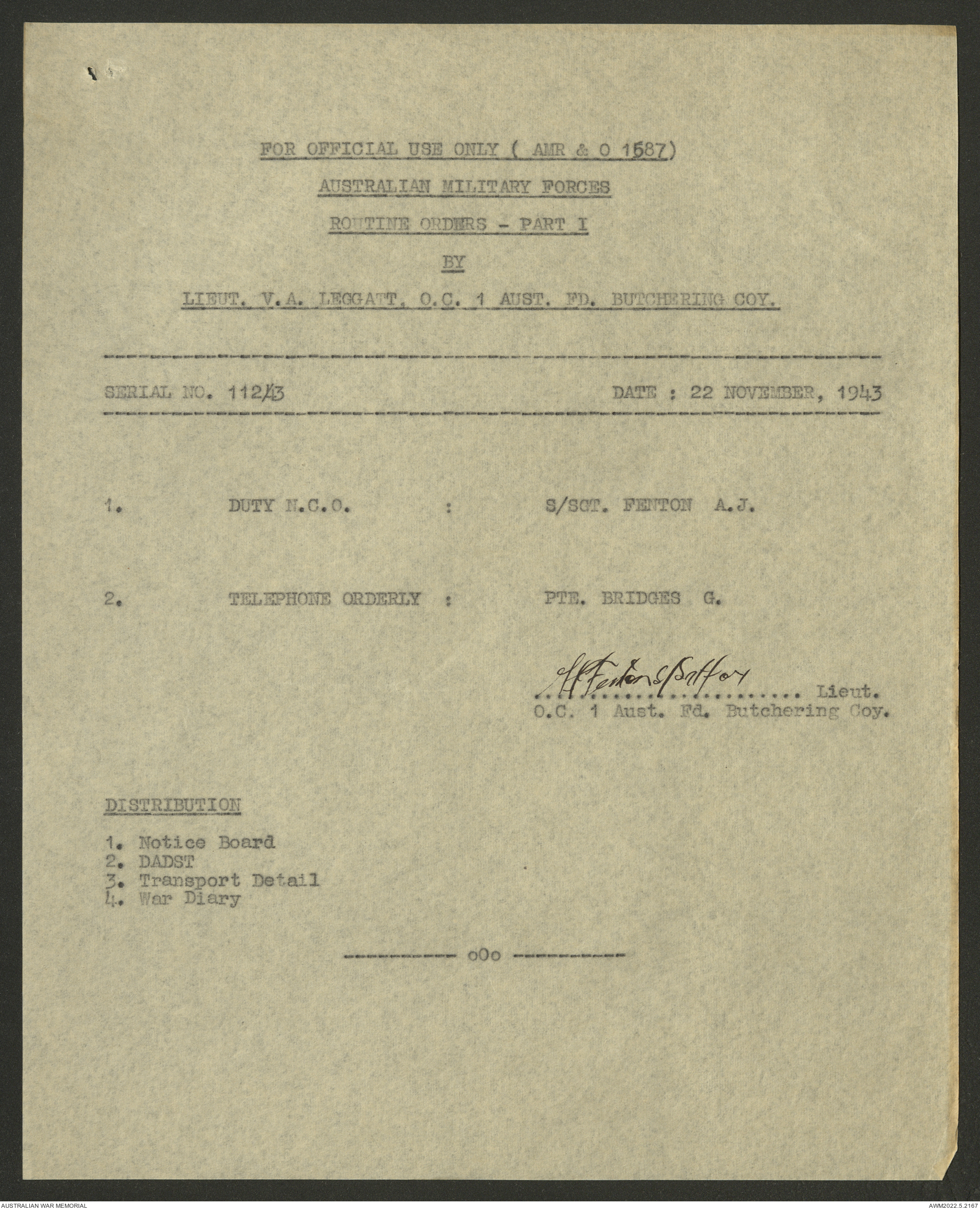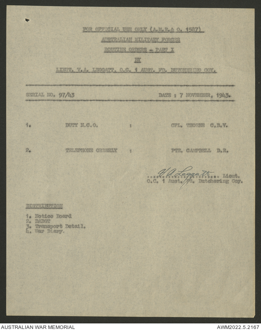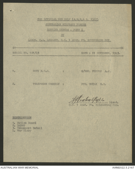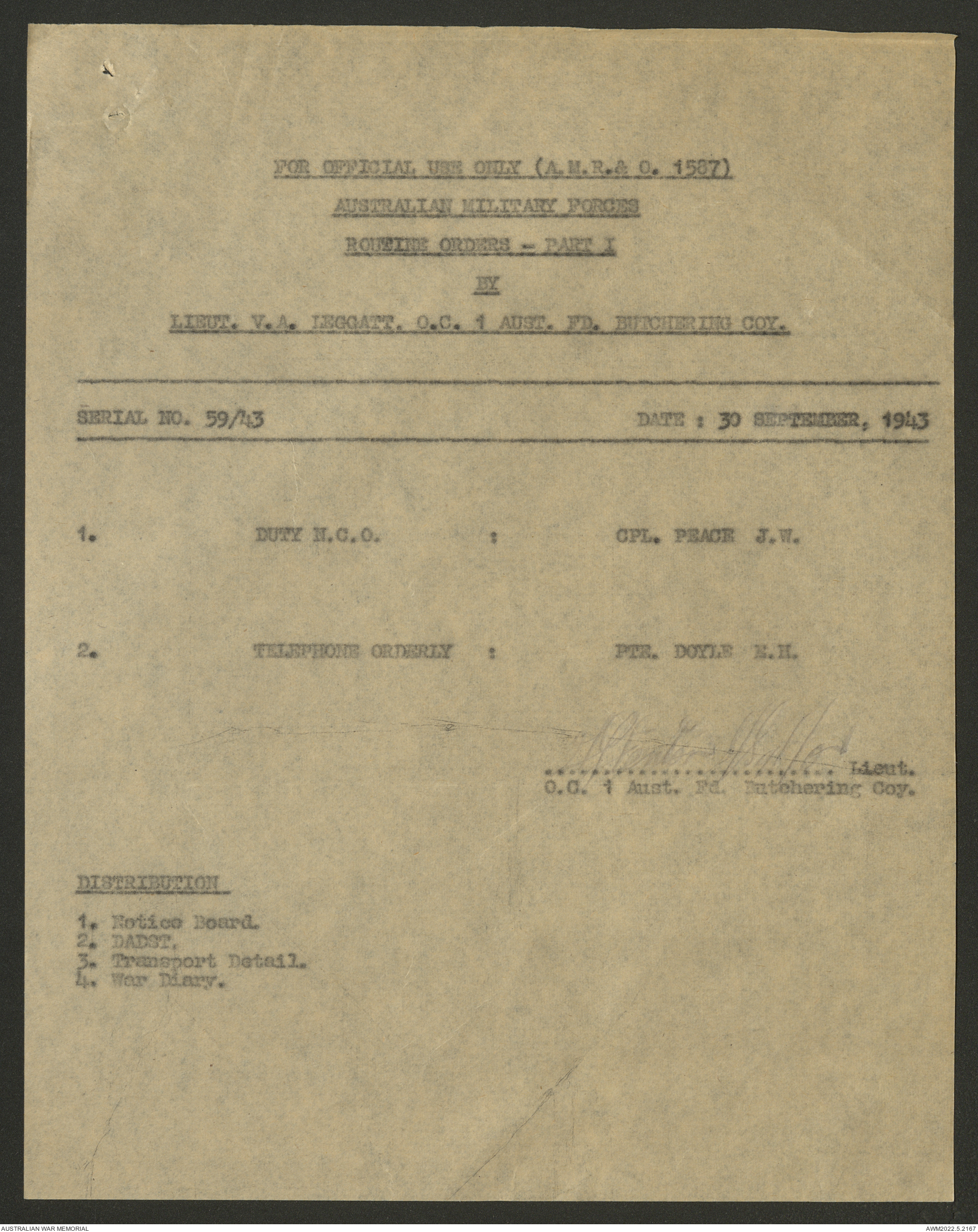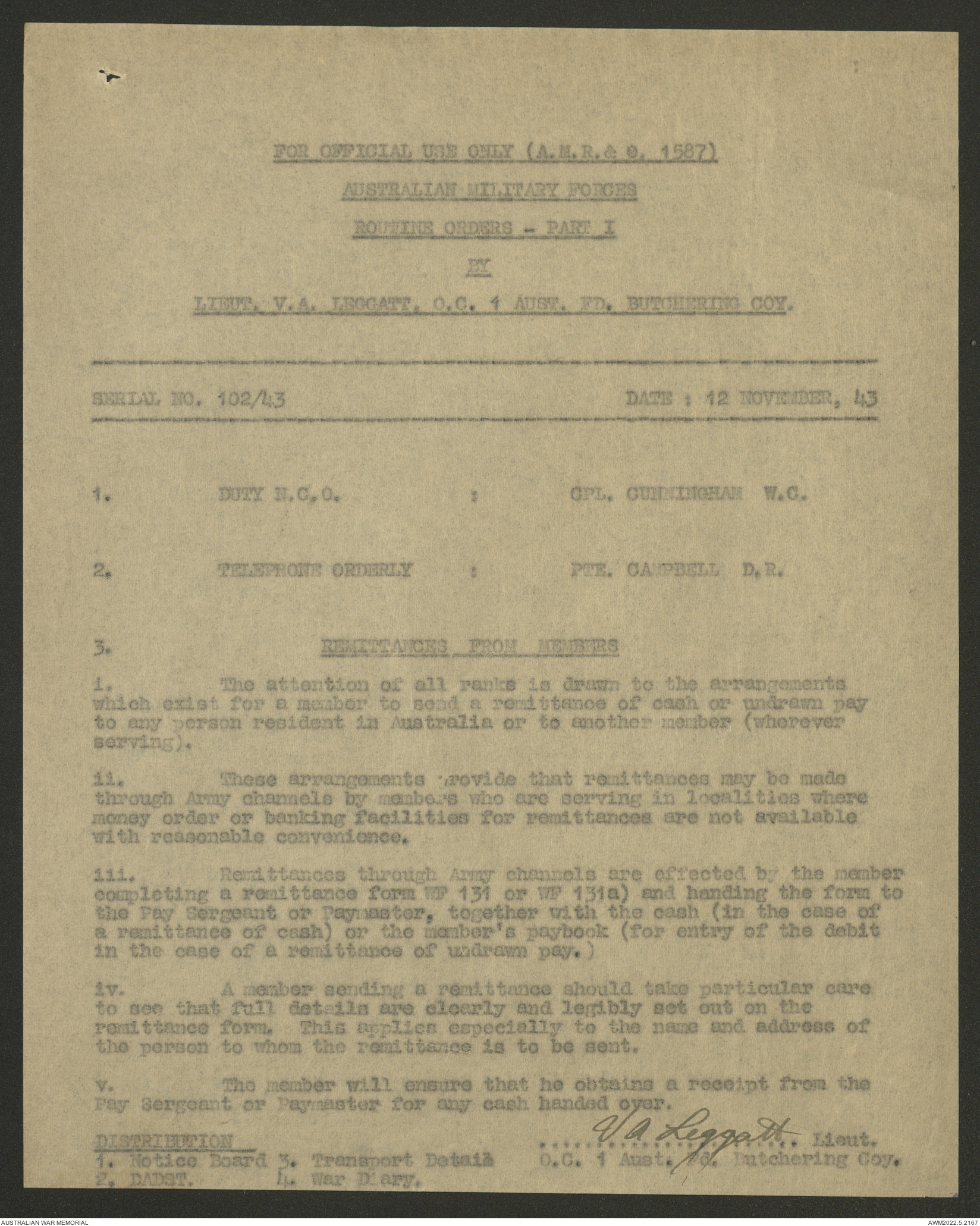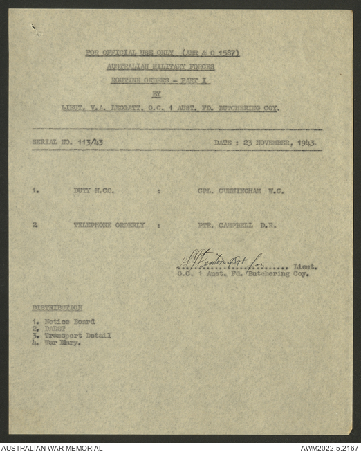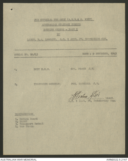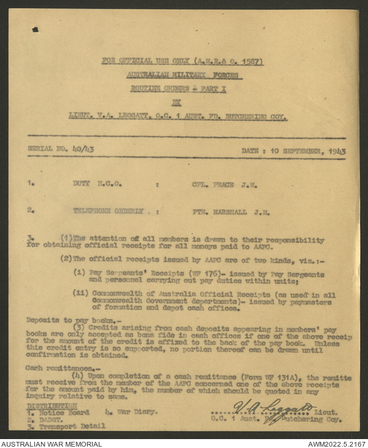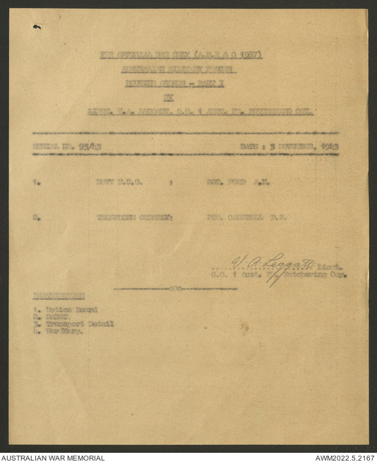 AWM52 10/28/1/2 - [Unit War Diaries, 1939-45 War] 1 Australian Field Butchering Company, September - November 1943