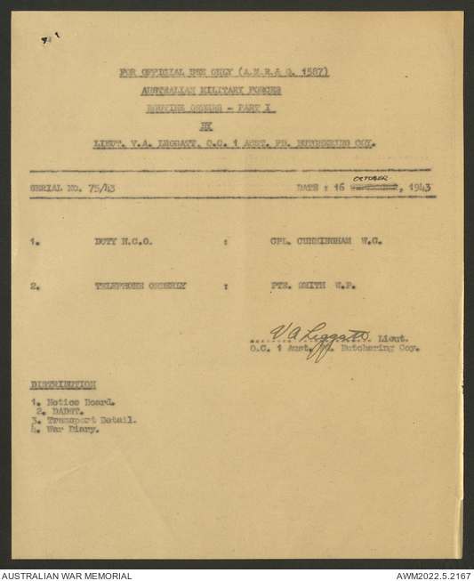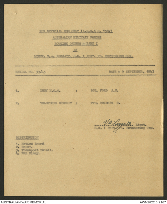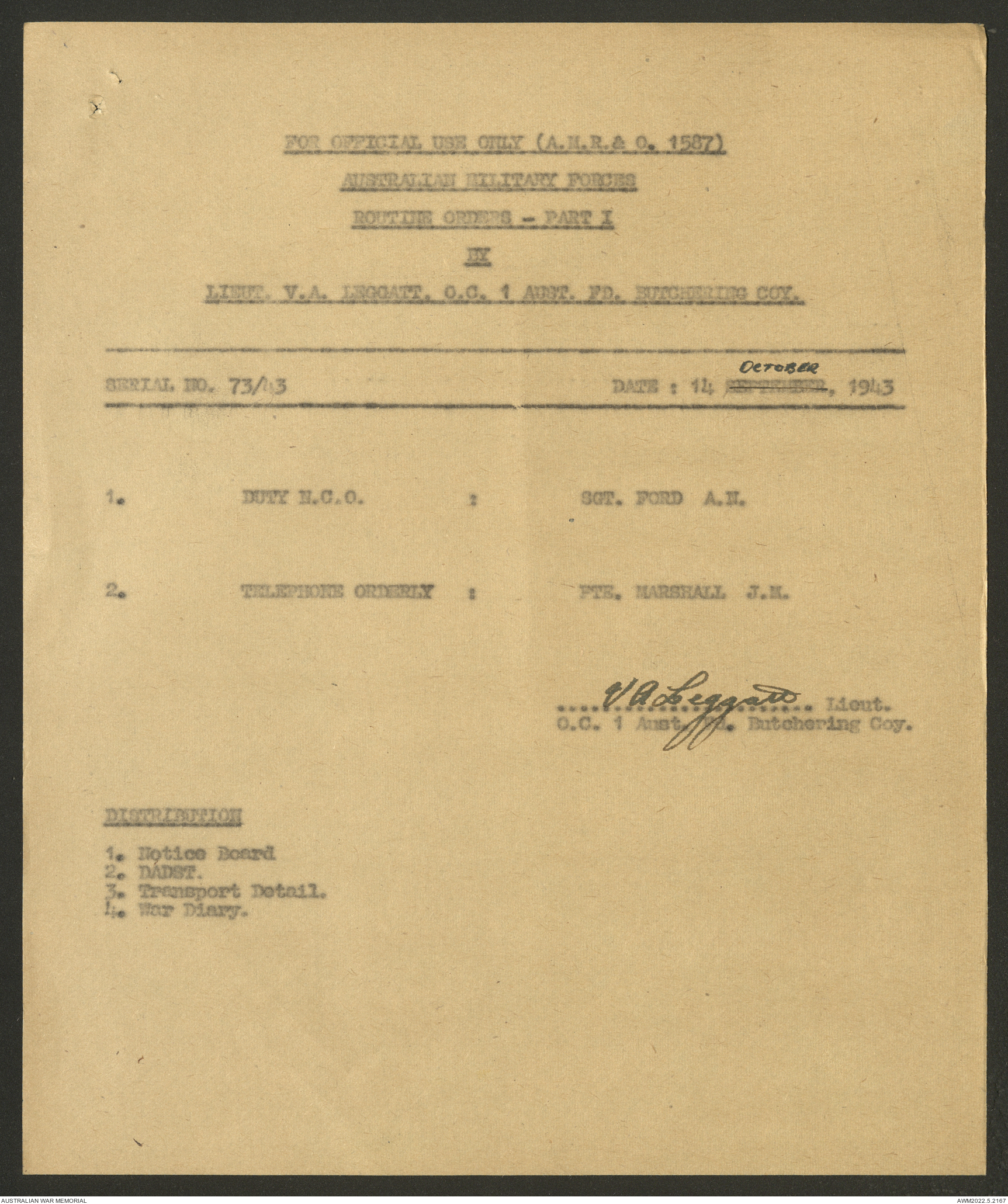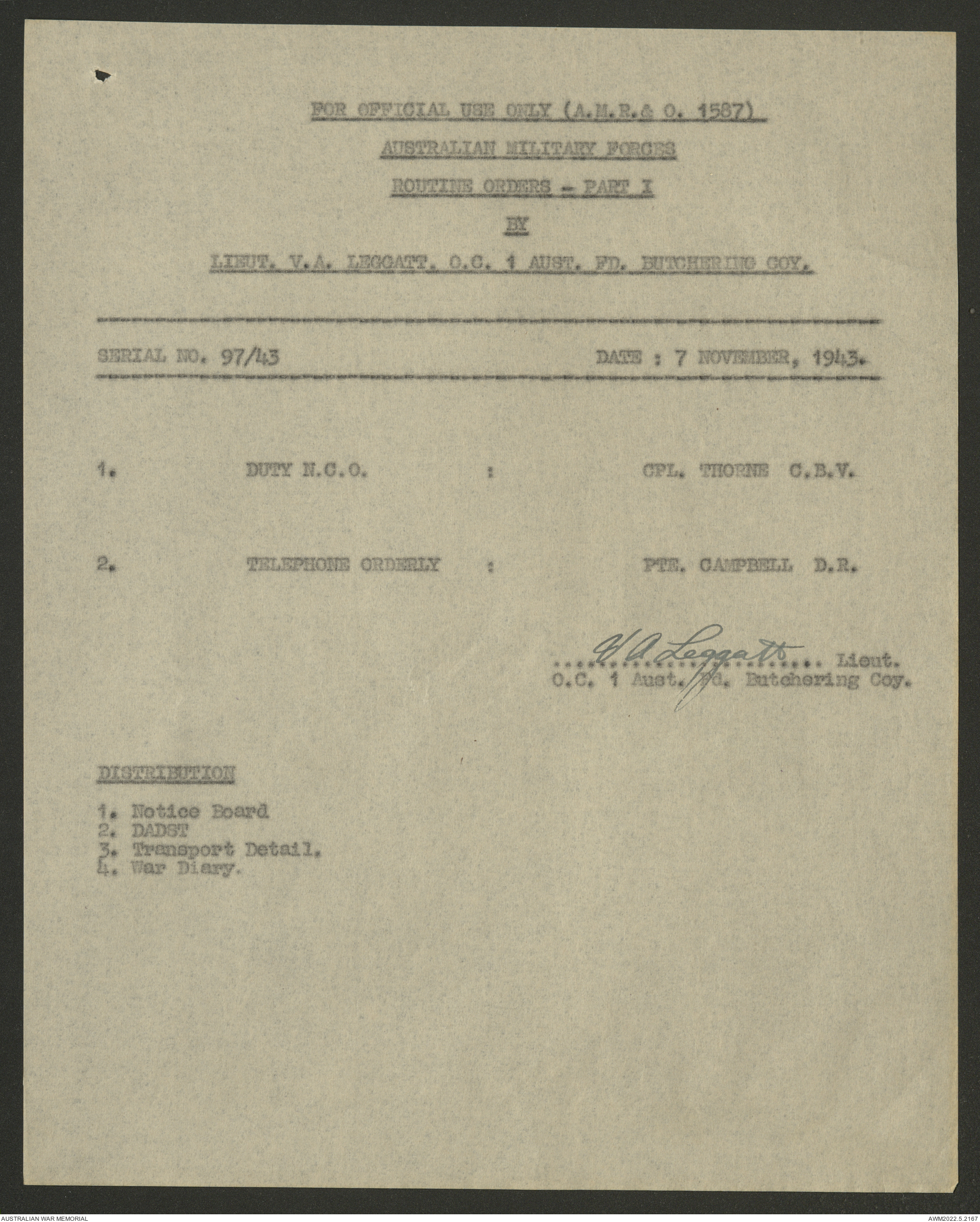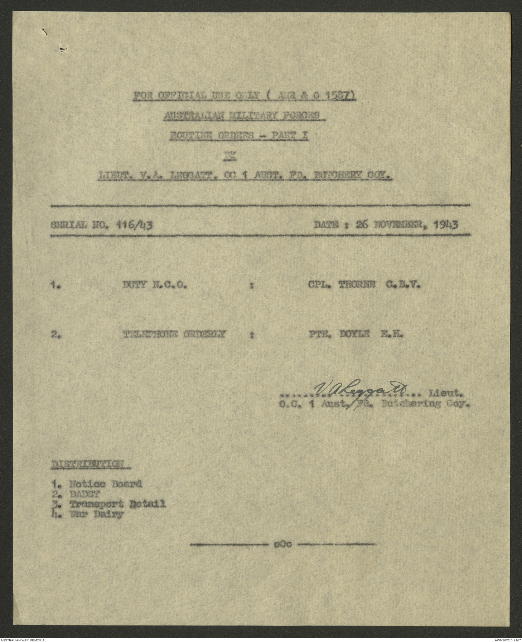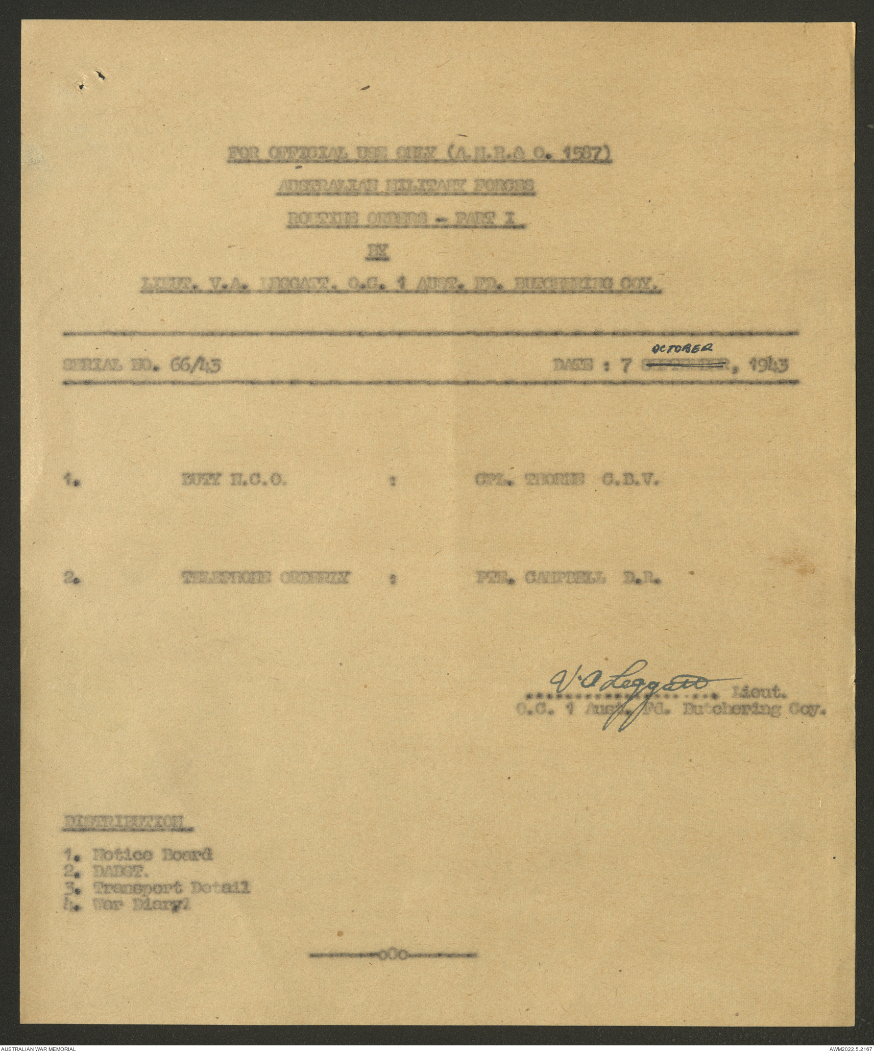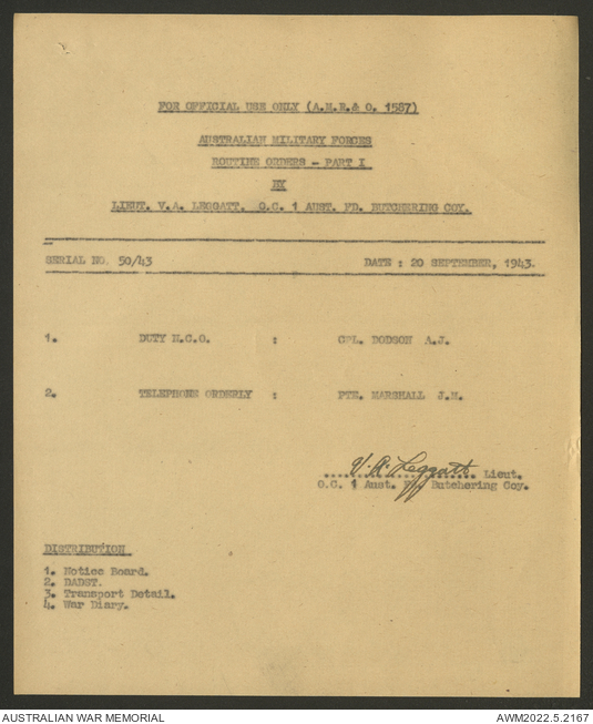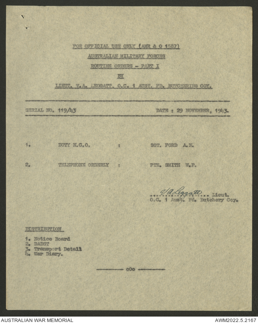 AWM52 10/28/1/2 - [Unit War Diaries, 1939-45 War] 1 Australian Field Butchering Company, September - November 1943