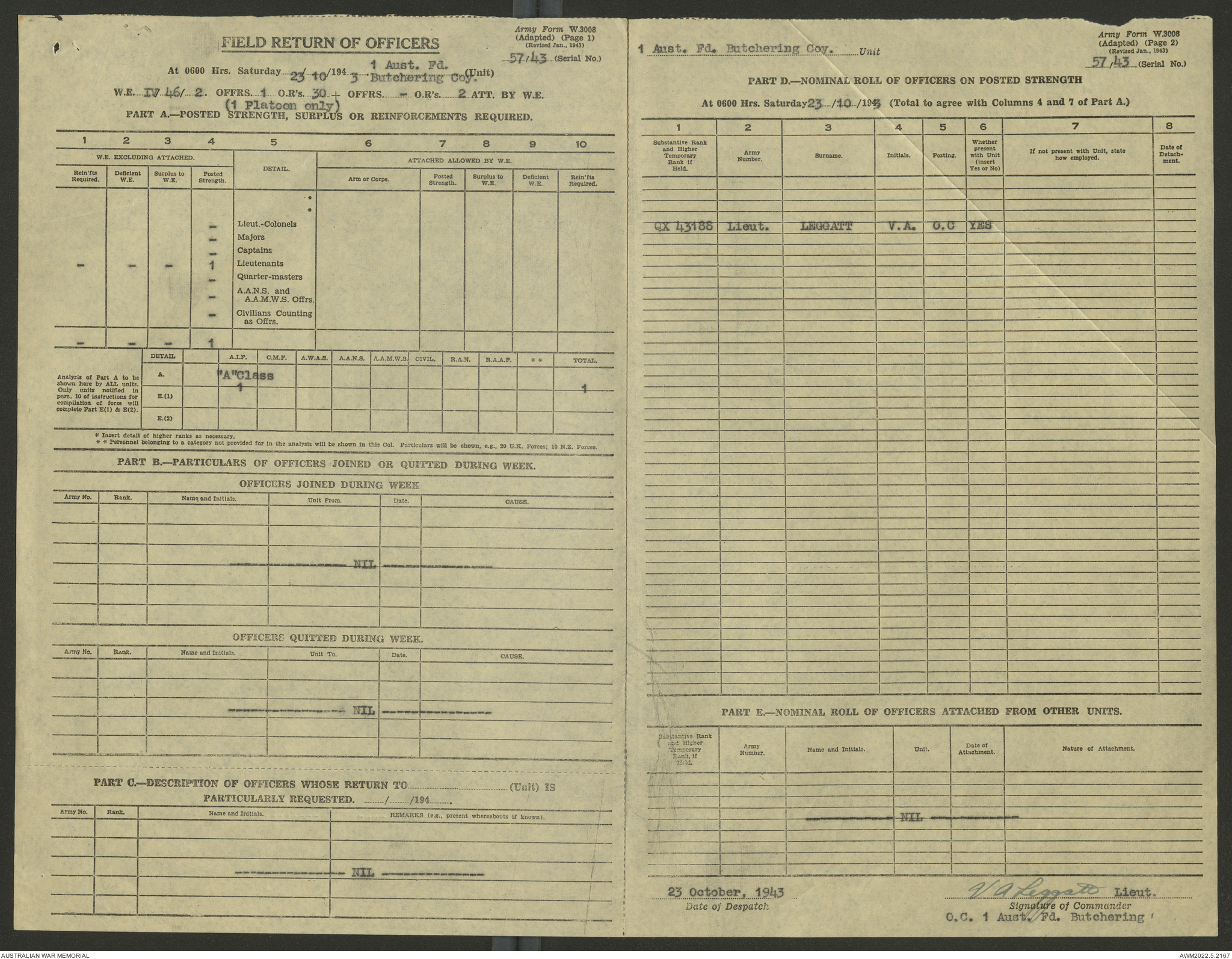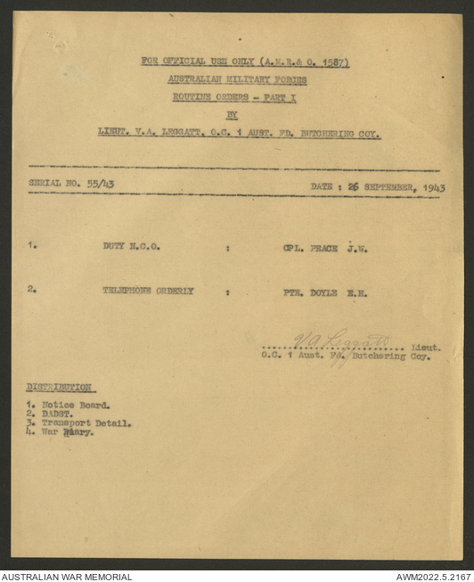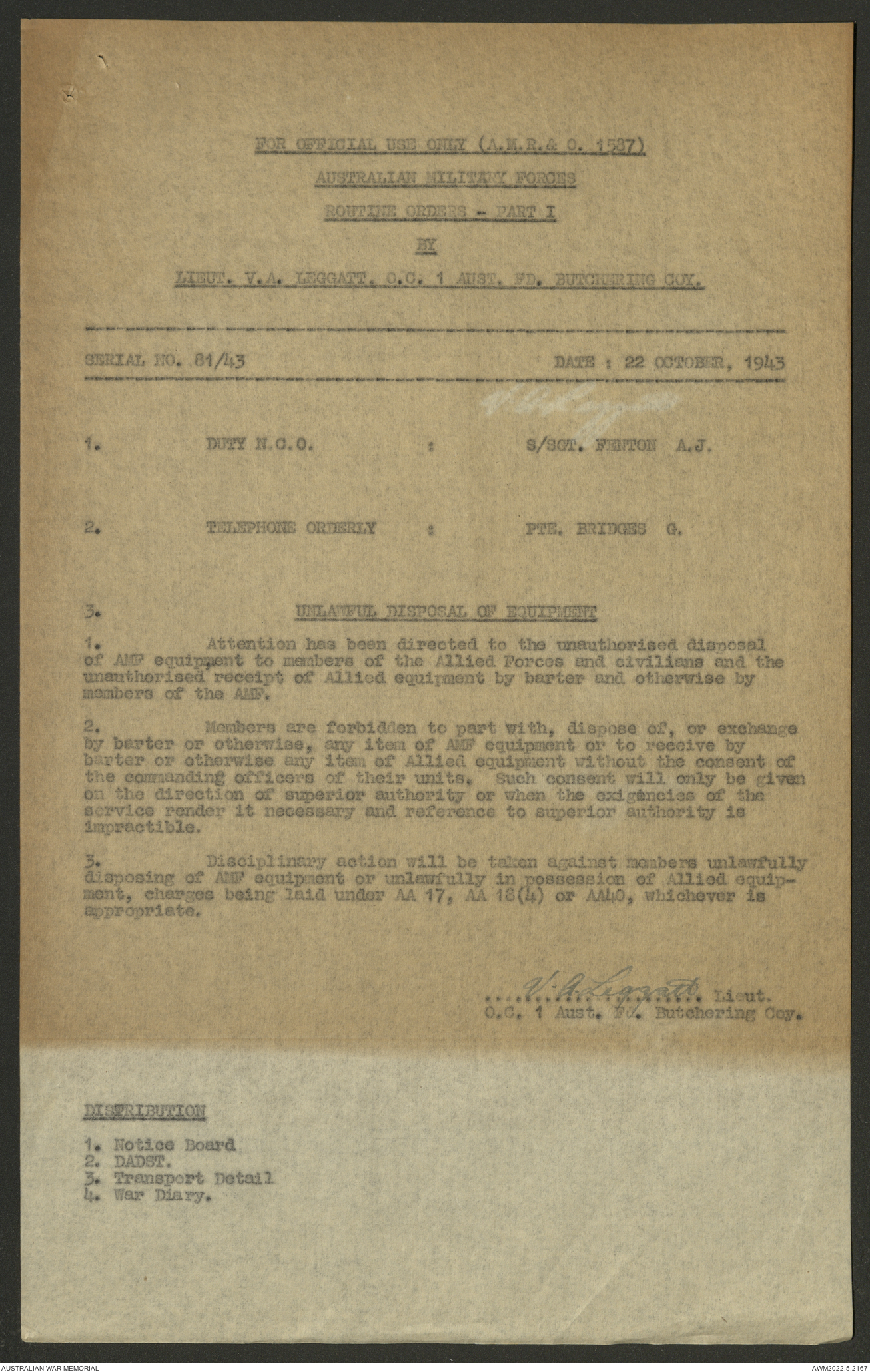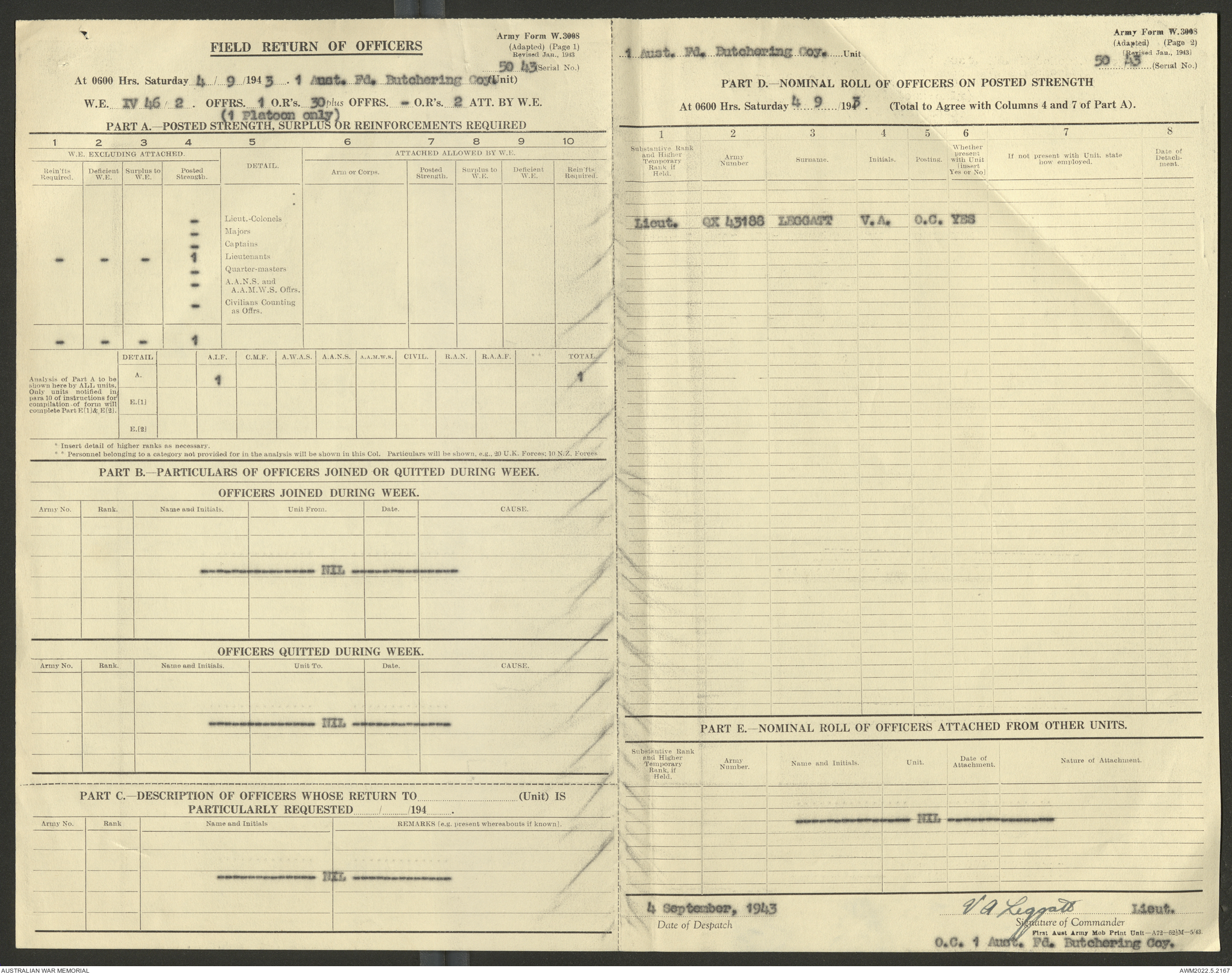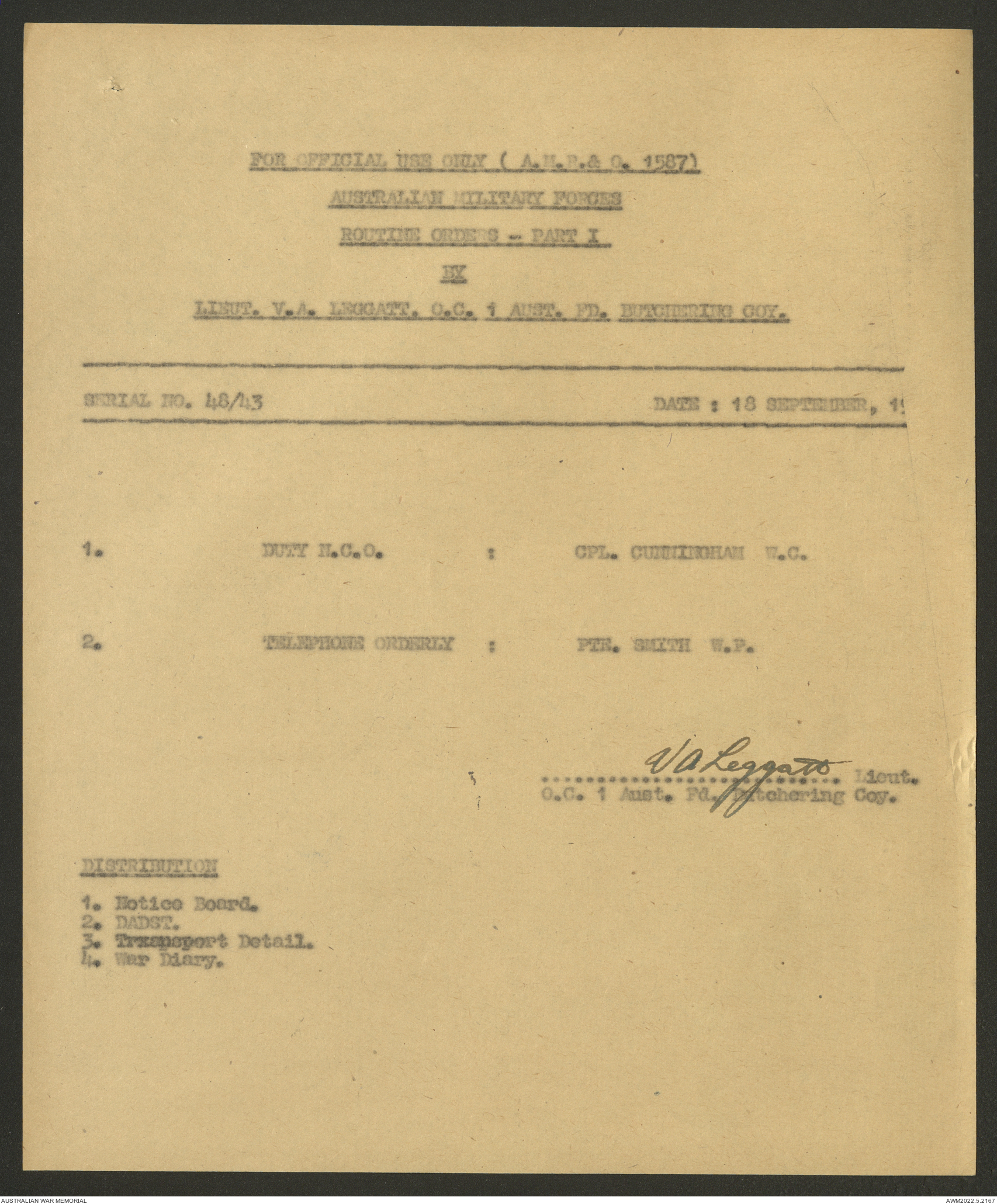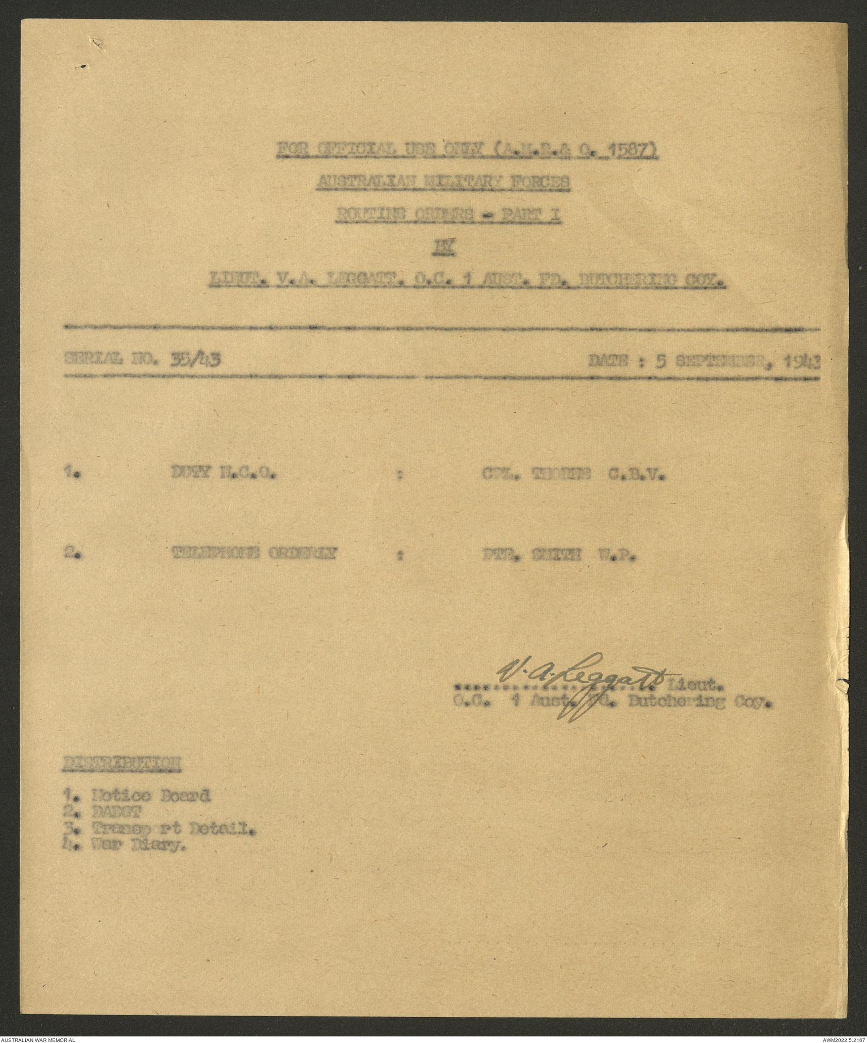 AWM52 10/28/1/2 - [Unit War Diaries, 1939-45 War] 1 Australian Field Butchering Company, September - November 1943