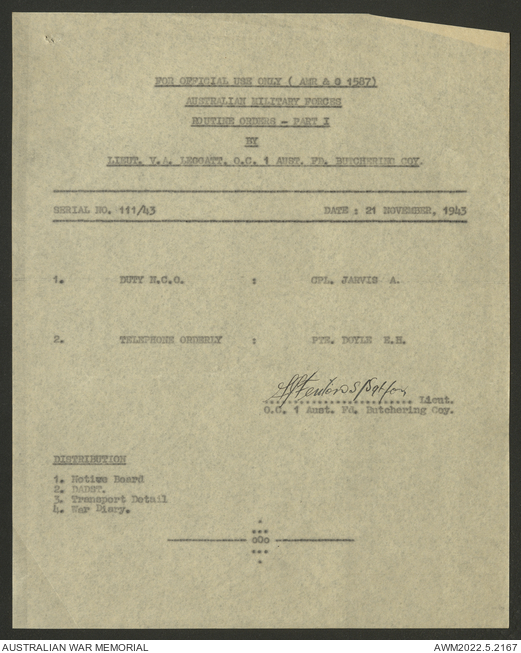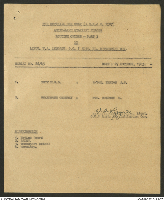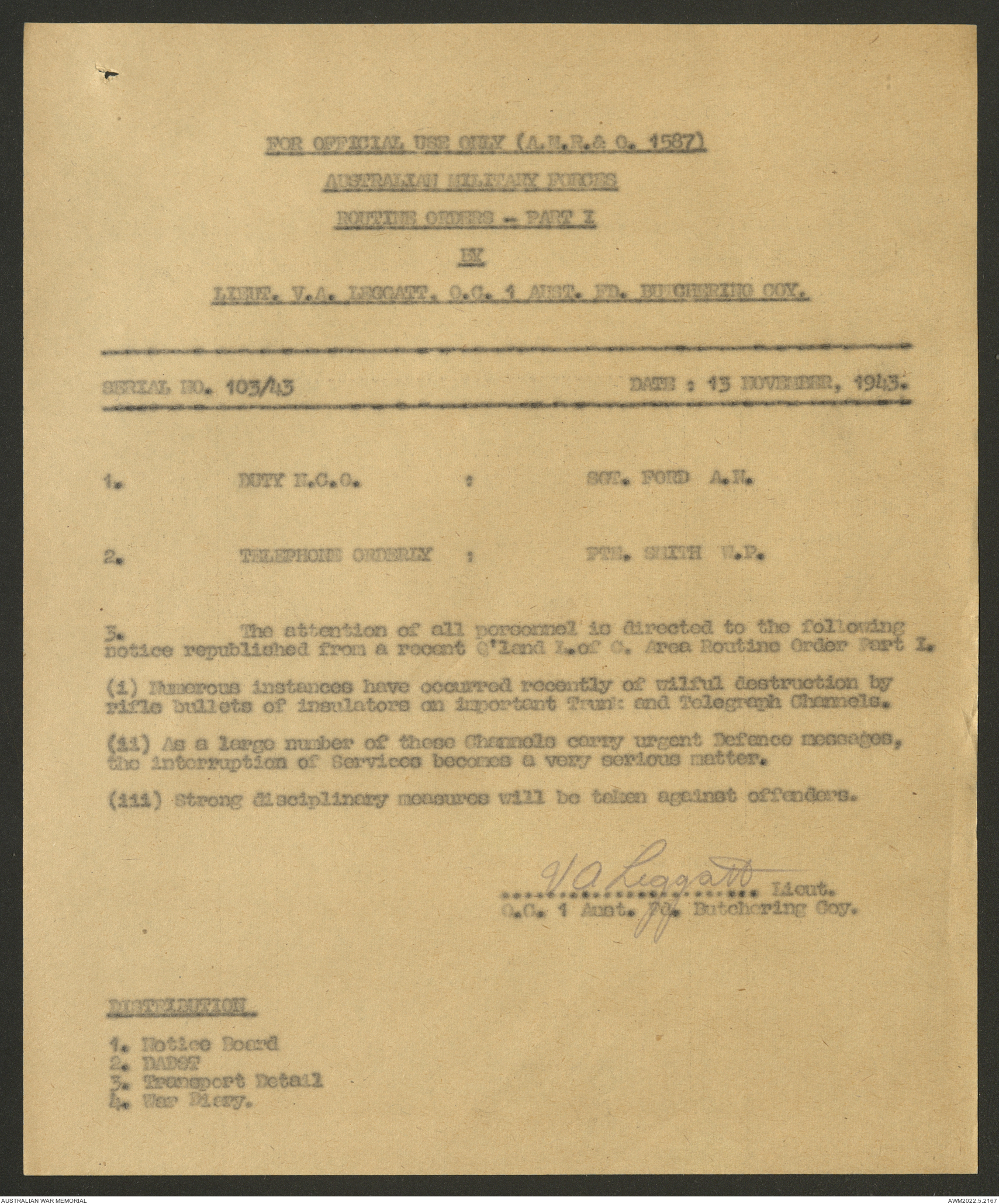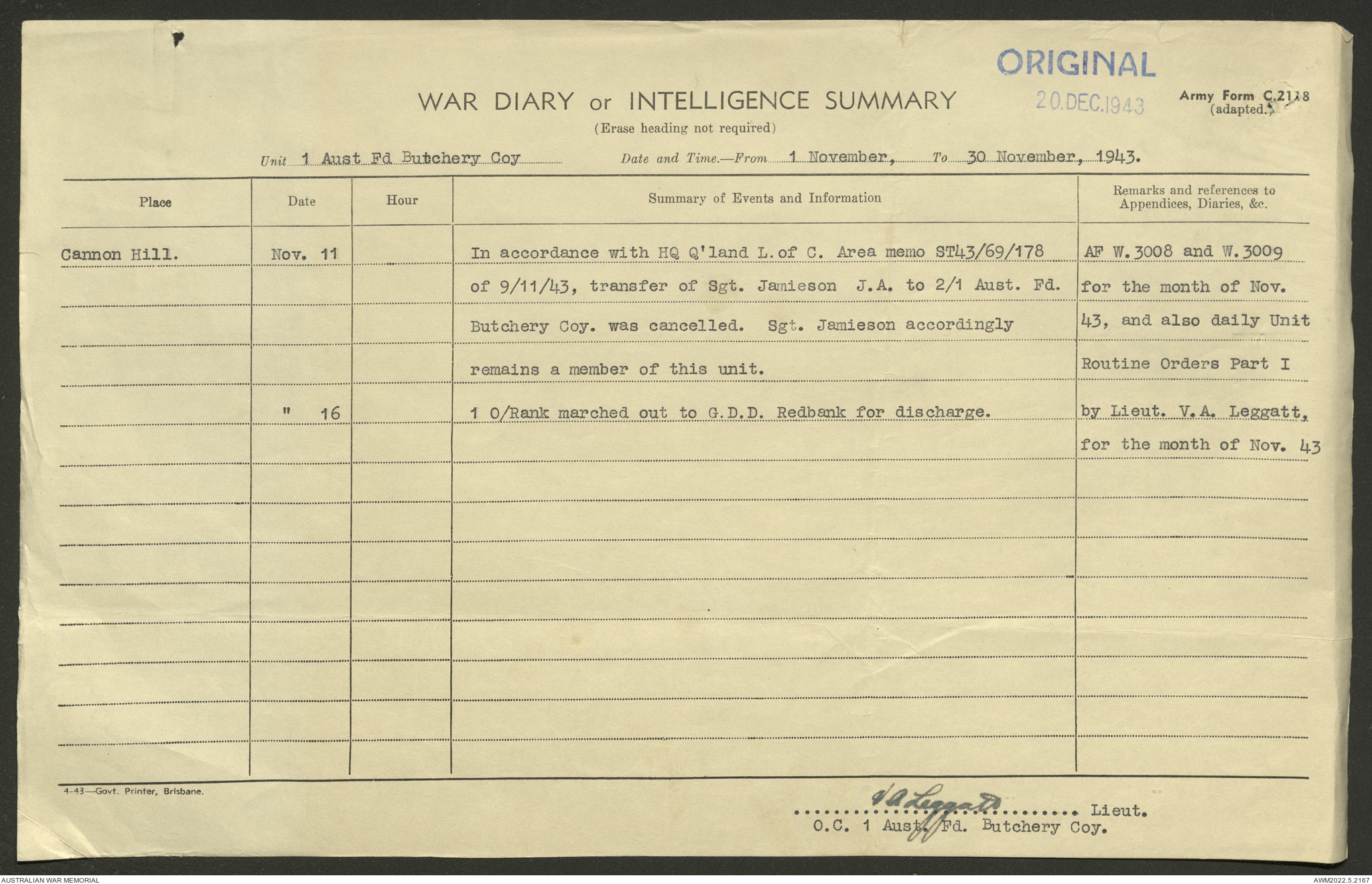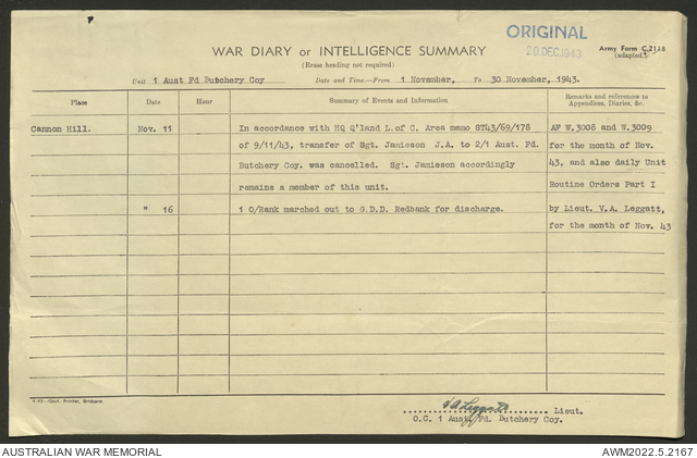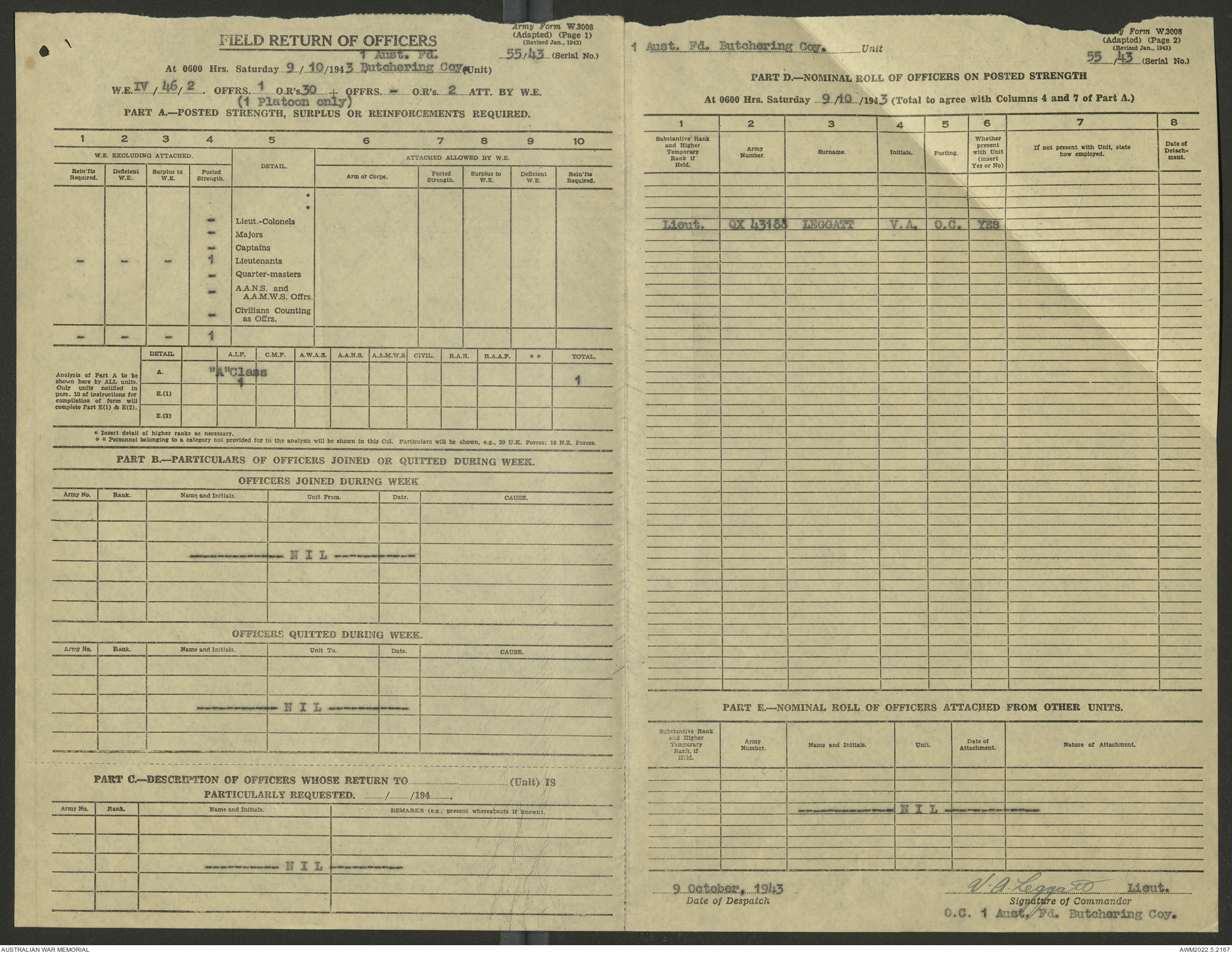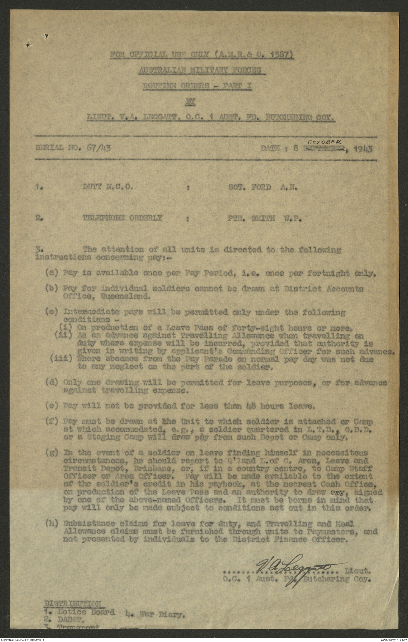 AWM52 10/28/1/2 - [Unit War Diaries, 1939-45 War] 1 Australian Field Butchering Company, September - November 1943
