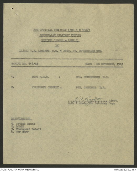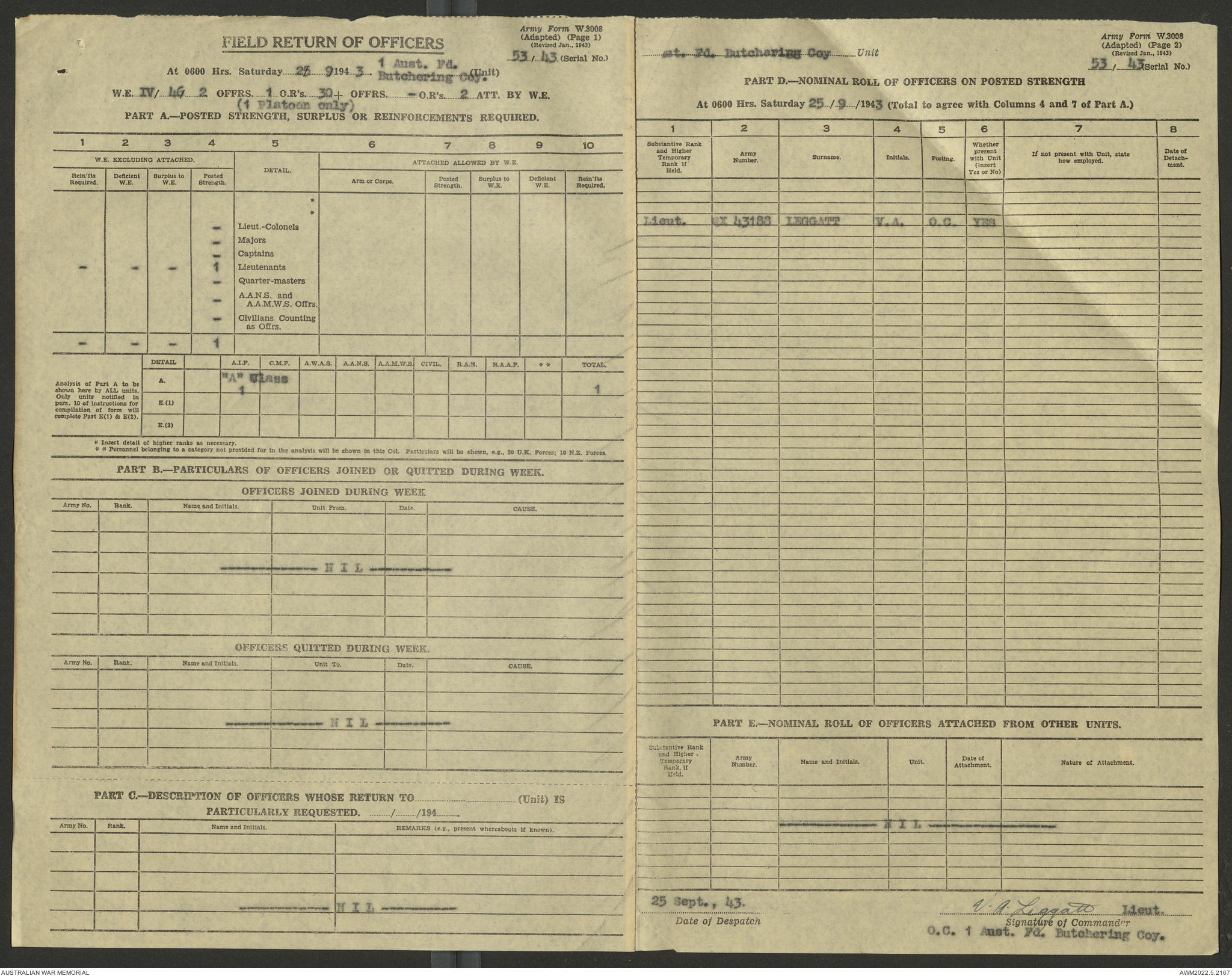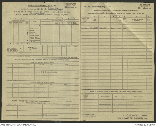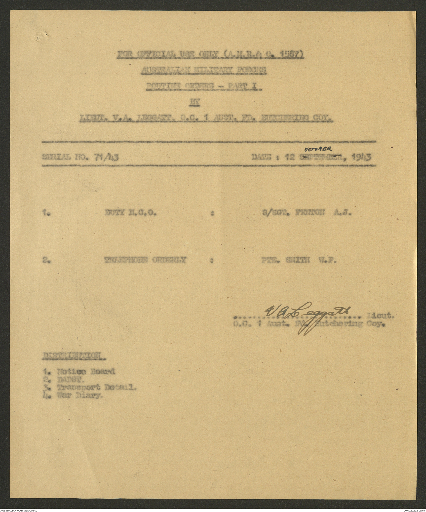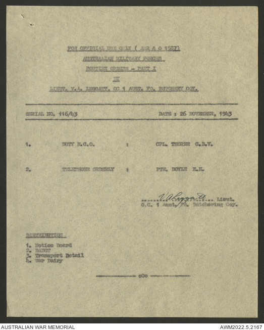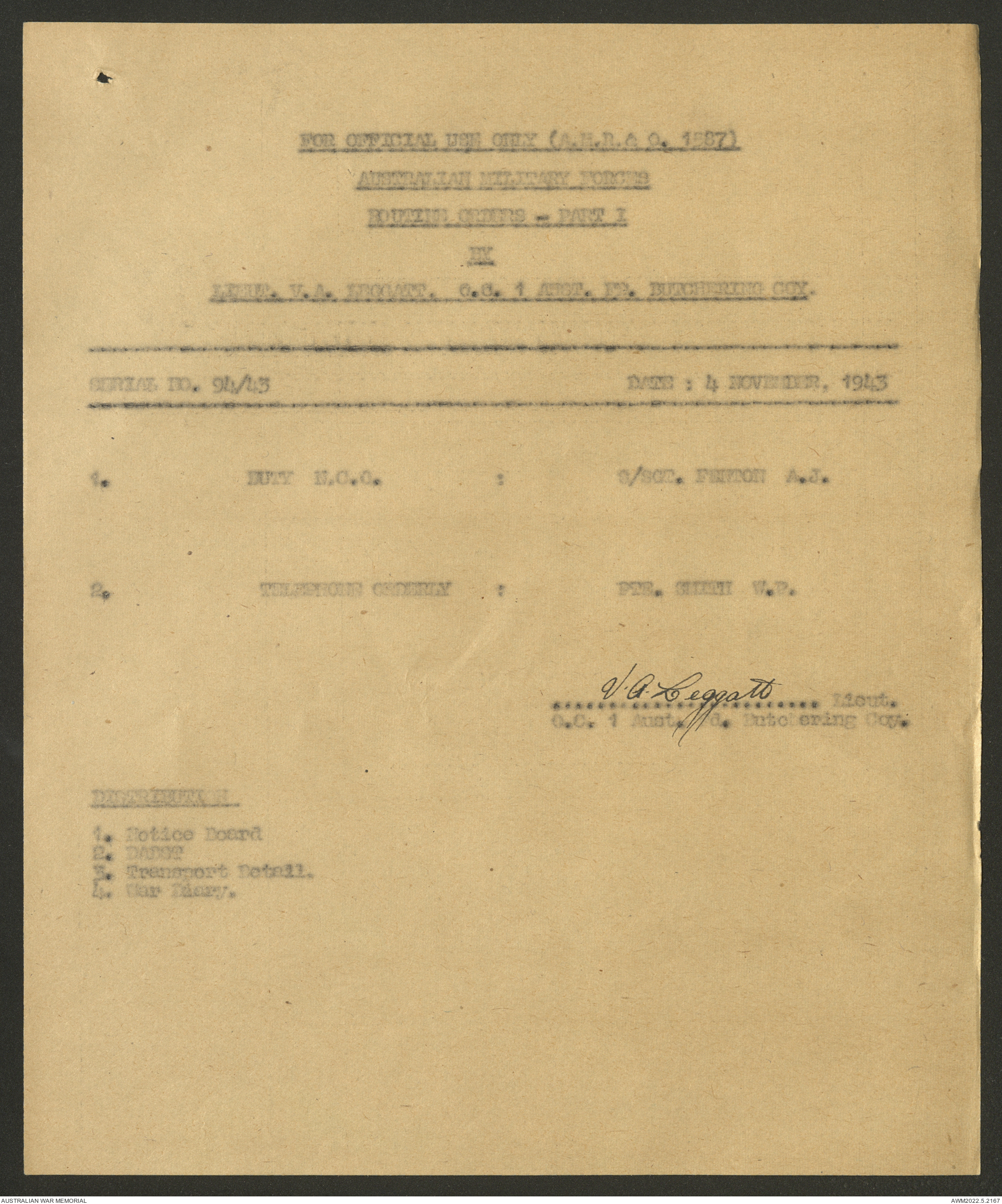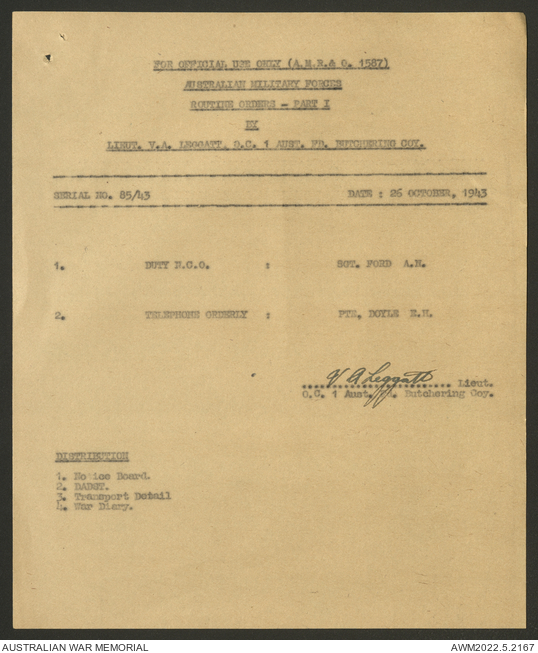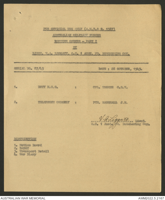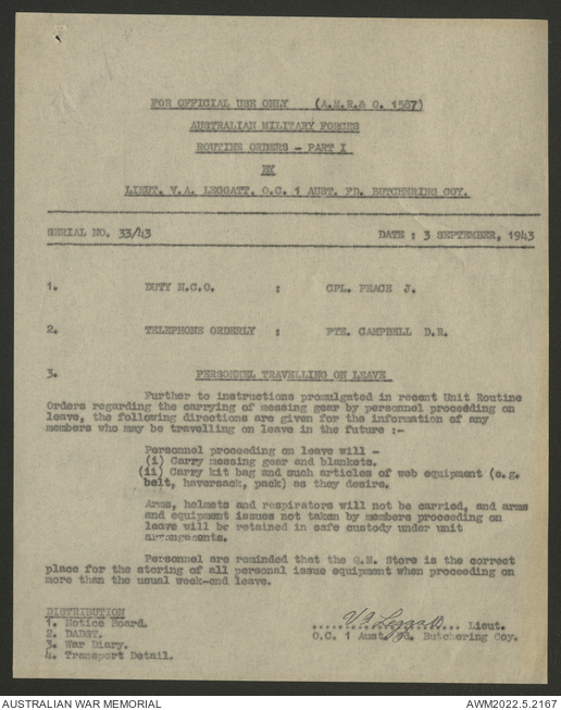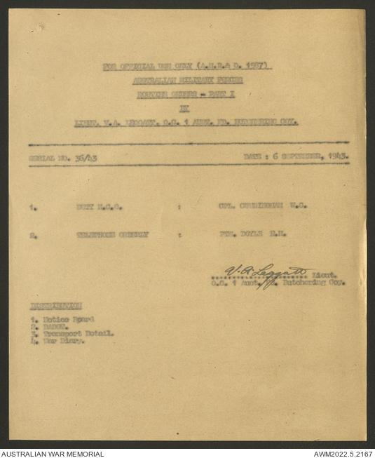 AWM52 10/28/1/2 - [Unit War Diaries, 1939-45 War] 1 Australian Field Butchering Company, September - November 1943