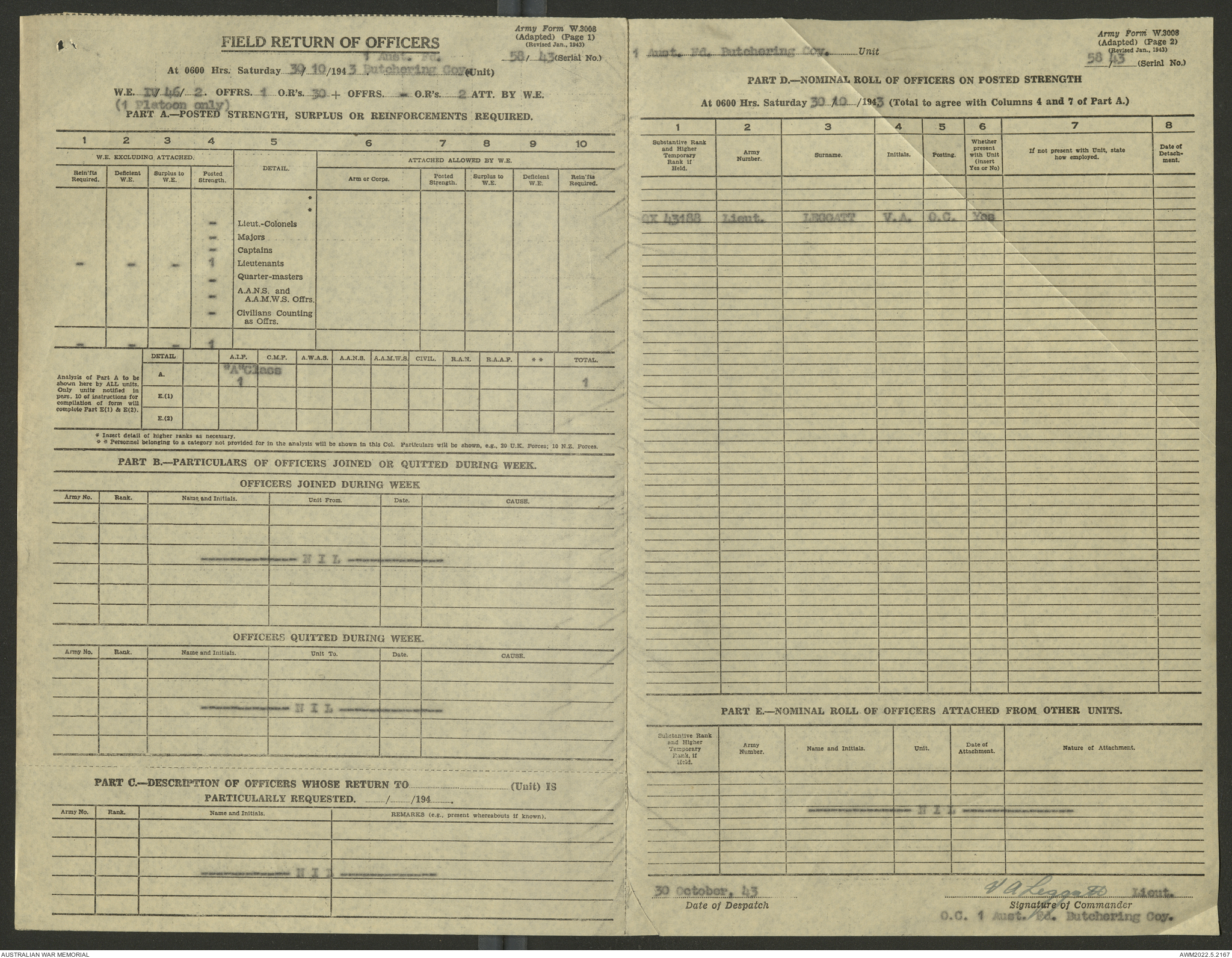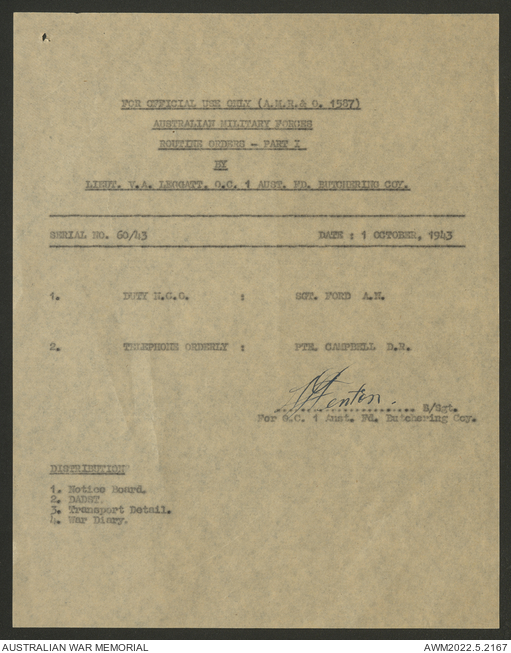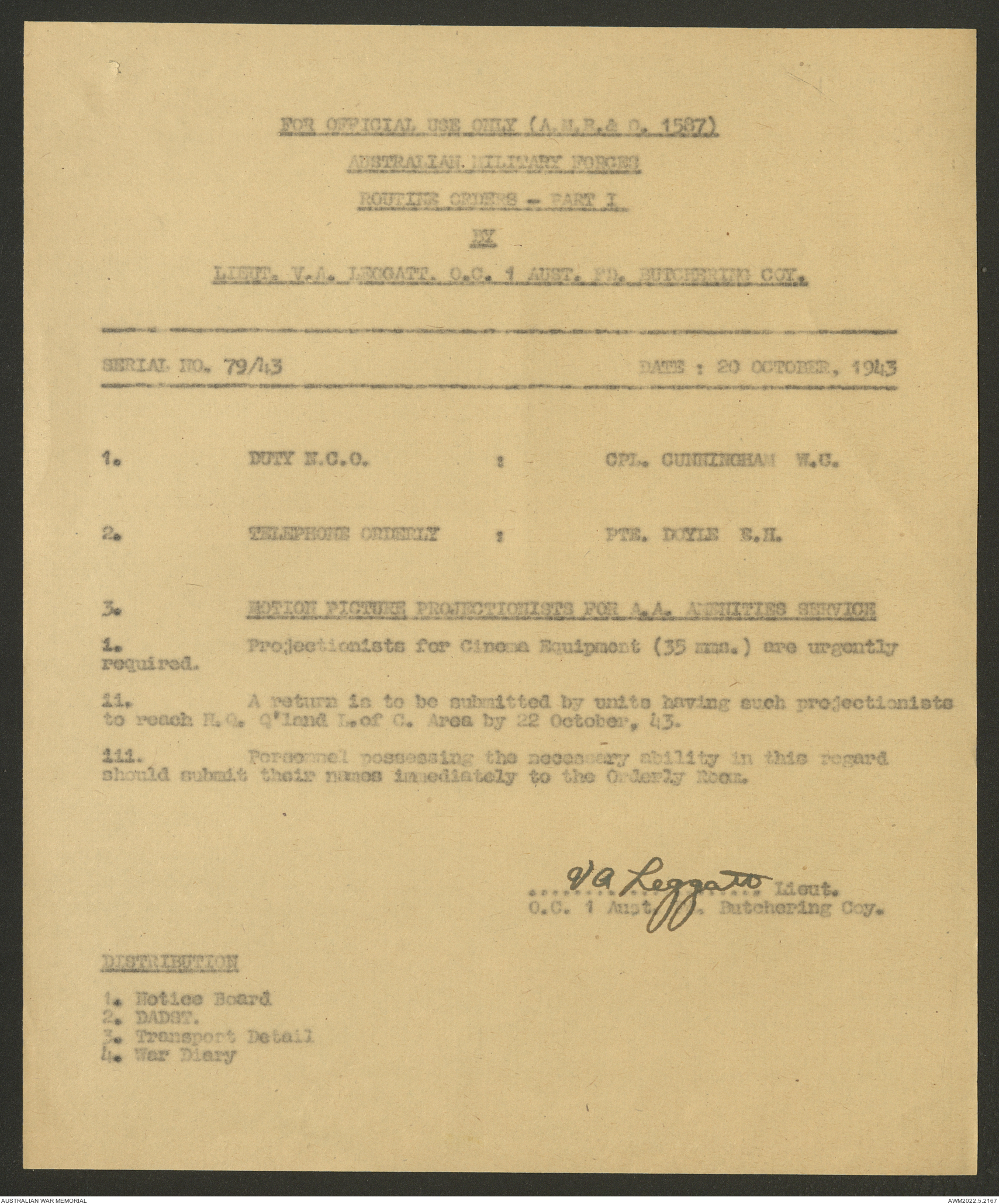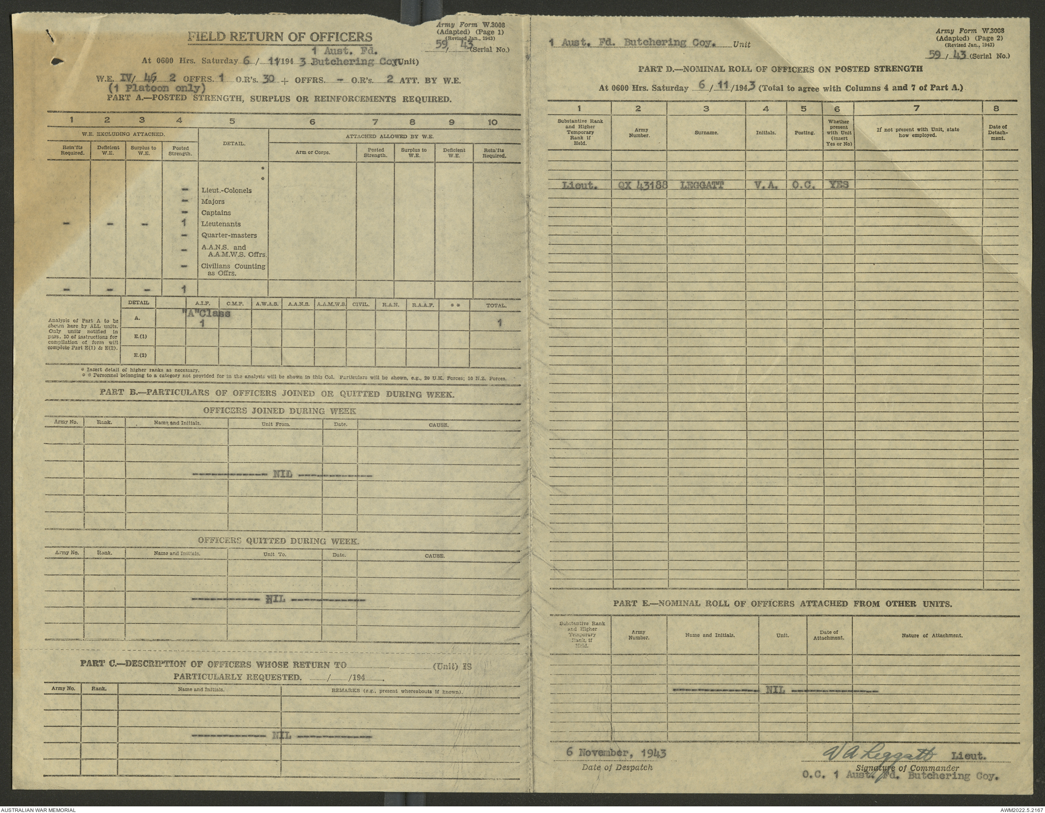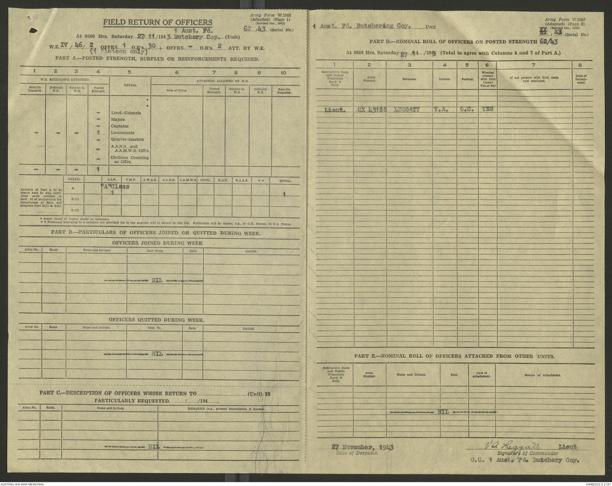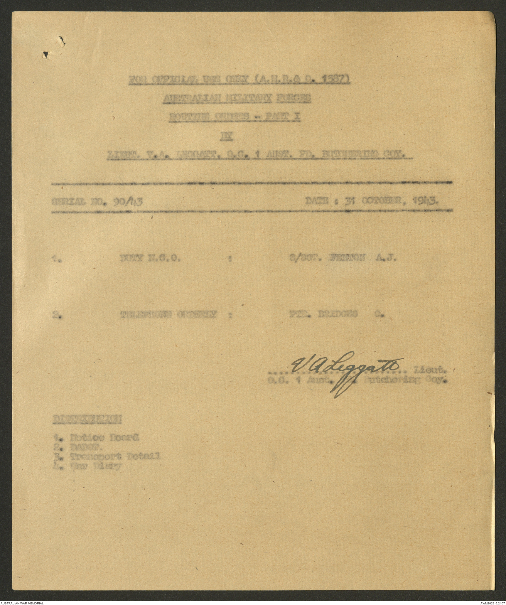 AWM52 10/28/1/2 - [Unit War Diaries, 1939-45 War] 1 Australian Field Butchering Company, September - November 1943