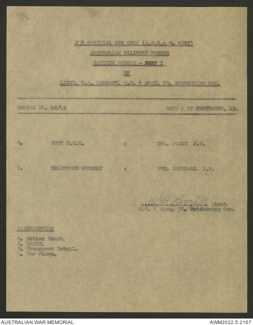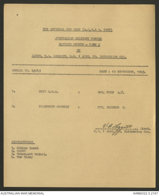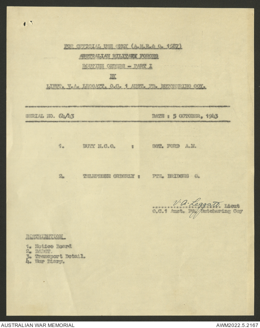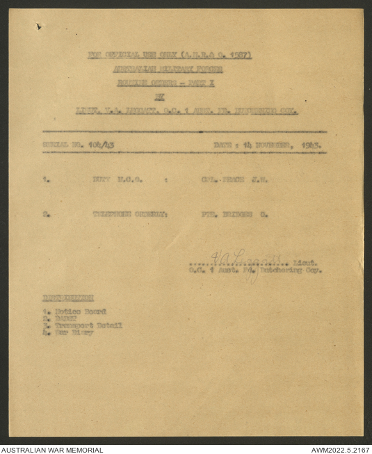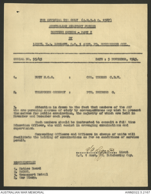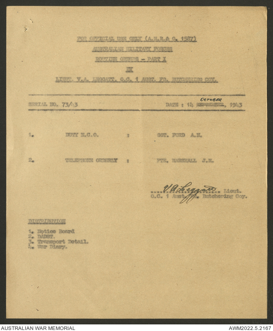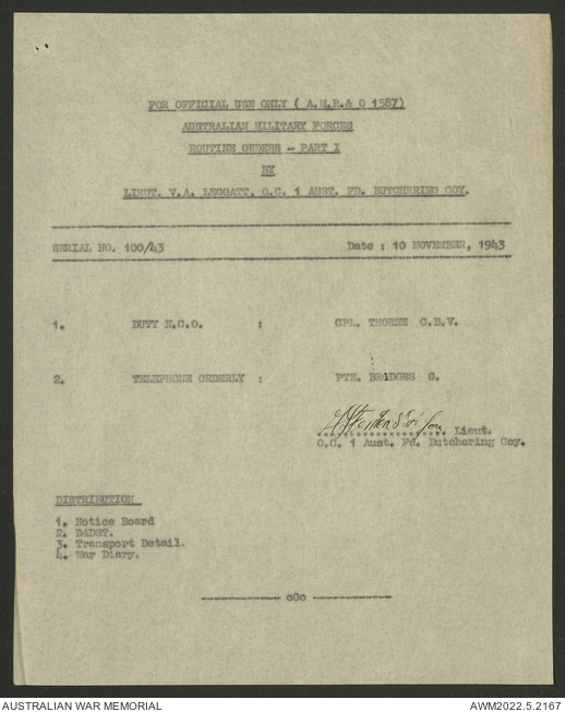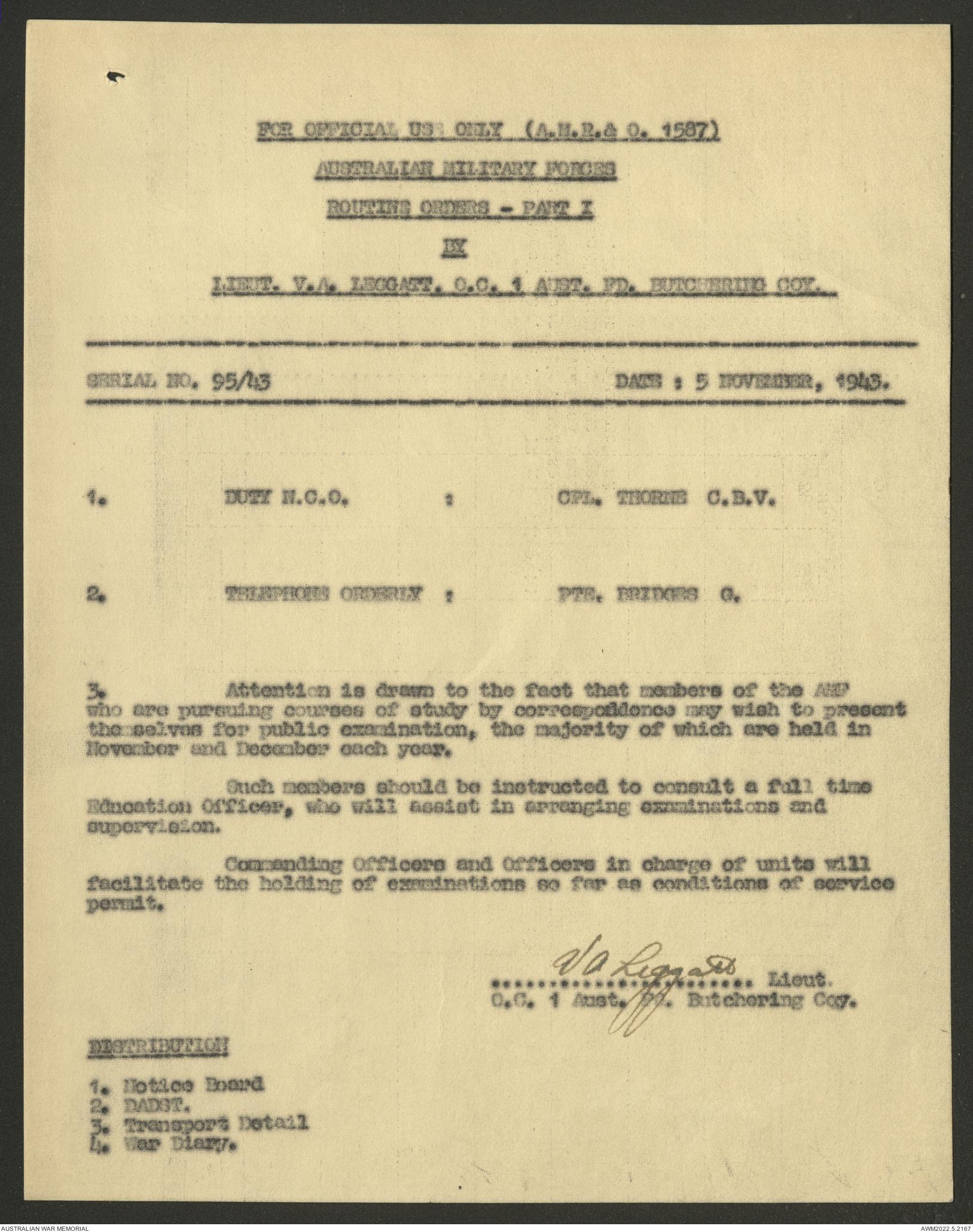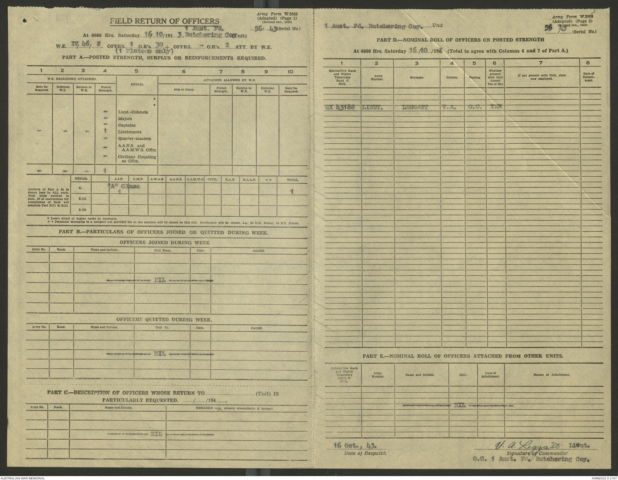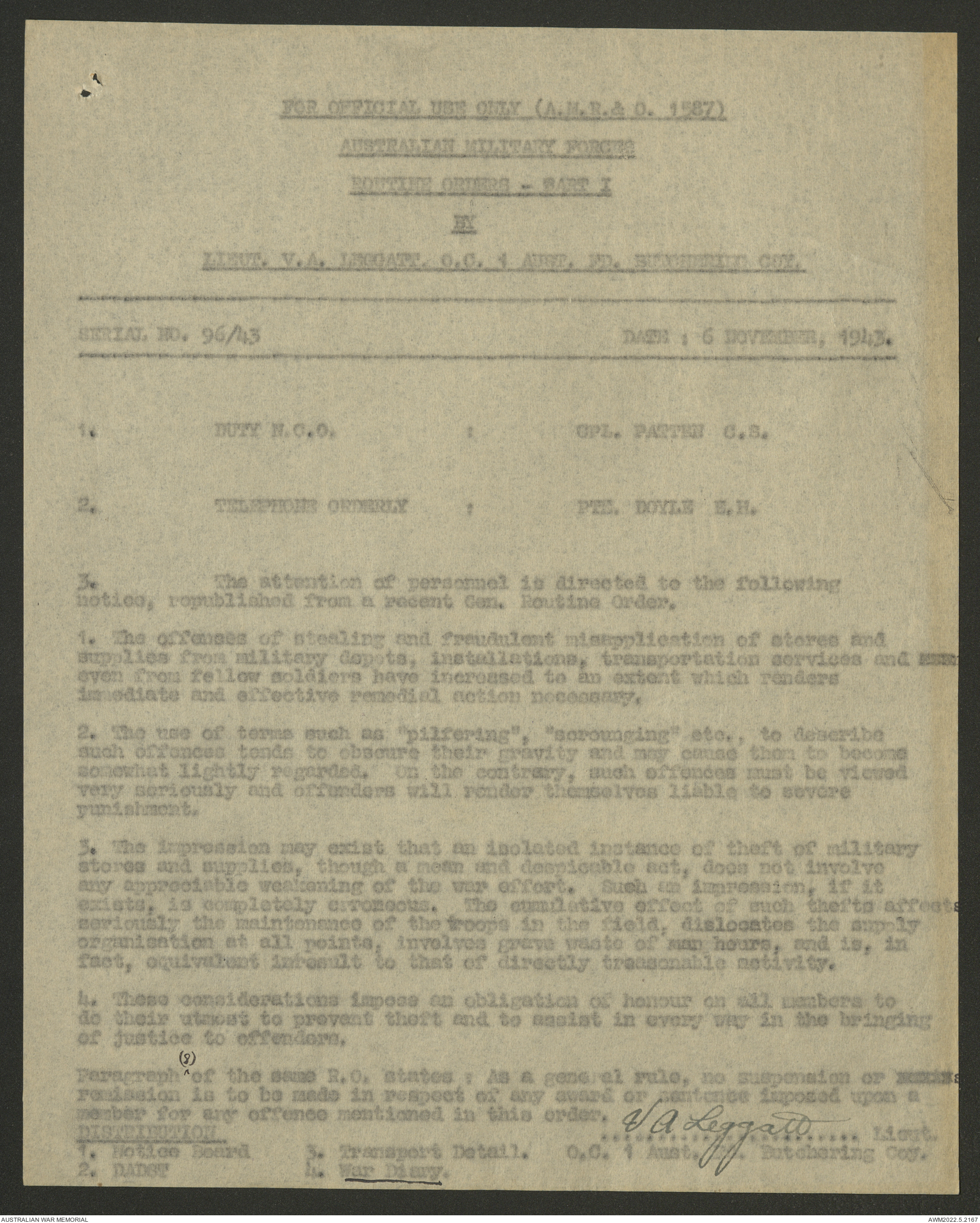 AWM52 10/28/1/2 - [Unit War Diaries, 1939-45 War] 1 Australian Field Butchering Company, September - November 1943
