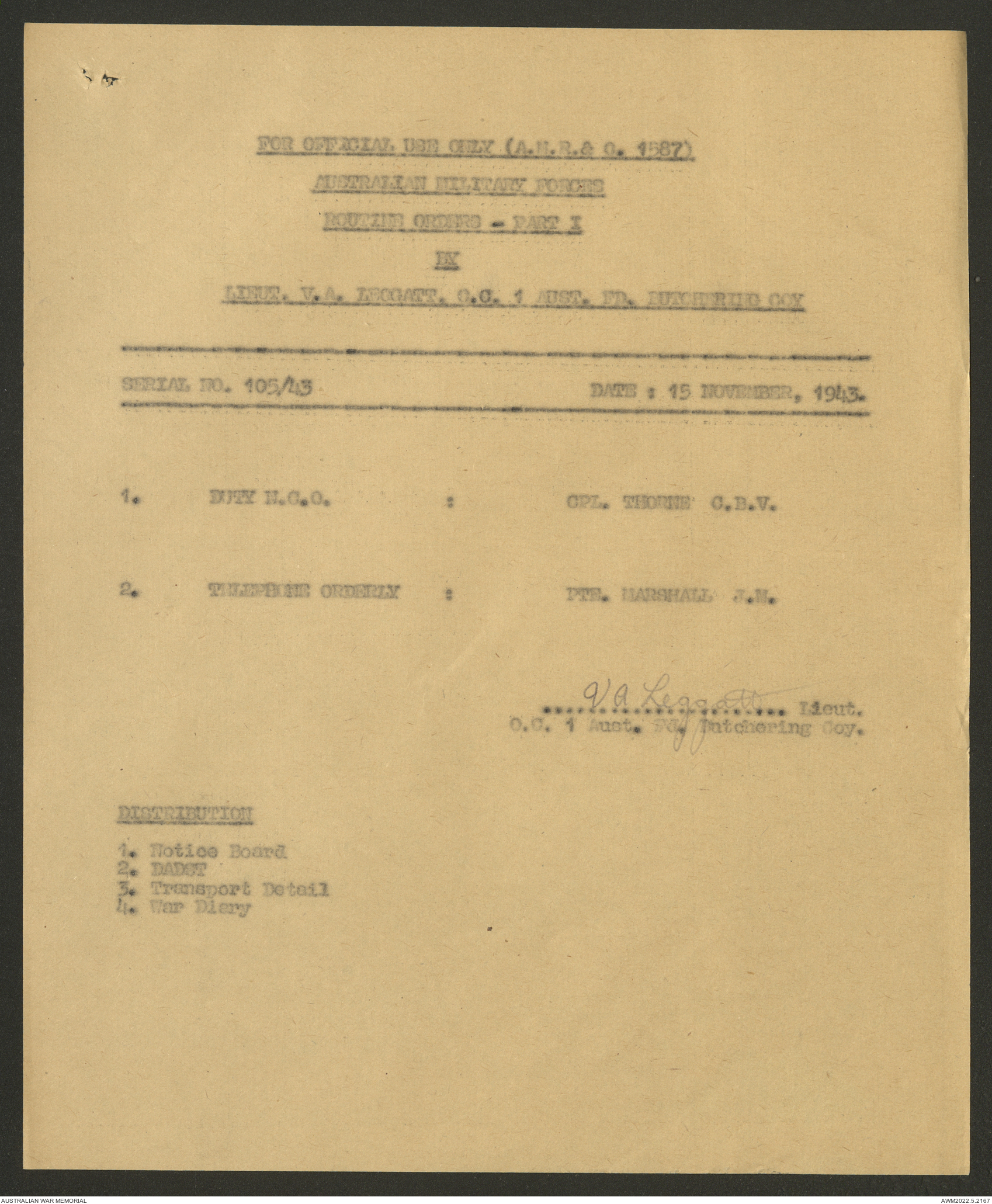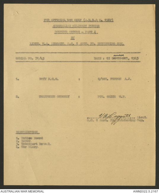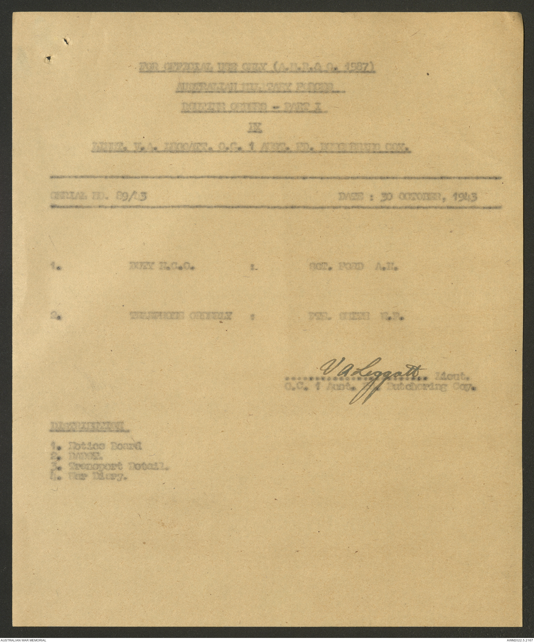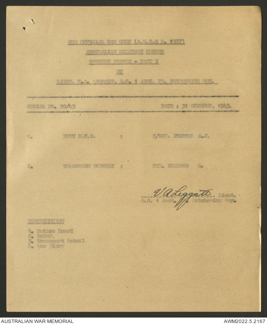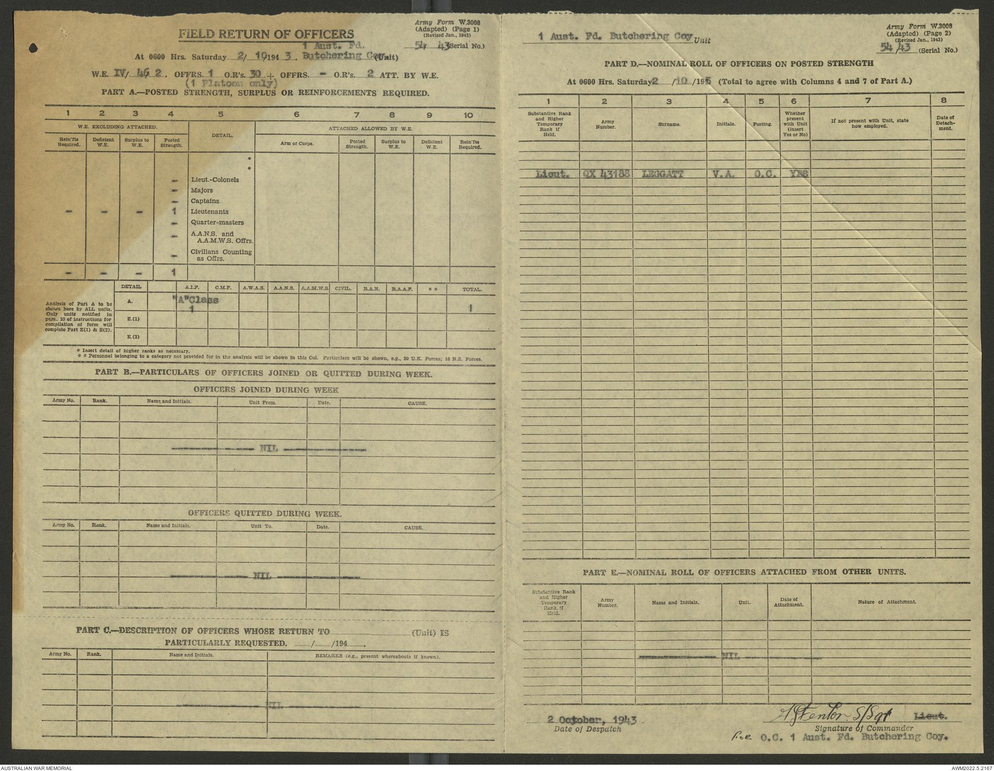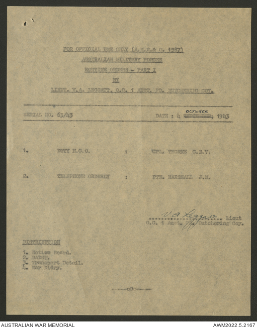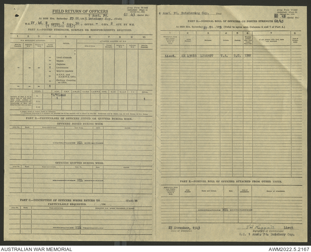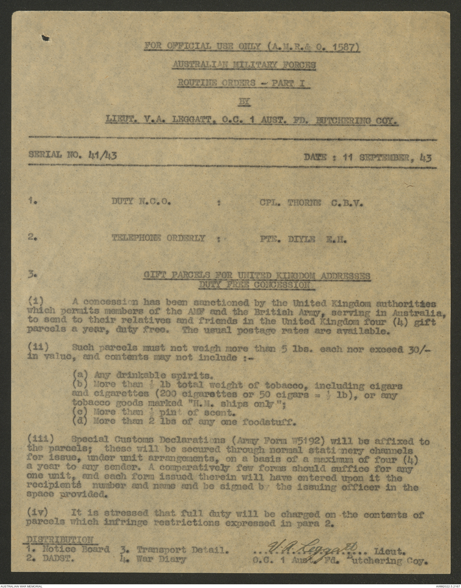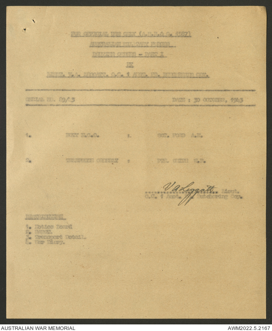 AWM52 10/28/1/2 - [Unit War Diaries, 1939-45 War] 1 Australian Field Butchering Company, September - November 1943