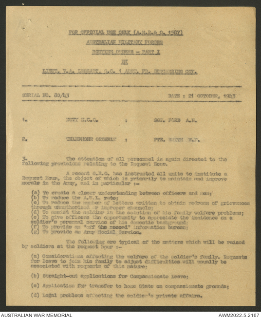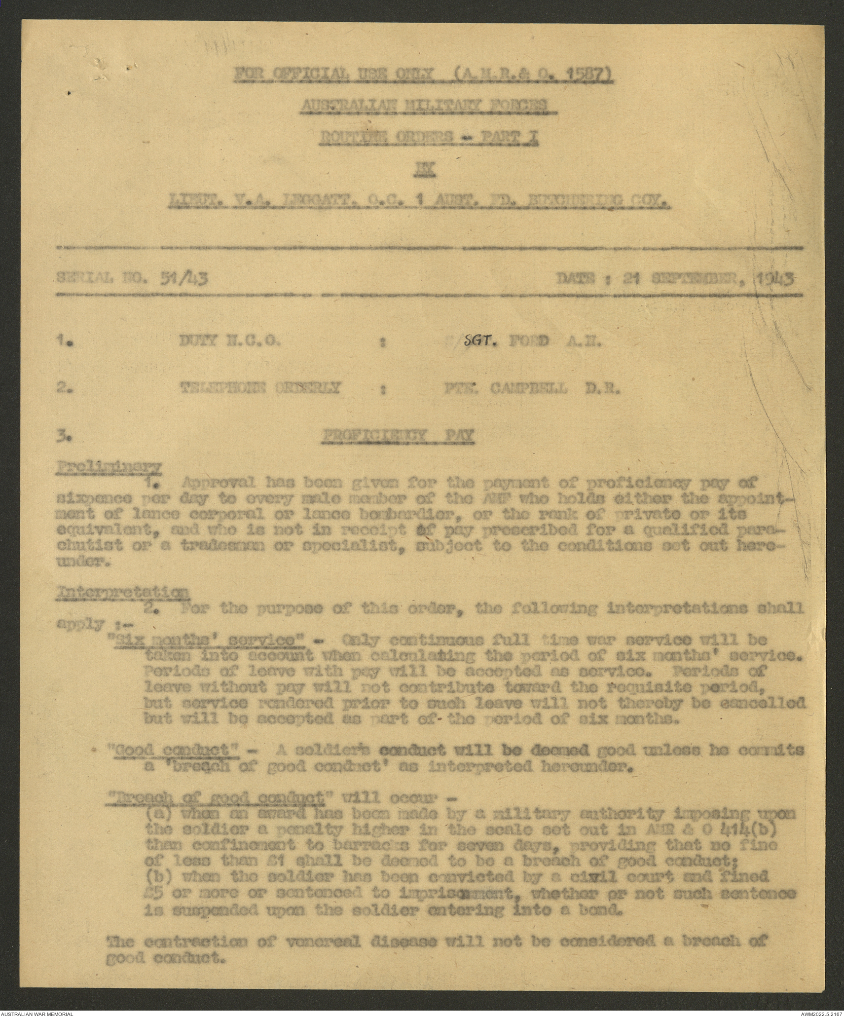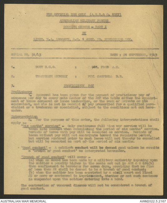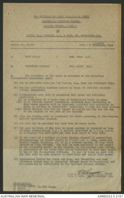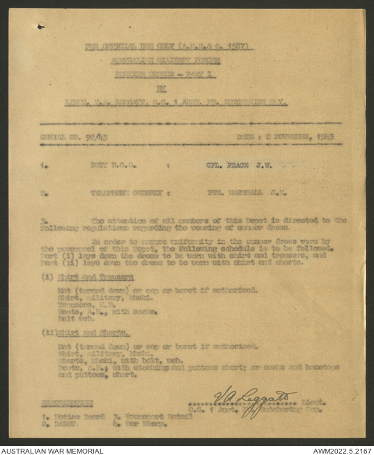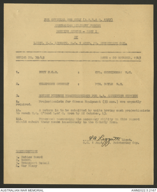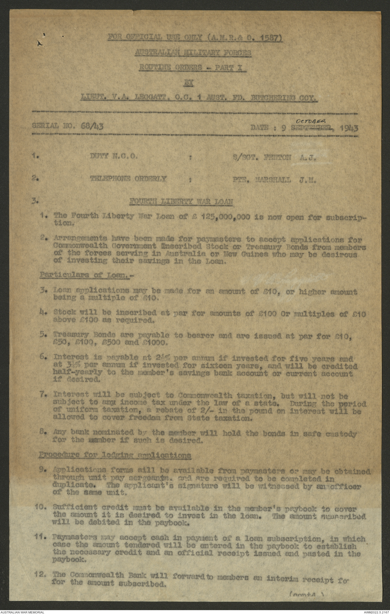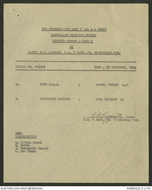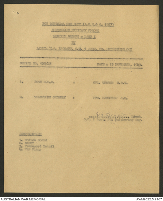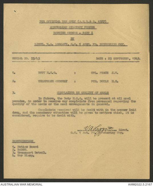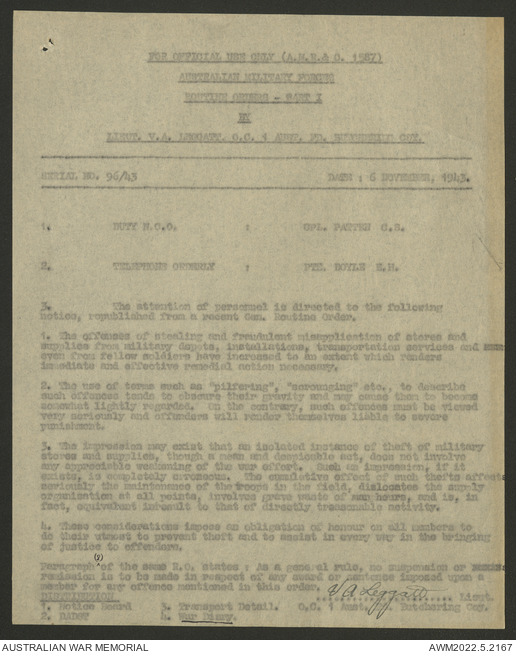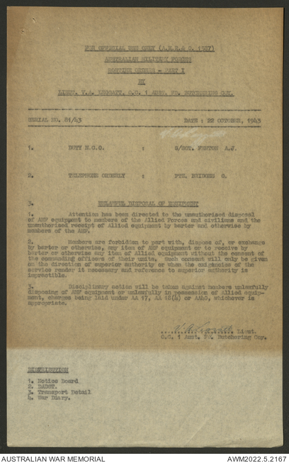 AWM52 10/28/1/2 - [Unit War Diaries, 1939-45 War] 1 Australian Field Butchering Company, September - November 1943