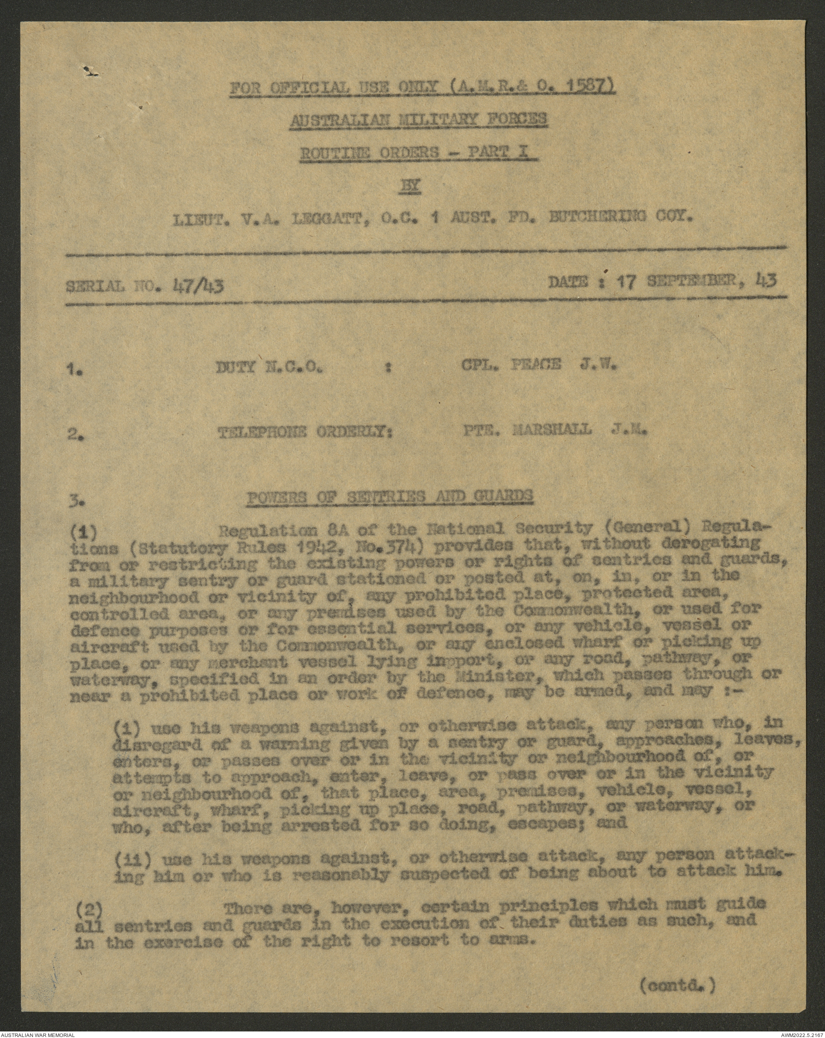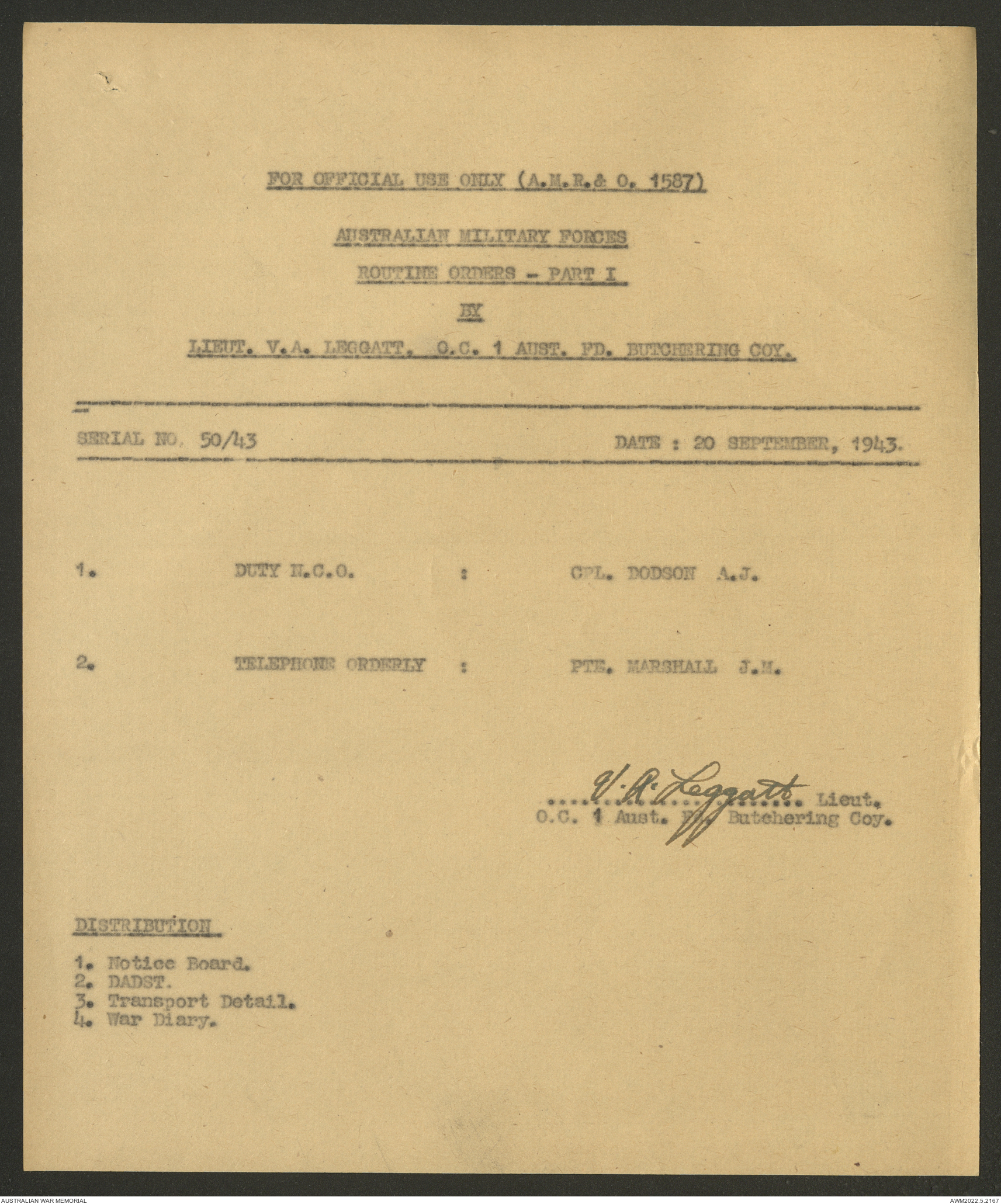 - AWM52 10/28/1 - 1 Australian Field Butchering Company