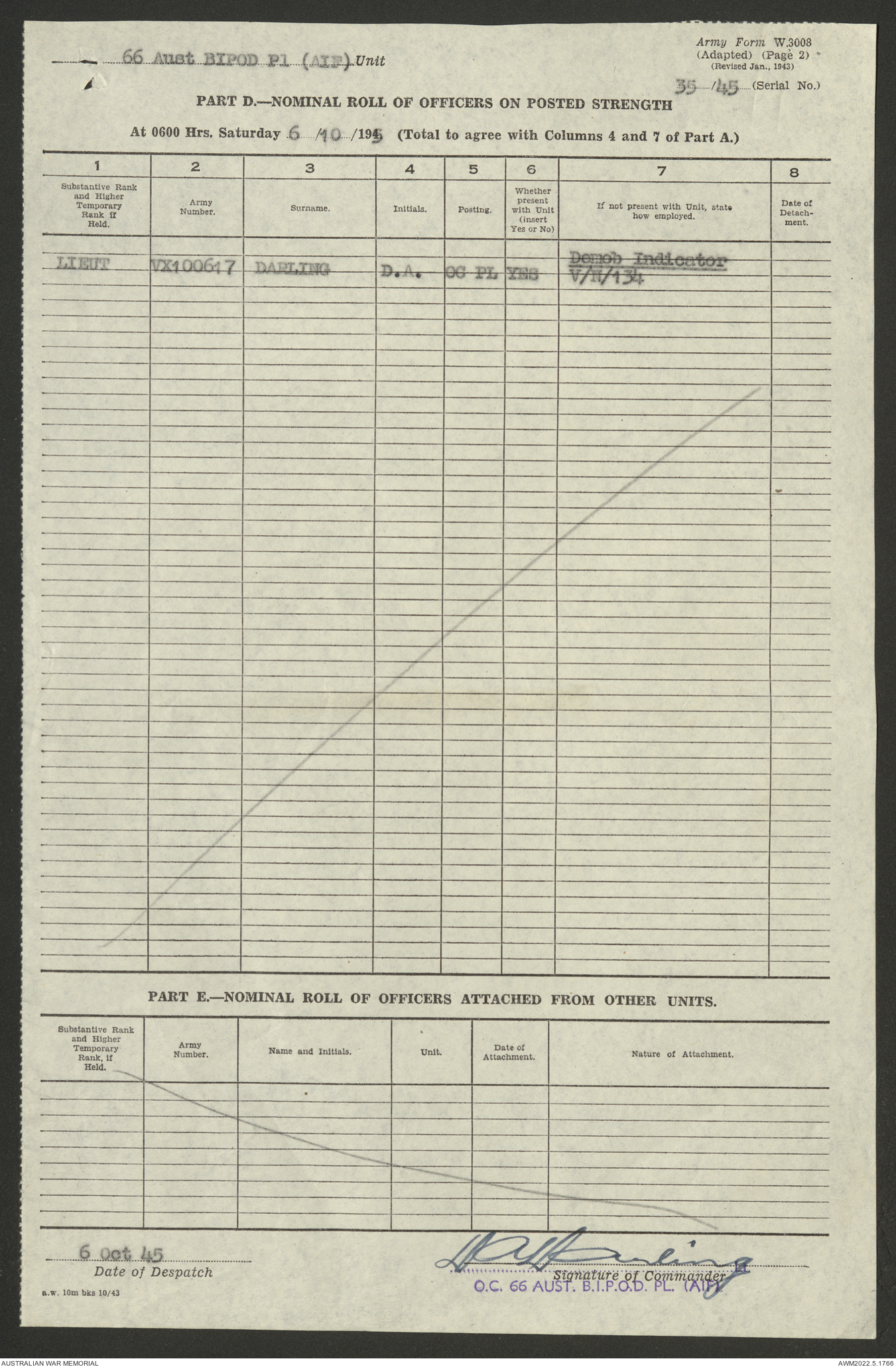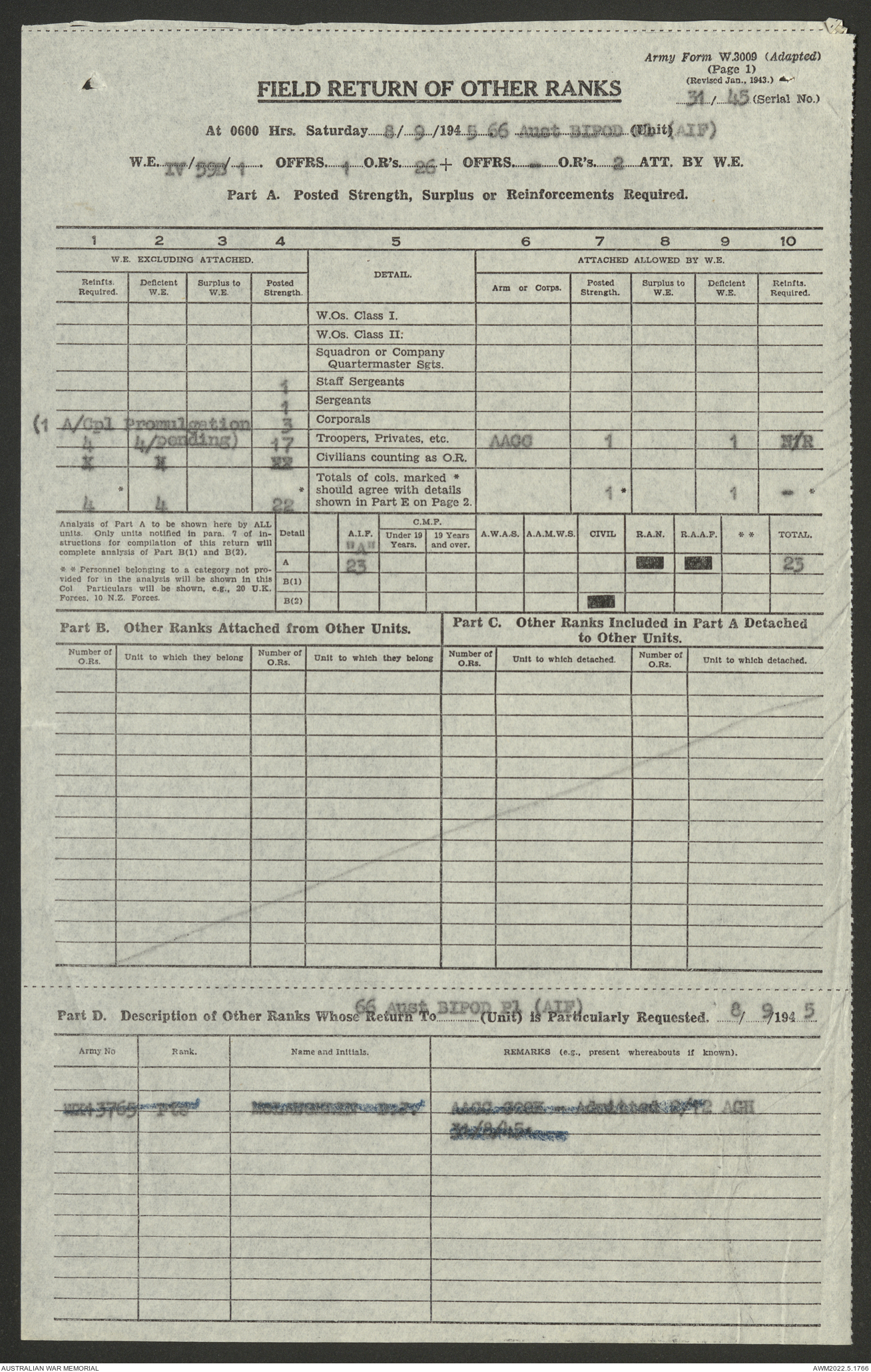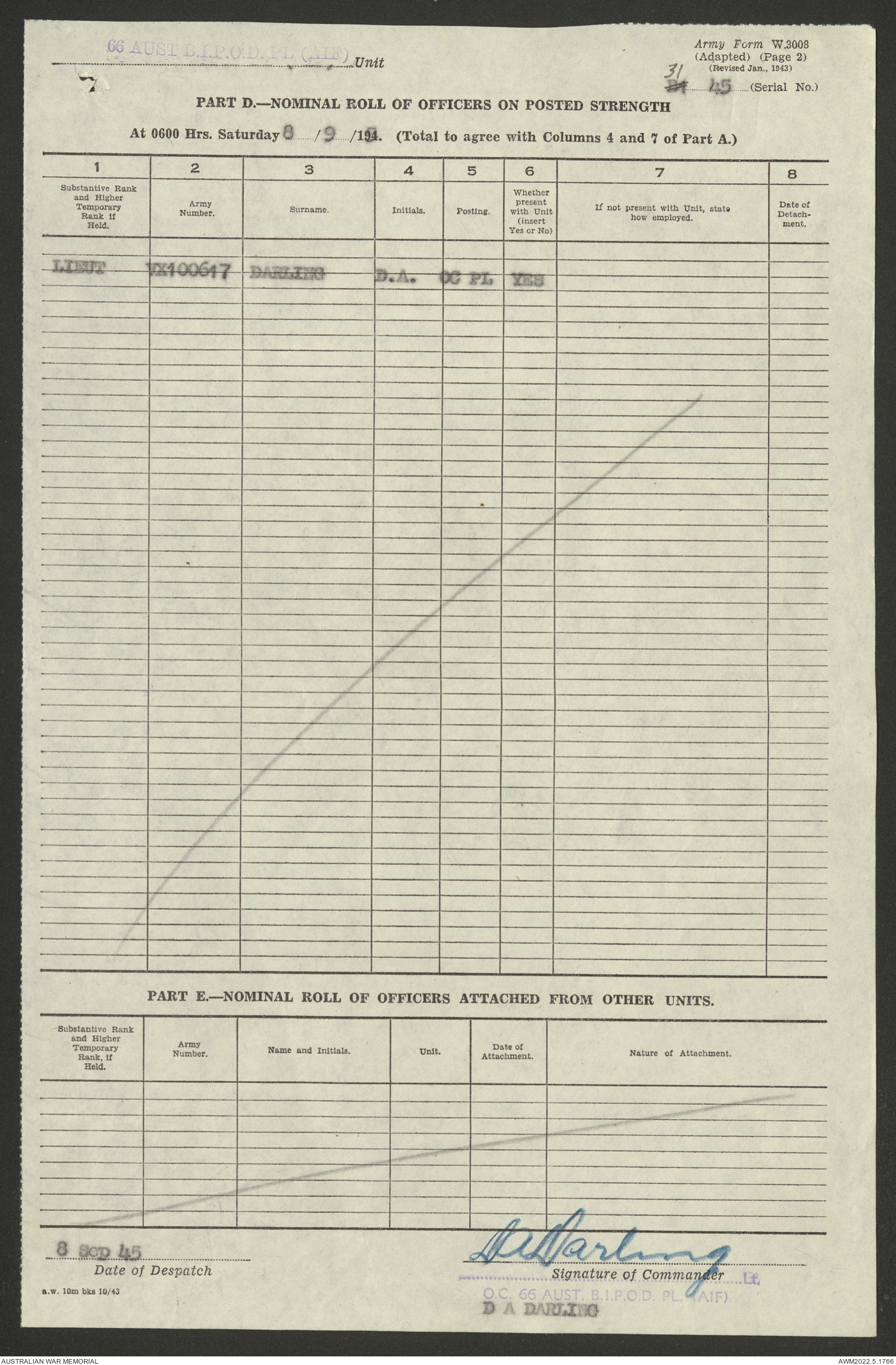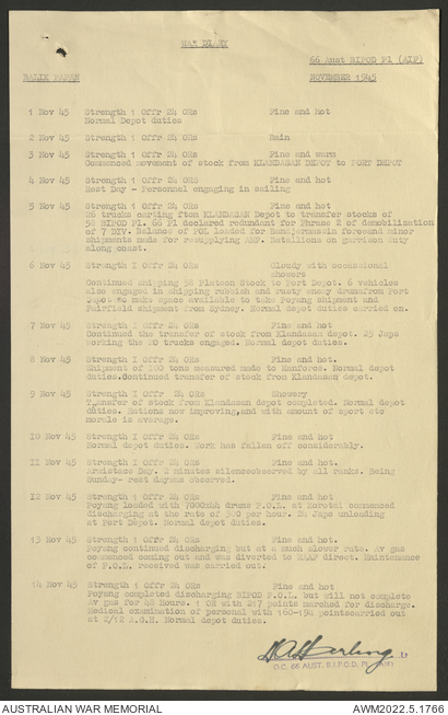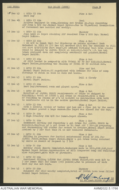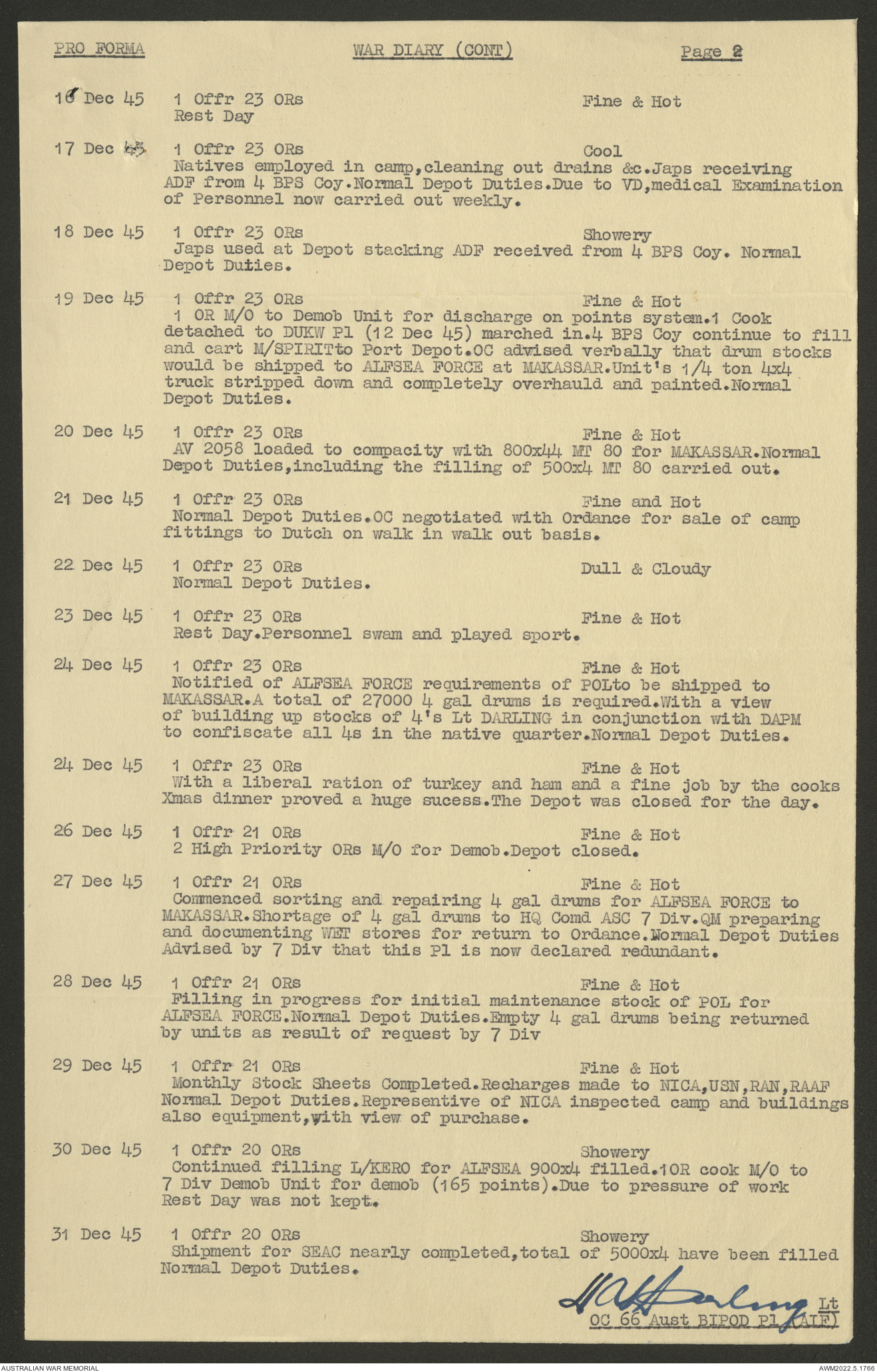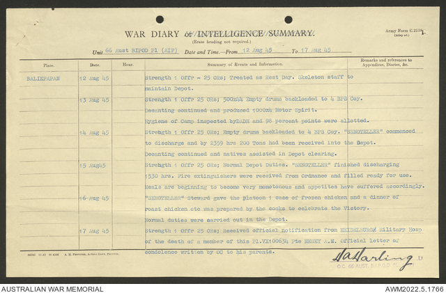 AWM52 10/19/36/1 - [Unit War Diaries, 1939-45 War] 66 Australian BIPOD [Bulk Issue Petrol and Oil Depot] Platoon, May - December 1945