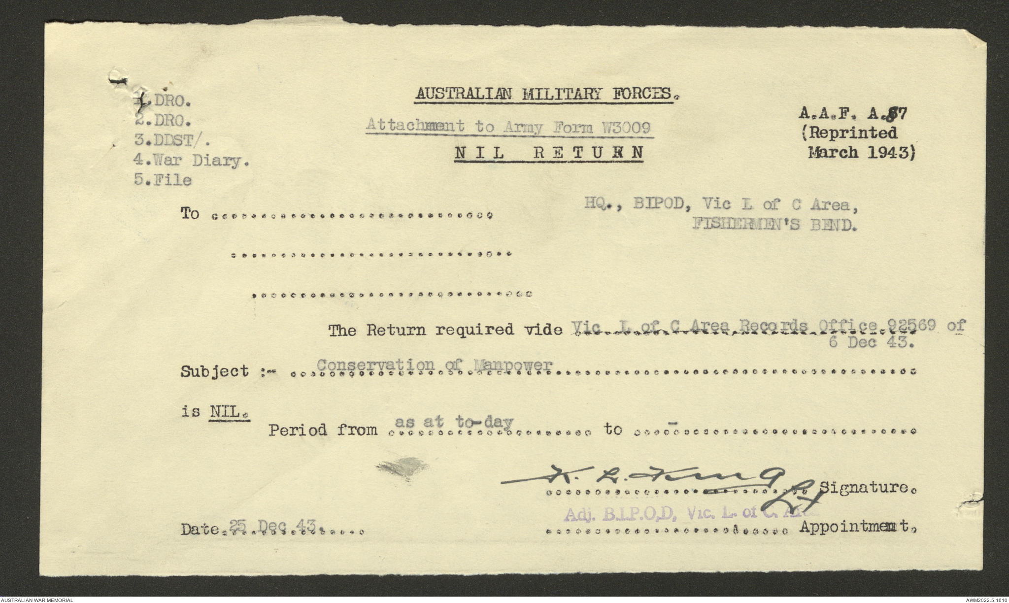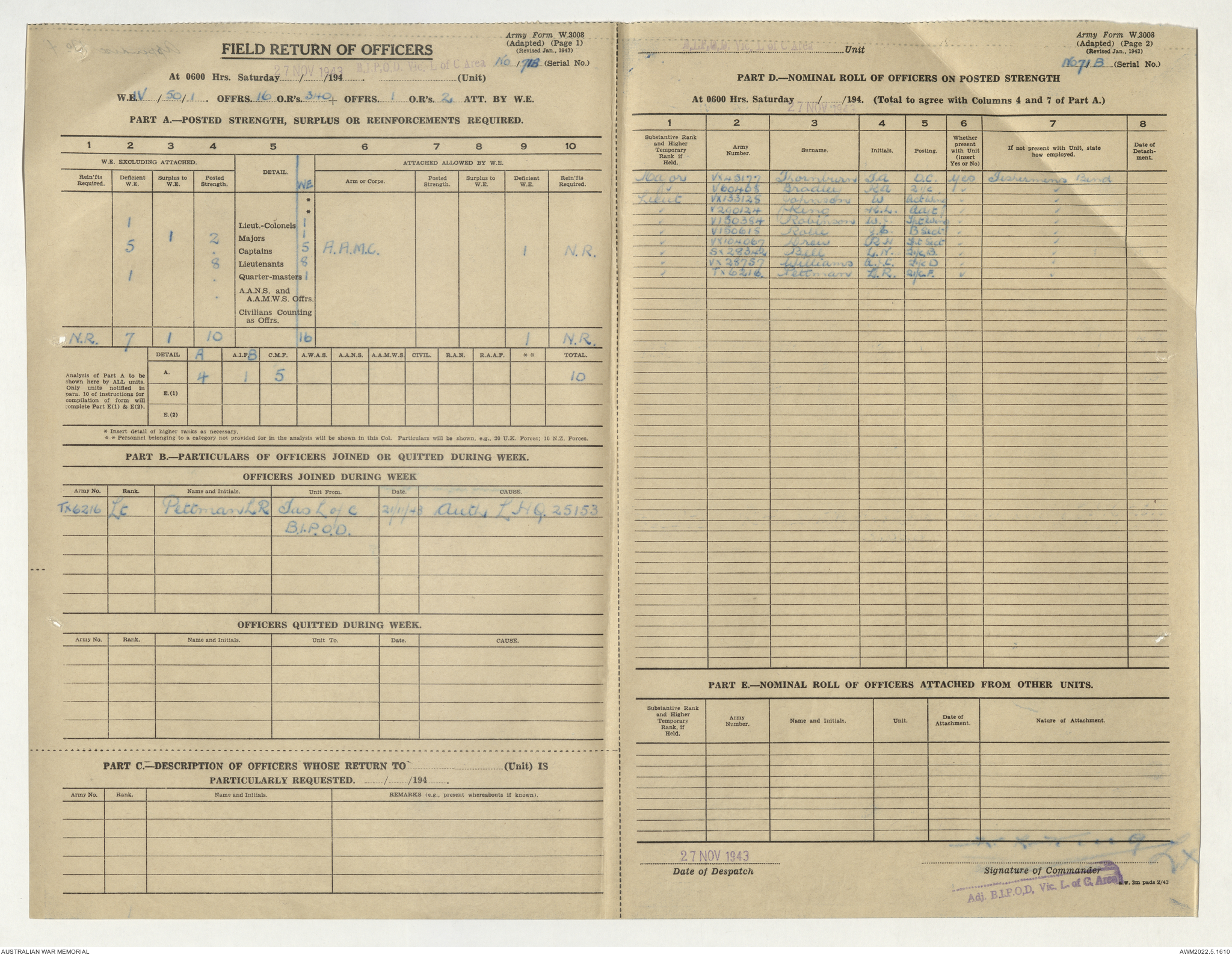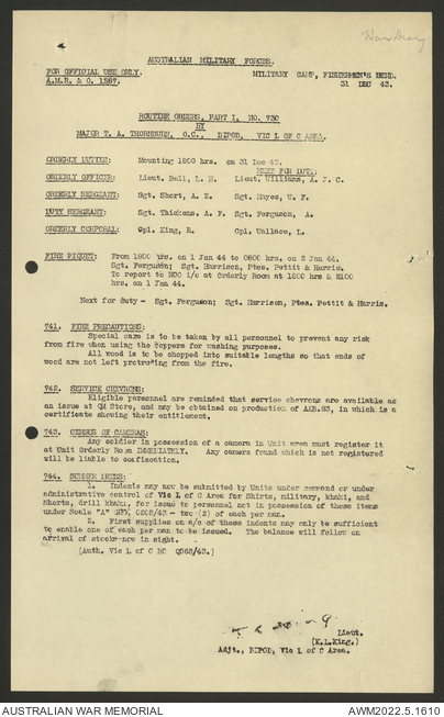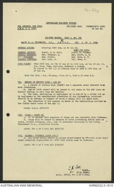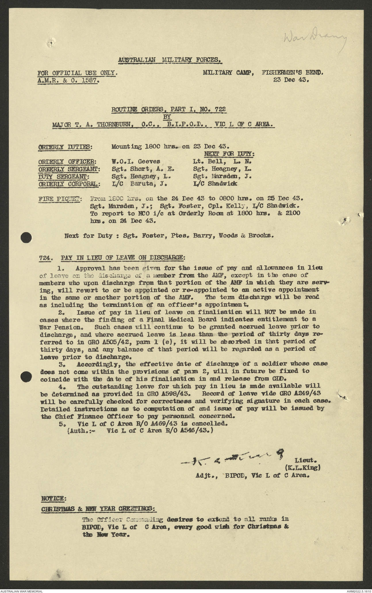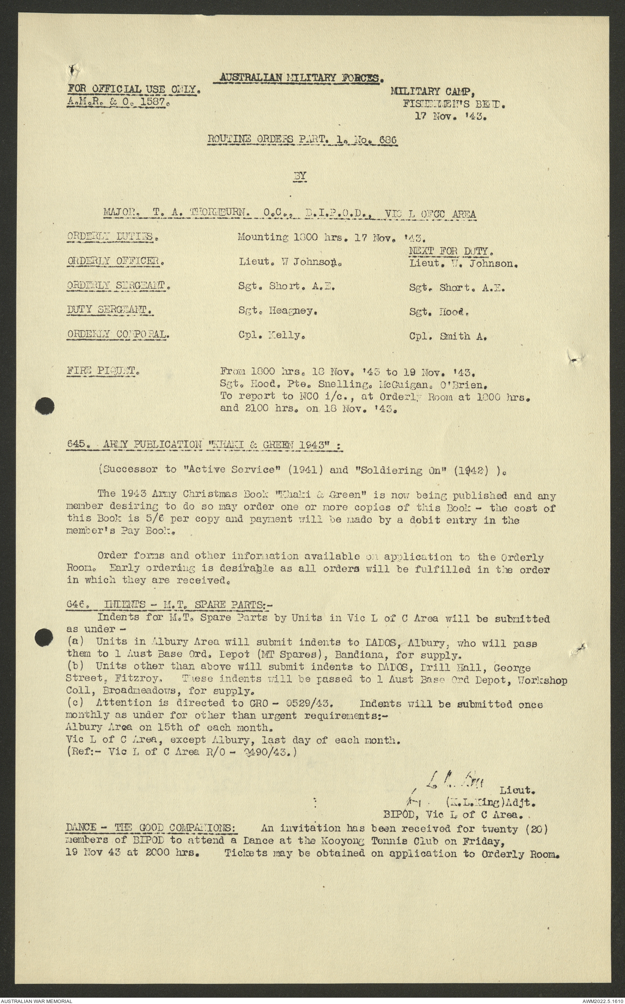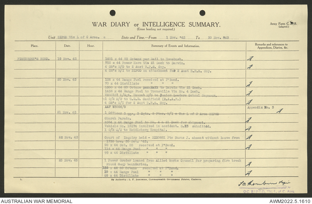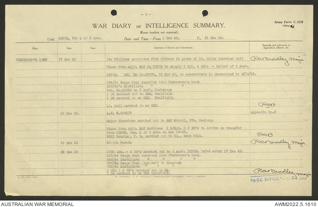 AWM52 10/19/5/12 - [Unit War Diaries, 1939-45 War] Victoria L of C [Lines of Communication] BIPOD [Bulk Issue Petrol and Oil Depot] November - December 1943