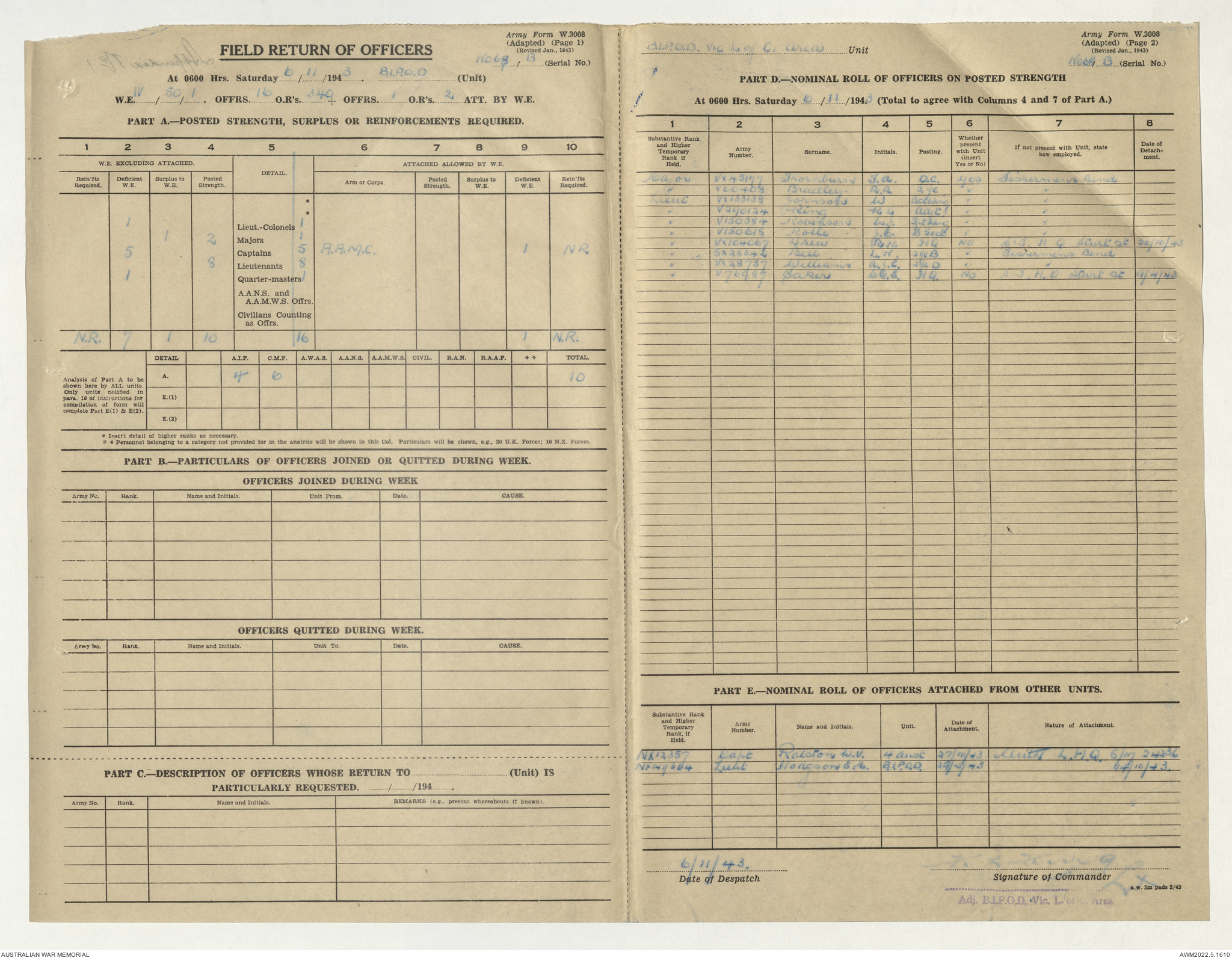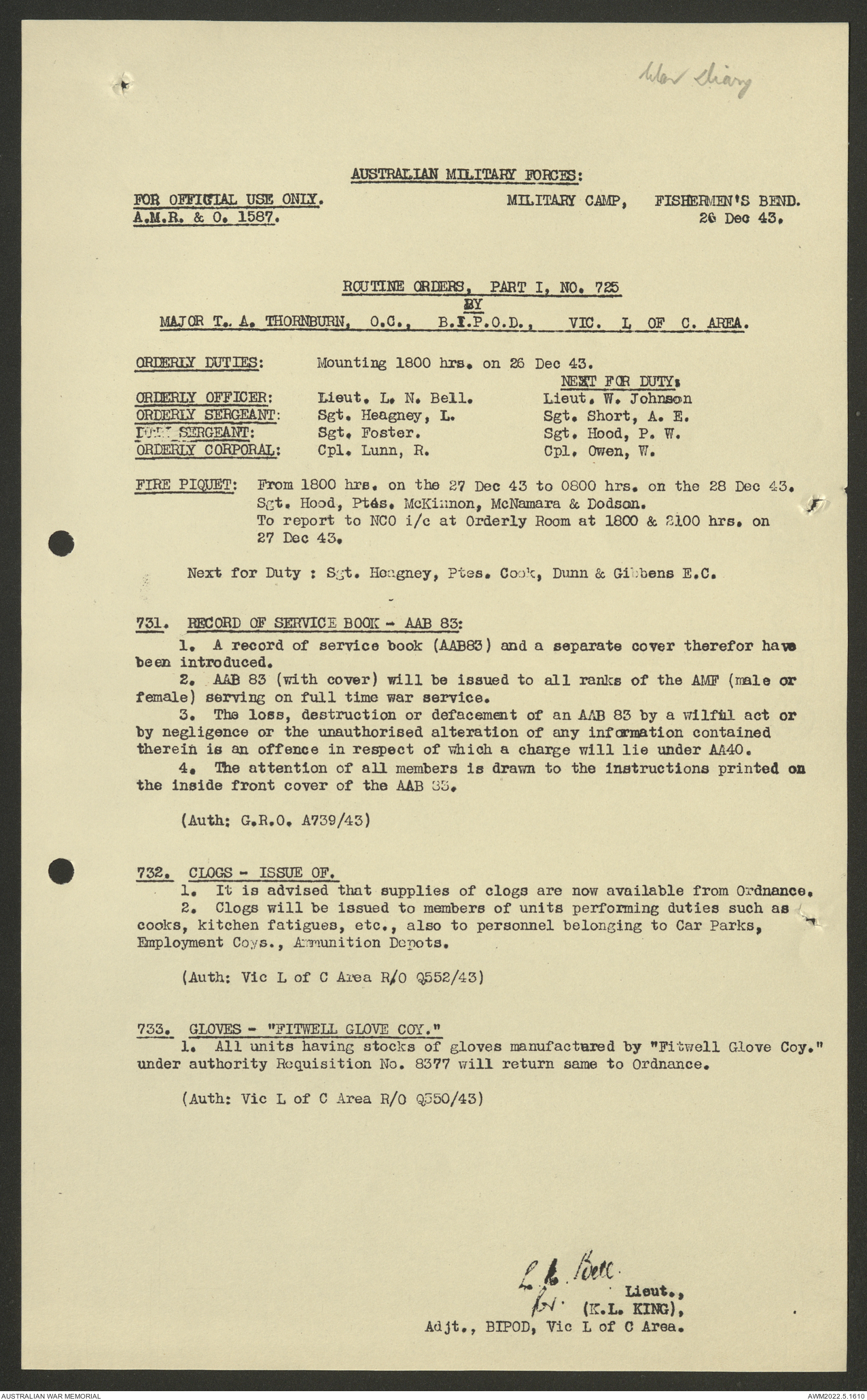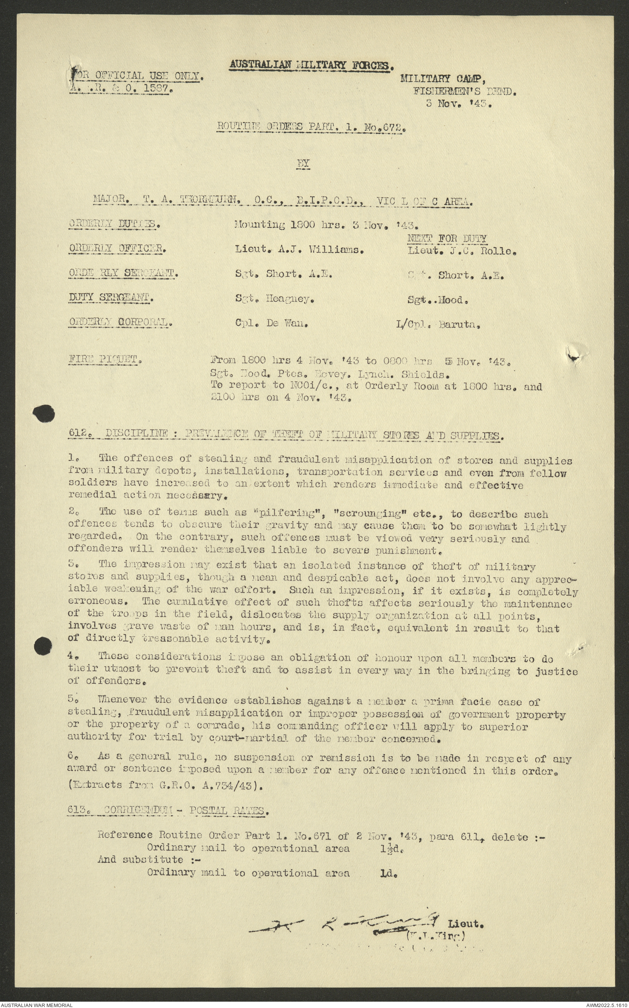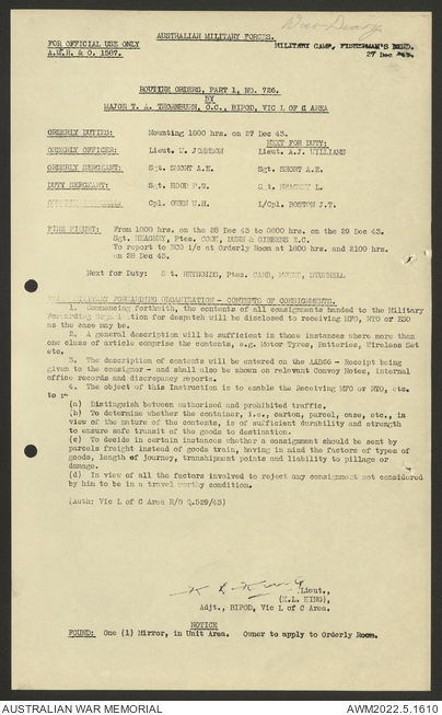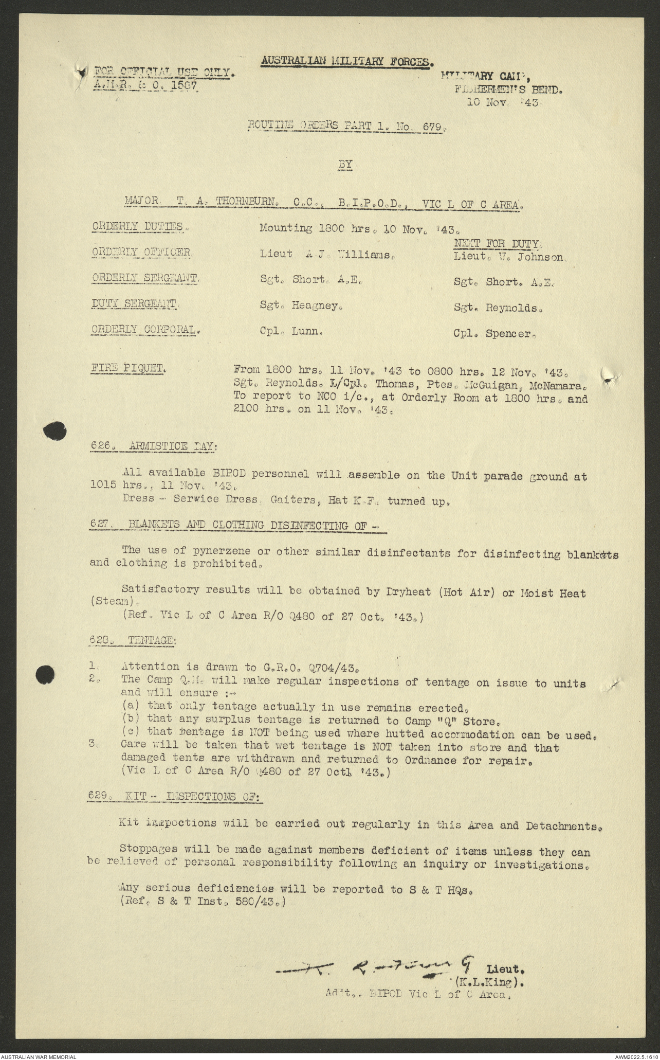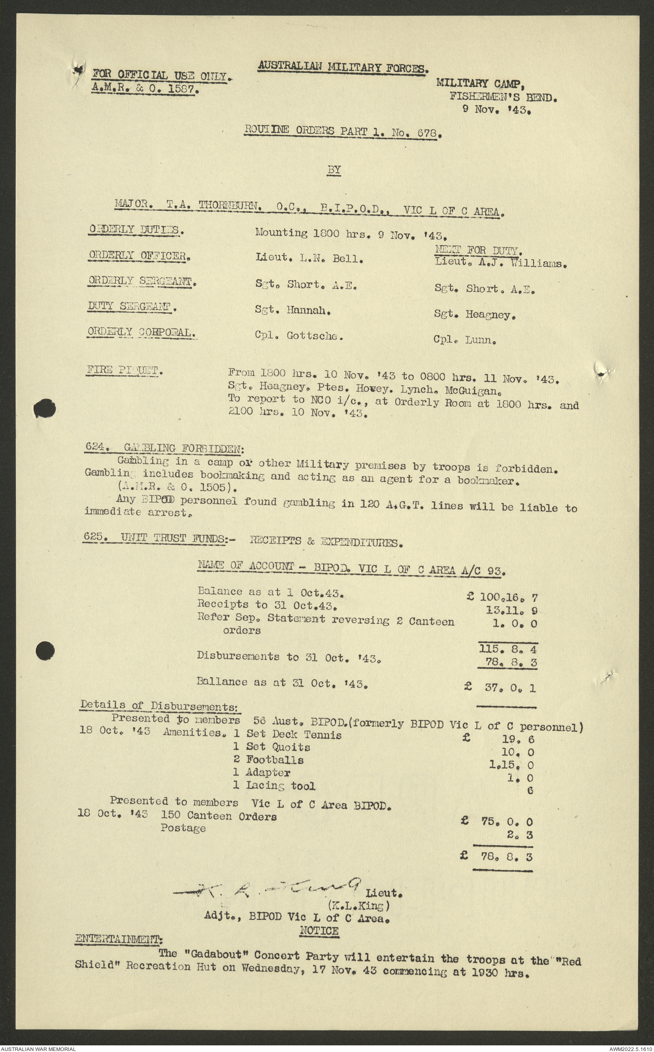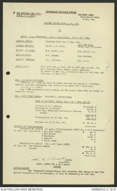AWM52 10/19/5/12 - [Unit War Diaries, 1939-45 War] Victoria L of C [Lines of Communication] BIPOD [Bulk Issue Petrol and Oil Depot] November - December 1943