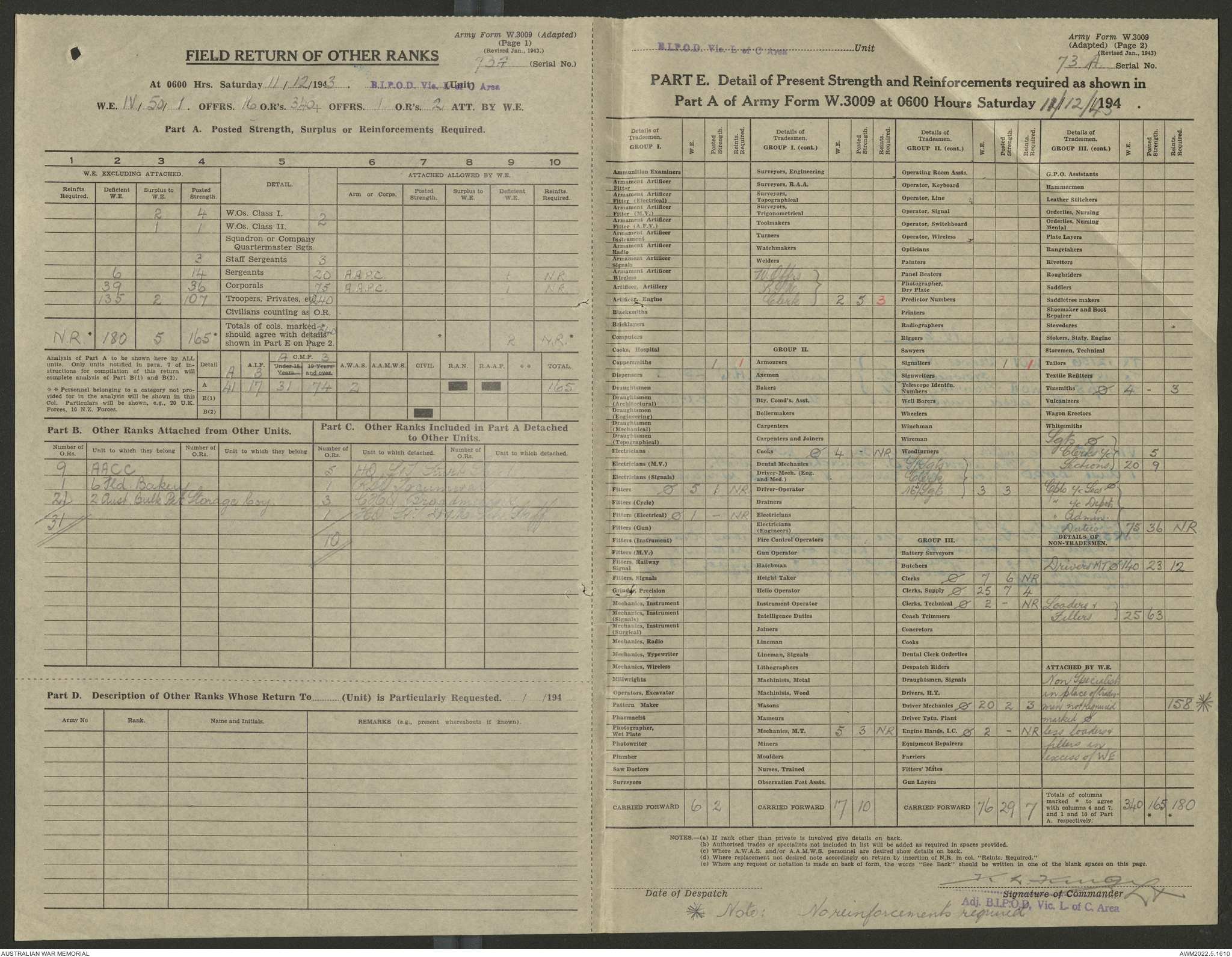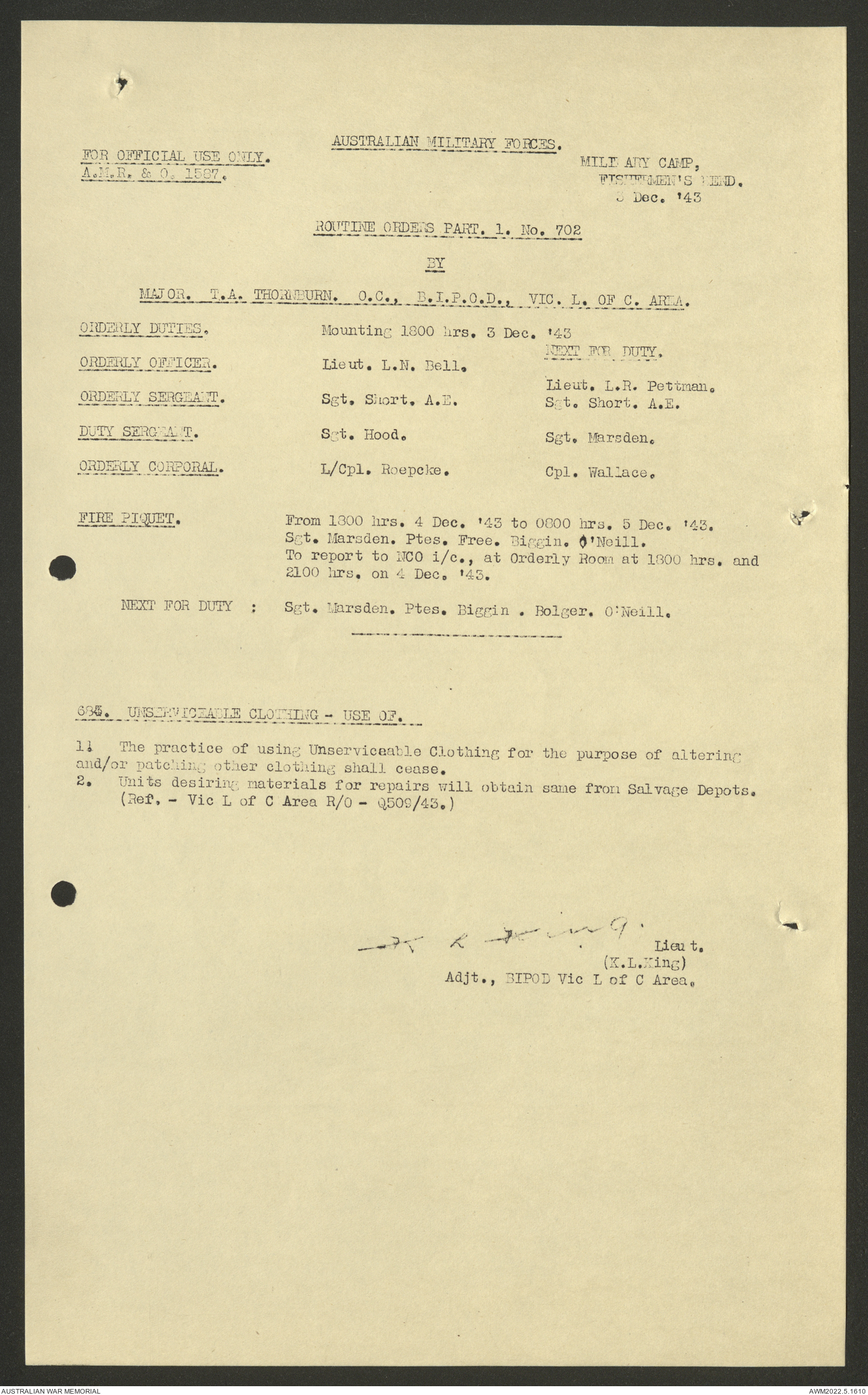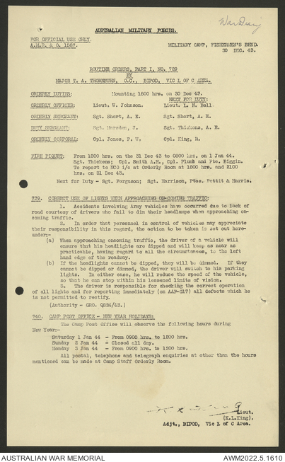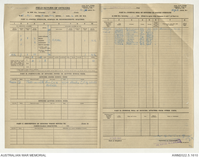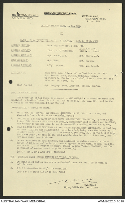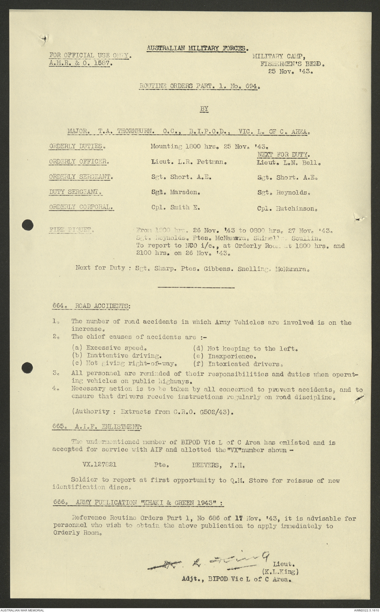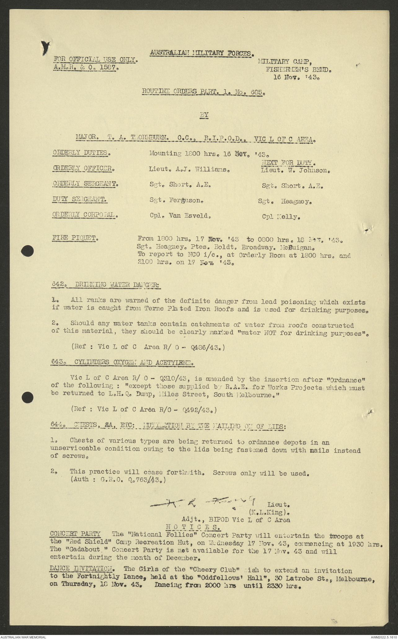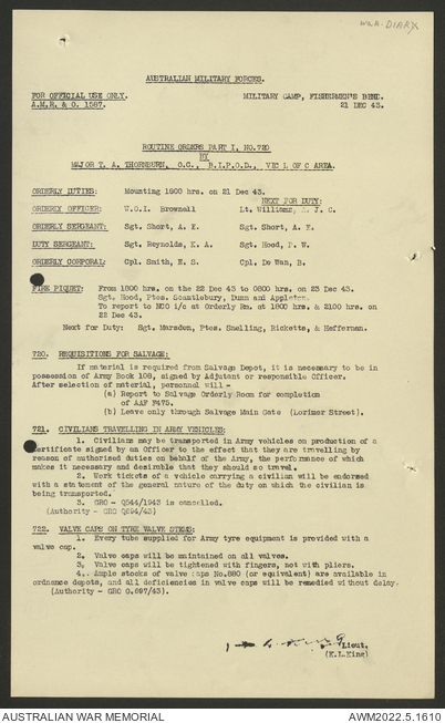 AWM52 10/19/5/12 - [Unit War Diaries, 1939-45 War] Victoria L of C [Lines of Communication] BIPOD [Bulk Issue Petrol and Oil Depot] November - December 1943