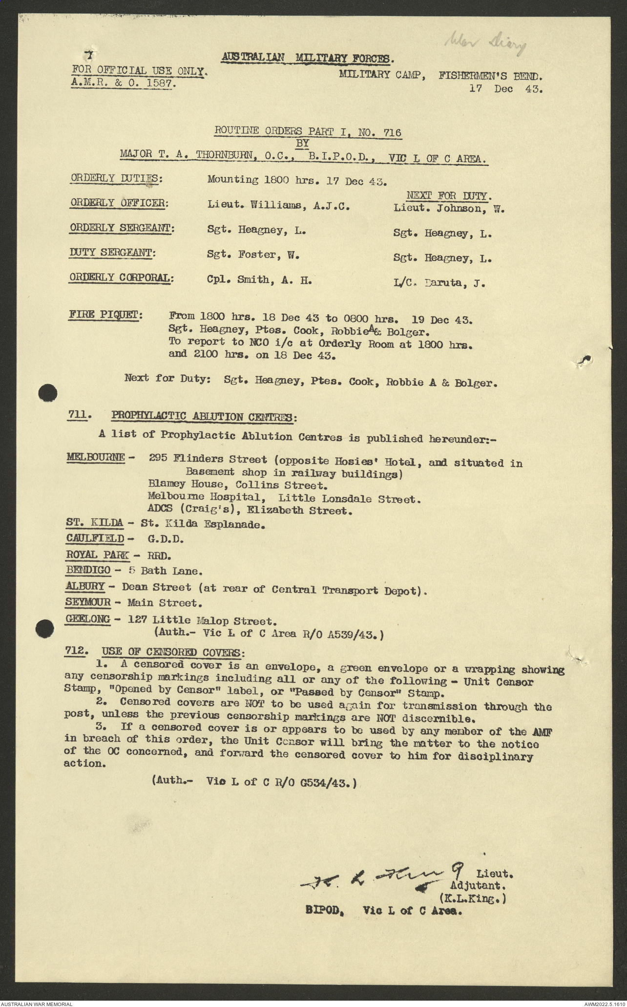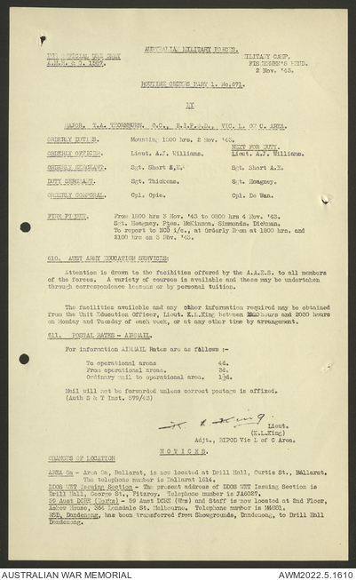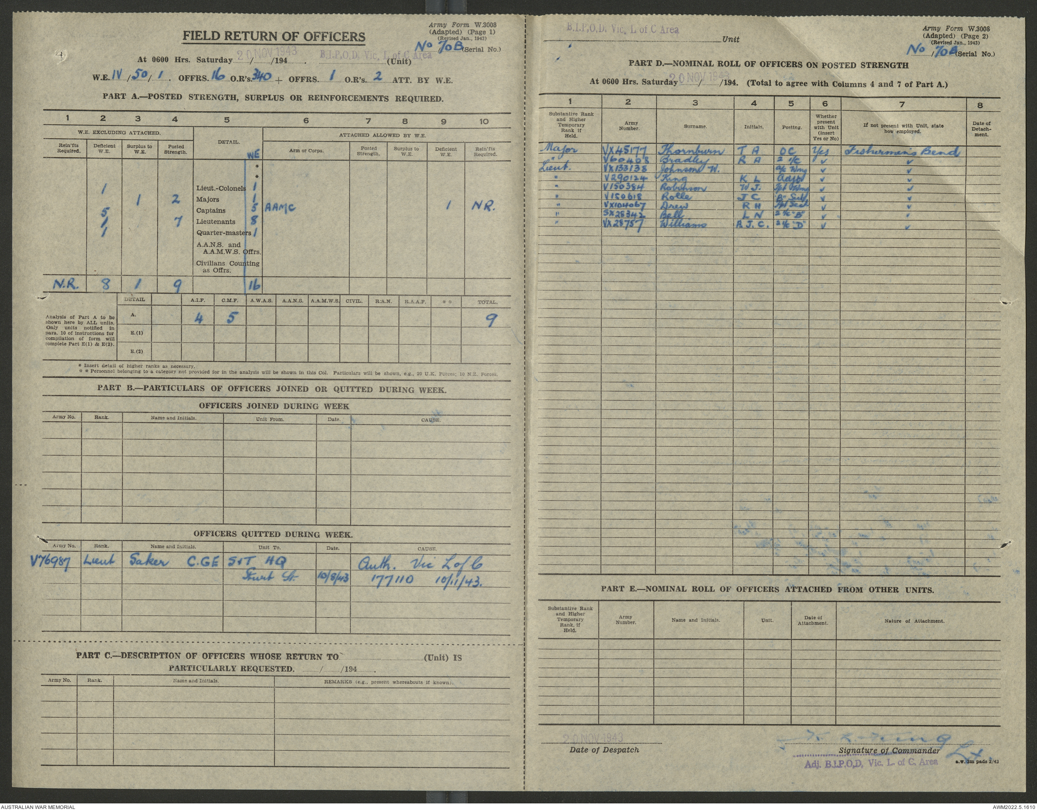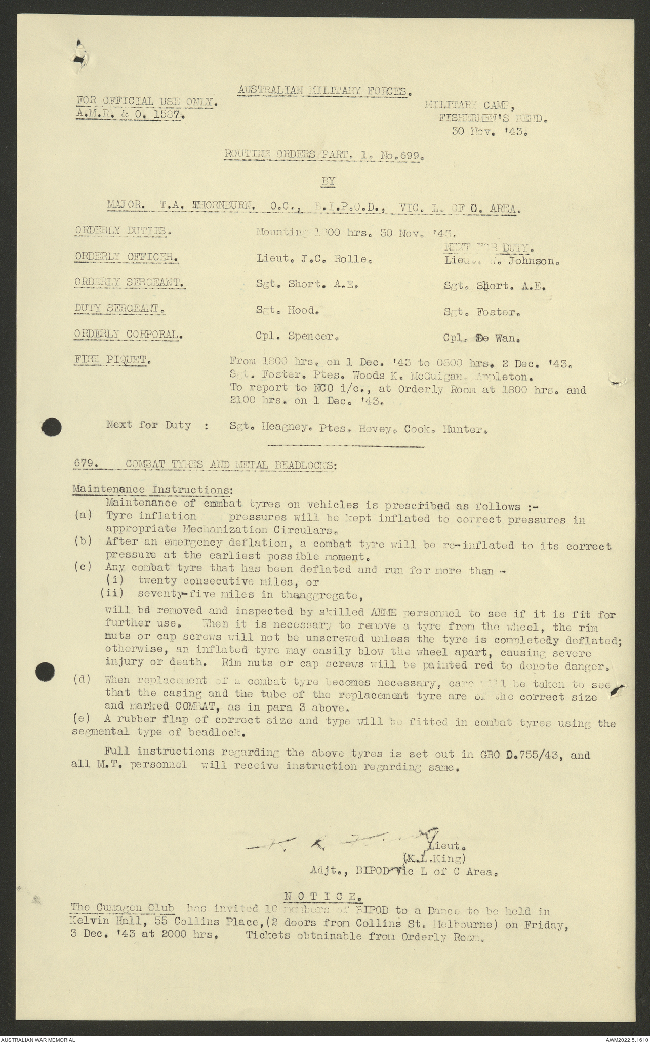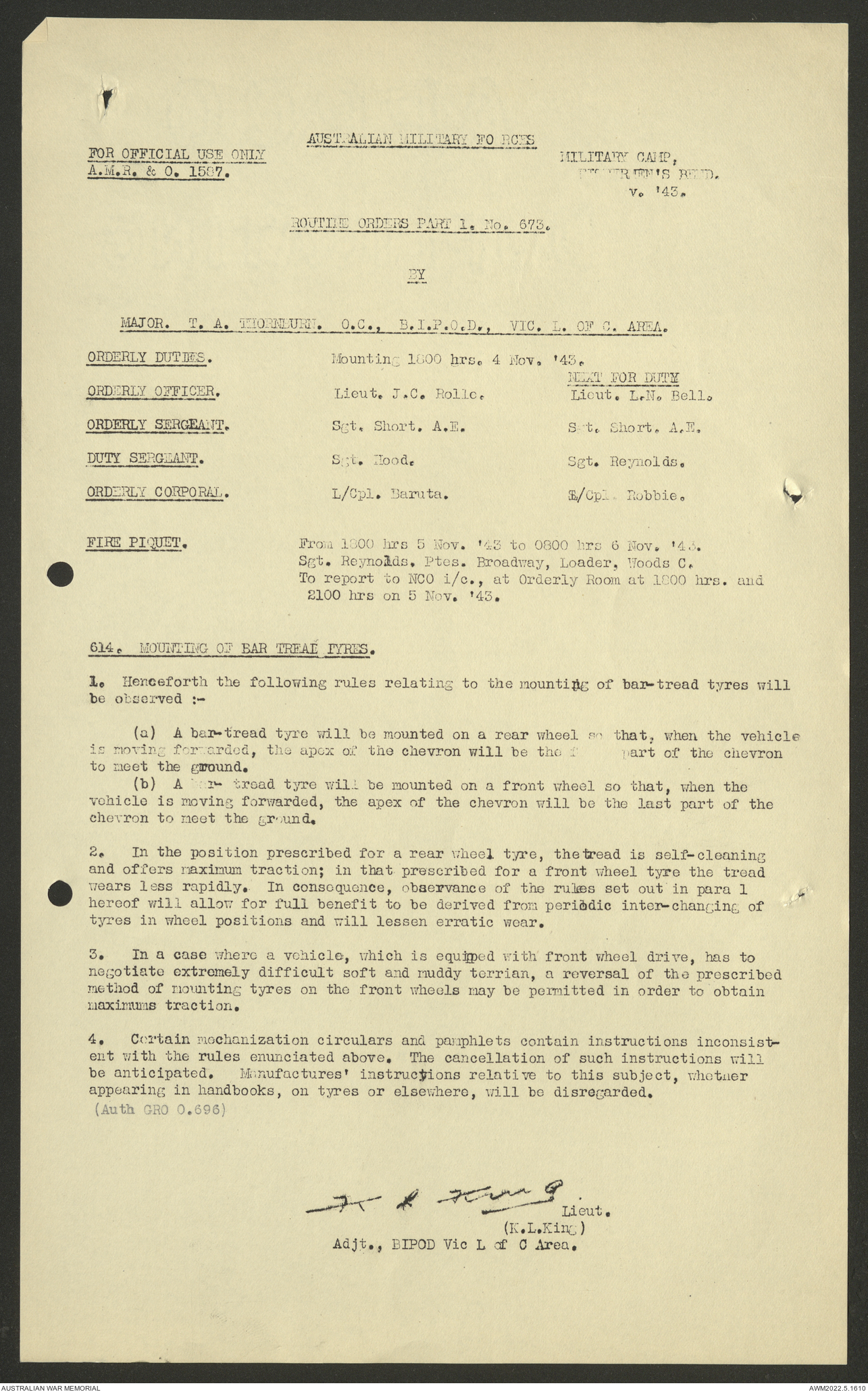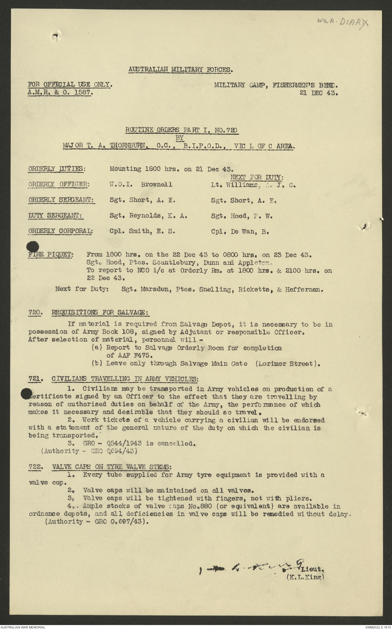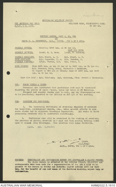 AWM52 10/19/5/12 - [Unit War Diaries, 1939-45 War] Victoria L of C [Lines of Communication] BIPOD [Bulk Issue Petrol and Oil Depot] November - December 1943