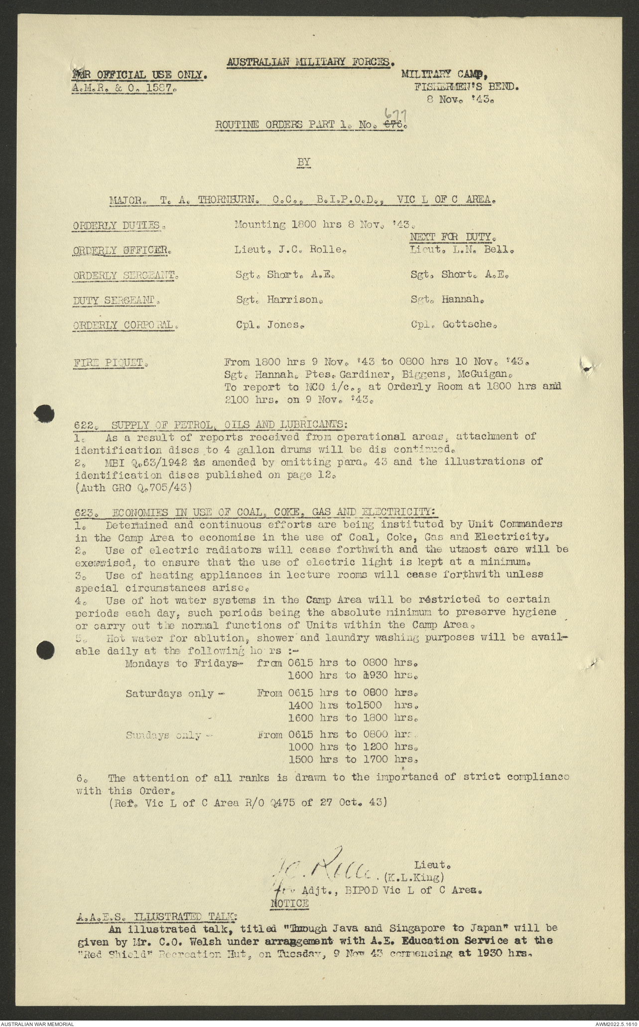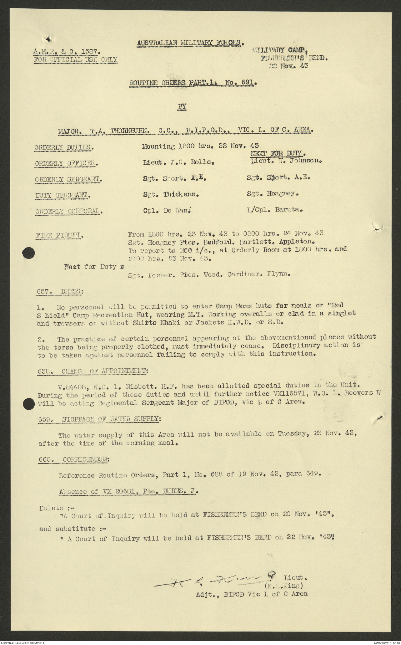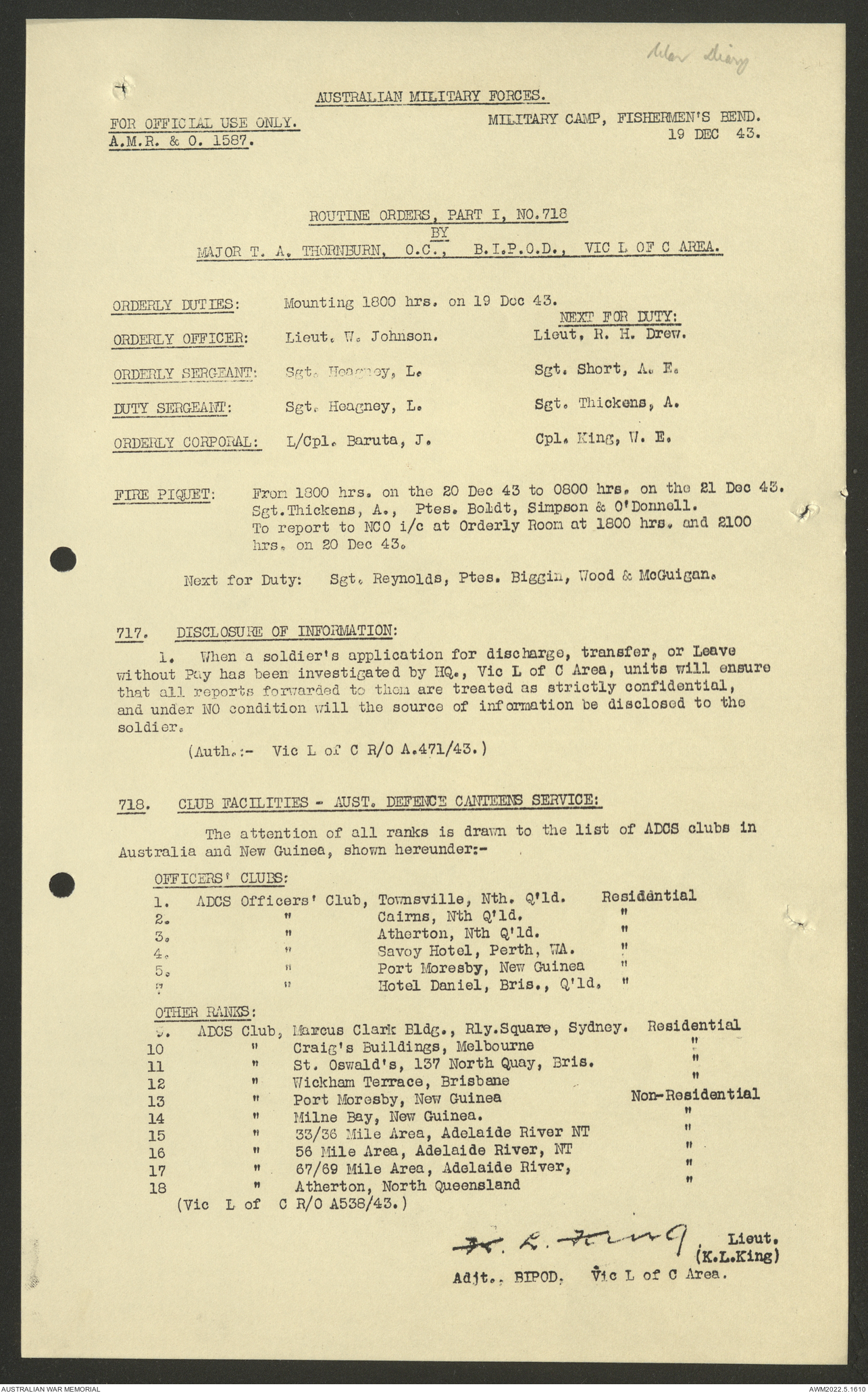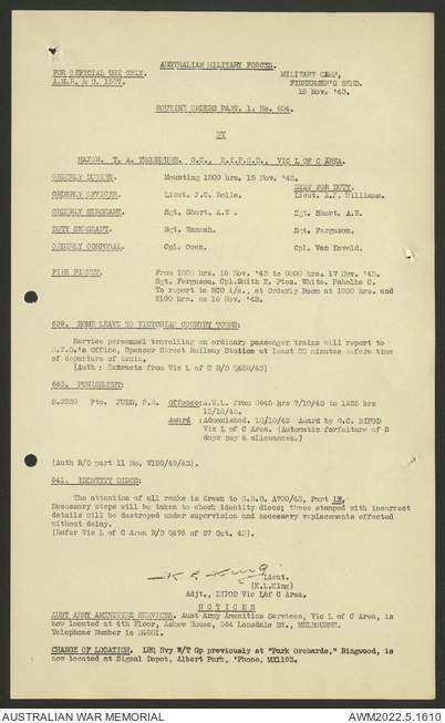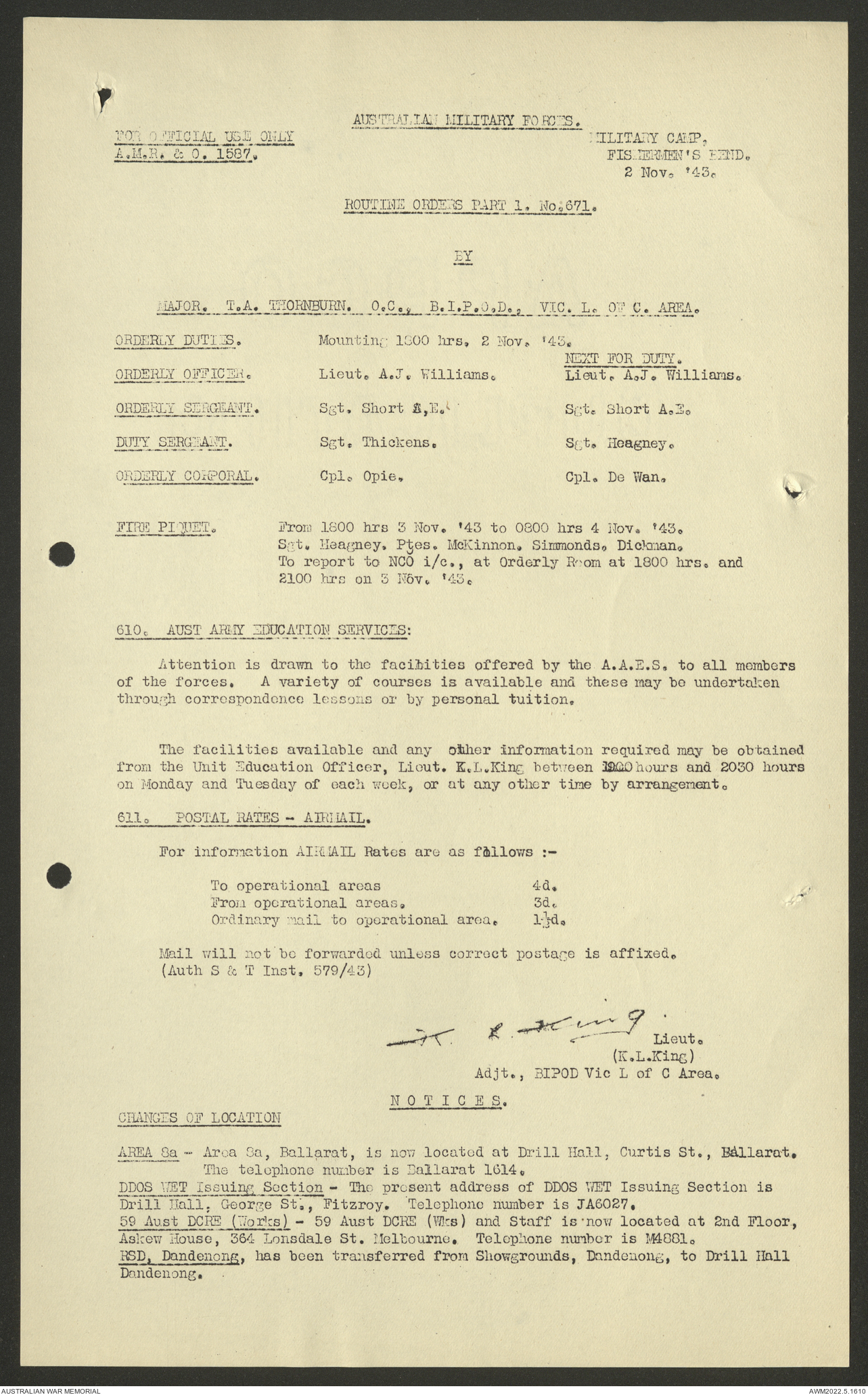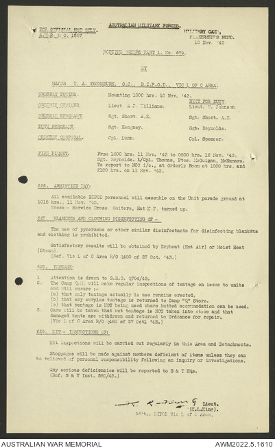 AWM52 10/19/5/12 - [Unit War Diaries, 1939-45 War] Victoria L of C [Lines of Communication] BIPOD [Bulk Issue Petrol and Oil Depot] November - December 1943