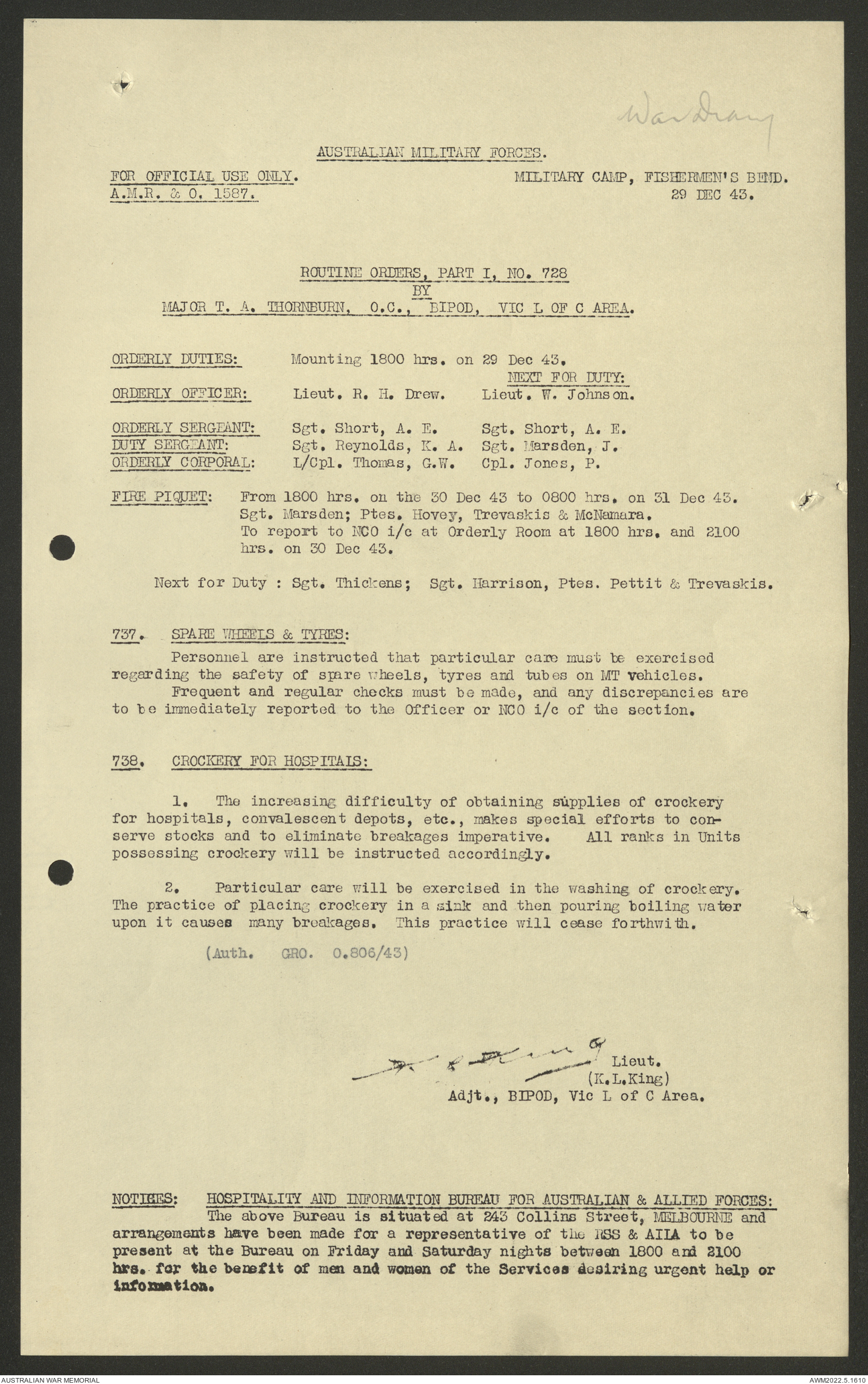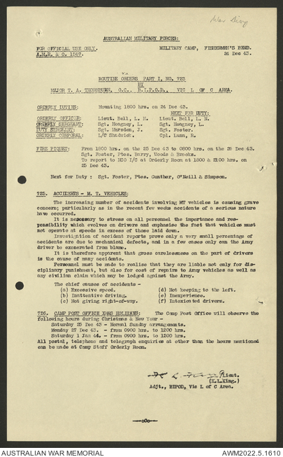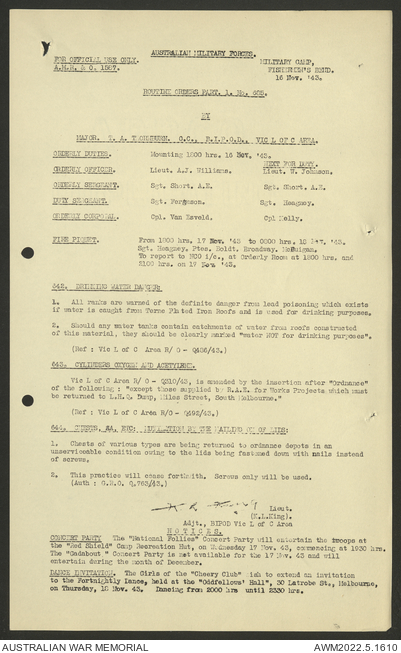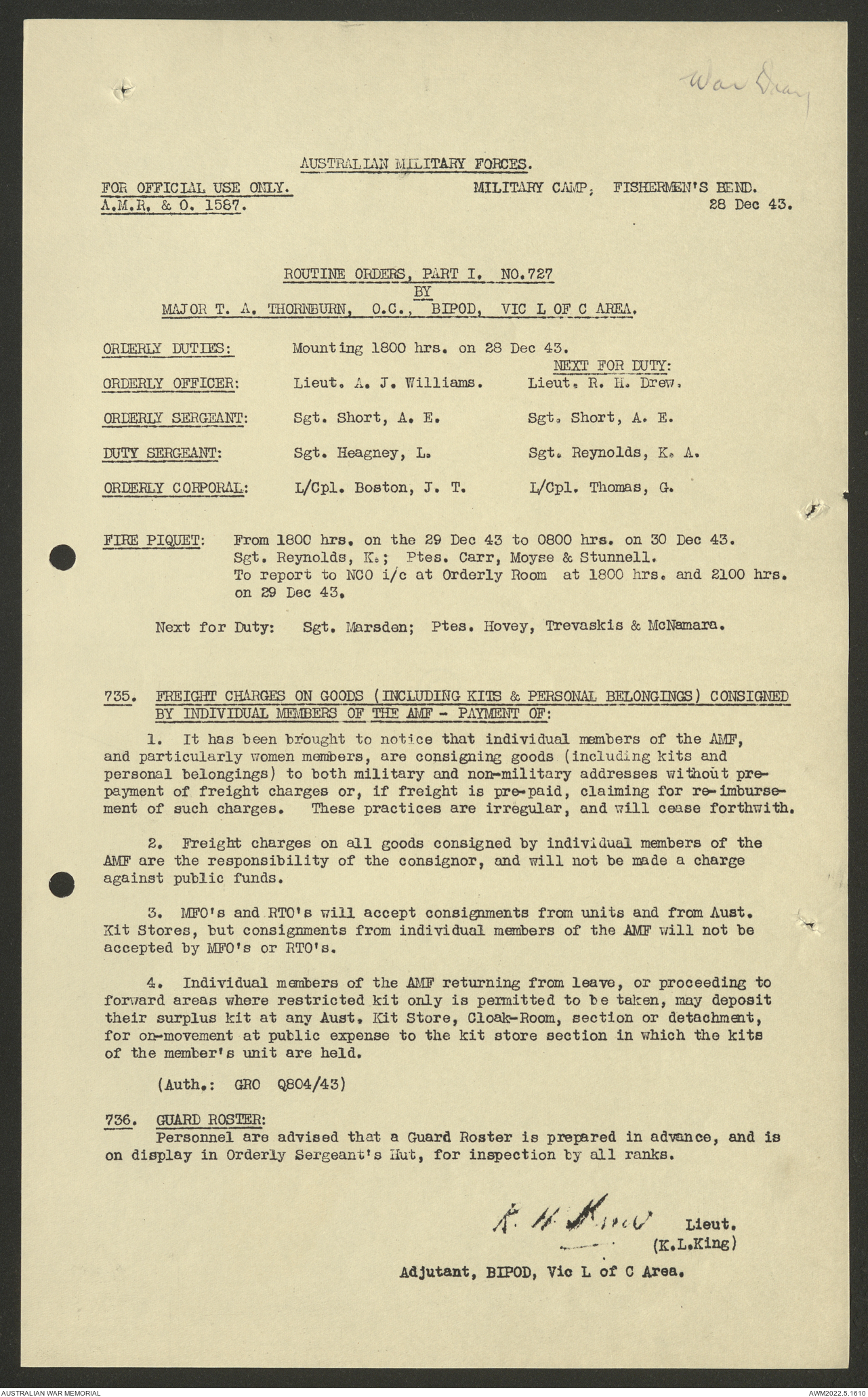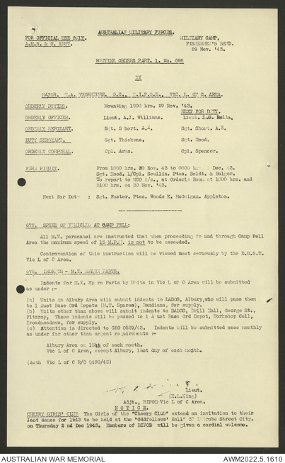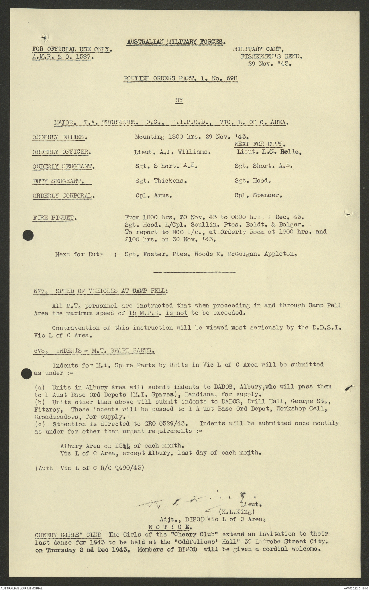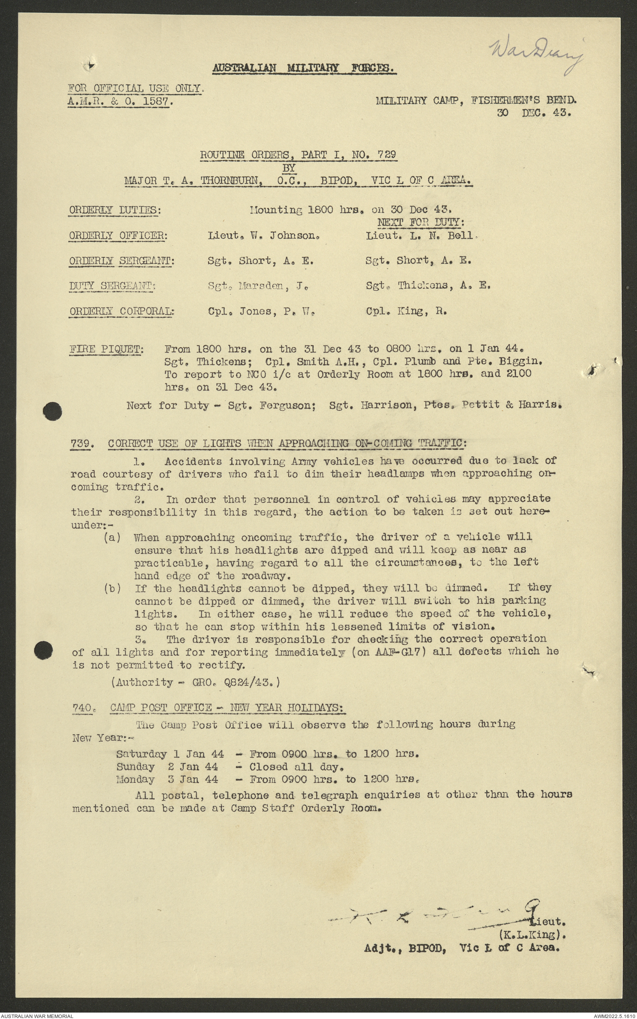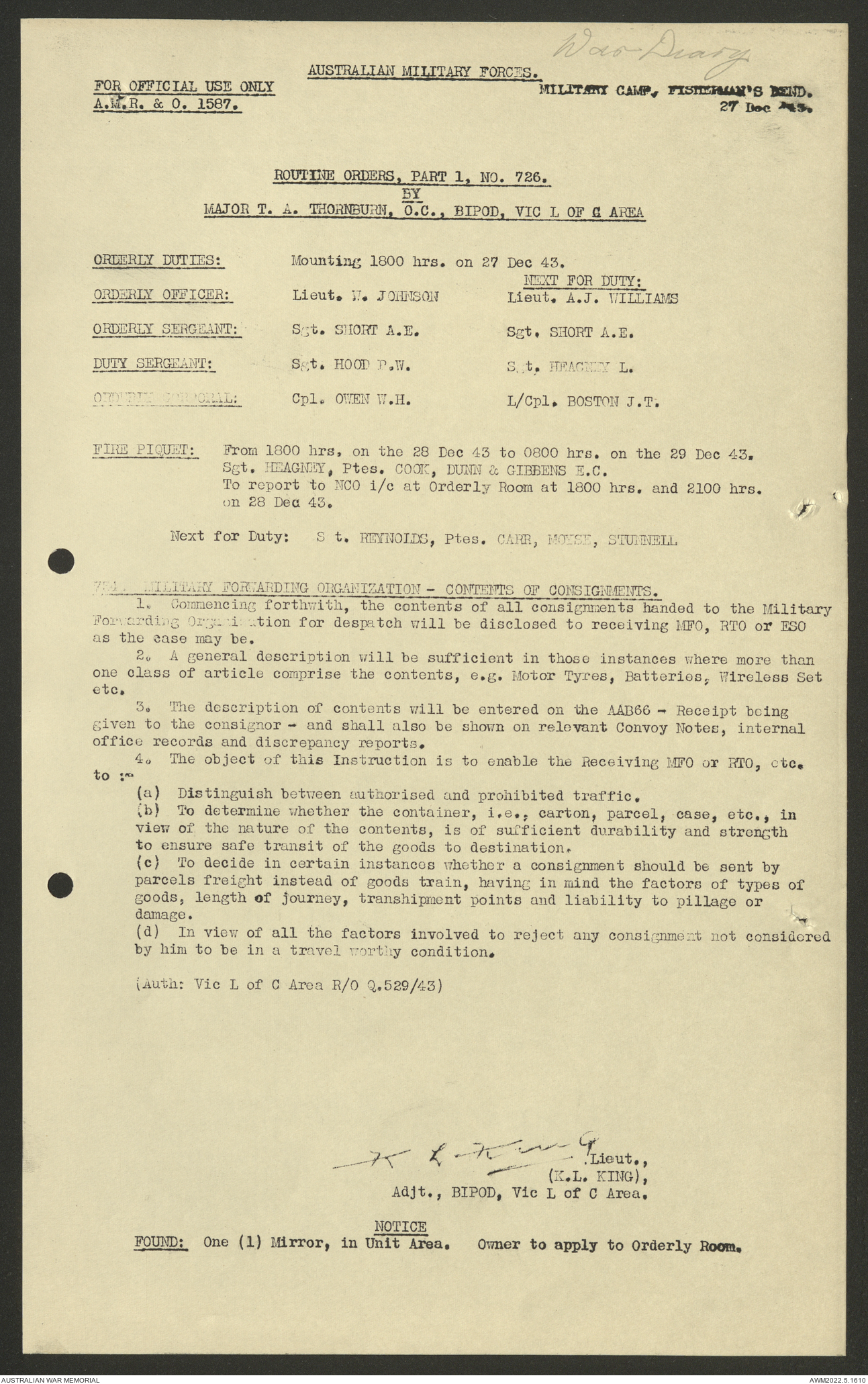 AWM52 10/19/5/12 - [Unit War Diaries, 1939-45 War] Victoria L of C [Lines of Communication] BIPOD [Bulk Issue Petrol and Oil Depot] November - December 1943