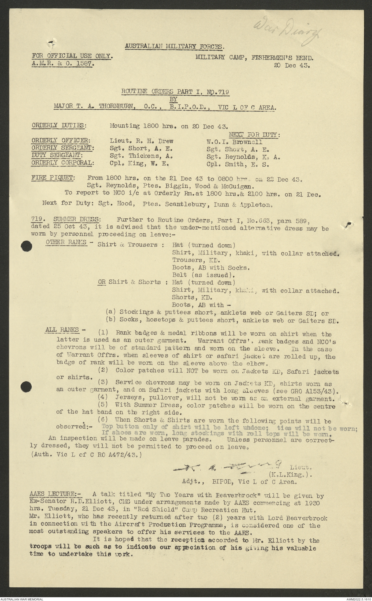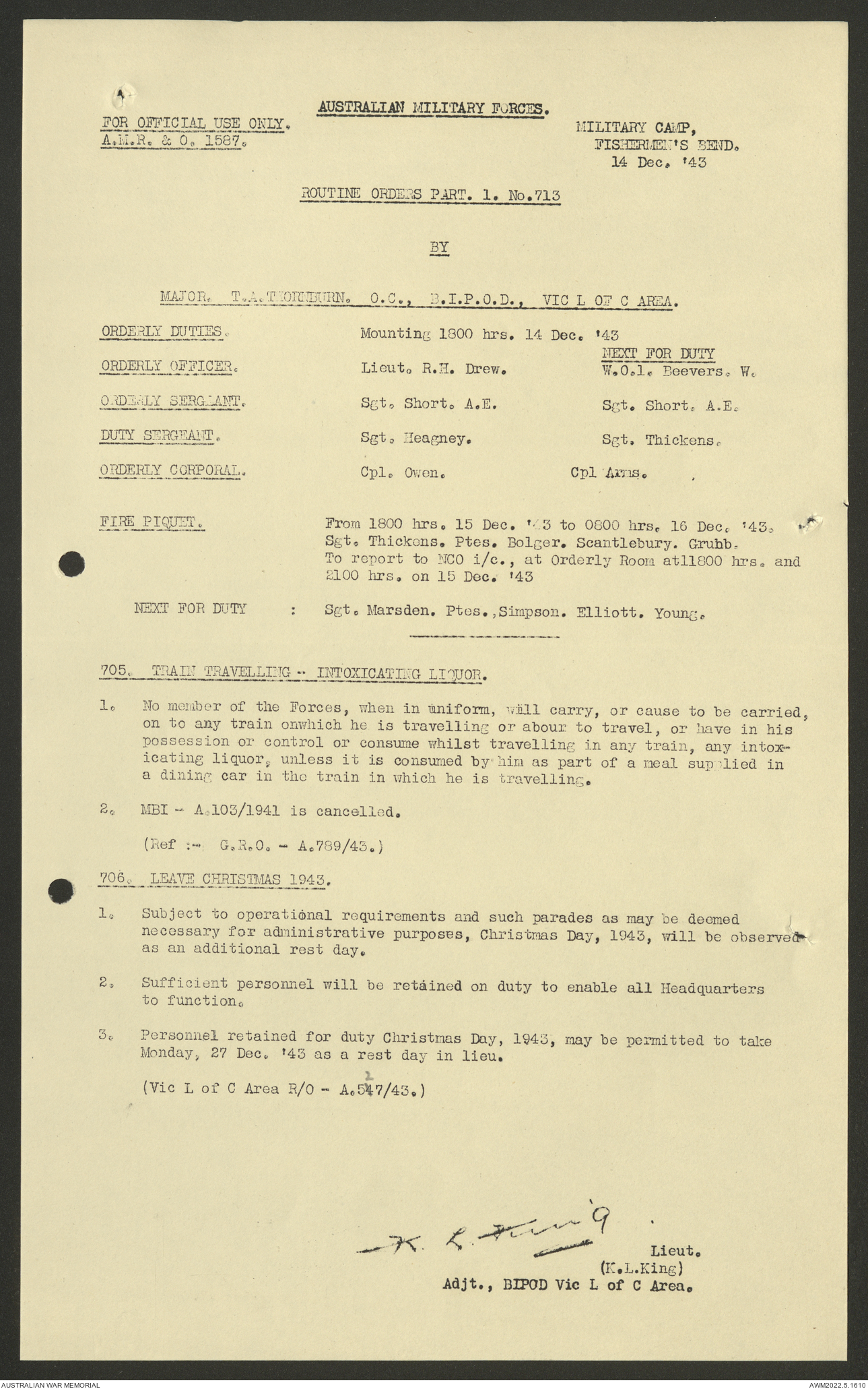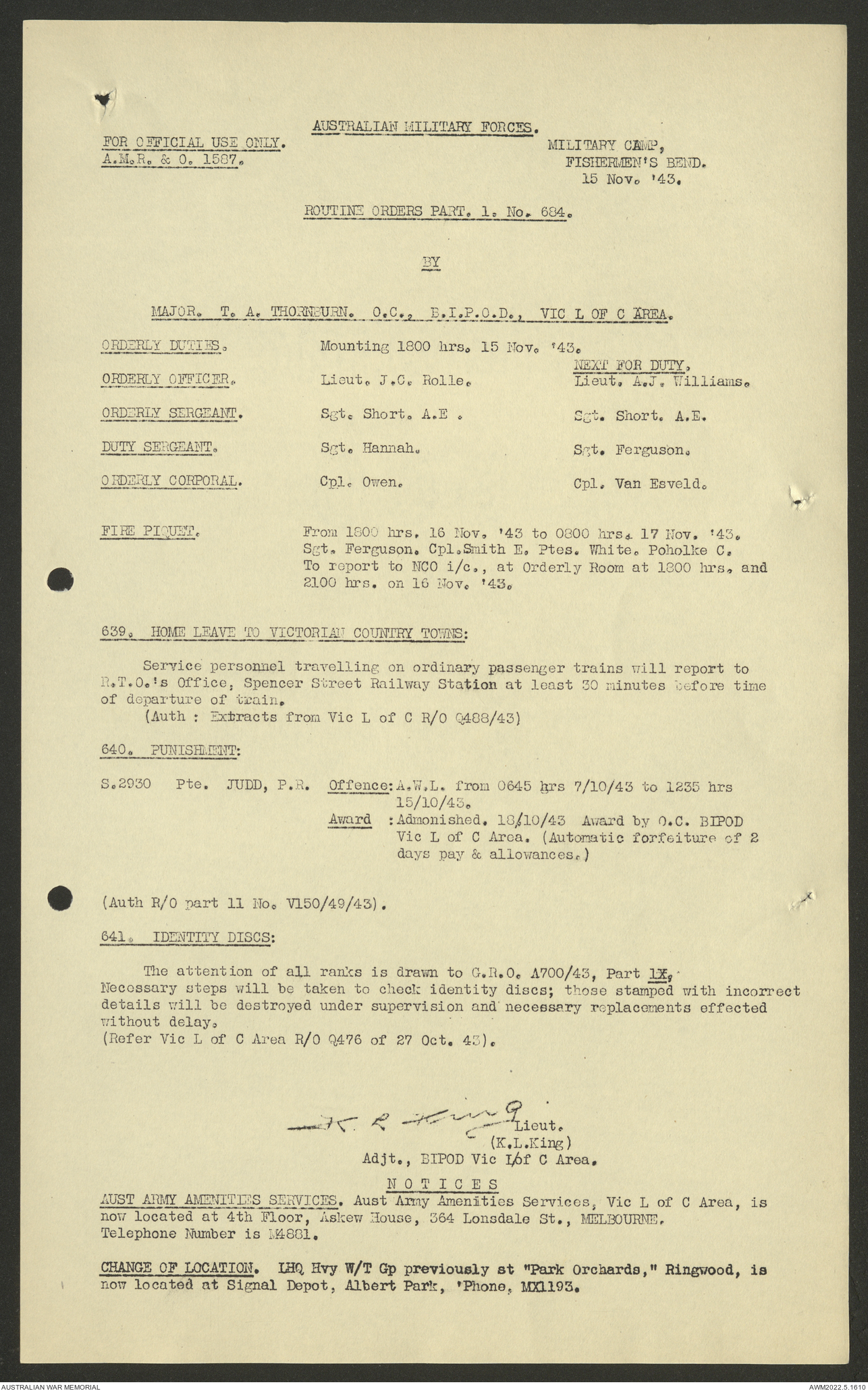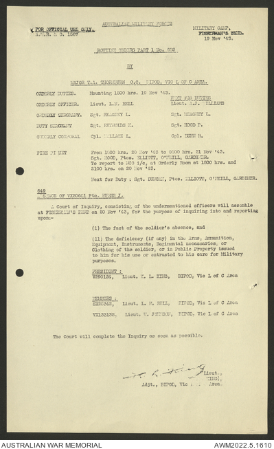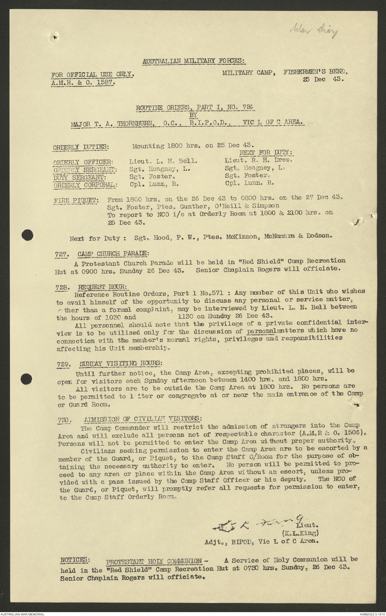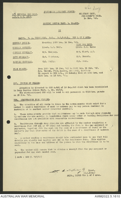 AWM52 10/19/5/12 - [Unit War Diaries, 1939-45 War] Victoria L of C [Lines of Communication] BIPOD [Bulk Issue Petrol and Oil Depot] November - December 1943