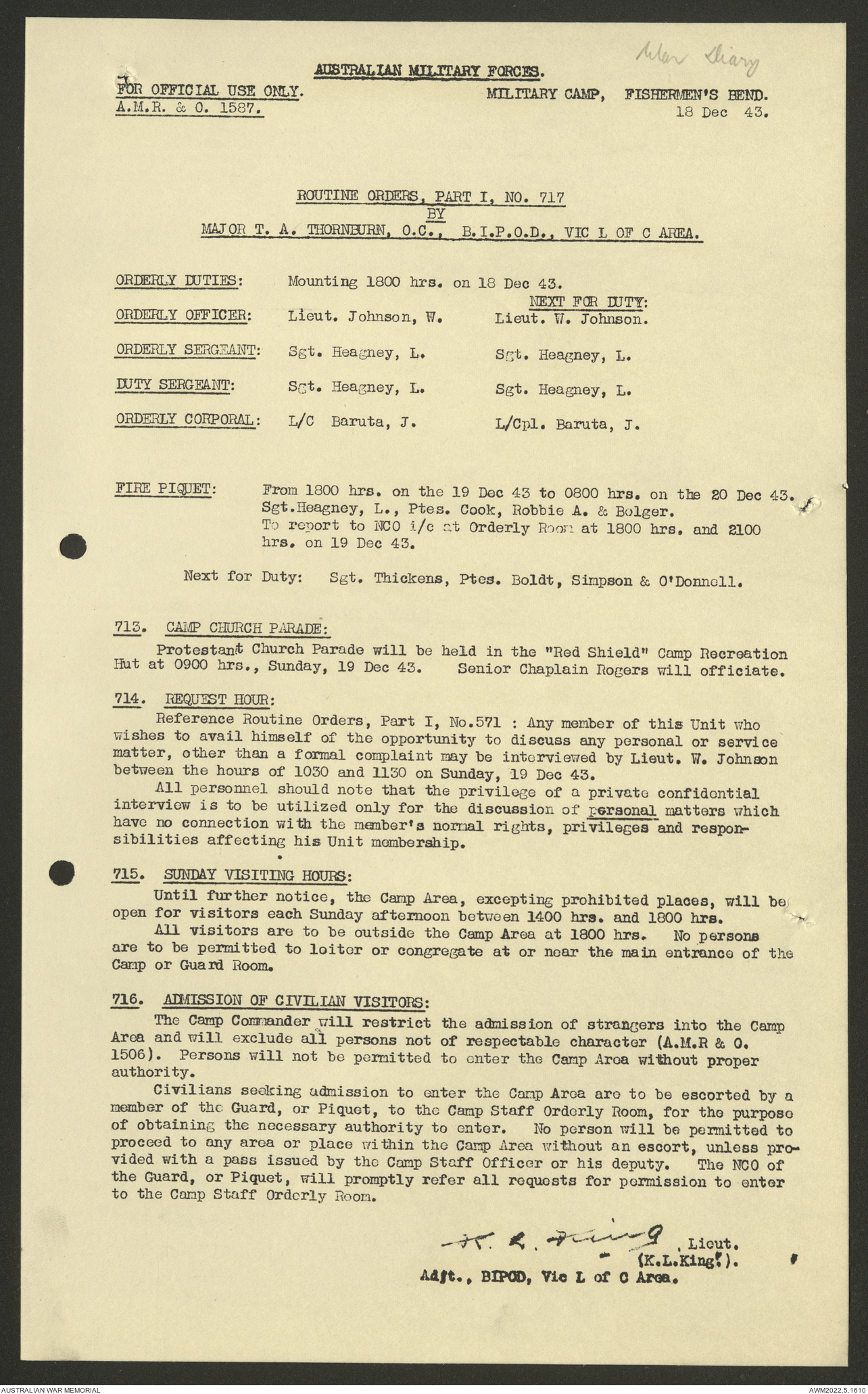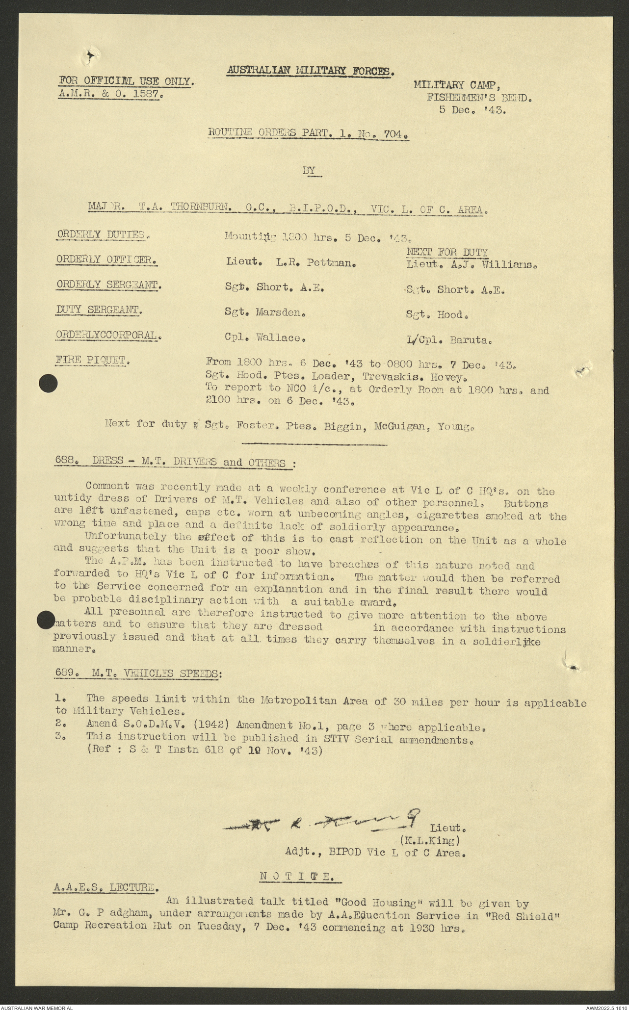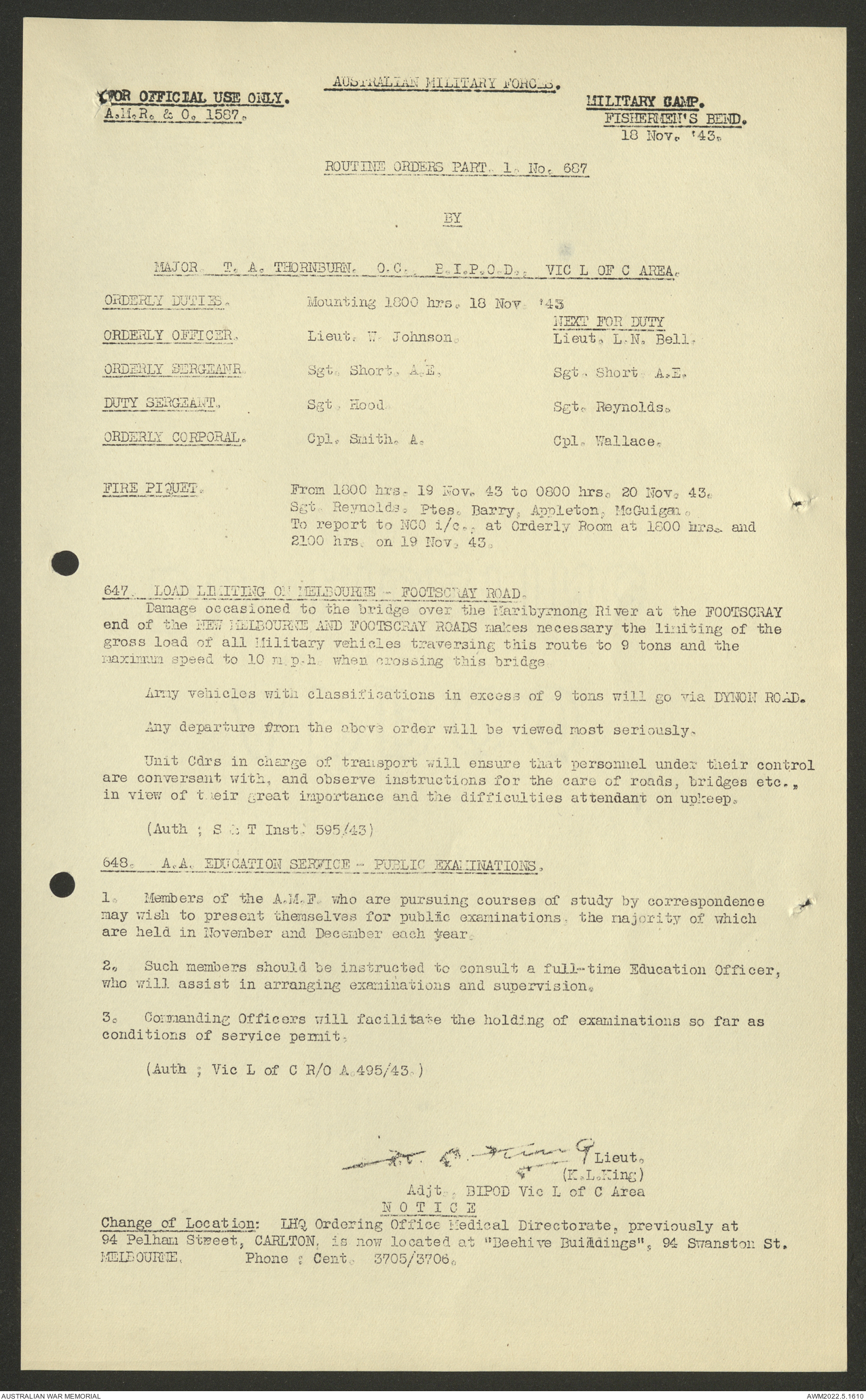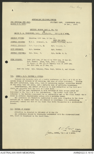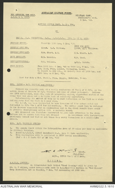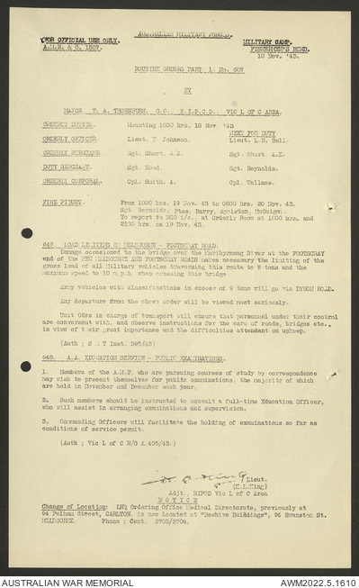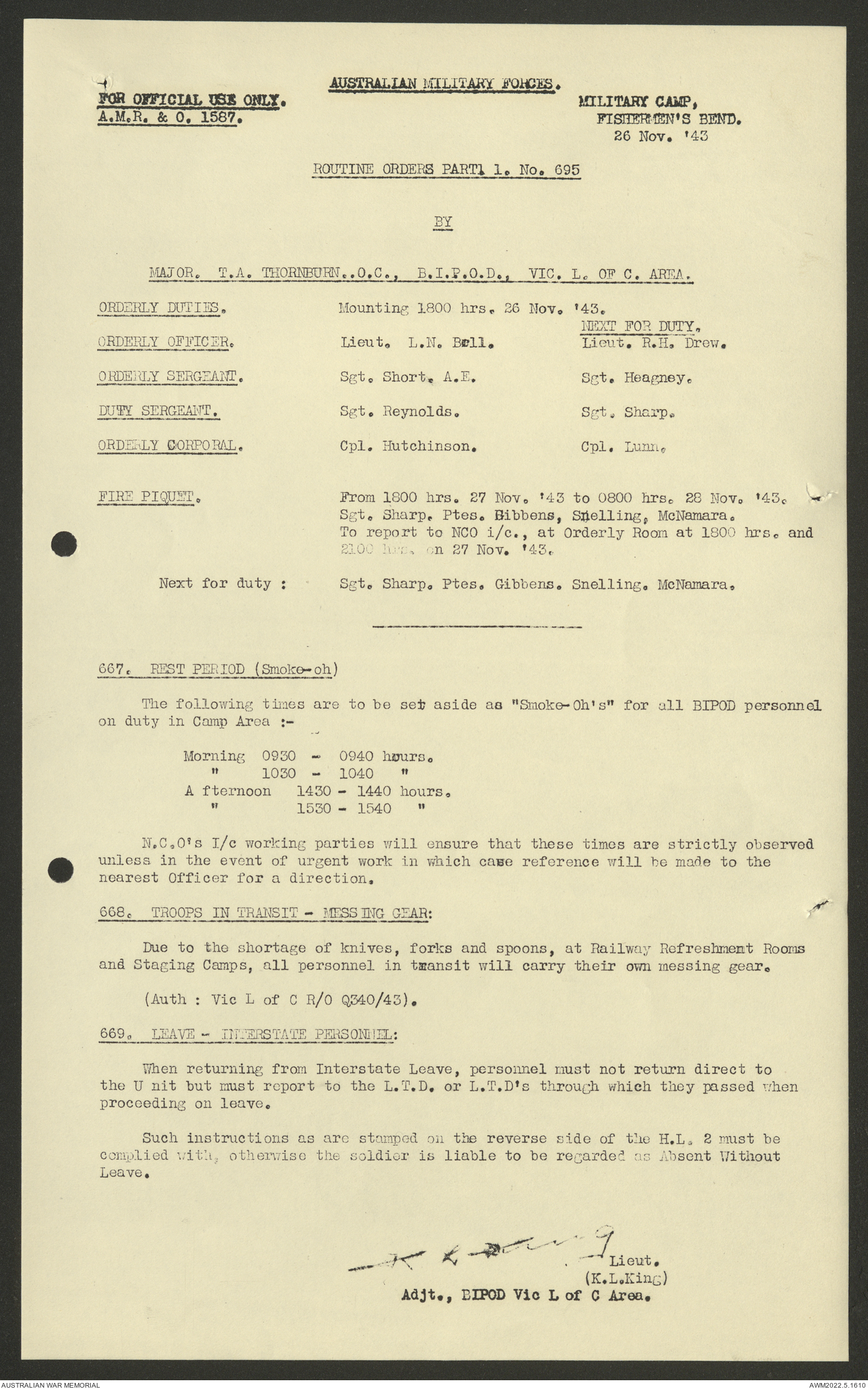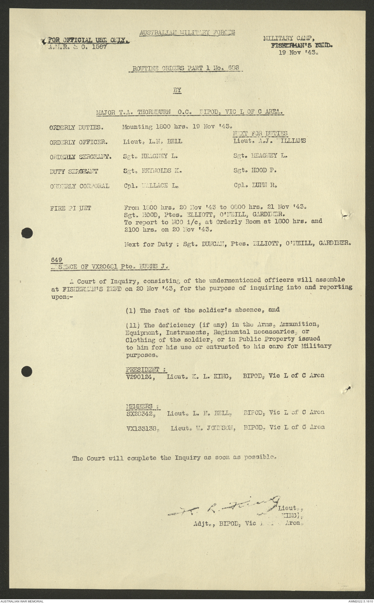 AWM52 10/19/5/12 - [Unit War Diaries, 1939-45 War] Victoria L of C [Lines of Communication] BIPOD [Bulk Issue Petrol and Oil Depot] November - December 1943