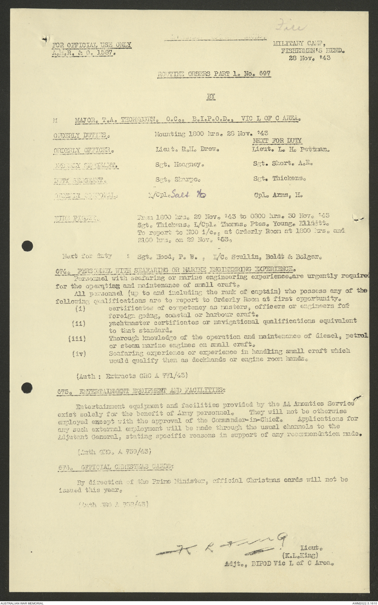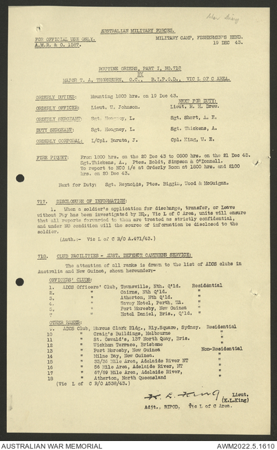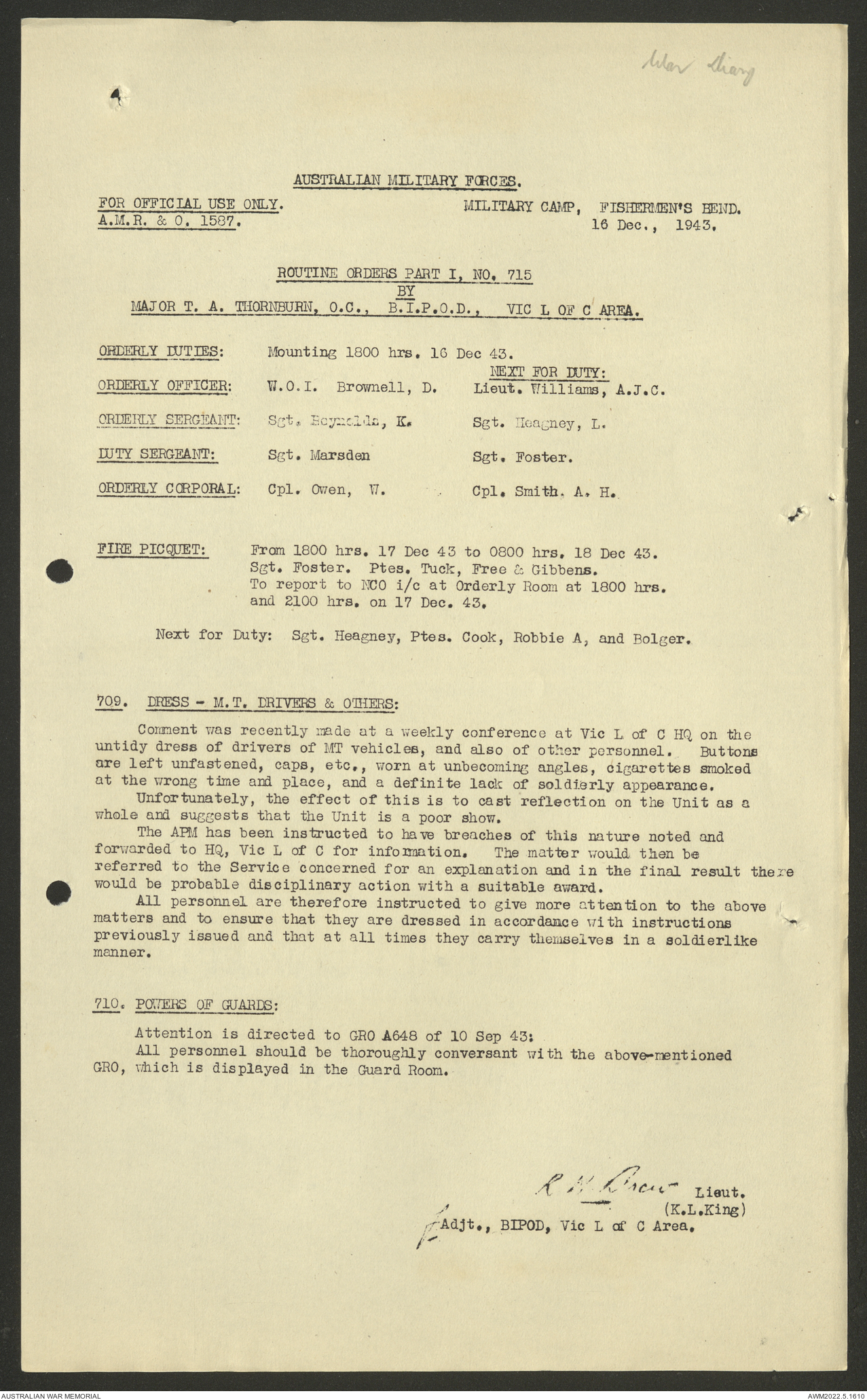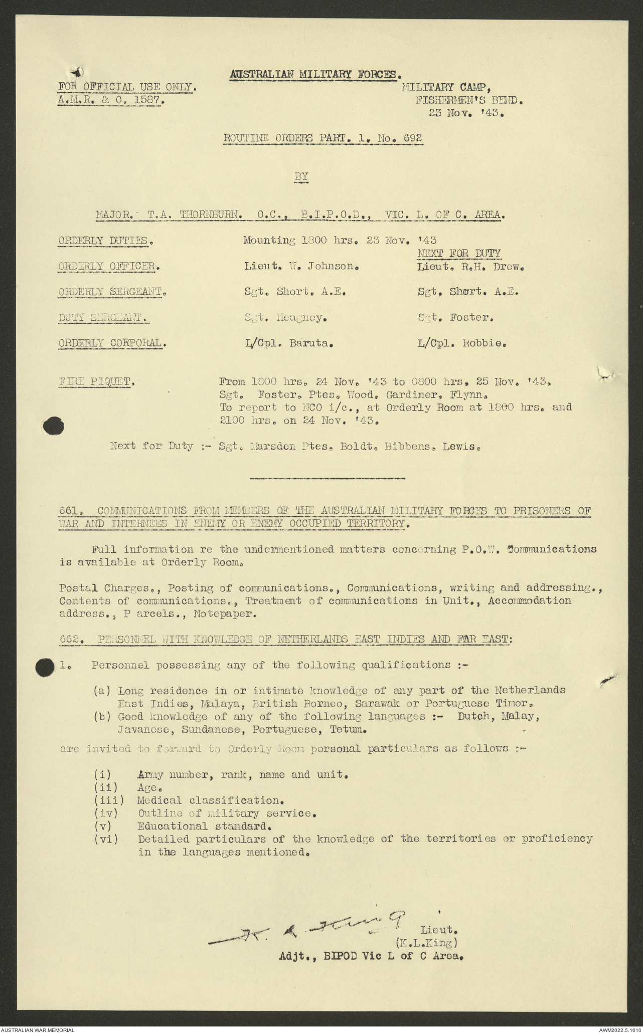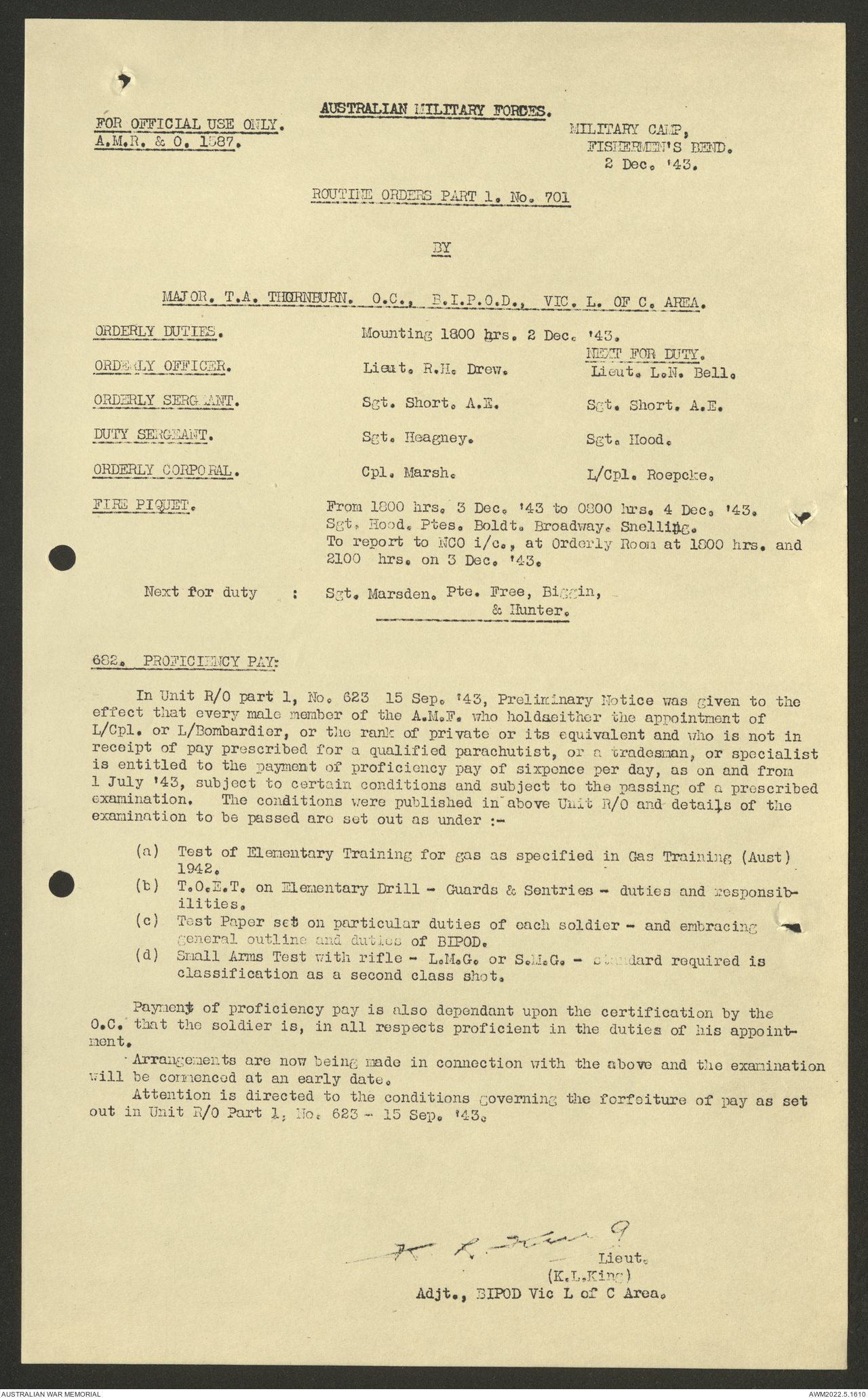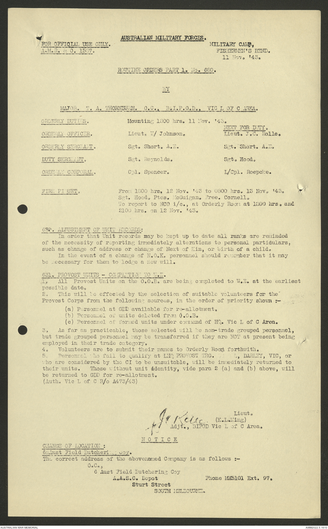 AWM52 10/19/5/12 - [Unit War Diaries, 1939-45 War] Victoria L of C [Lines of Communication] BIPOD [Bulk Issue Petrol and Oil Depot] November - December 1943