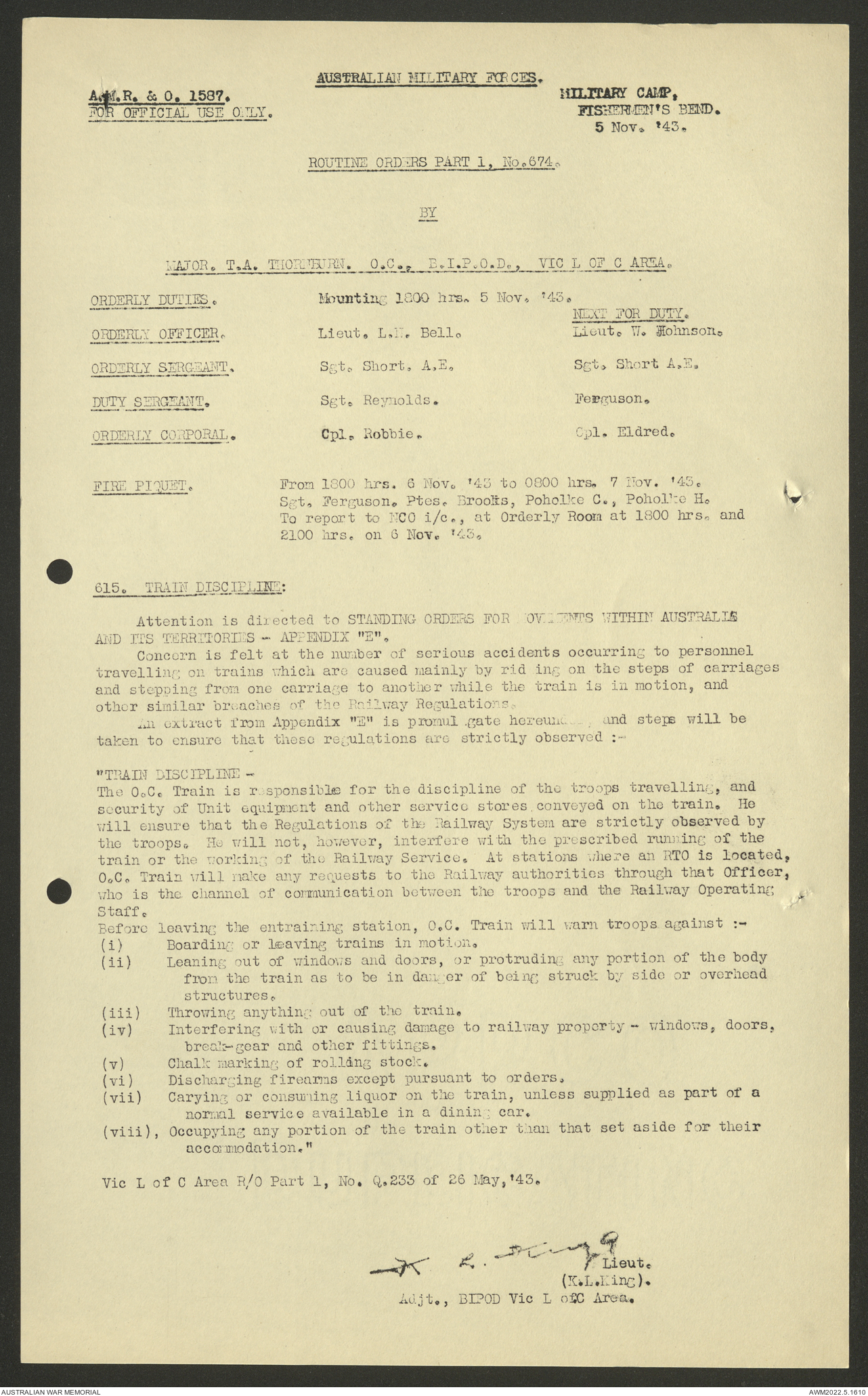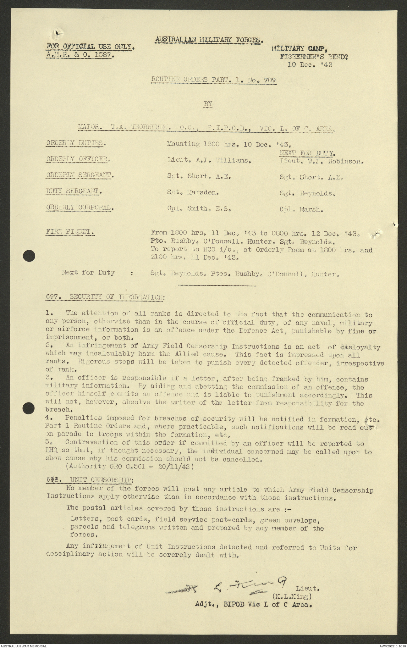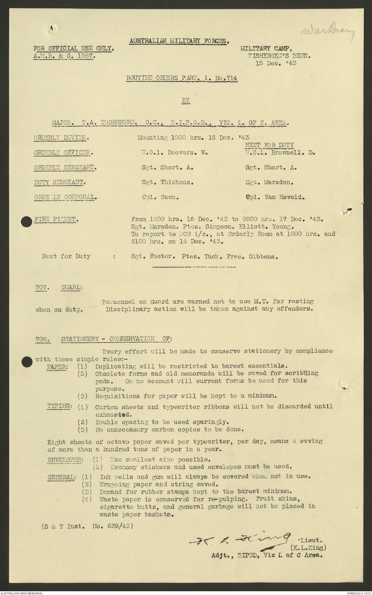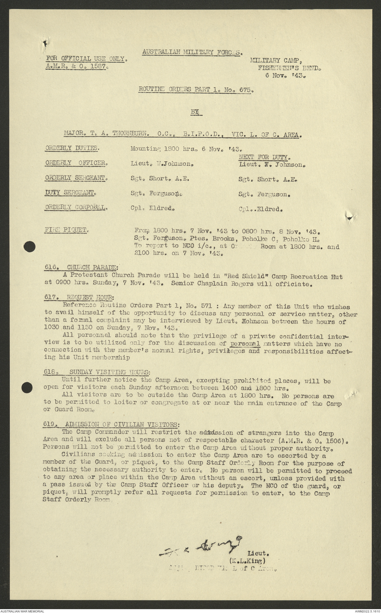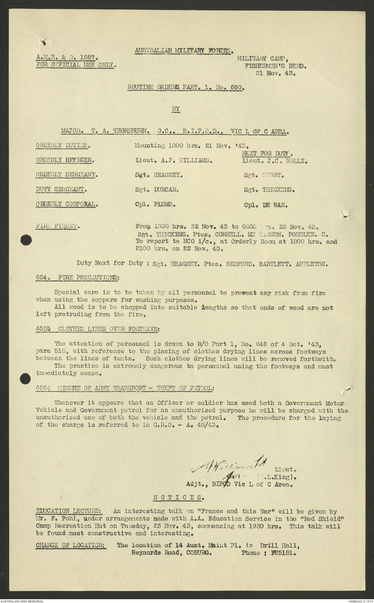 AWM52 10/19/5/12 - [Unit War Diaries, 1939-45 War] Victoria L of C [Lines of Communication] BIPOD [Bulk Issue Petrol and Oil Depot] November - December 1943