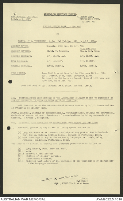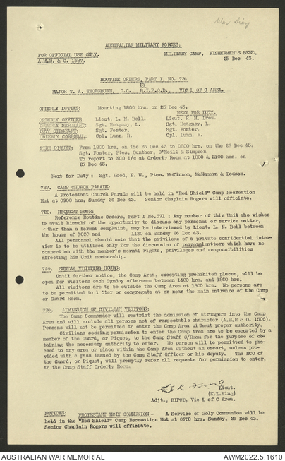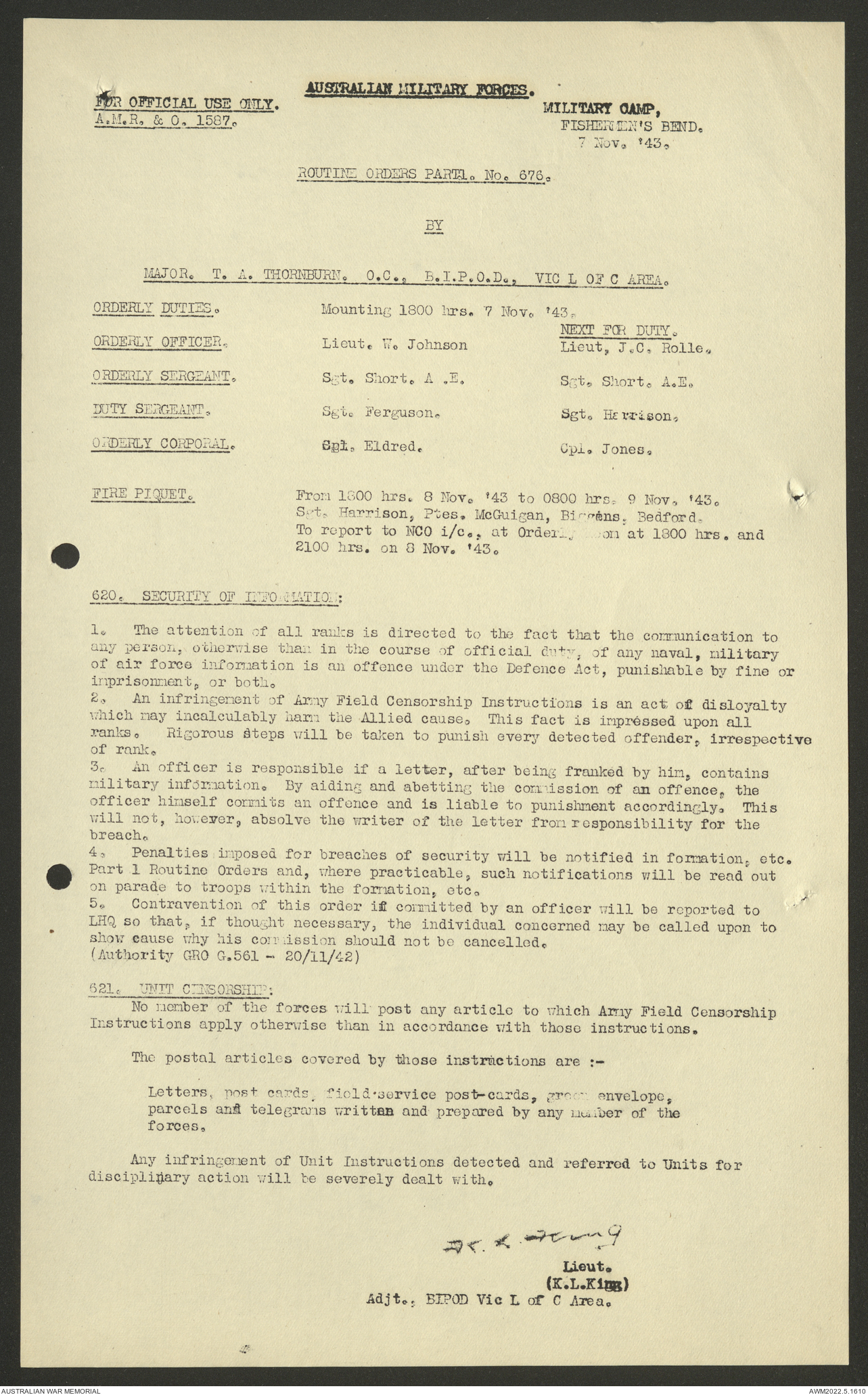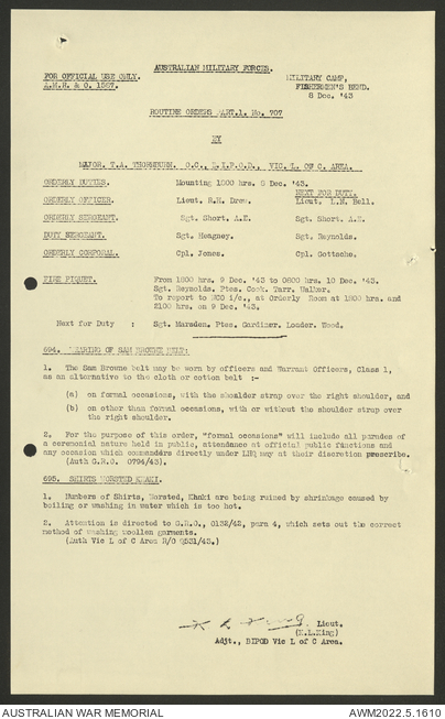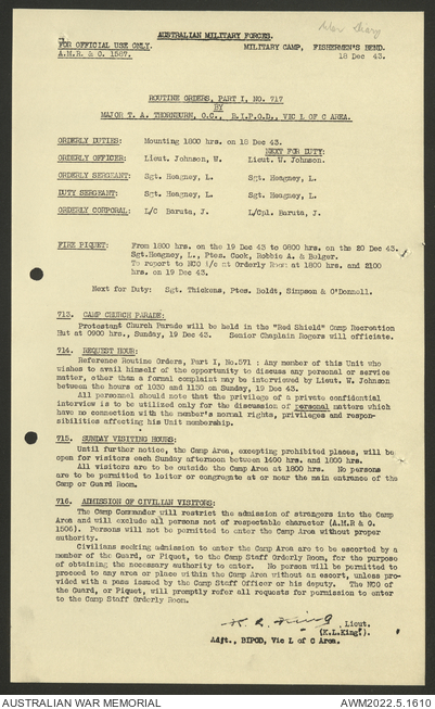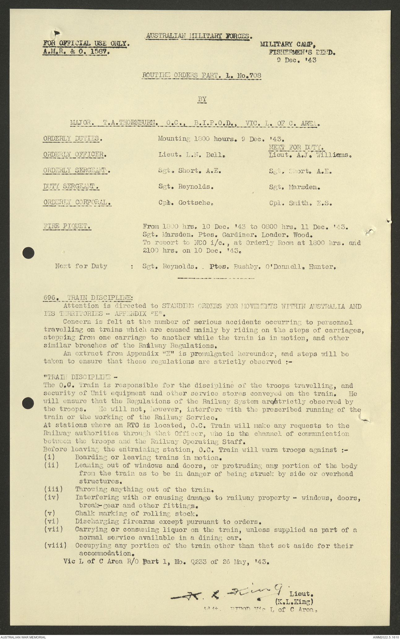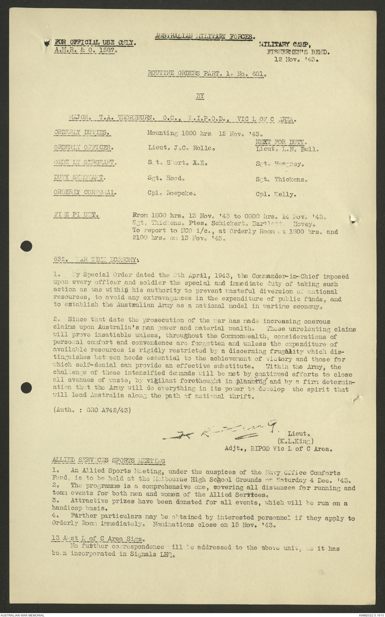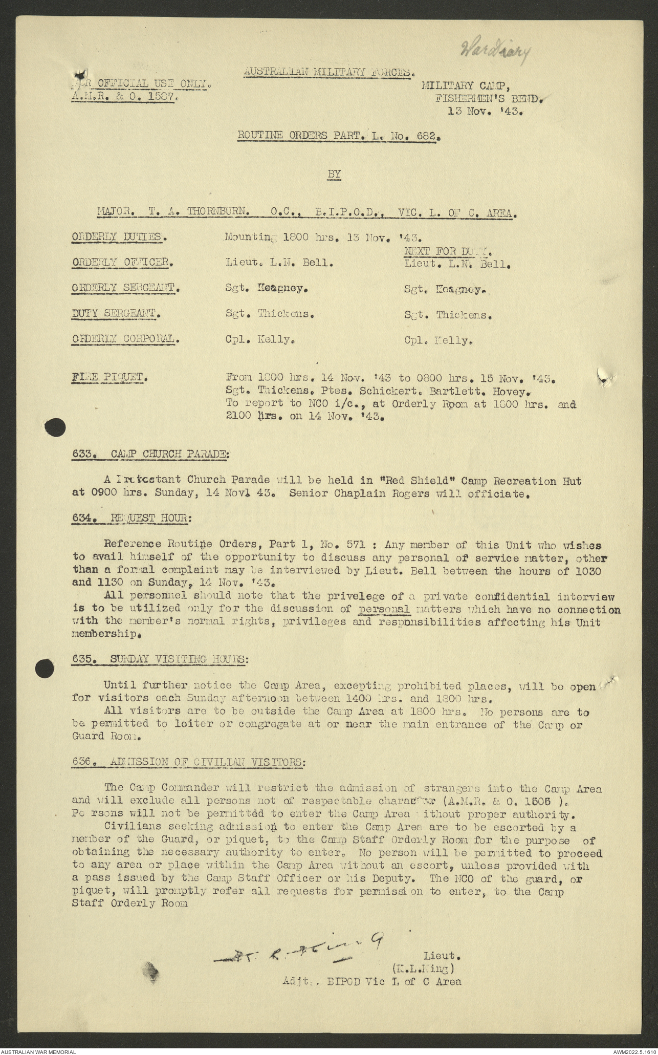 AWM52 10/19/5/12 - [Unit War Diaries, 1939-45 War] Victoria L of C [Lines of Communication] BIPOD [Bulk Issue Petrol and Oil Depot] November - December 1943