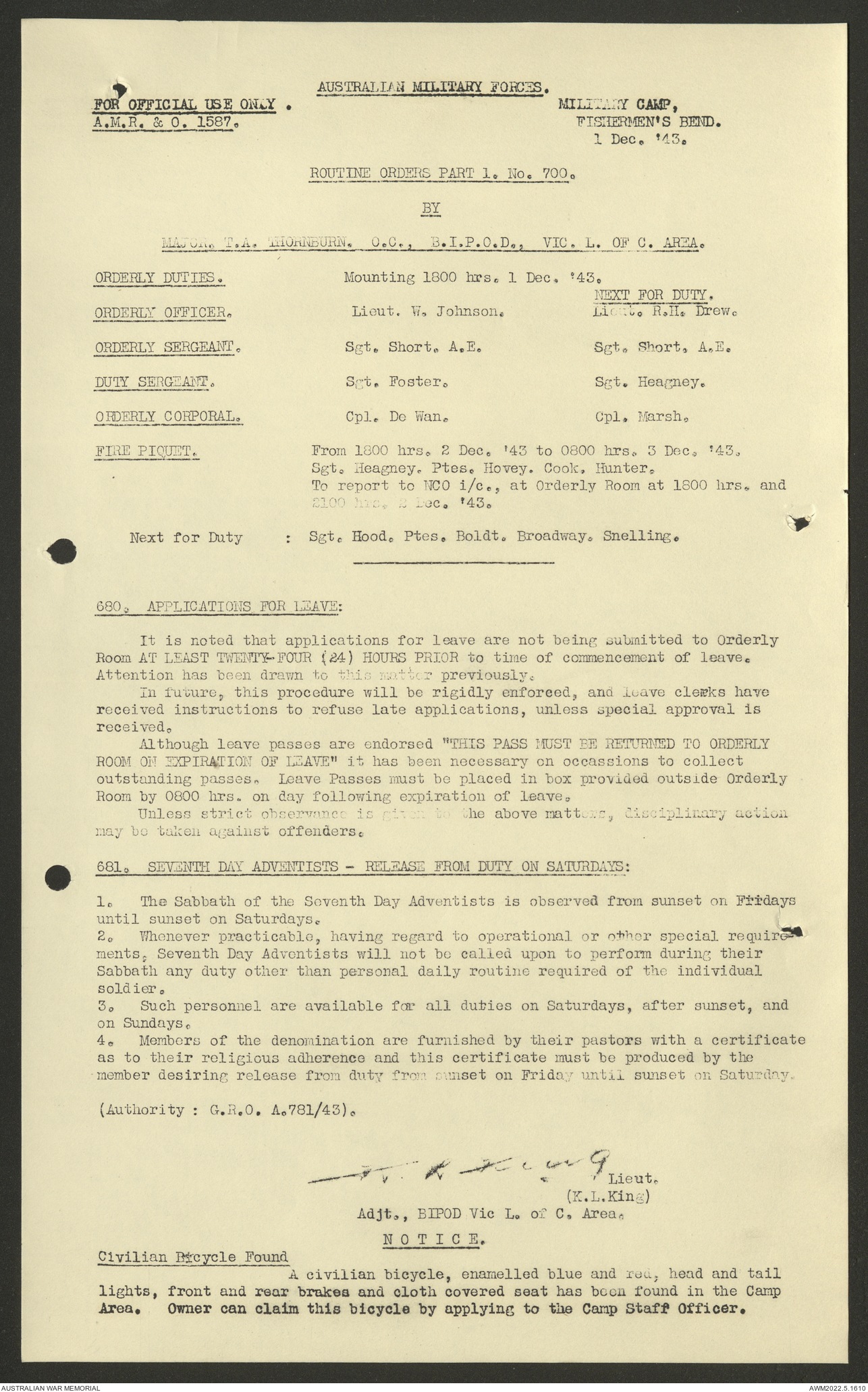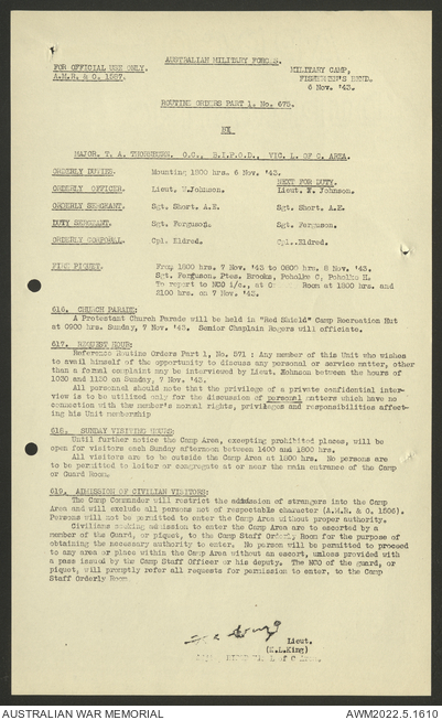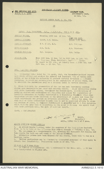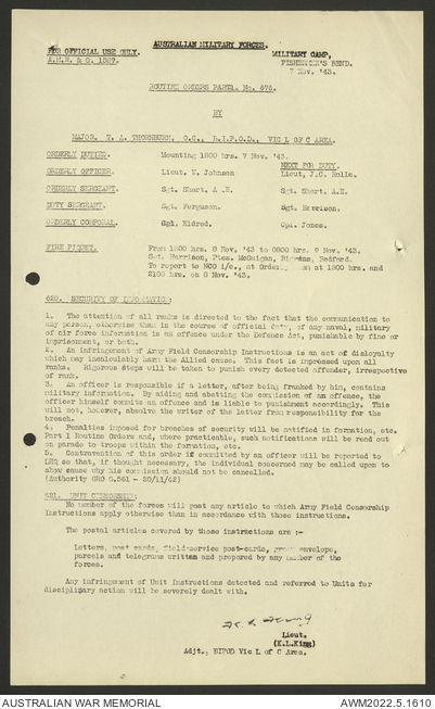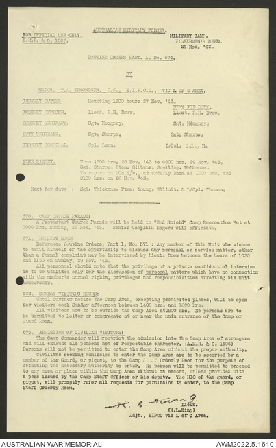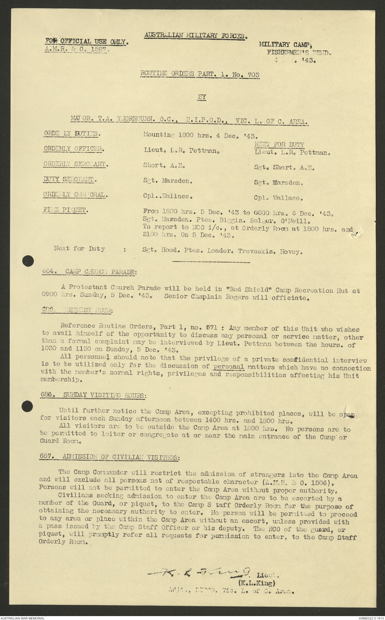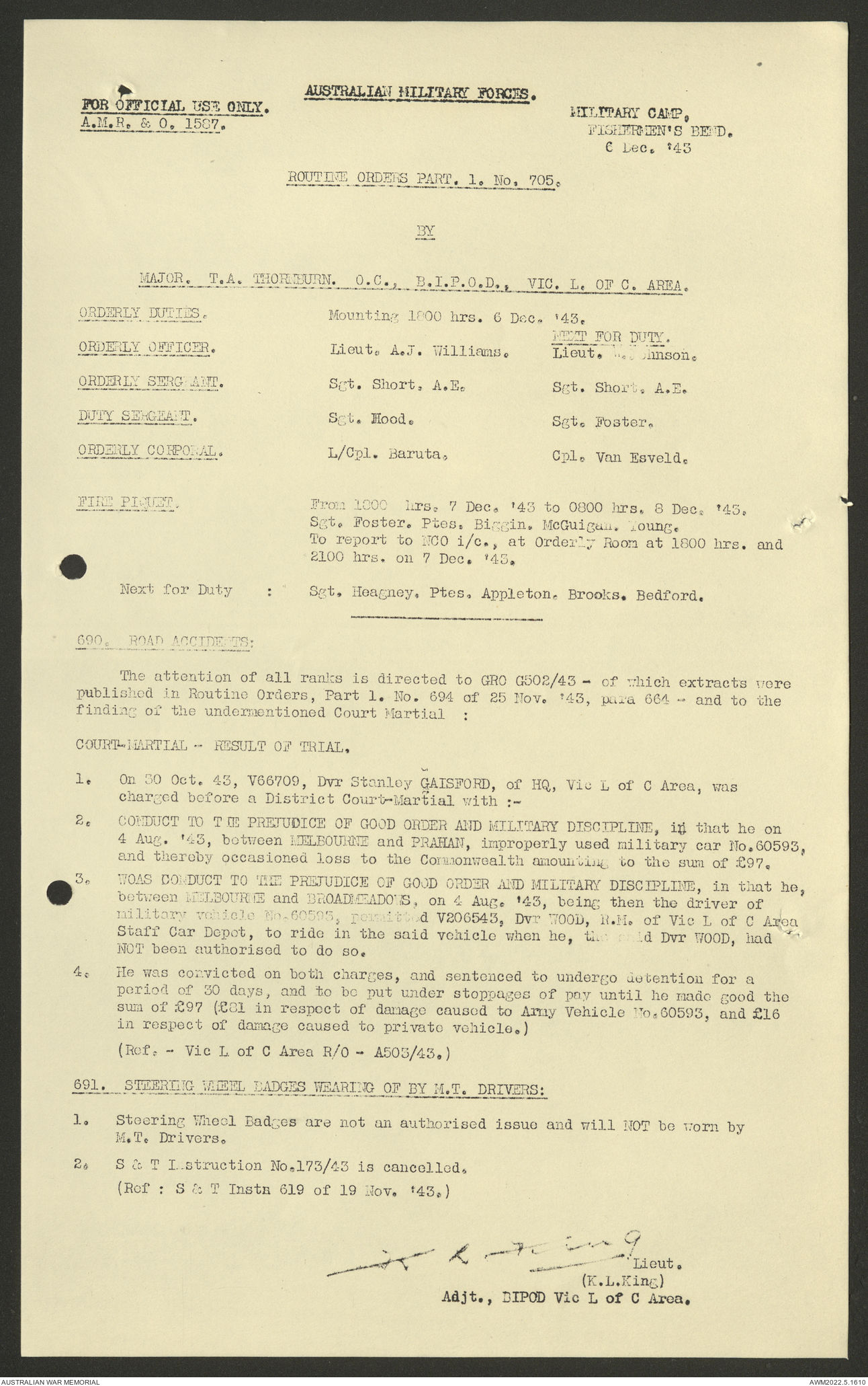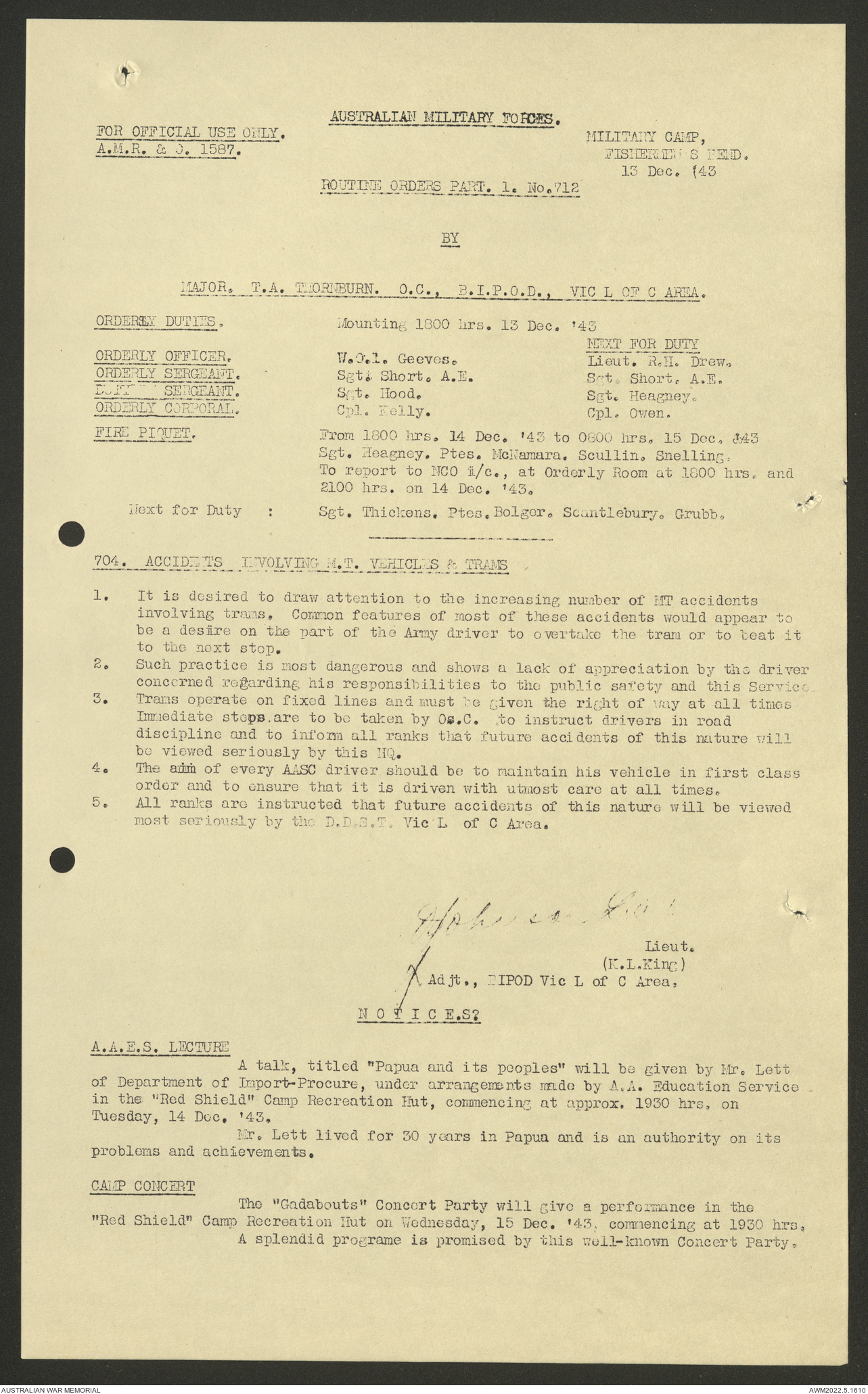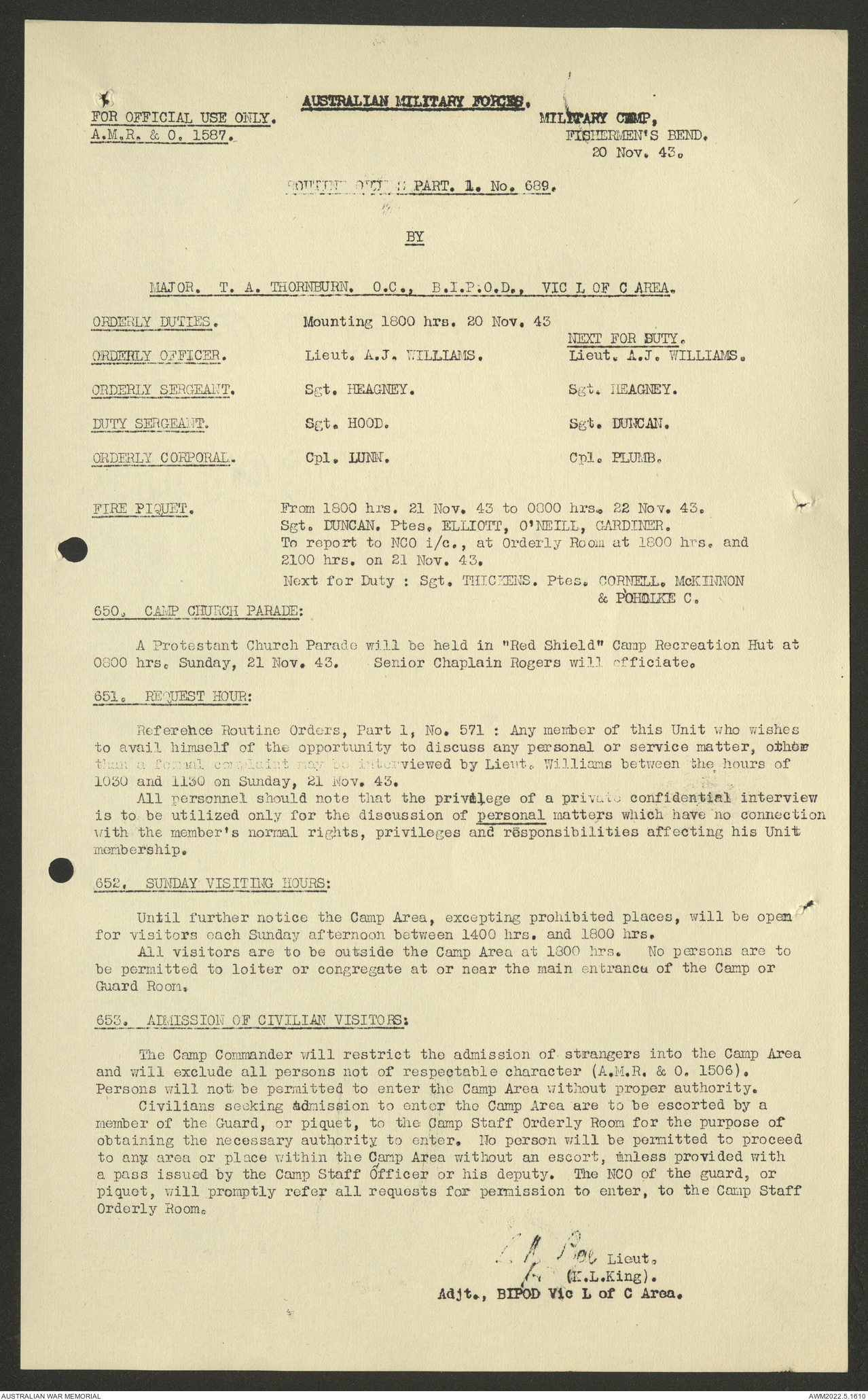 AWM52 10/19/5/12 - [Unit War Diaries, 1939-45 War] Victoria L of C [Lines of Communication] BIPOD [Bulk Issue Petrol and Oil Depot] November - December 1943