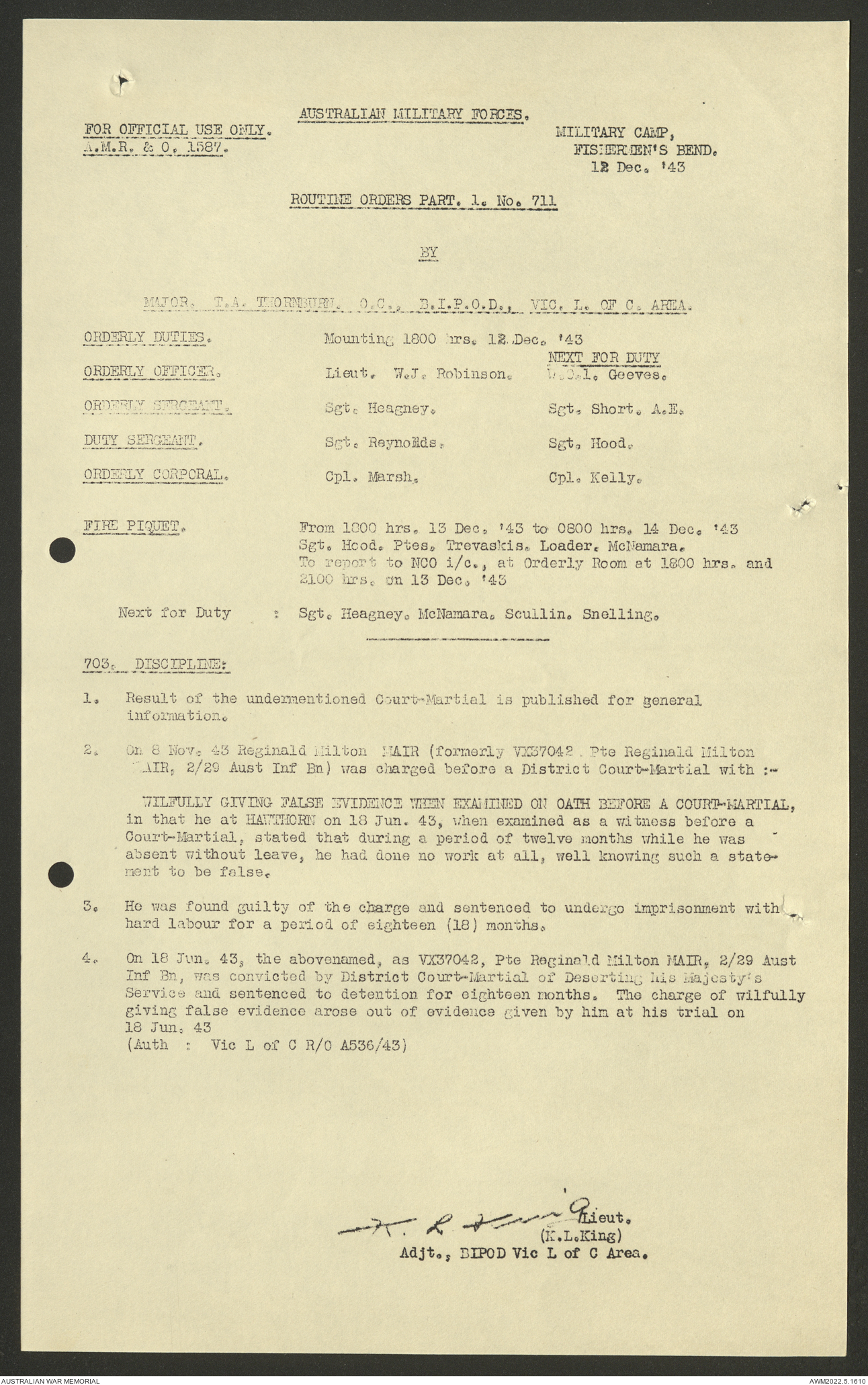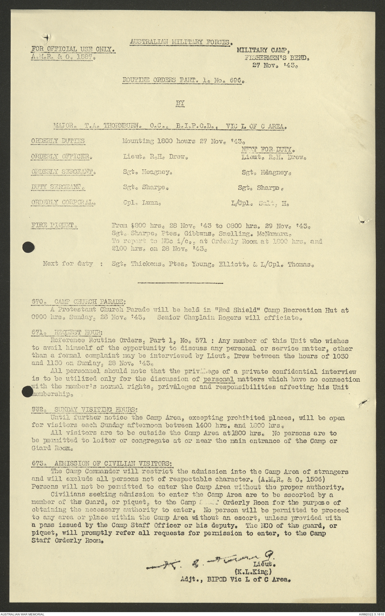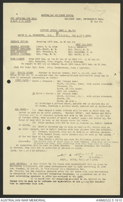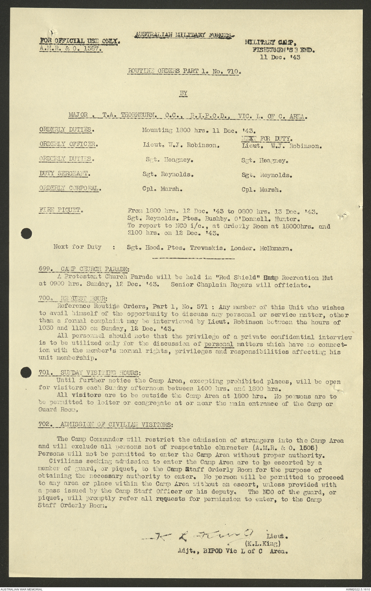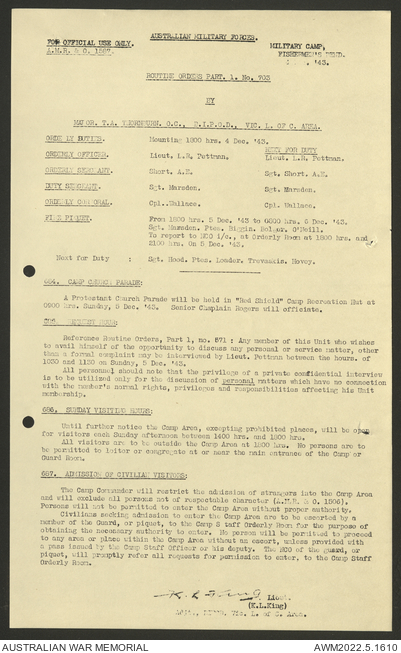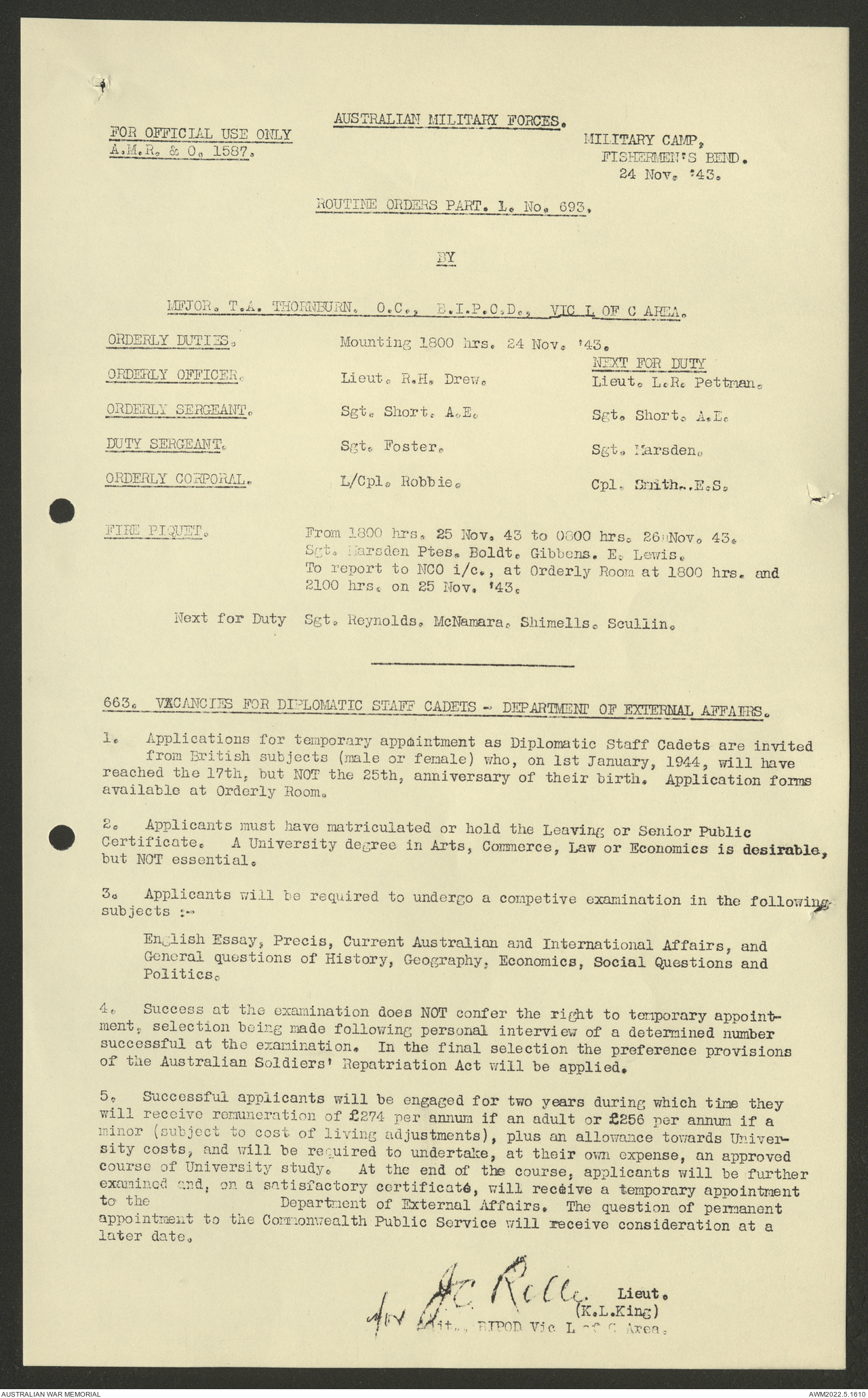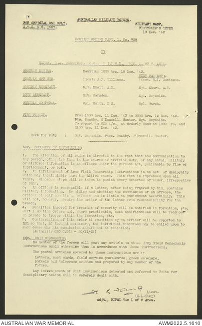 AWM52 10/19/5/12 - [Unit War Diaries, 1939-45 War] Victoria L of C [Lines of Communication] BIPOD [Bulk Issue Petrol and Oil Depot] November - December 1943