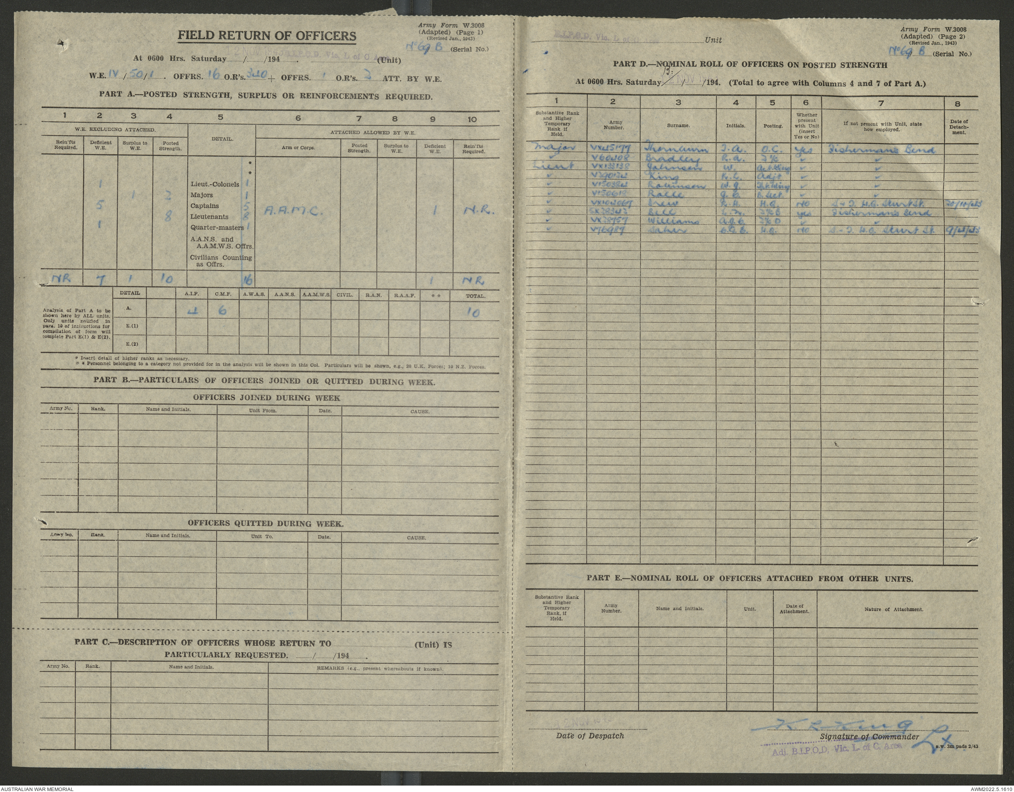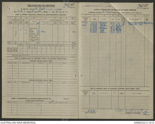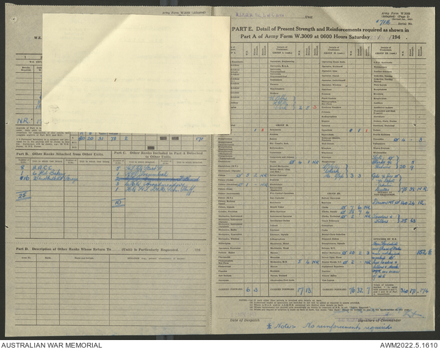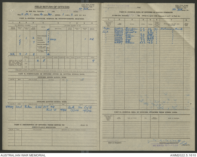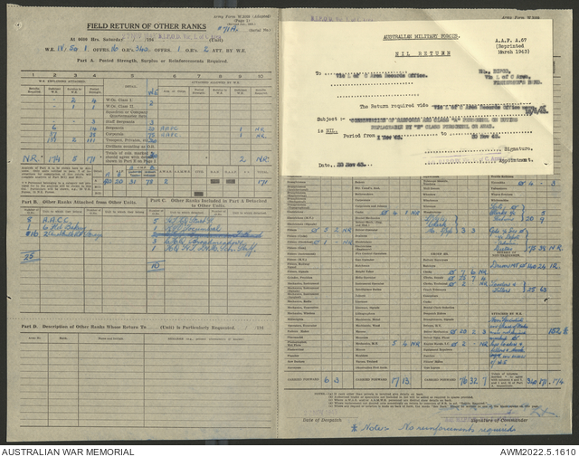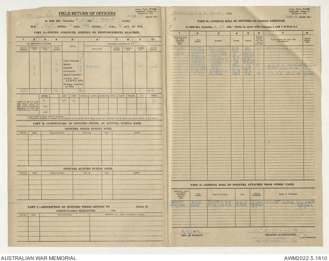 2nd AIF (Australian Imperial Force) and CMF (Citizen Military Forces) unit war diaries, 1939-45 War