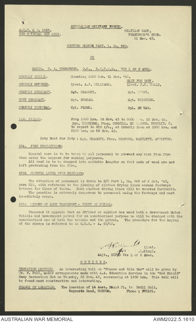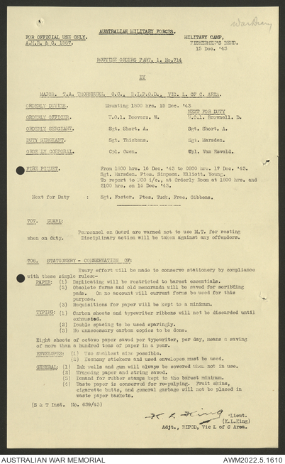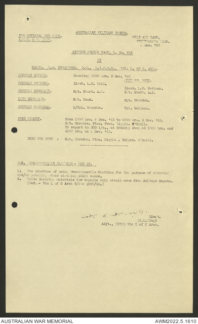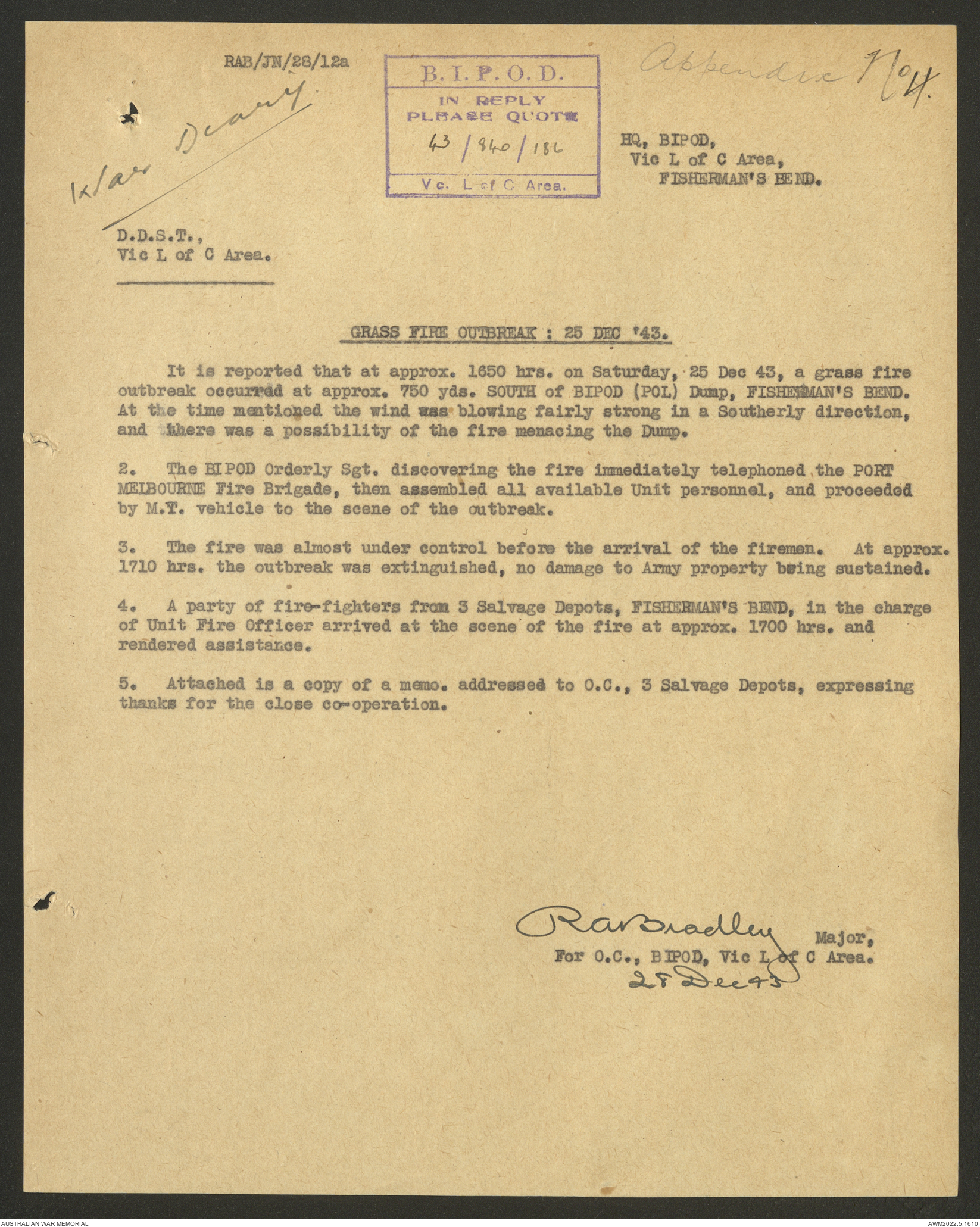 - AWM52 10/19/5 - Victoria Lines of Communication Bulk Issue Petrol and Oil Depot