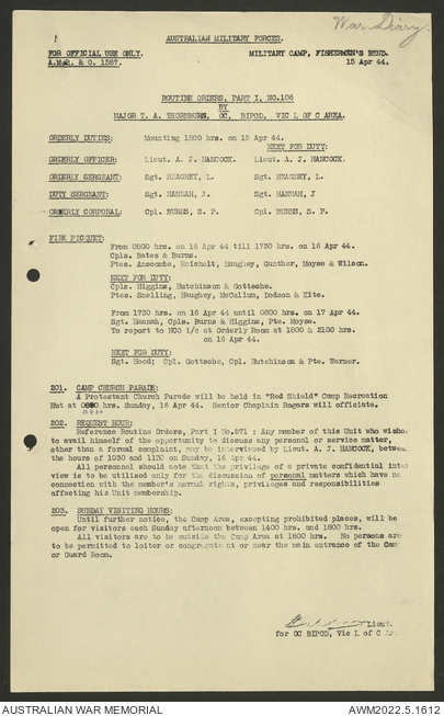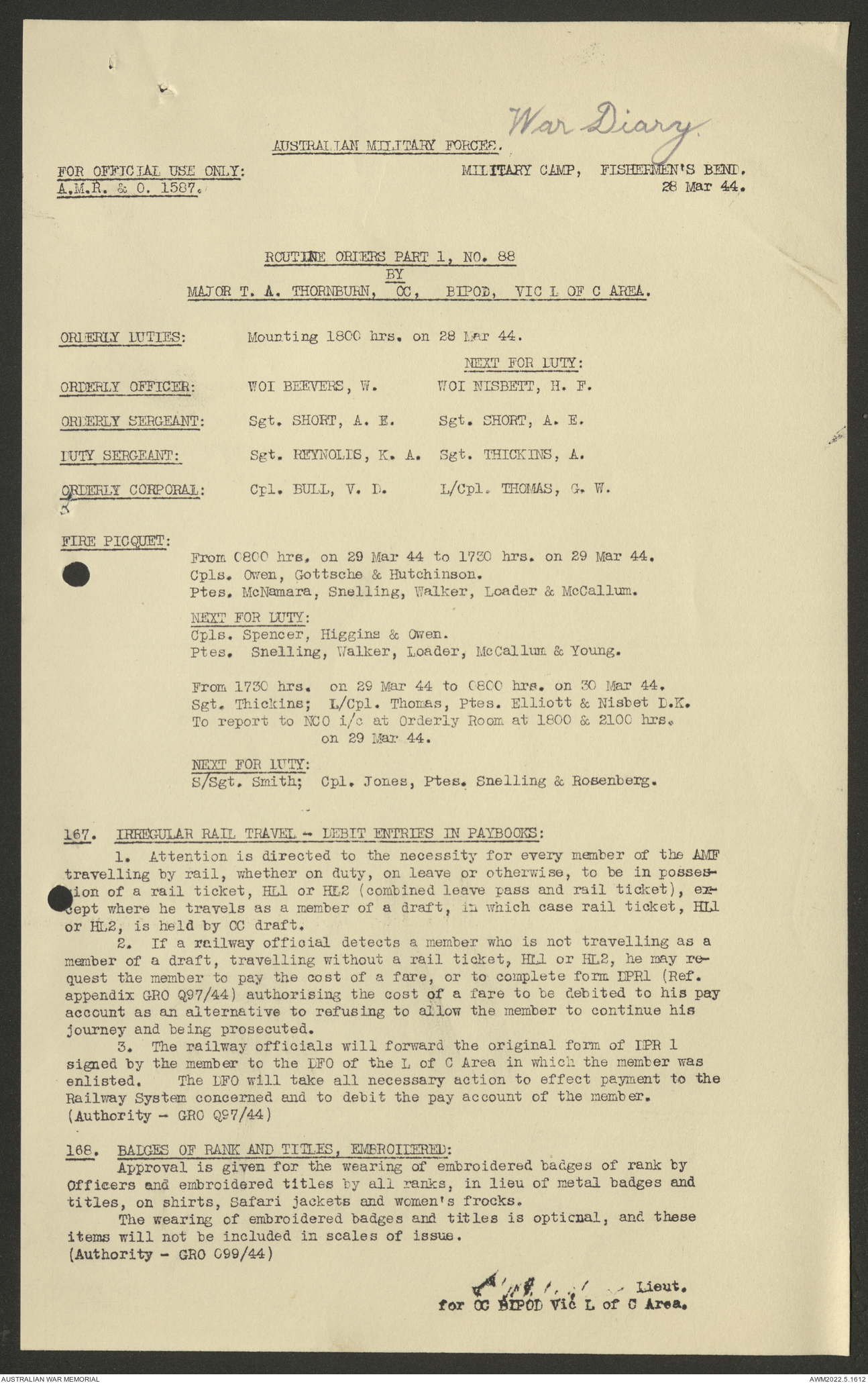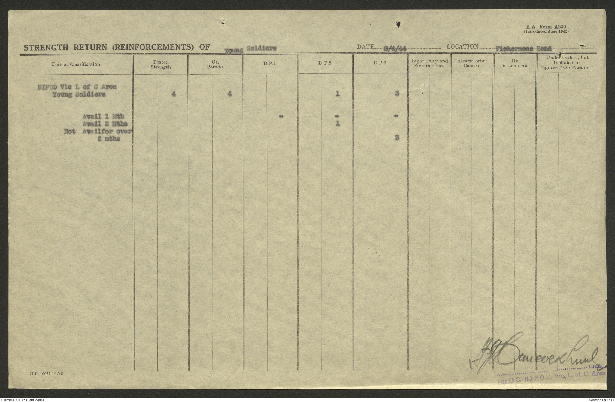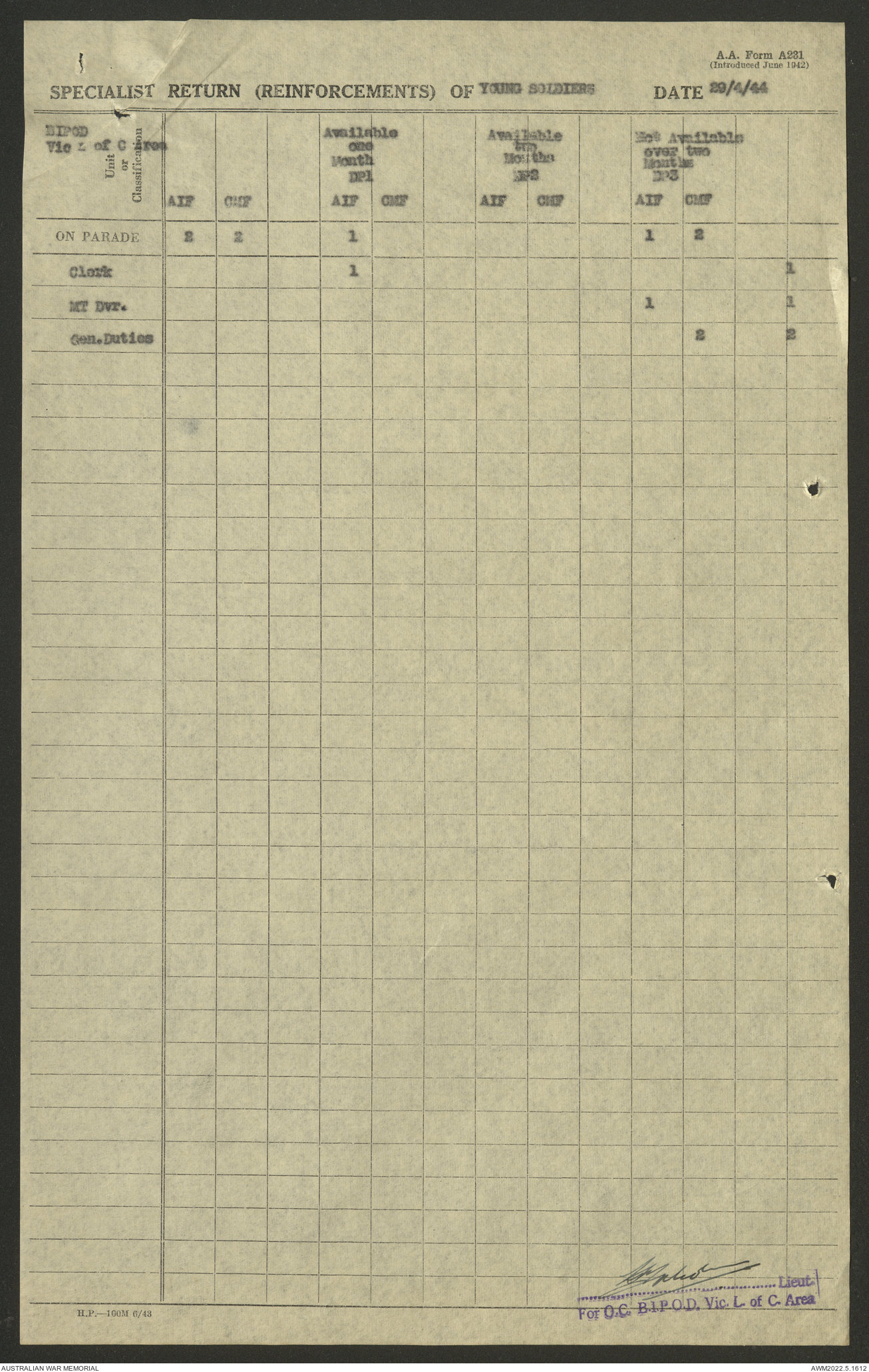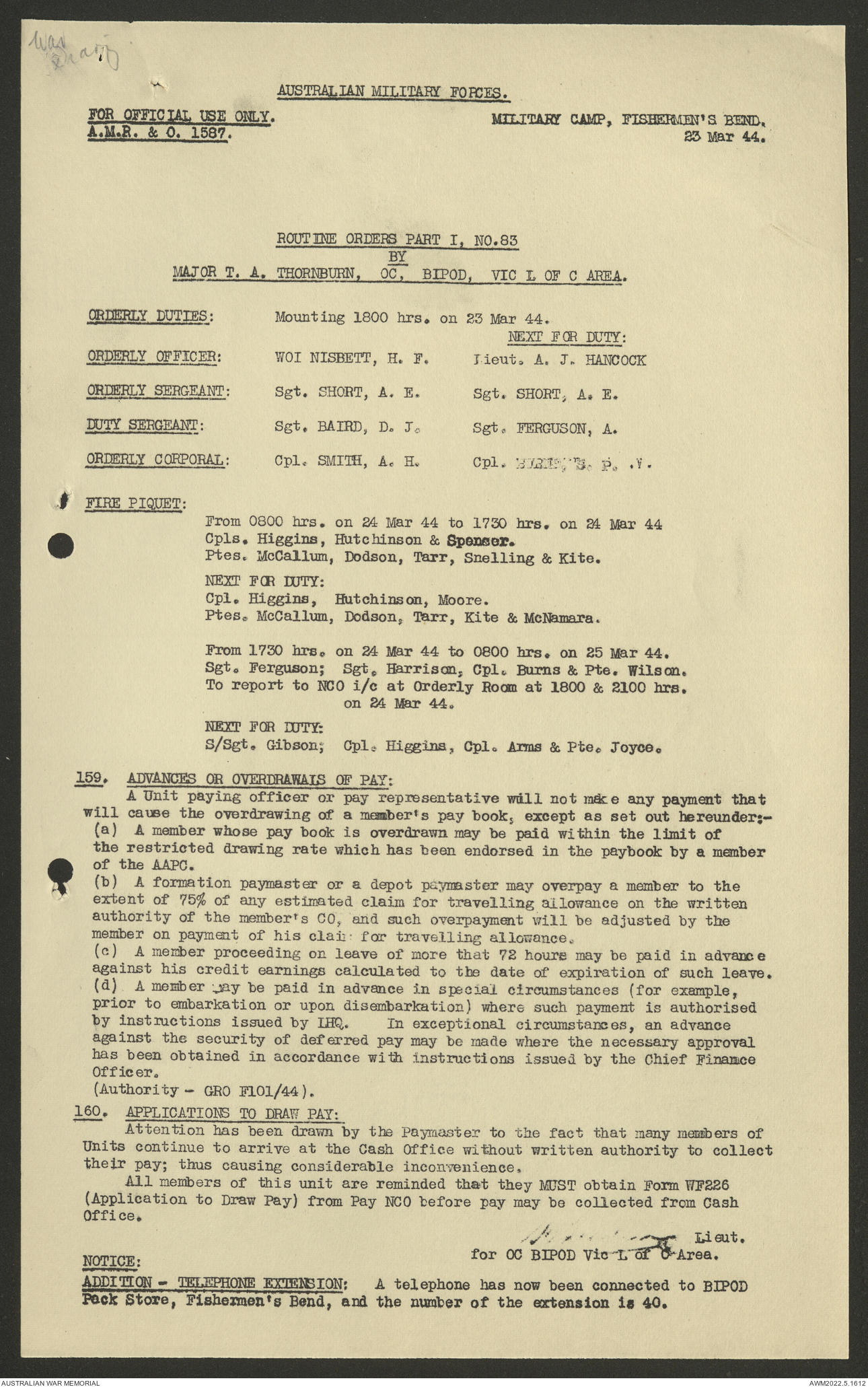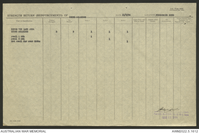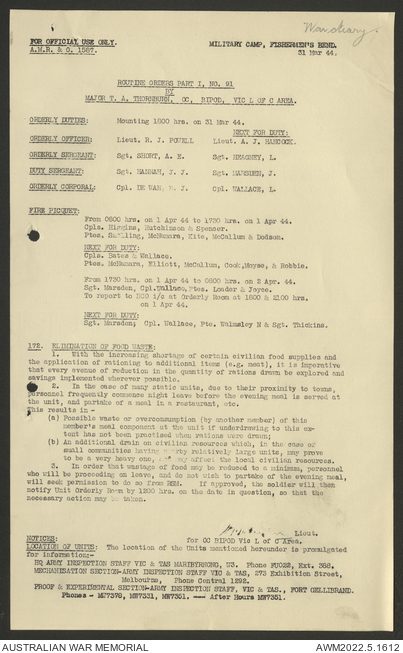 AWM52 10/19/5/14 - [Unit War Diaries, 1939-45 War] Victoria L of C [Lines of Communication] BIPOD [Bulk Issue Petrol and Oil Depot] March - April 1944