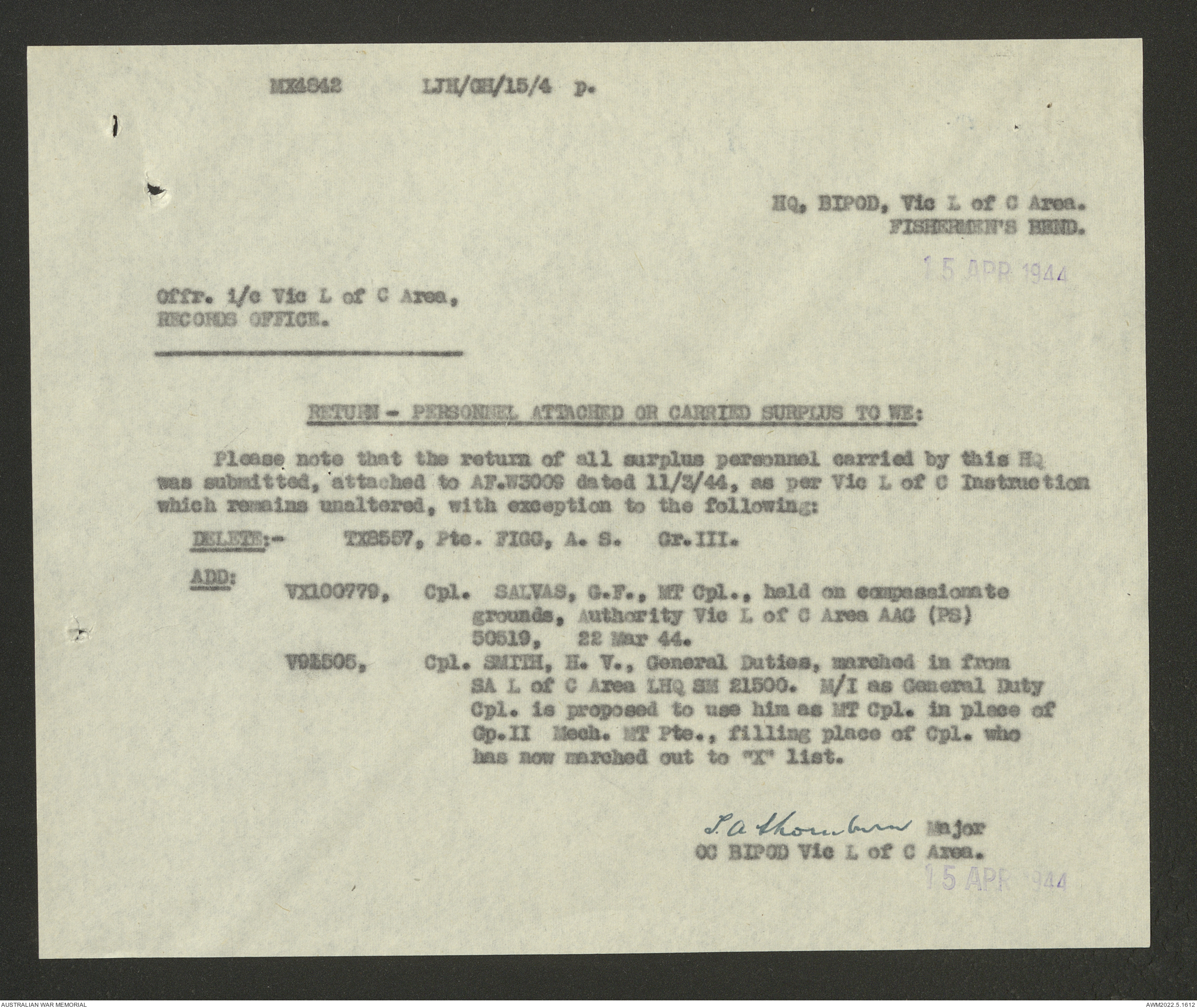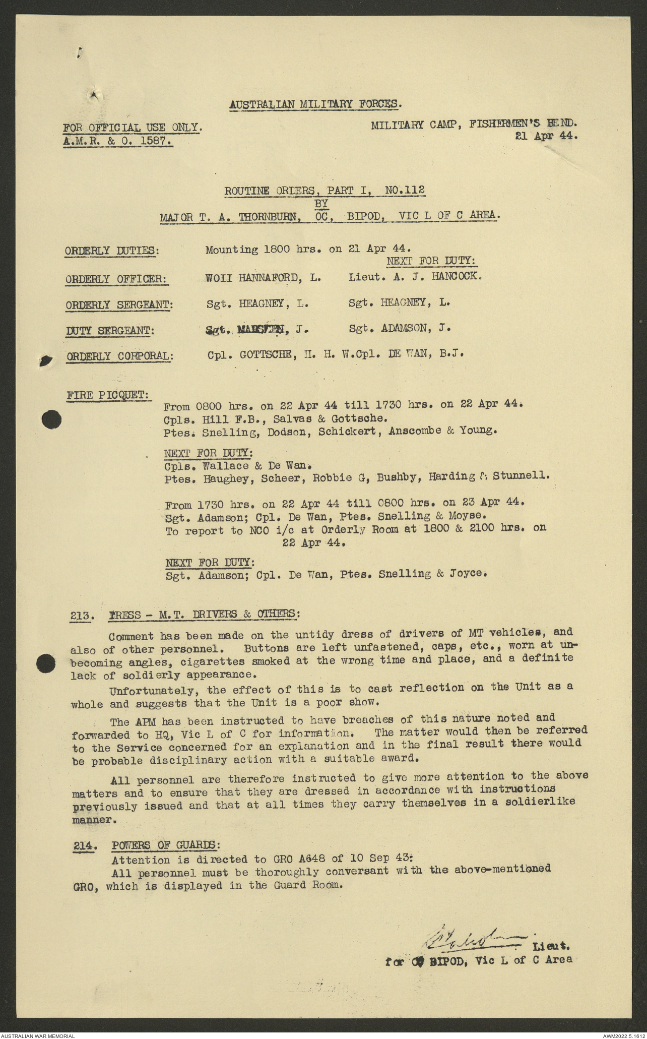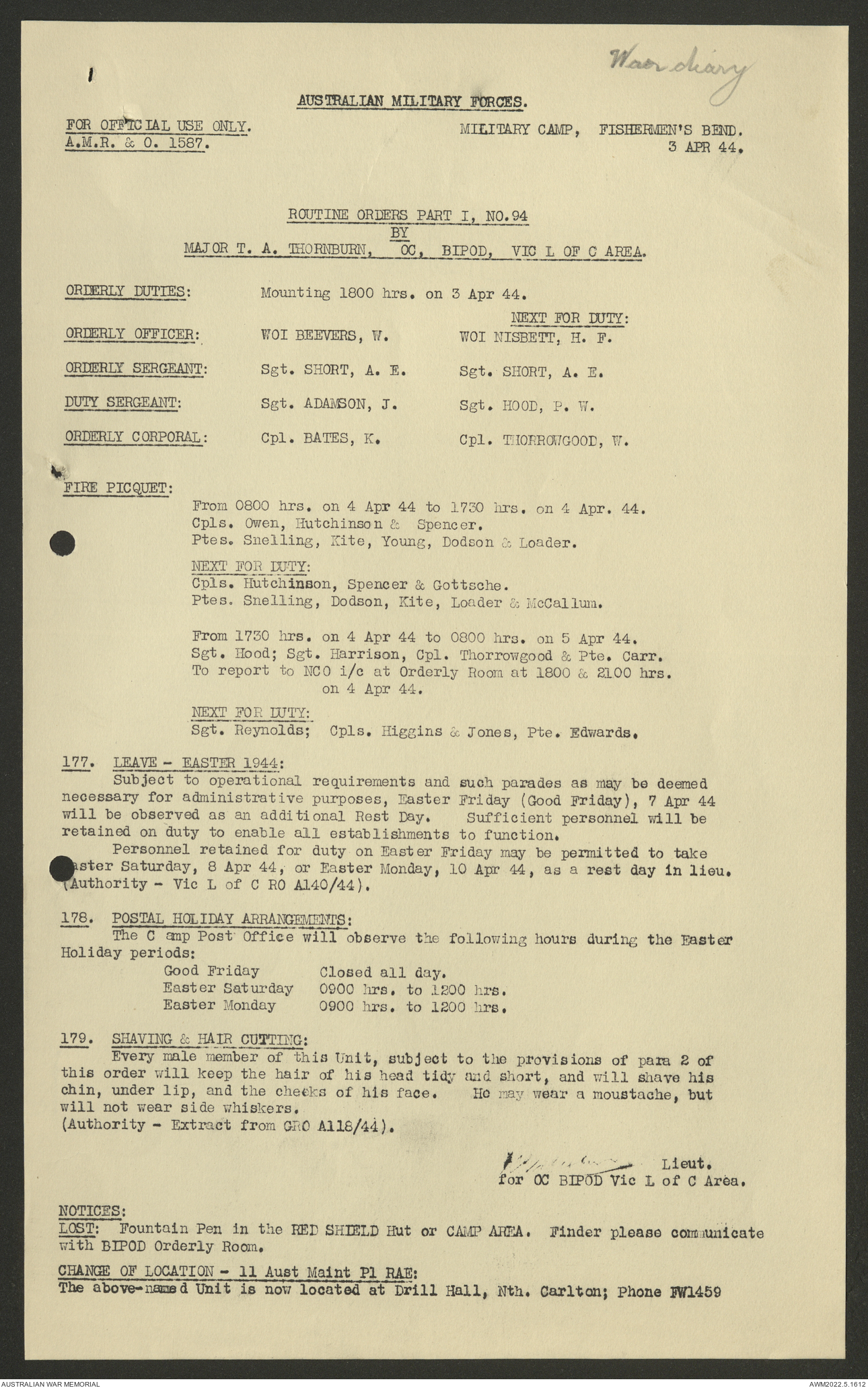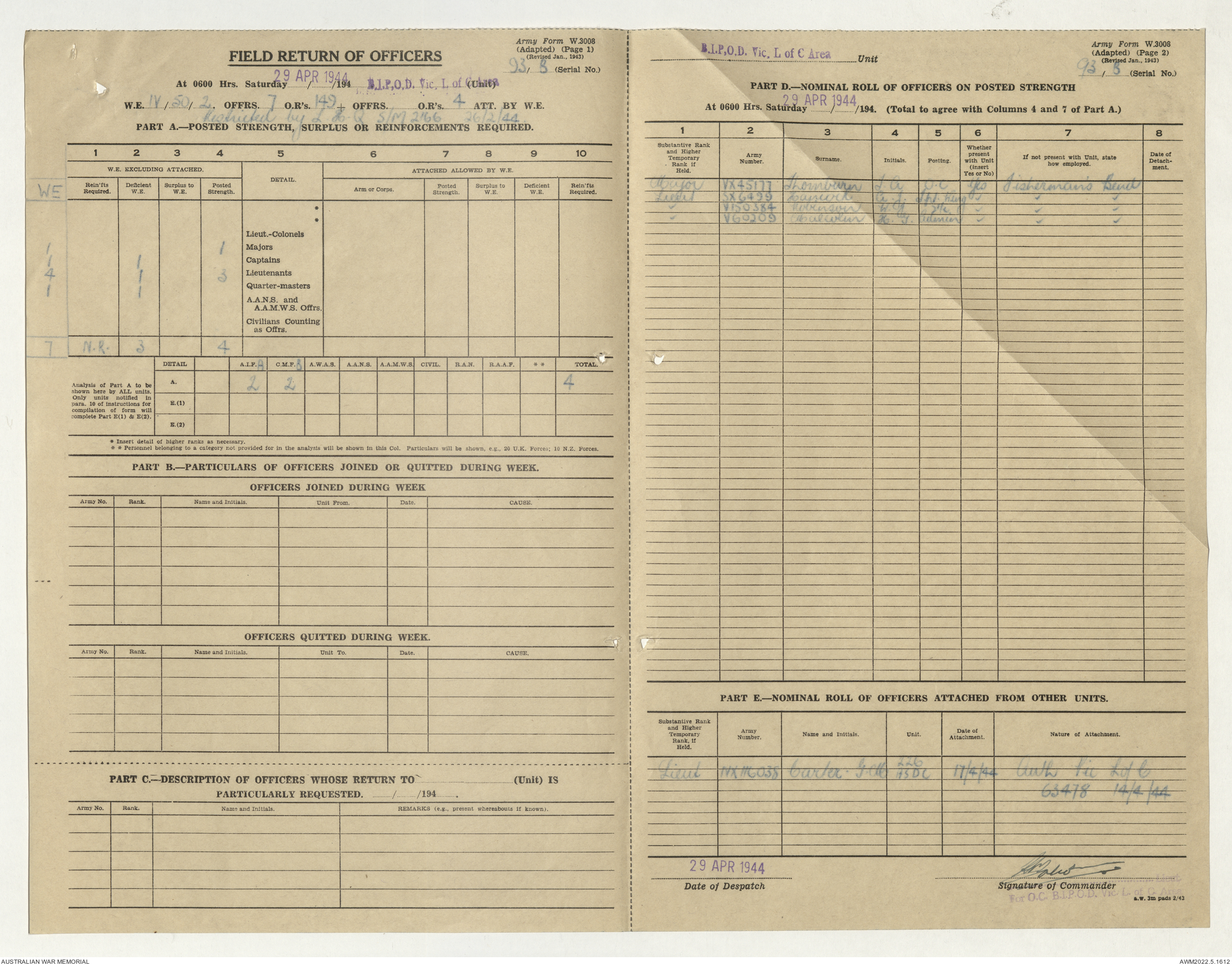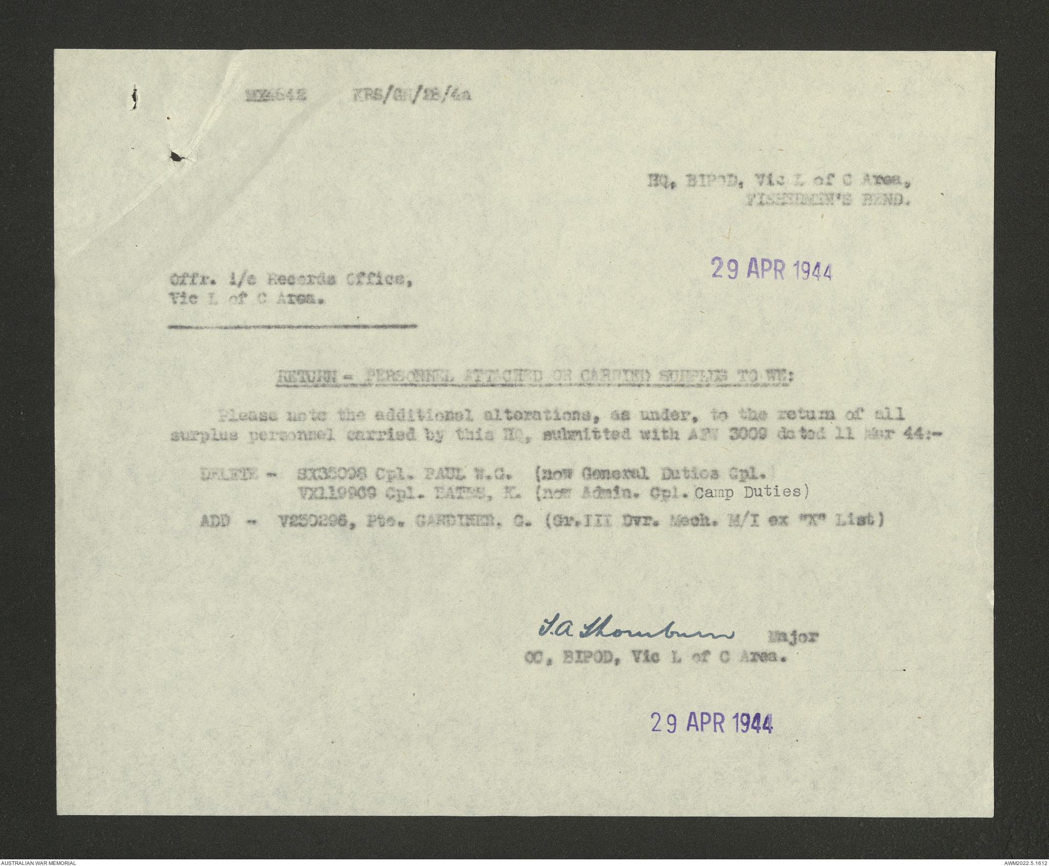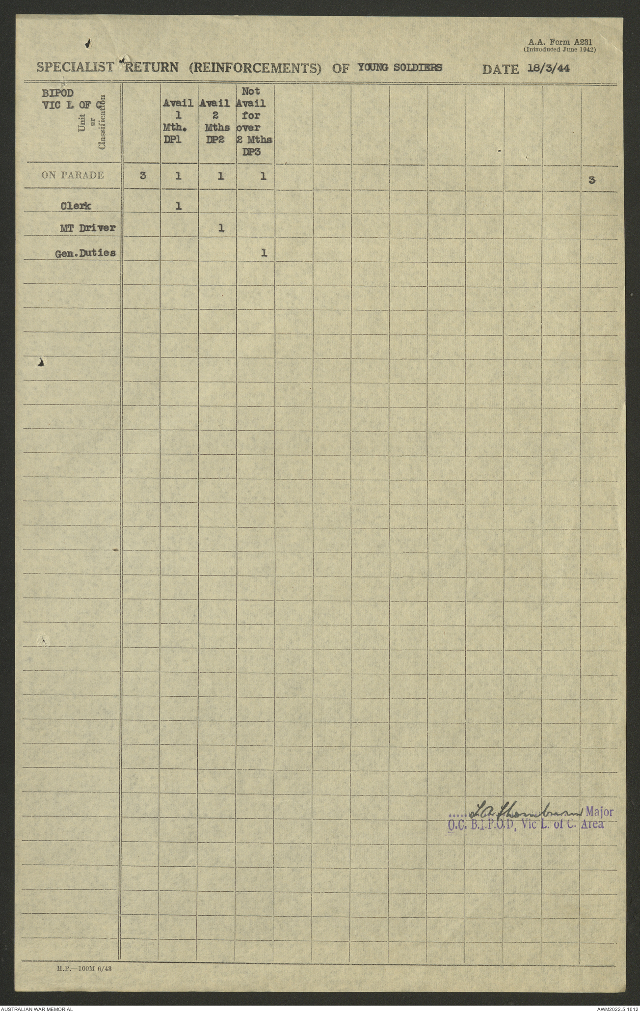 AWM52 10/19/5/14 - [Unit War Diaries, 1939-45 War] Victoria L of C [Lines of Communication] BIPOD [Bulk Issue Petrol and Oil Depot] March - April 1944