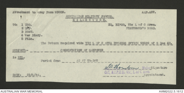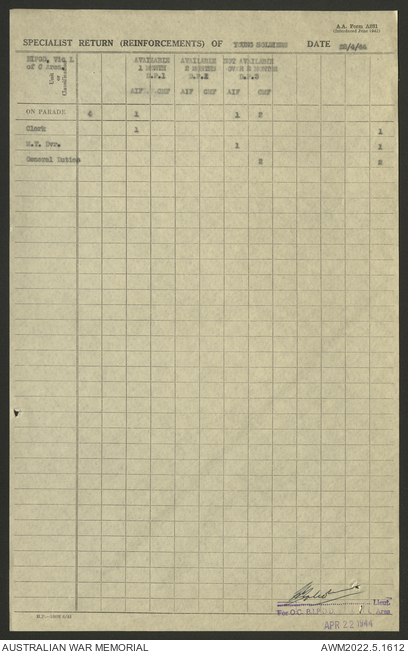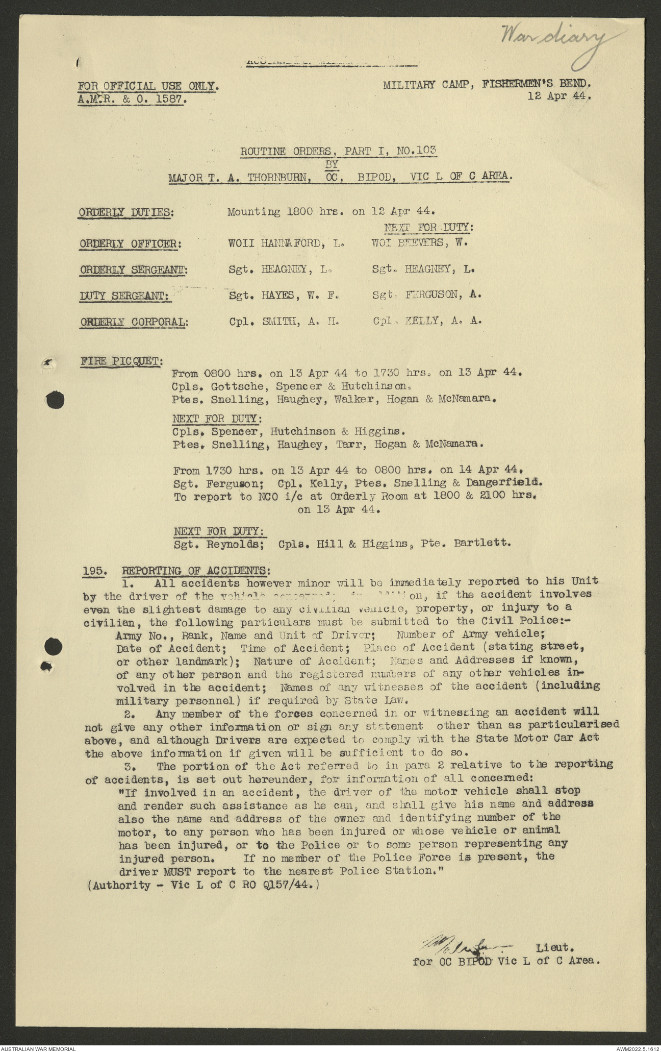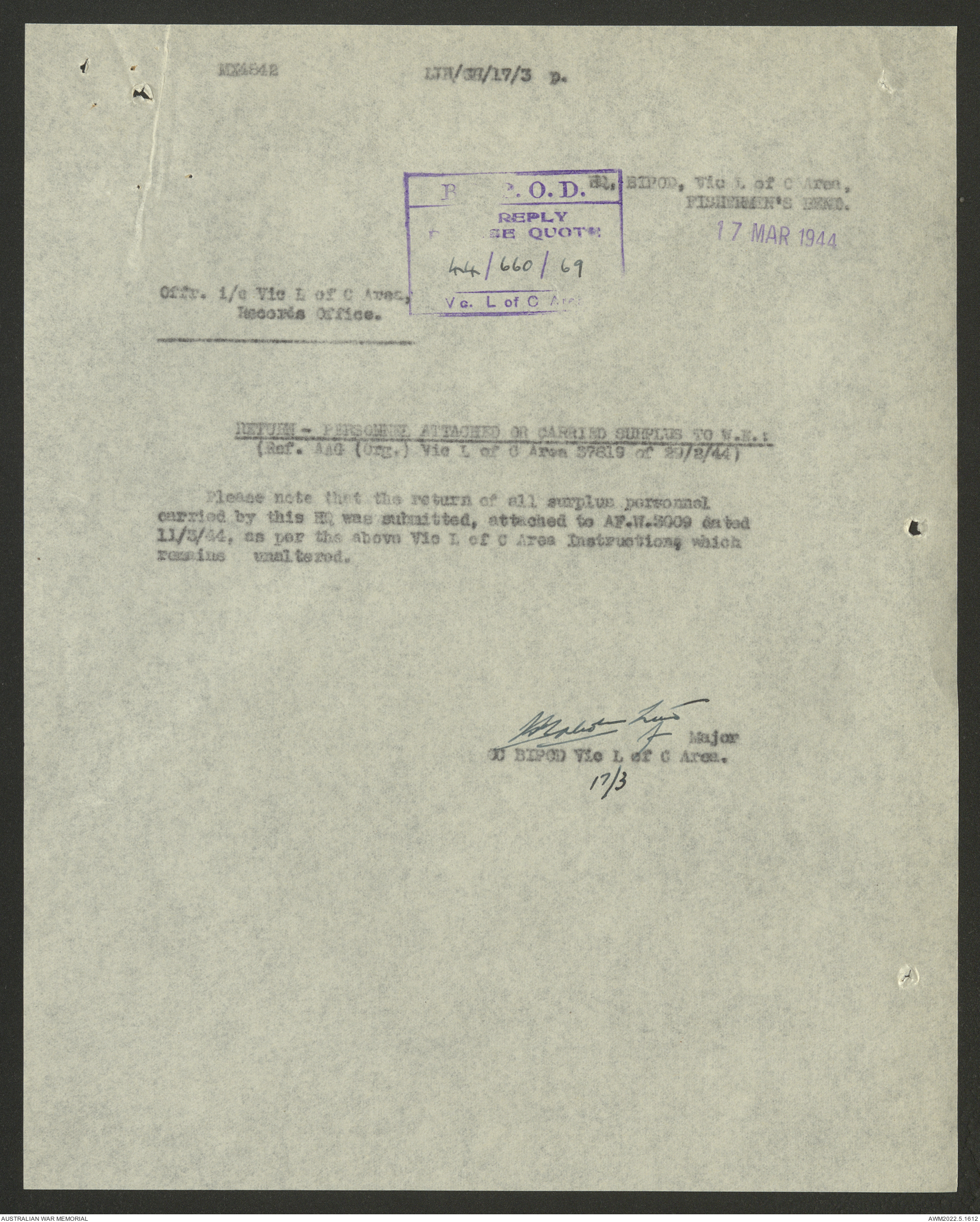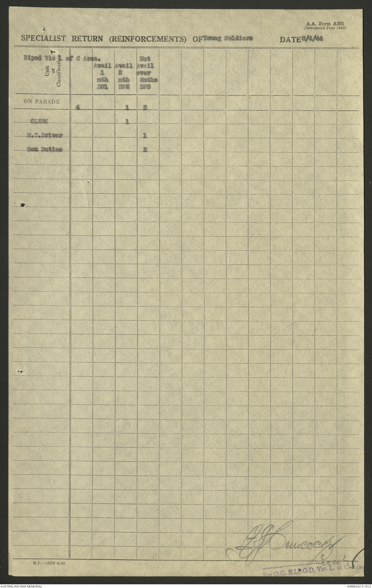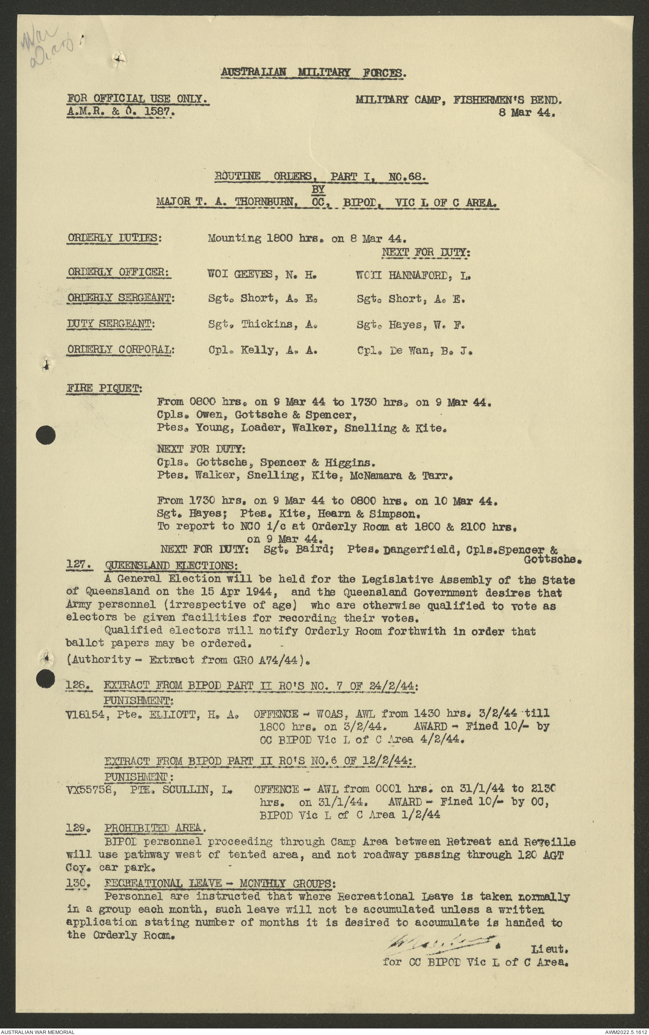 AWM52 10/19/5/14 - [Unit War Diaries, 1939-45 War] Victoria L of C [Lines of Communication] BIPOD [Bulk Issue Petrol and Oil Depot] March - April 1944