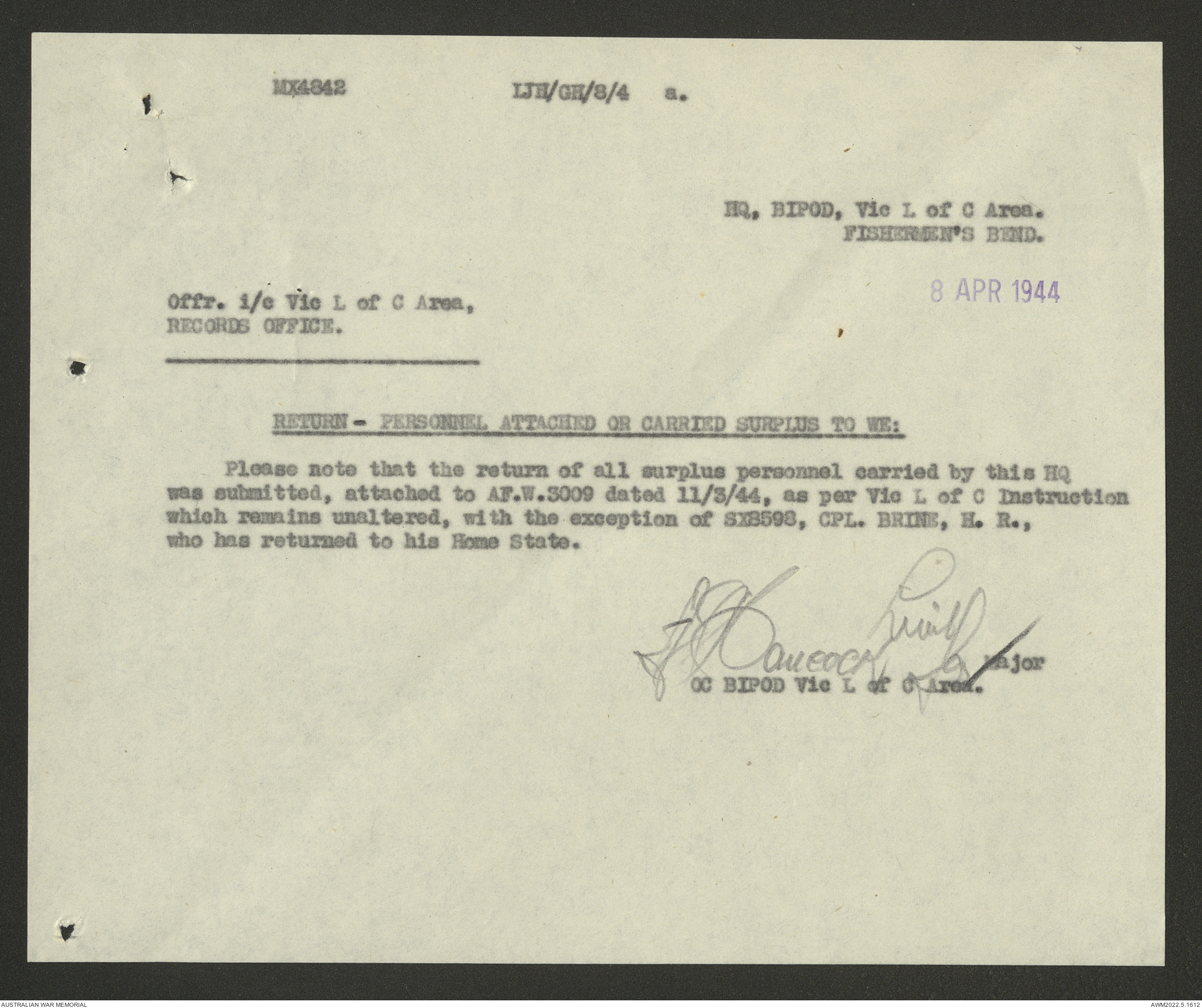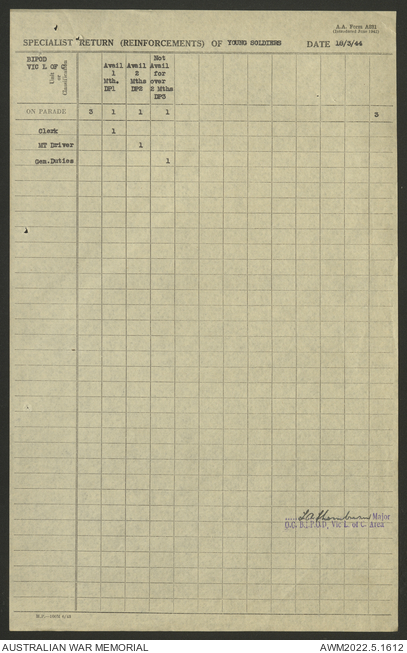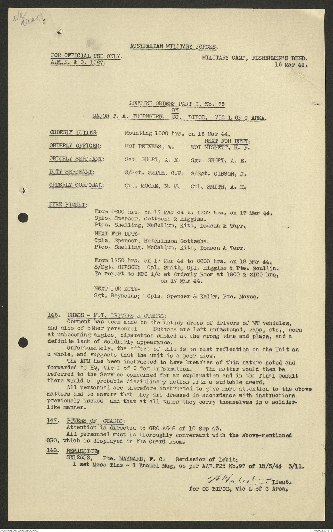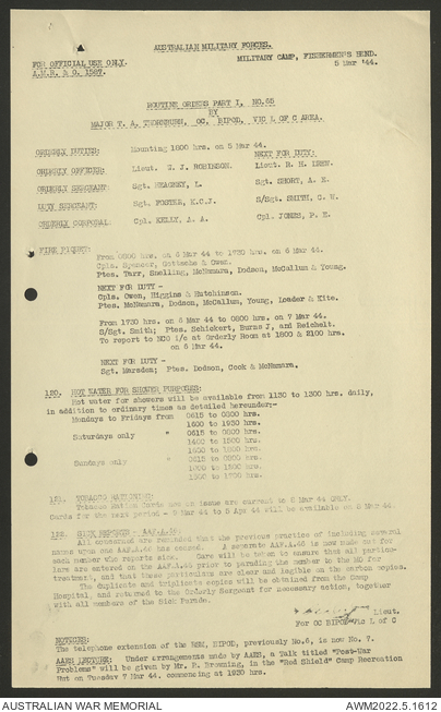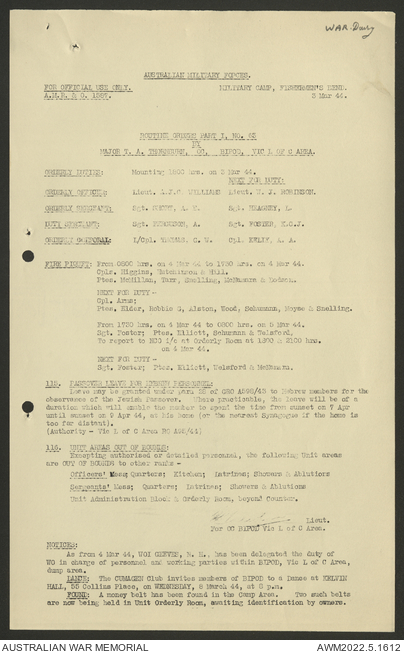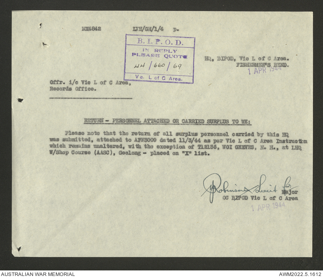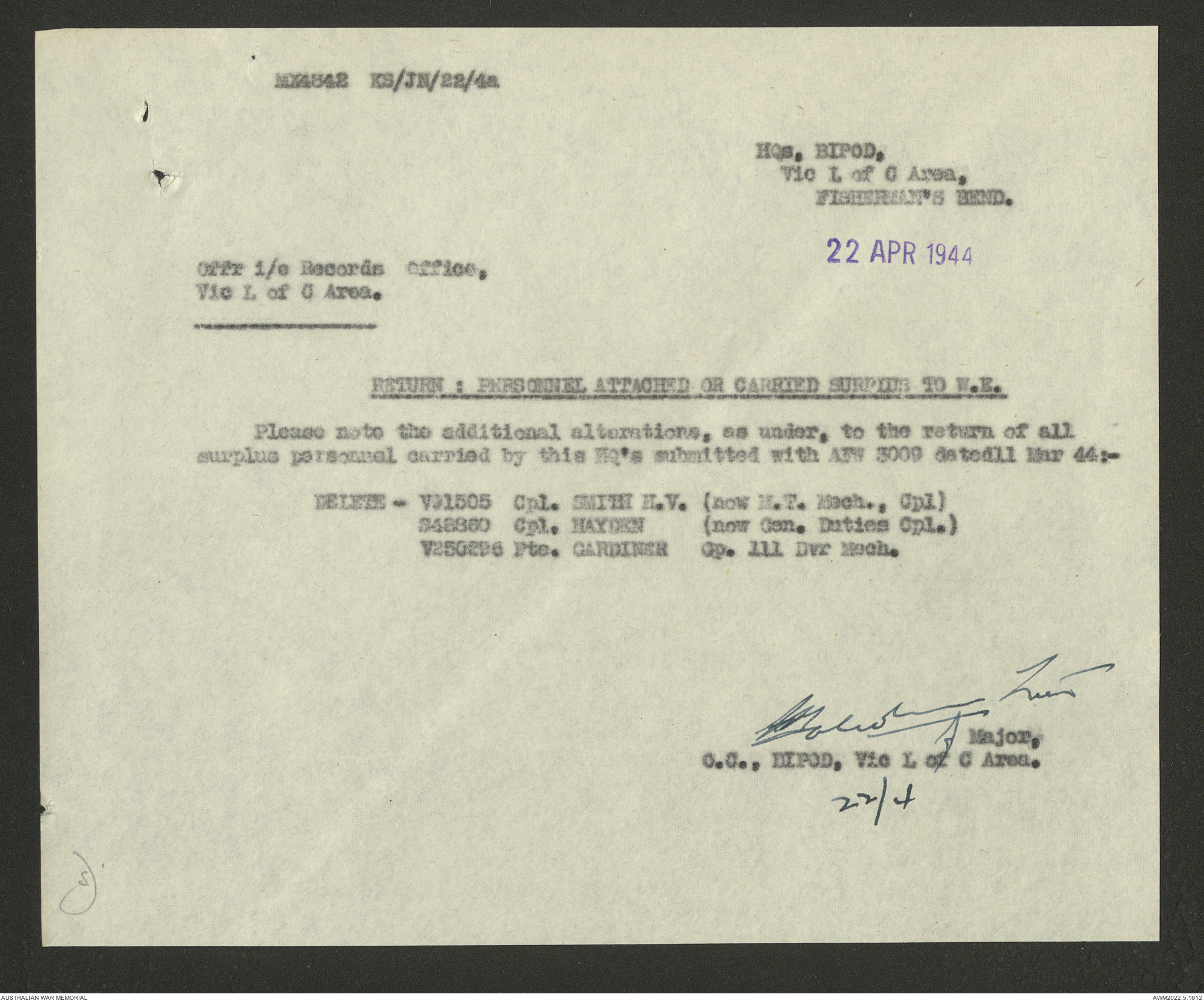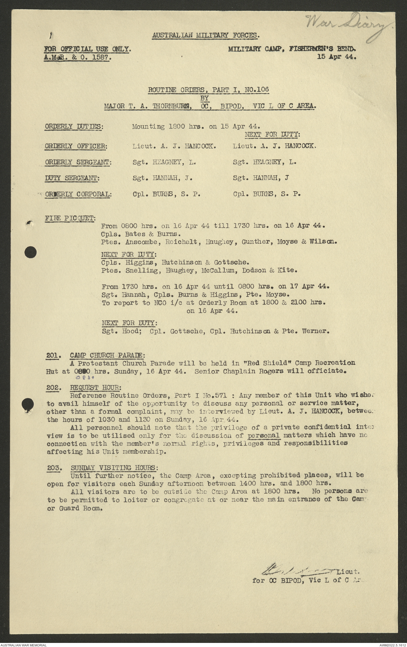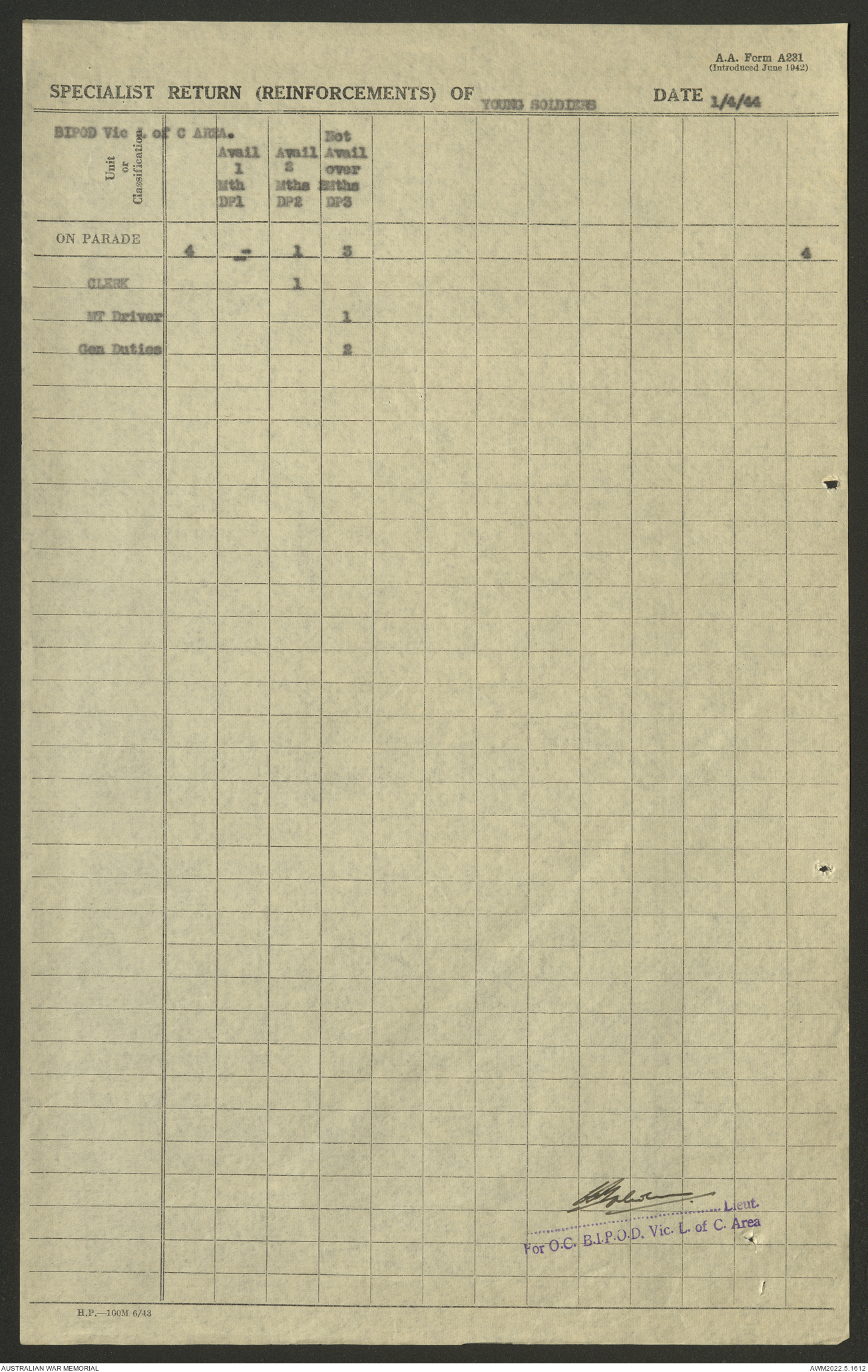 AWM52 10/19/5/14 - [Unit War Diaries, 1939-45 War] Victoria L of C [Lines of Communication] BIPOD [Bulk Issue Petrol and Oil Depot] March - April 1944