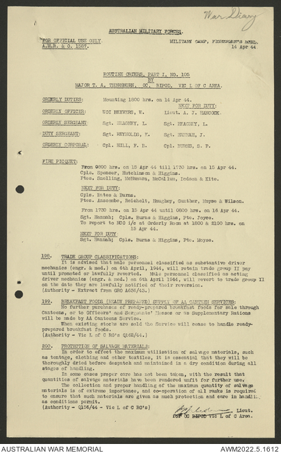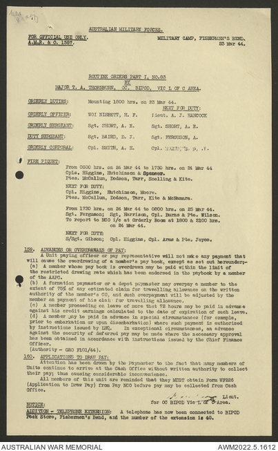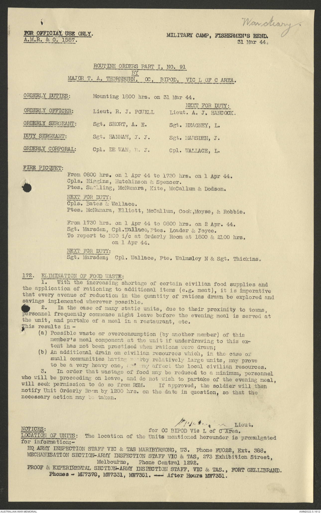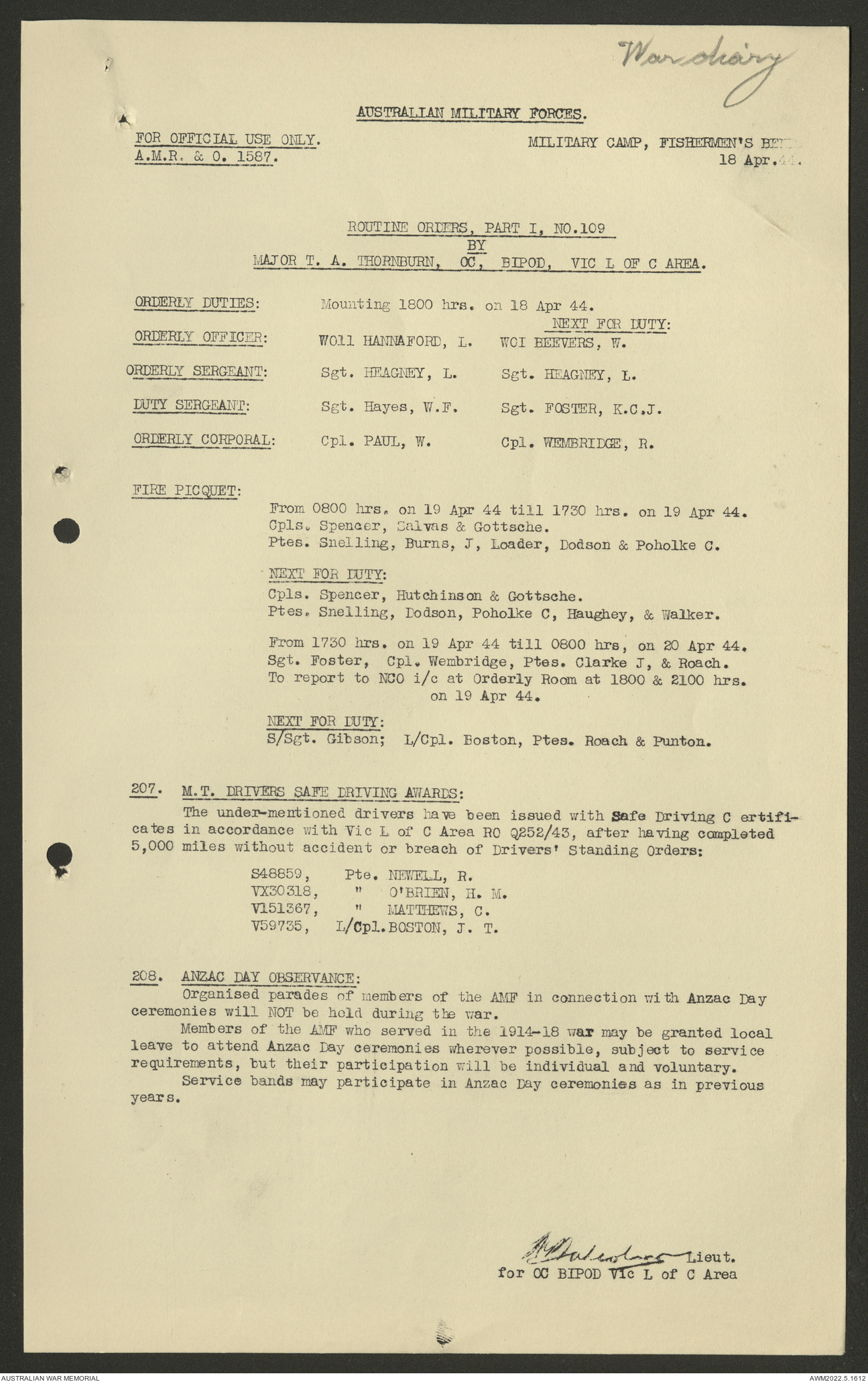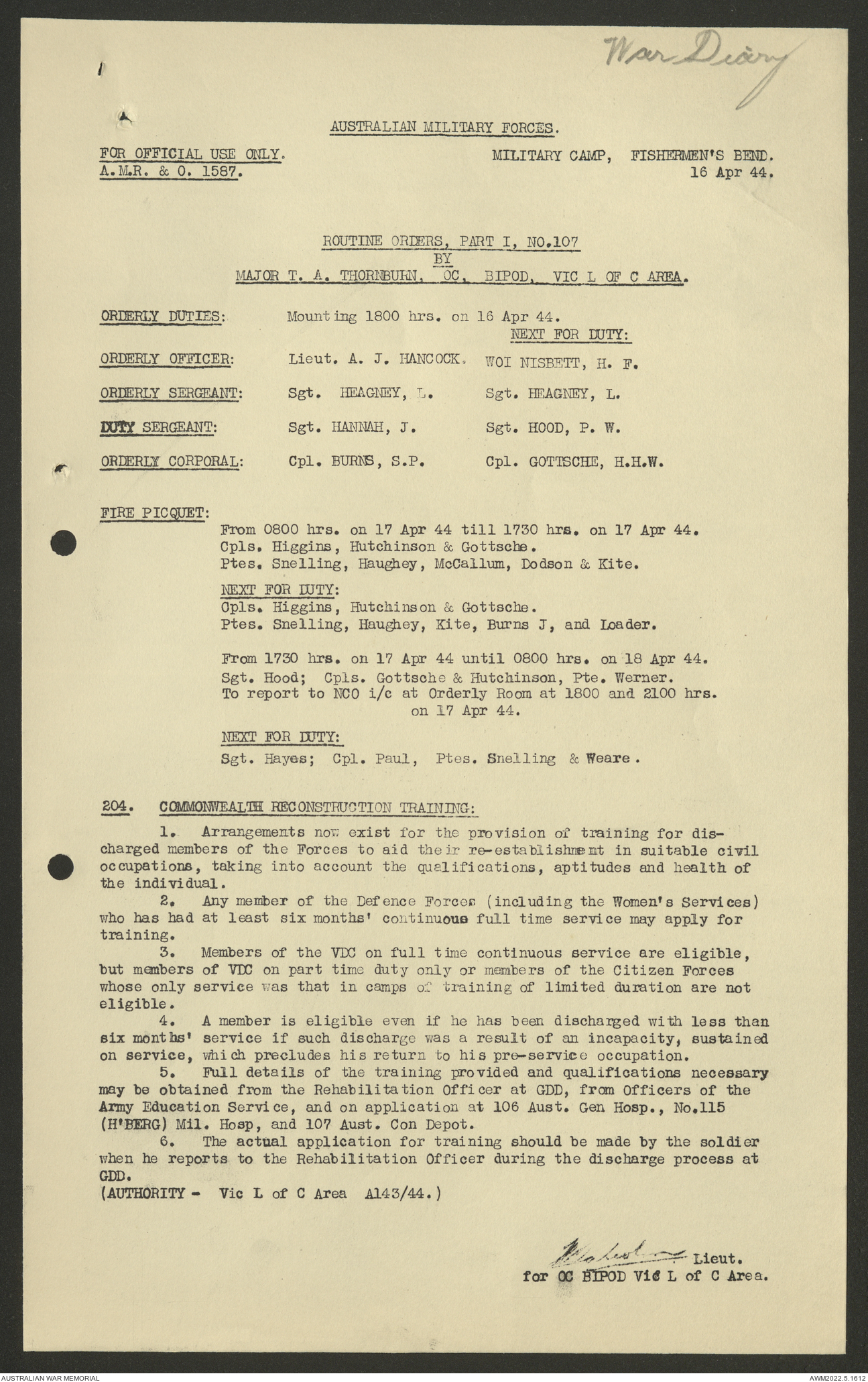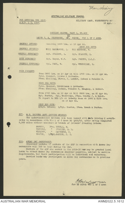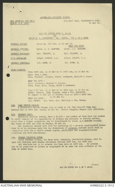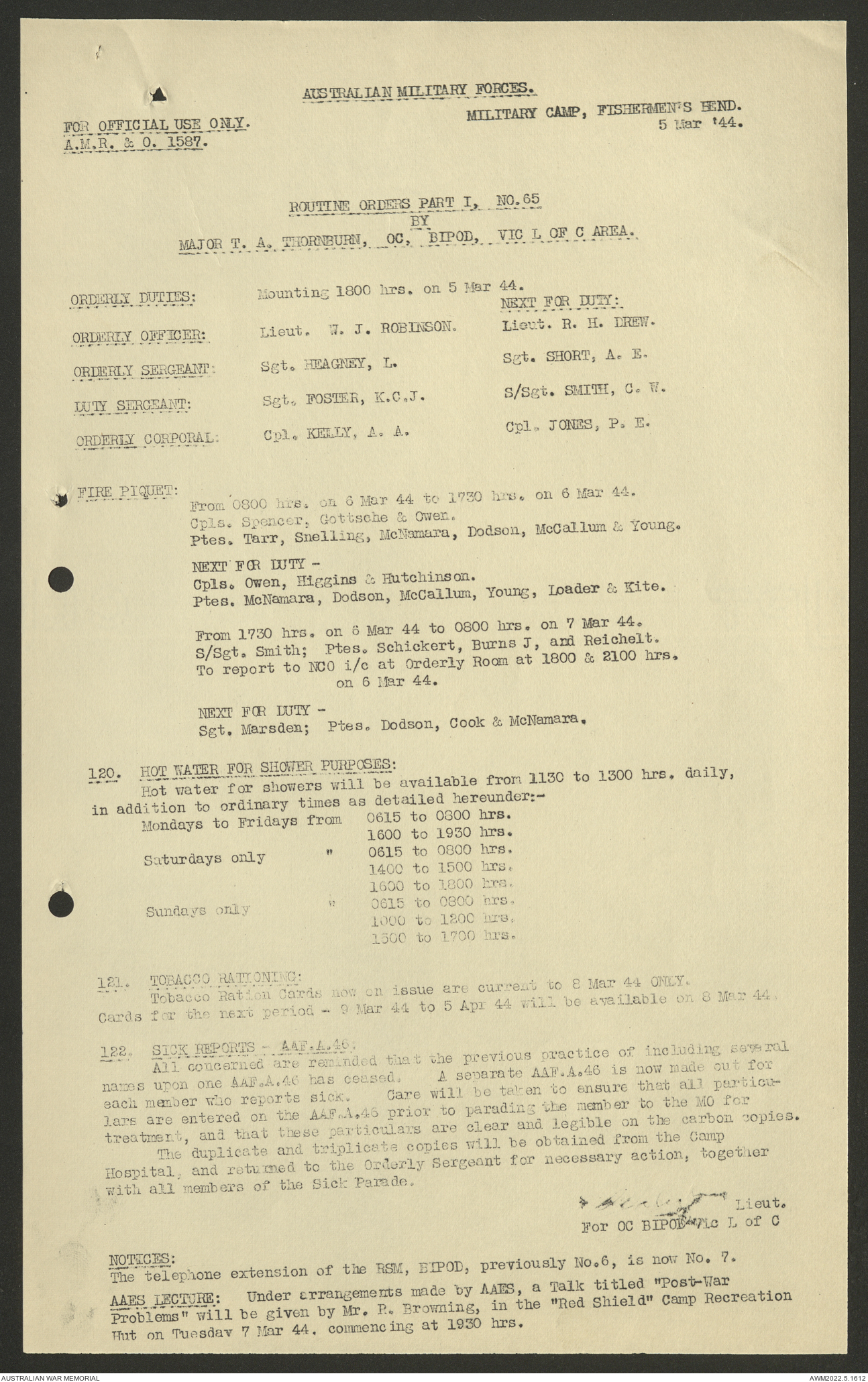 AWM52 10/19/5/14 - [Unit War Diaries, 1939-45 War] Victoria L of C [Lines of Communication] BIPOD [Bulk Issue Petrol and Oil Depot] March - April 1944