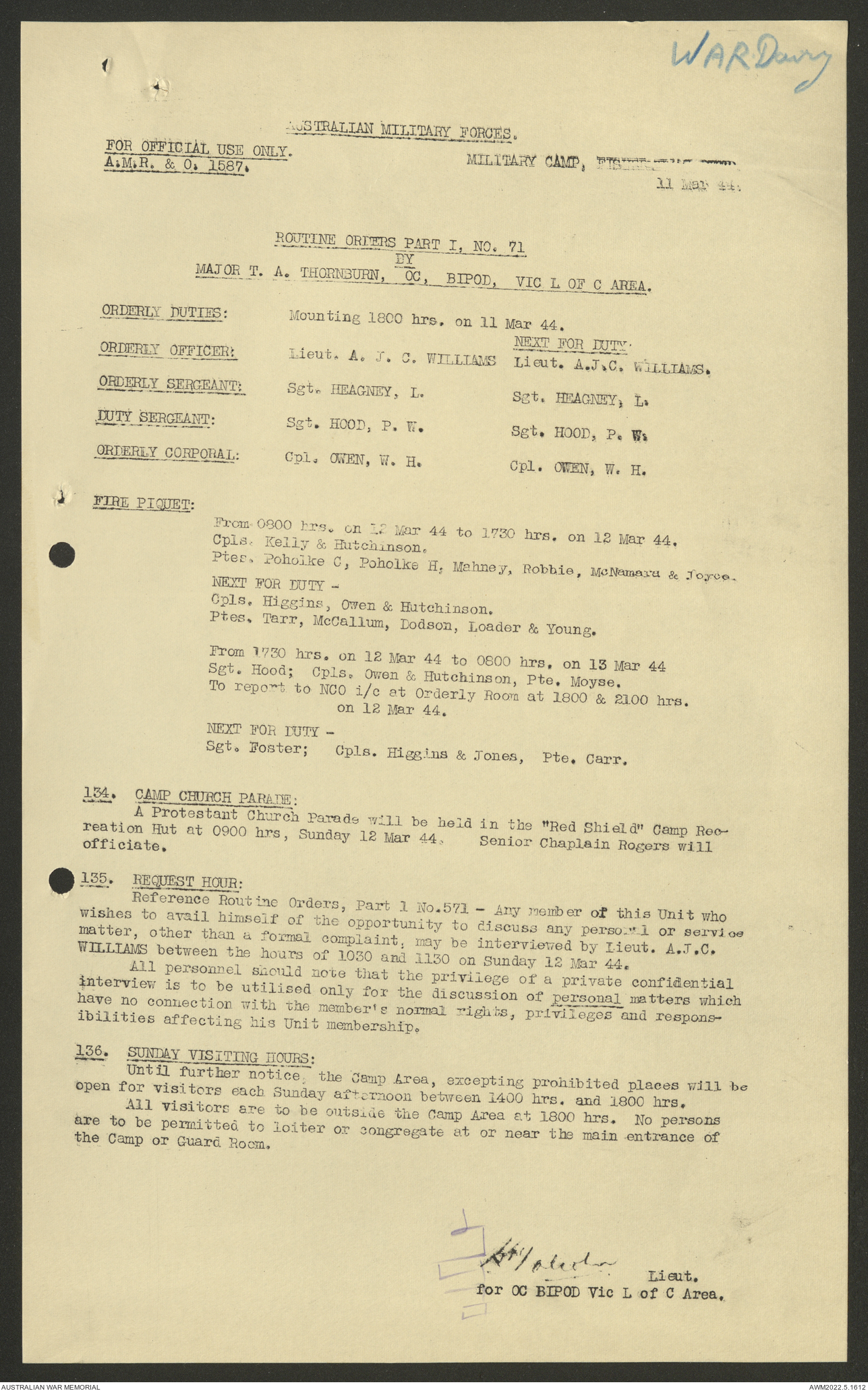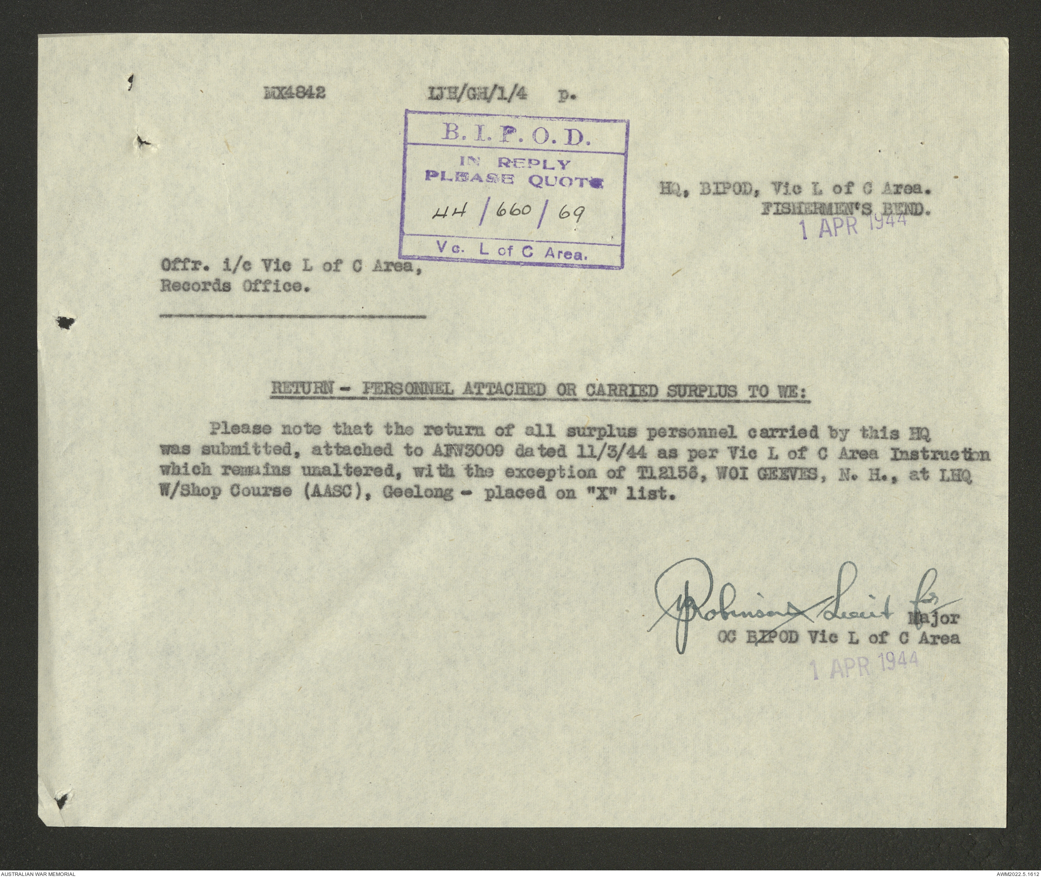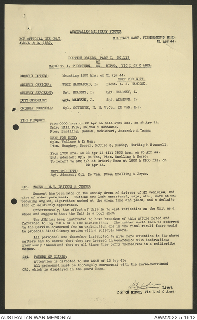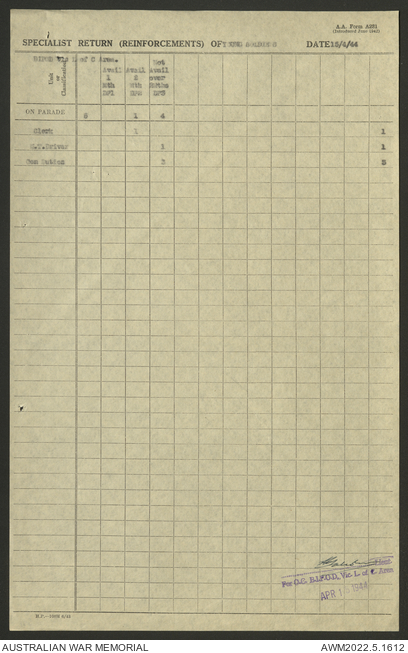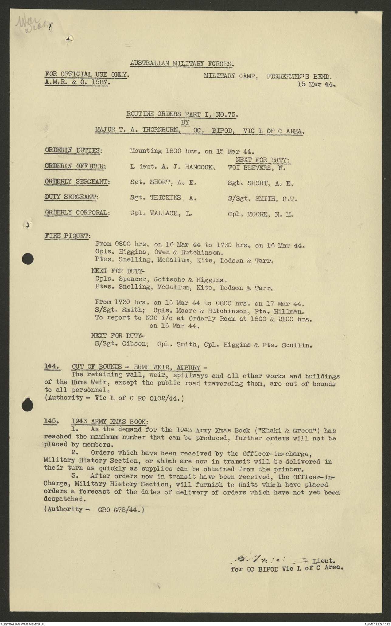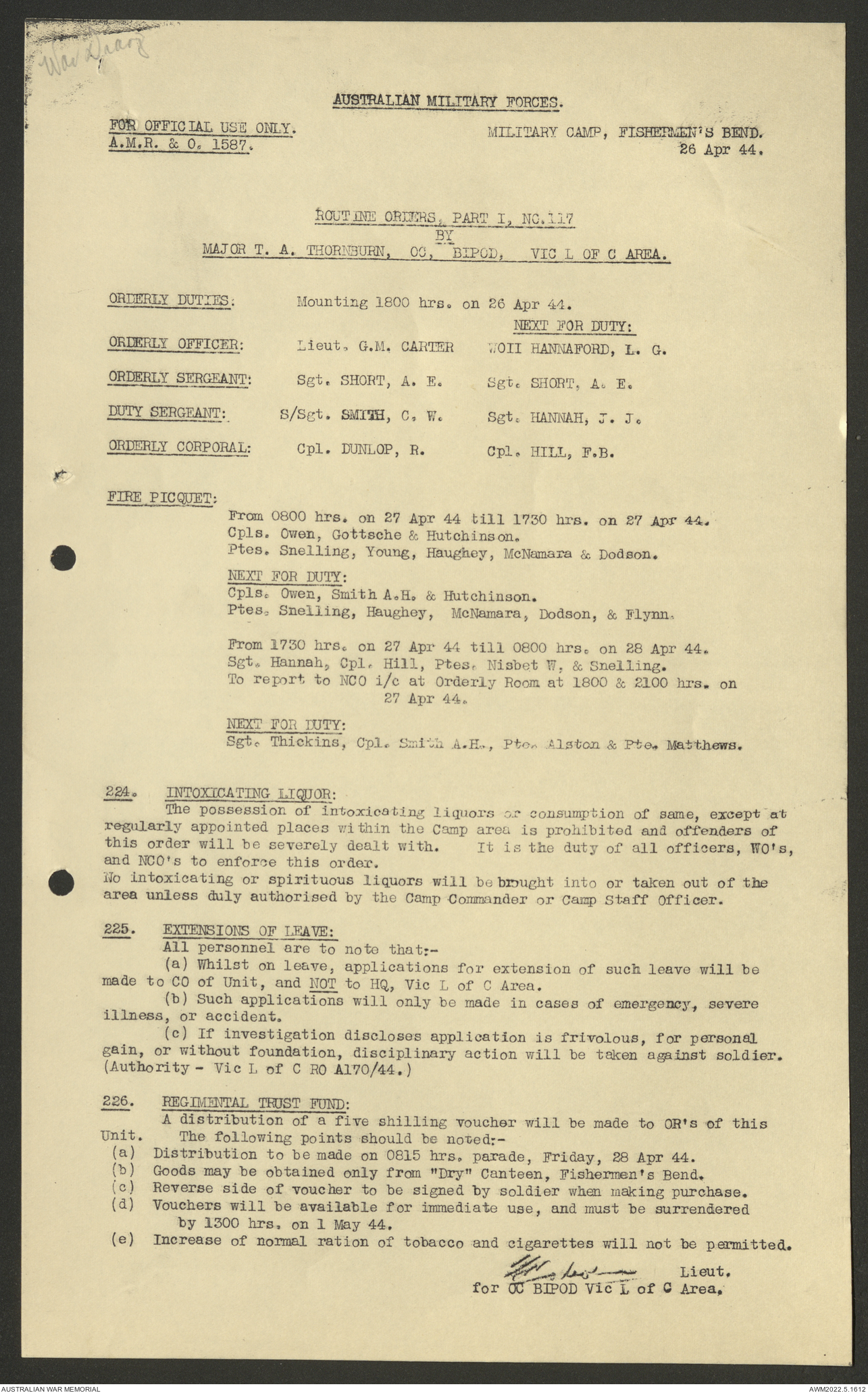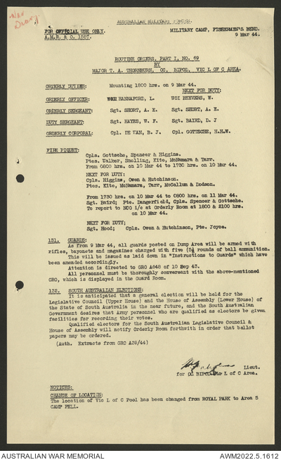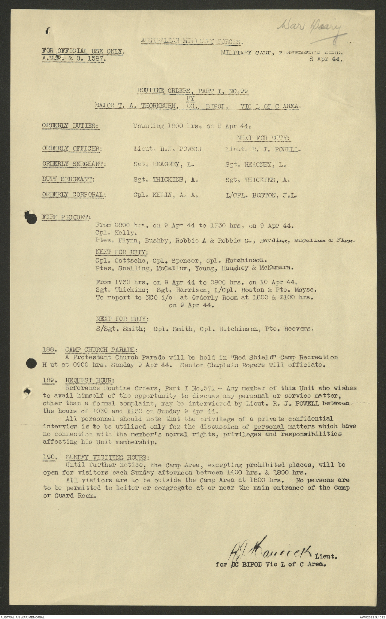 AWM52 10/19/5/14 - [Unit War Diaries, 1939-45 War] Victoria L of C [Lines of Communication] BIPOD [Bulk Issue Petrol and Oil Depot] March - April 1944
