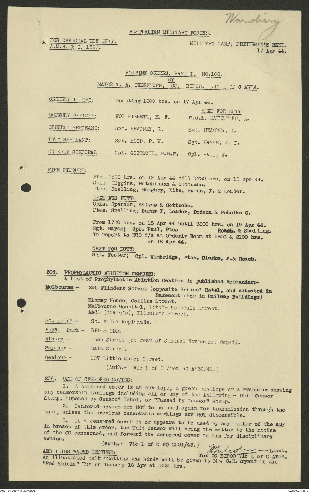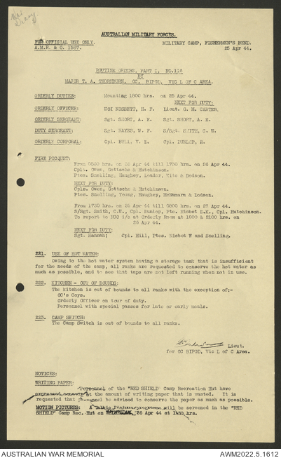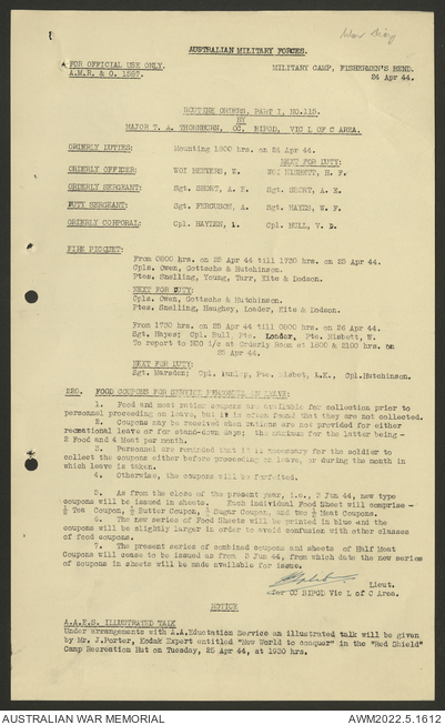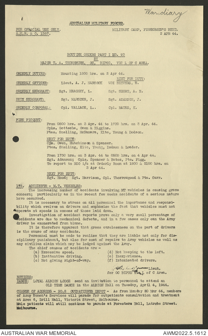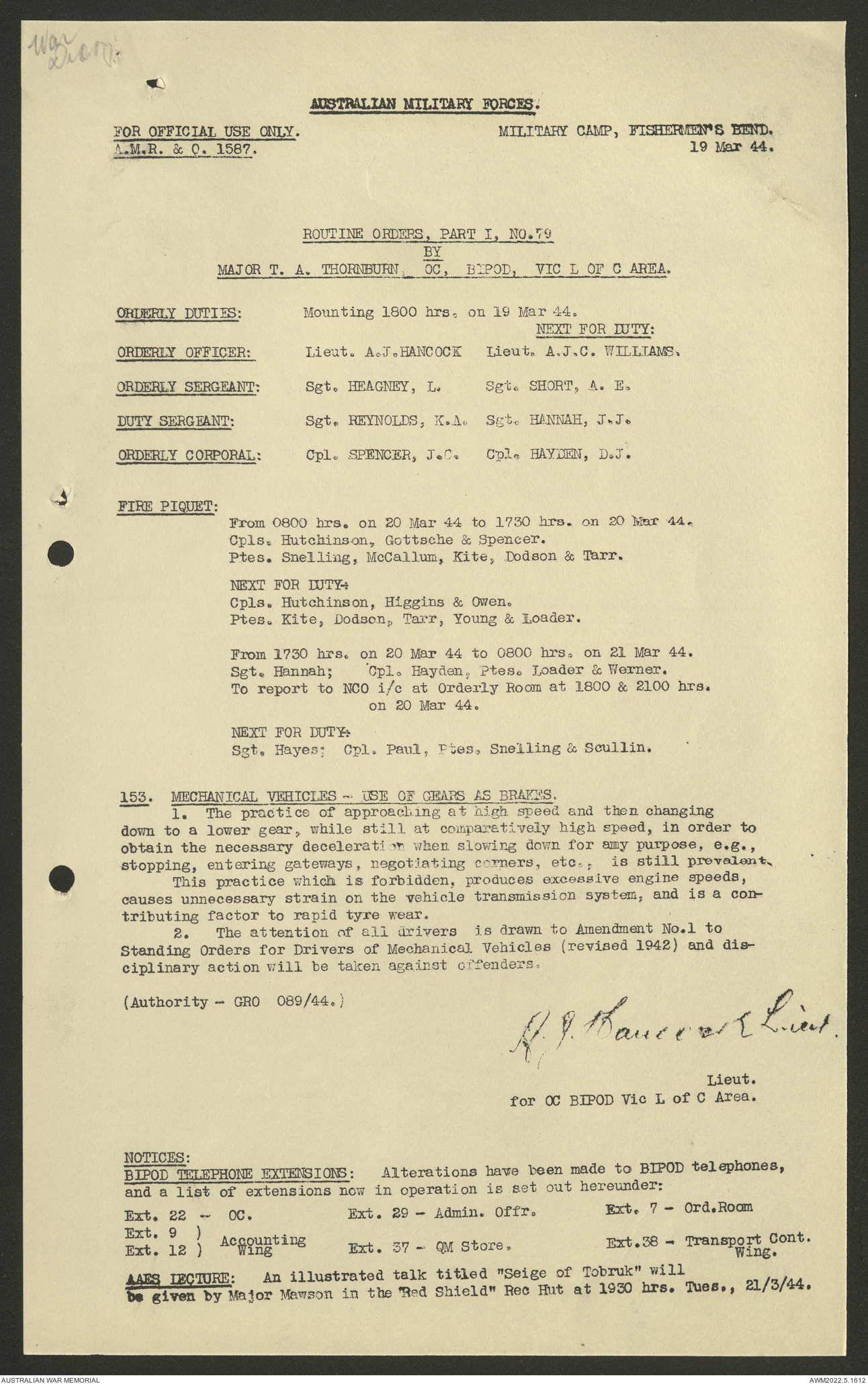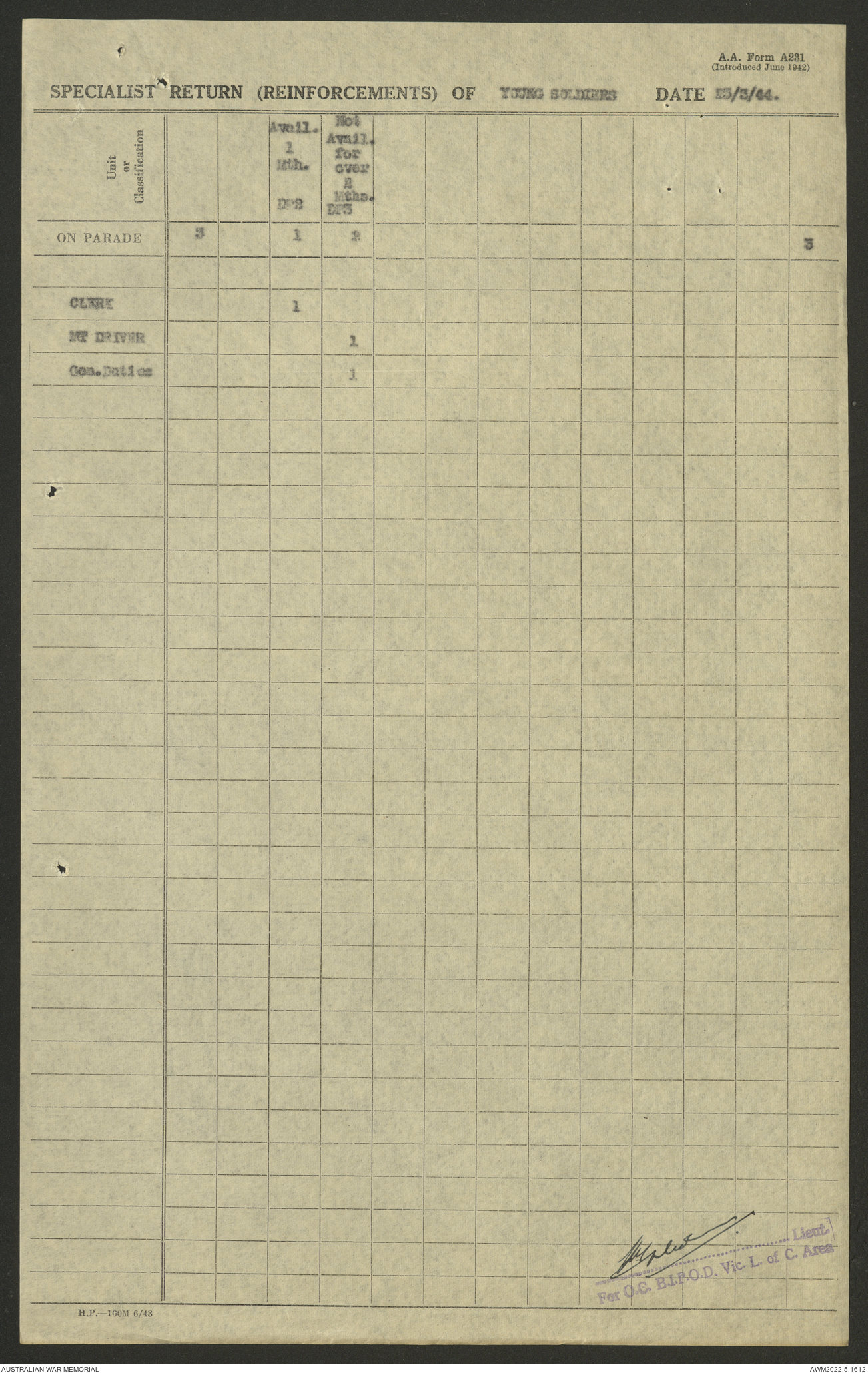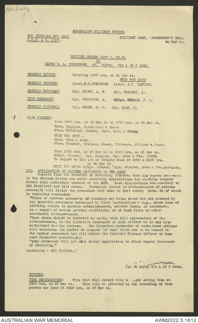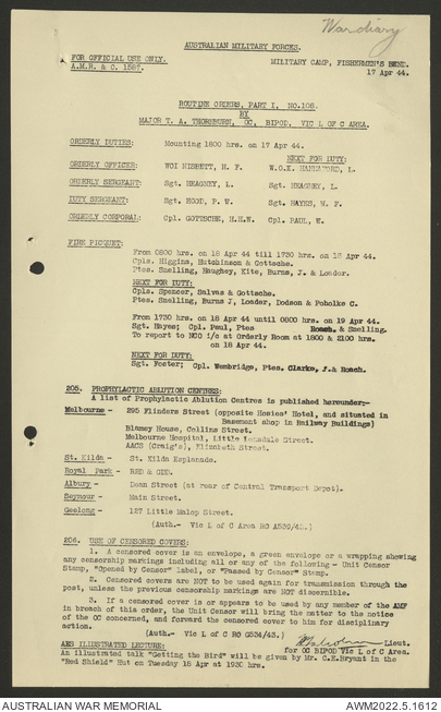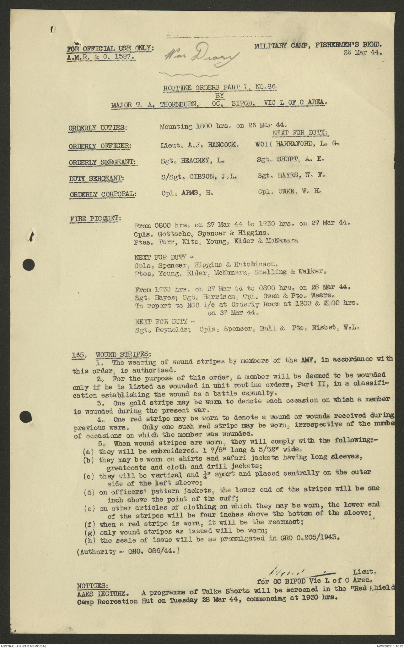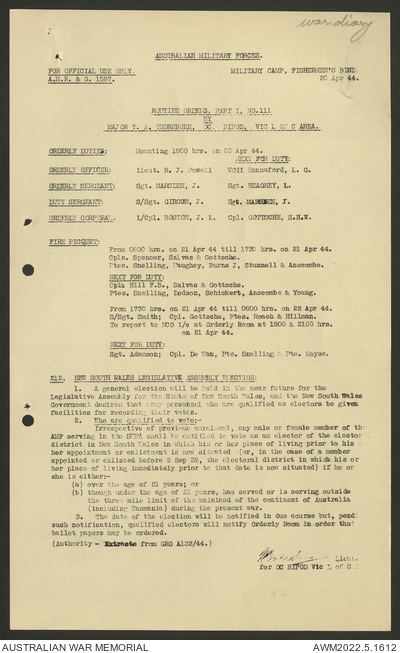 AWM52 10/19/5/14 - [Unit War Diaries, 1939-45 War] Victoria L of C [Lines of Communication] BIPOD [Bulk Issue Petrol and Oil Depot] March - April 1944