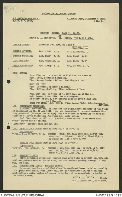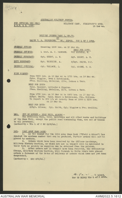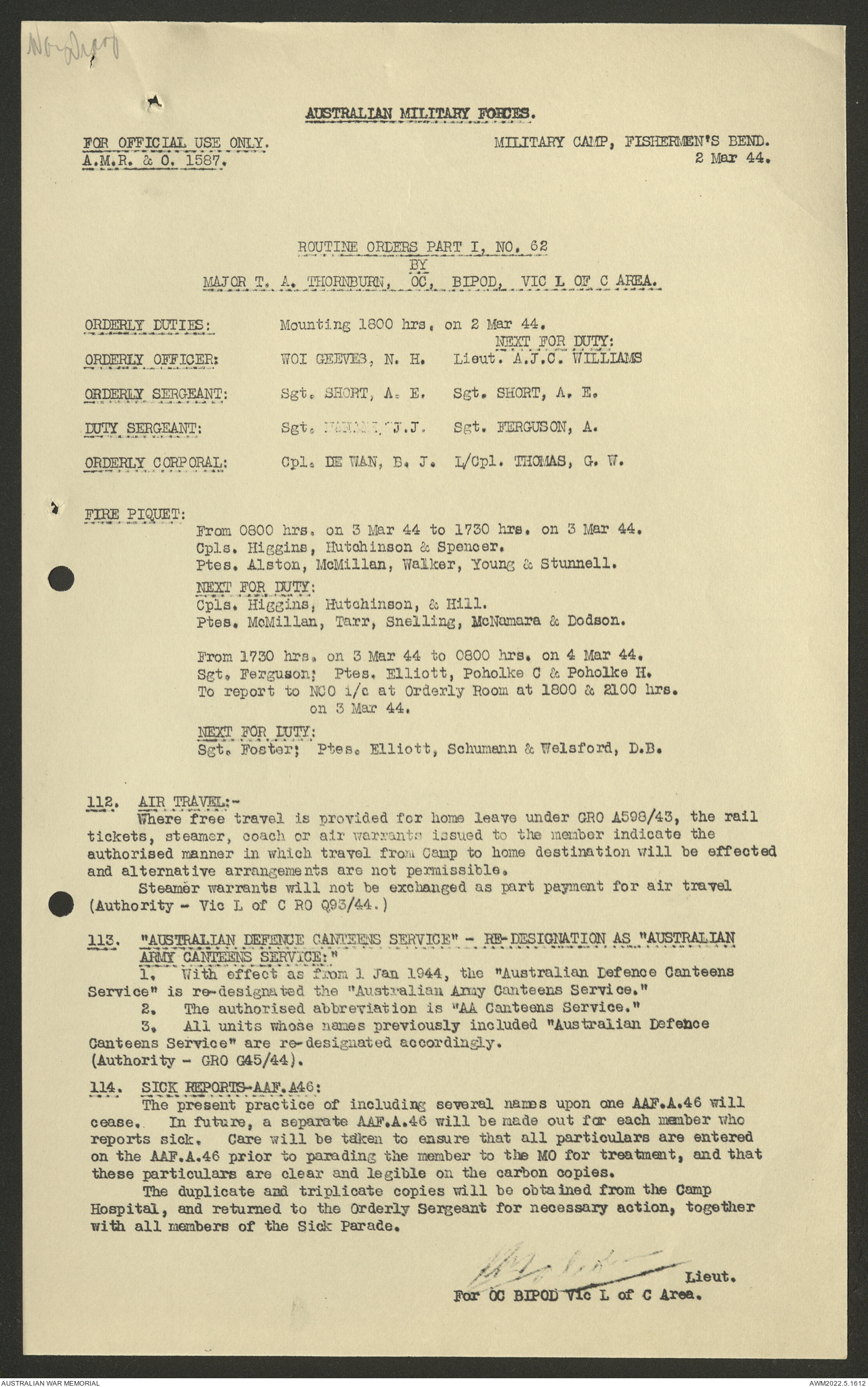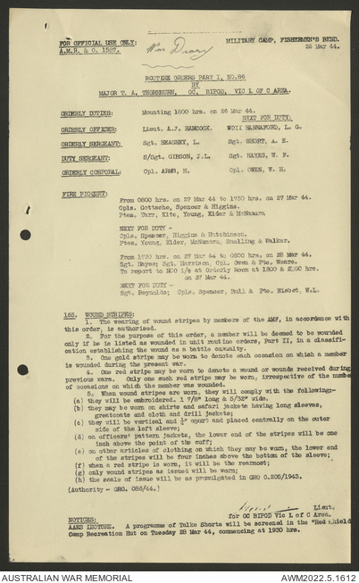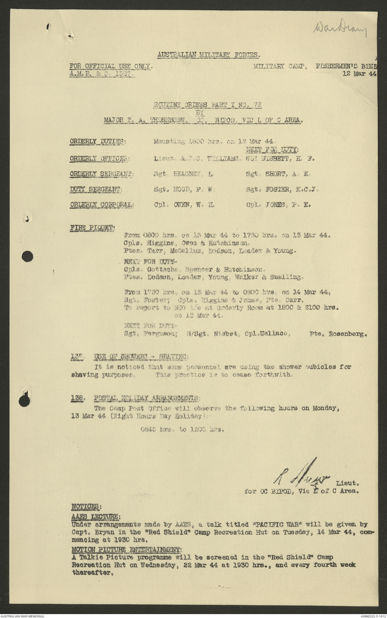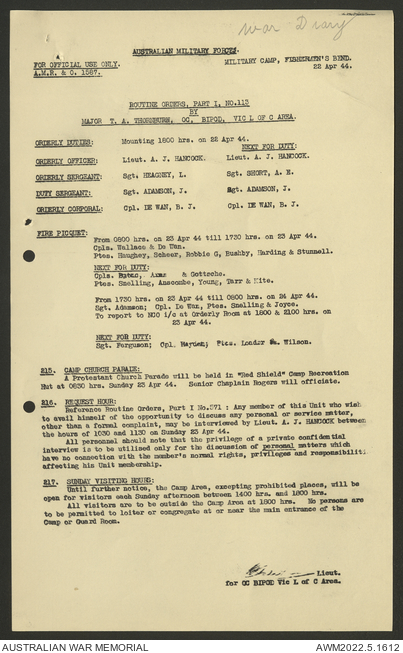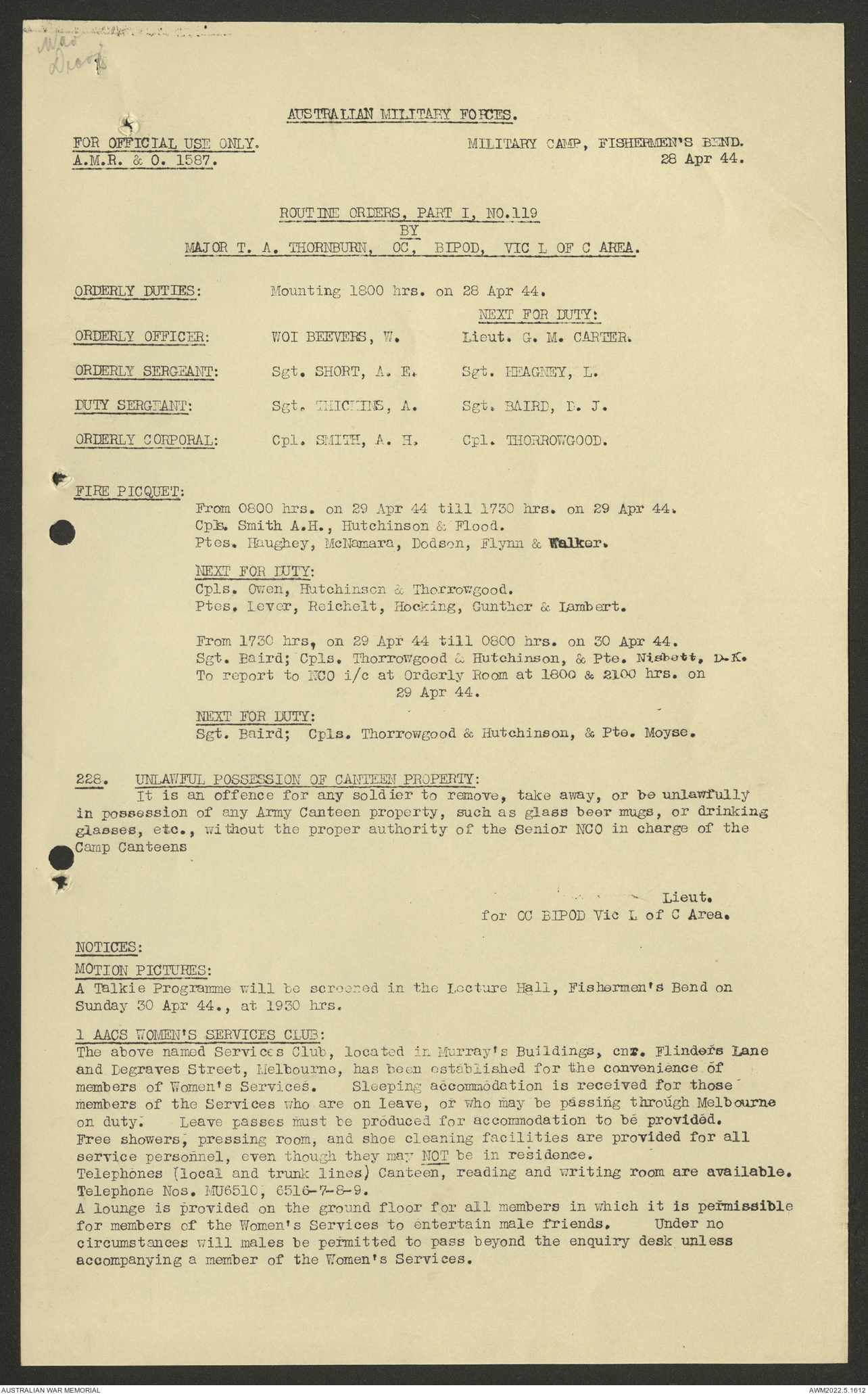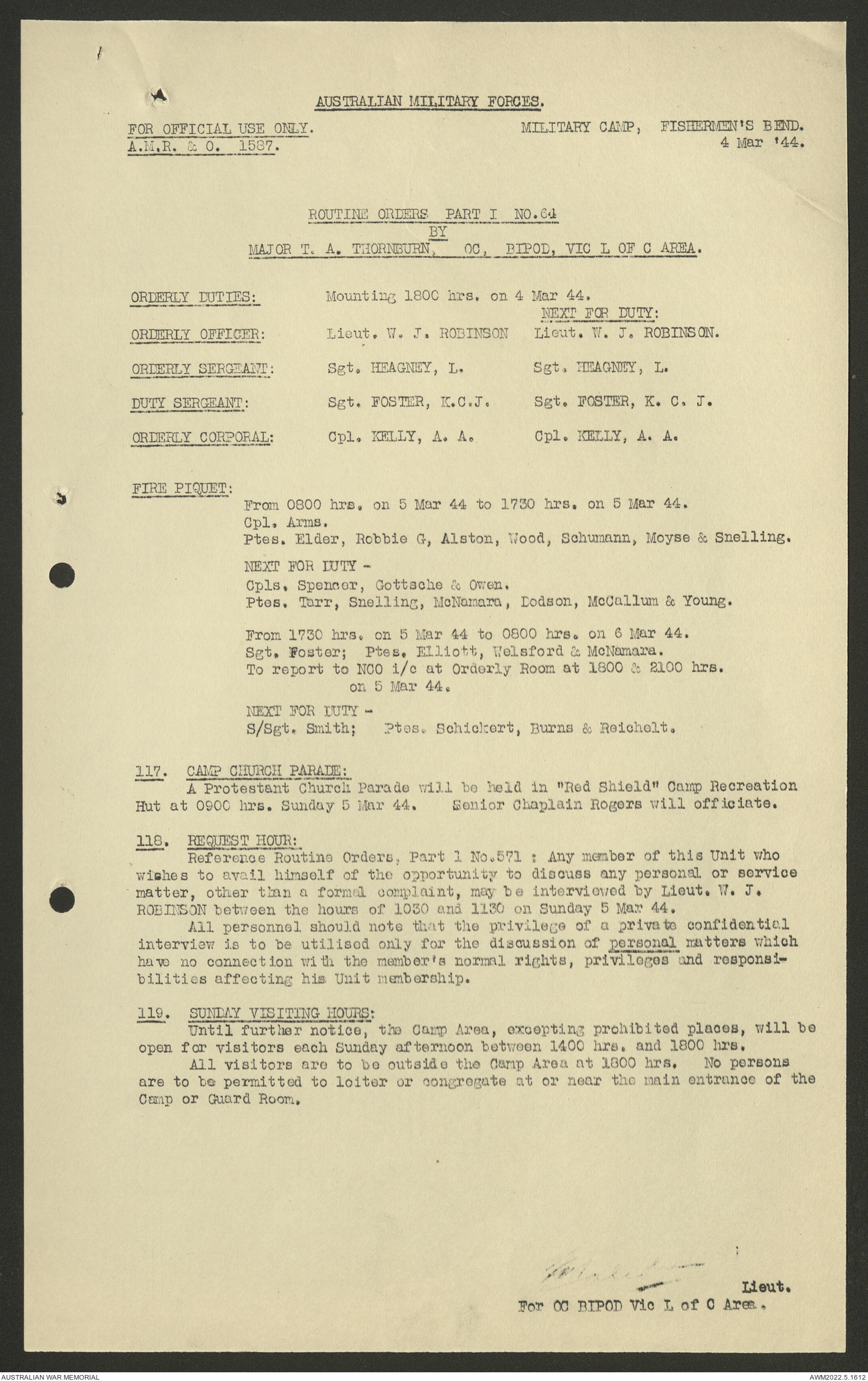 AWM52 10/19/5/14 - [Unit War Diaries, 1939-45 War] Victoria L of C [Lines of Communication] BIPOD [Bulk Issue Petrol and Oil Depot] March - April 1944