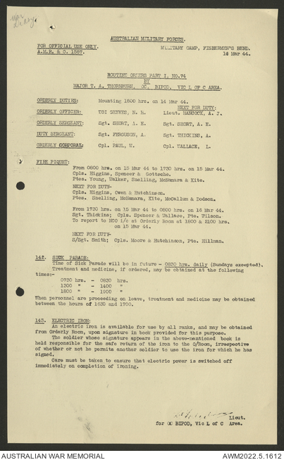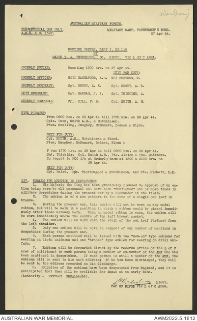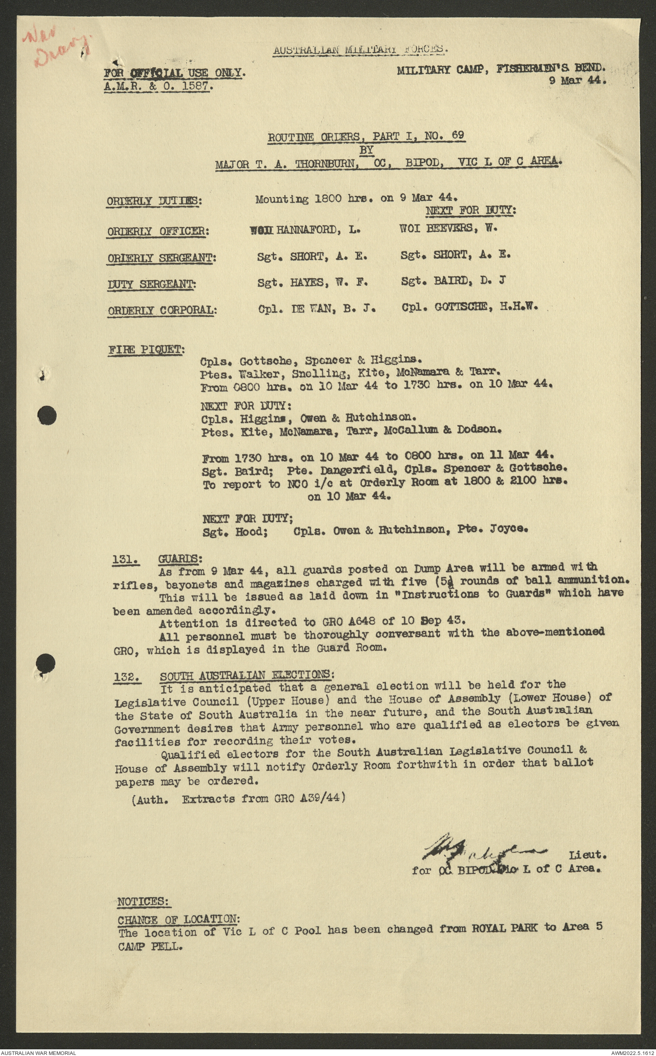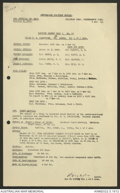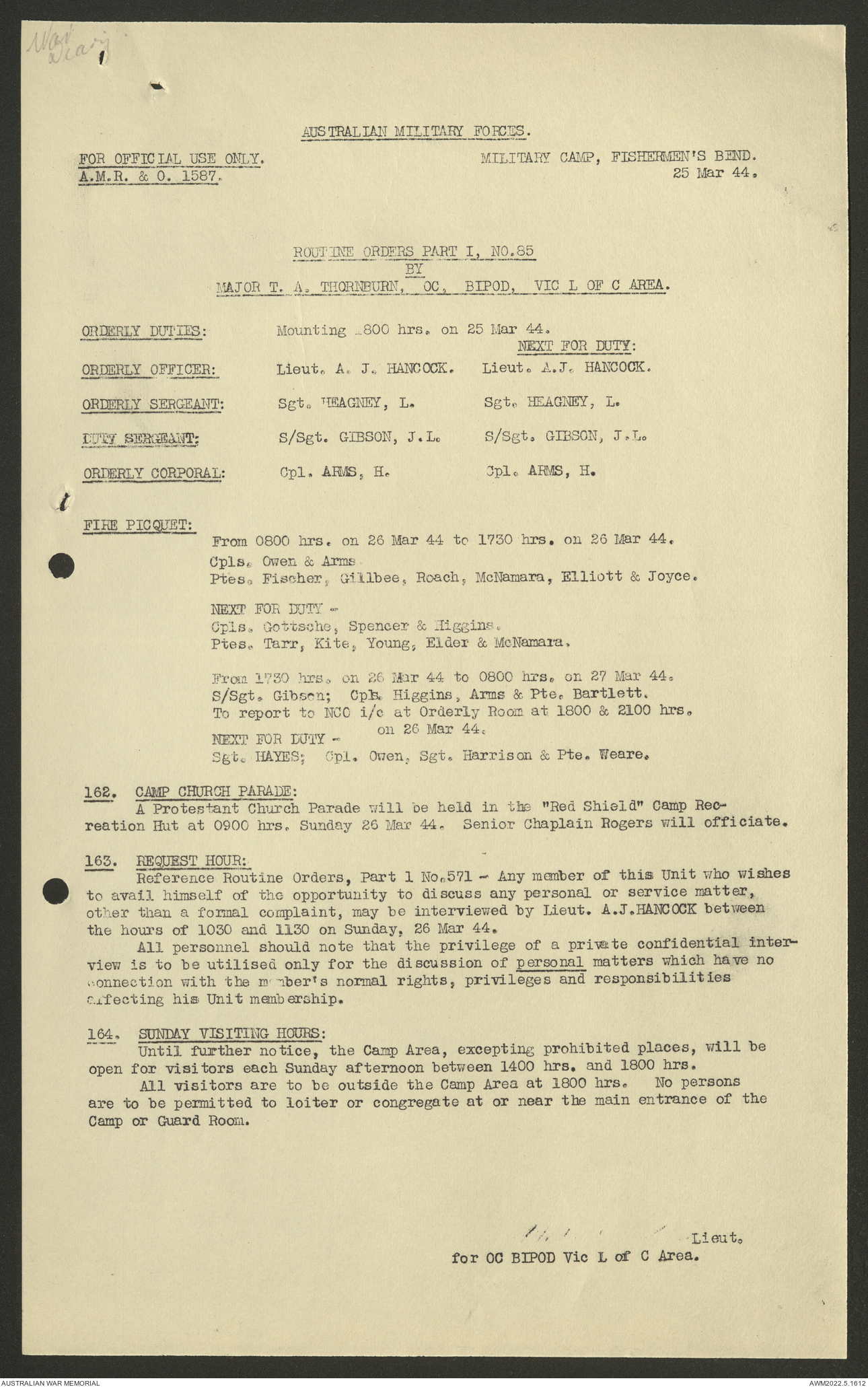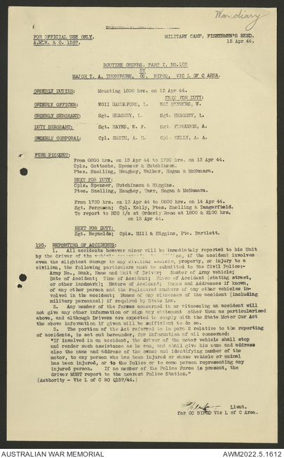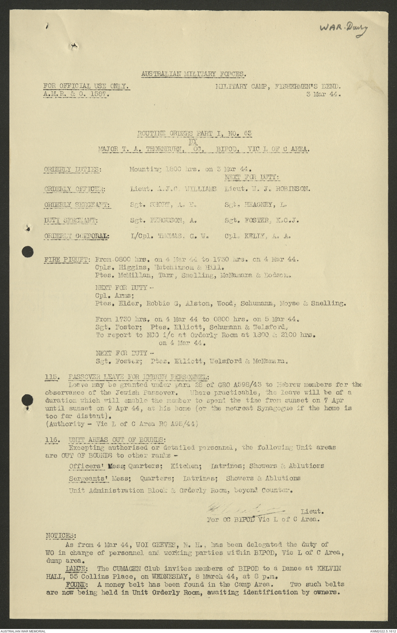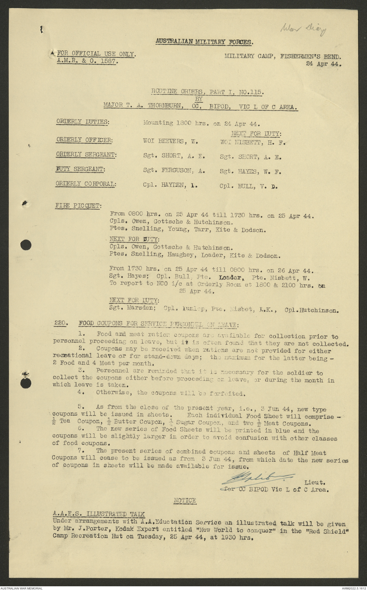 AWM52 10/19/5/14 - [Unit War Diaries, 1939-45 War] Victoria L of C [Lines of Communication] BIPOD [Bulk Issue Petrol and Oil Depot] March - April 1944