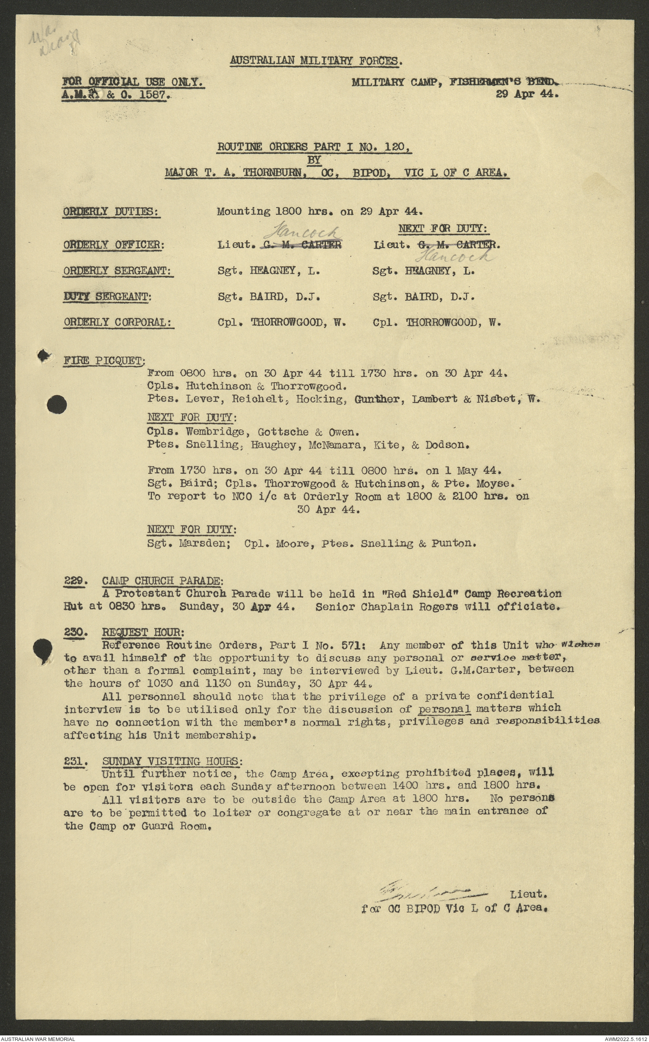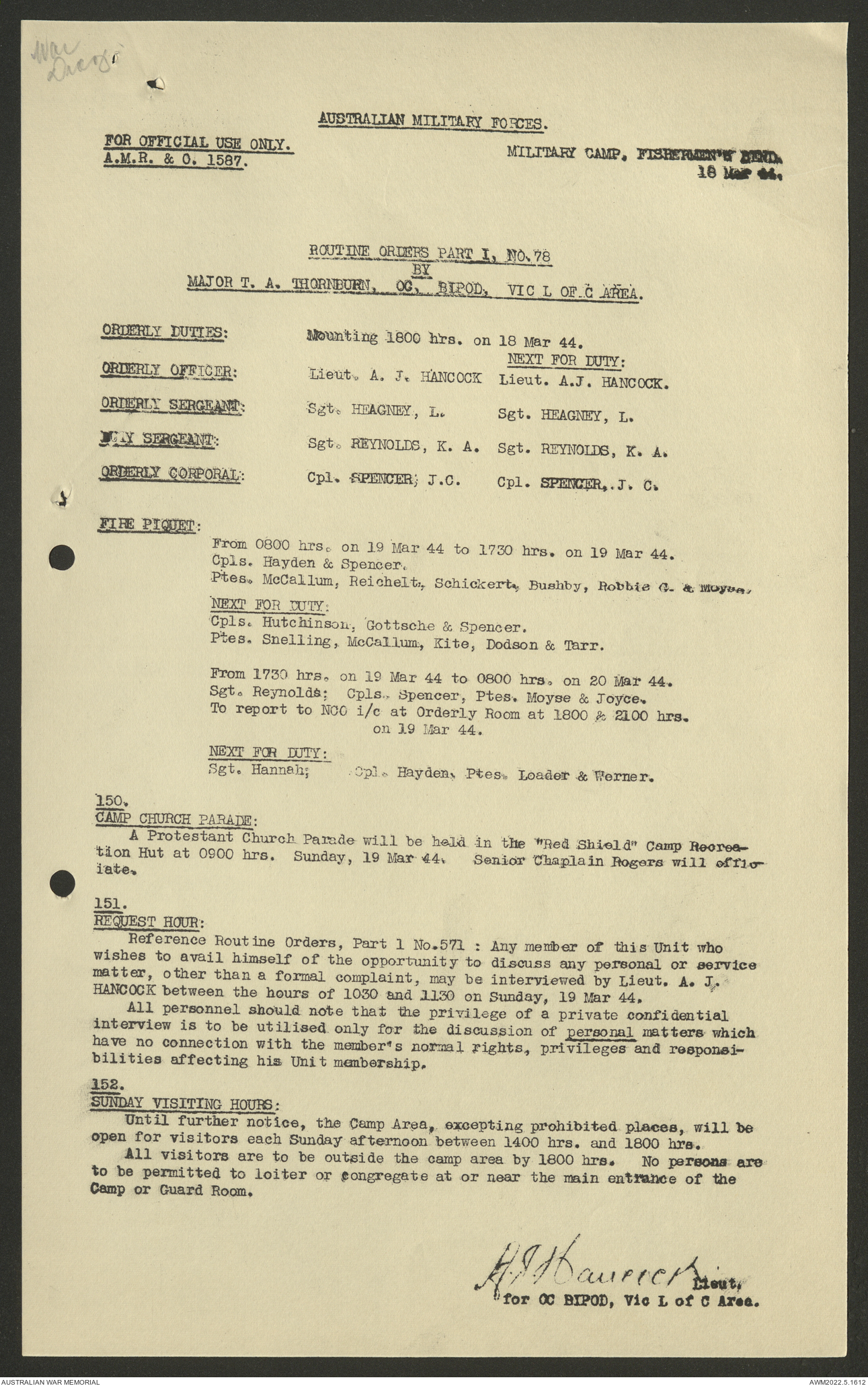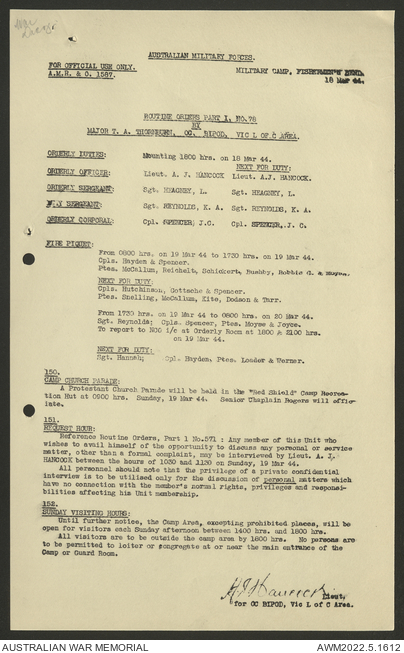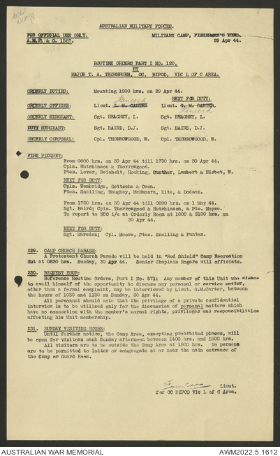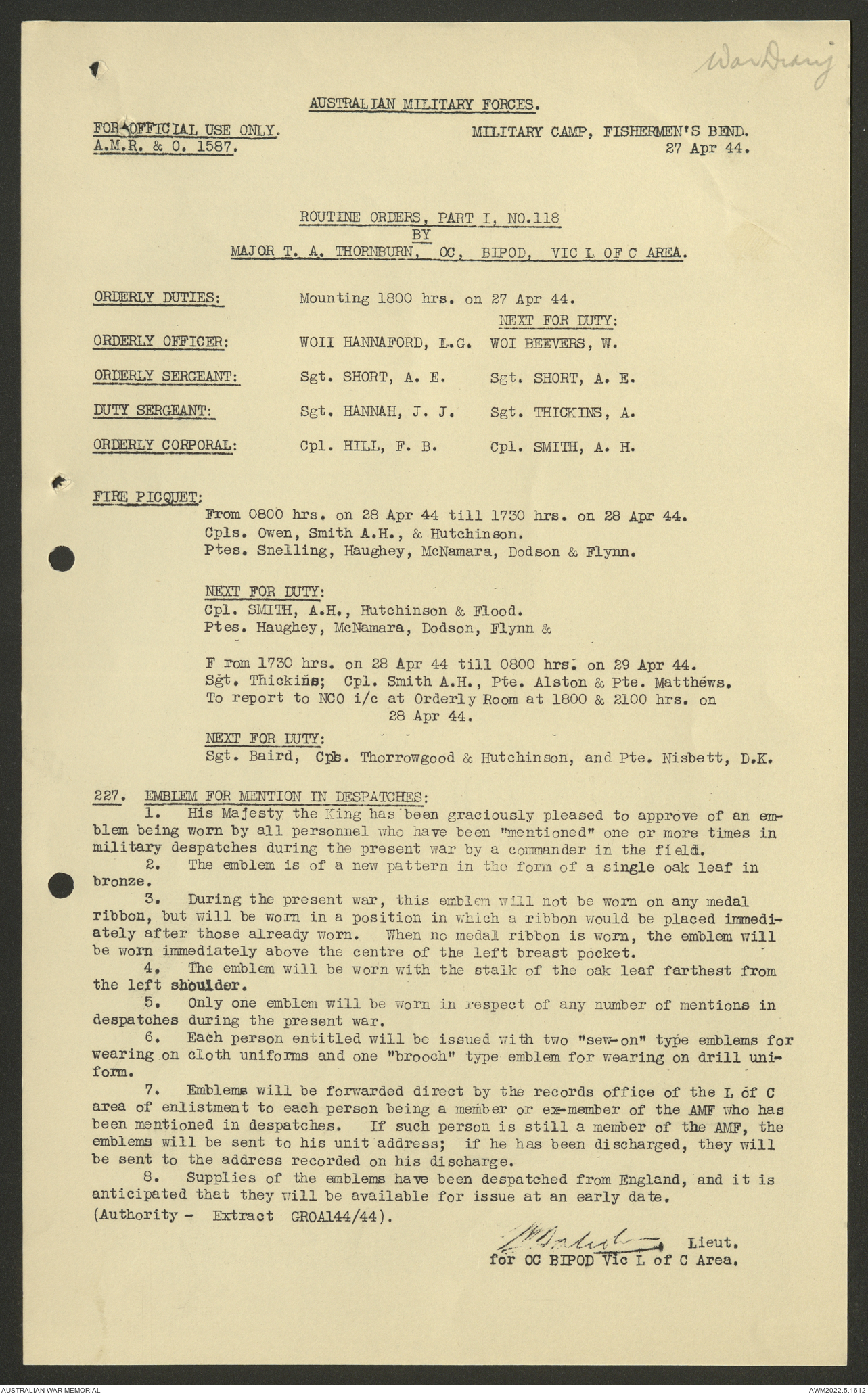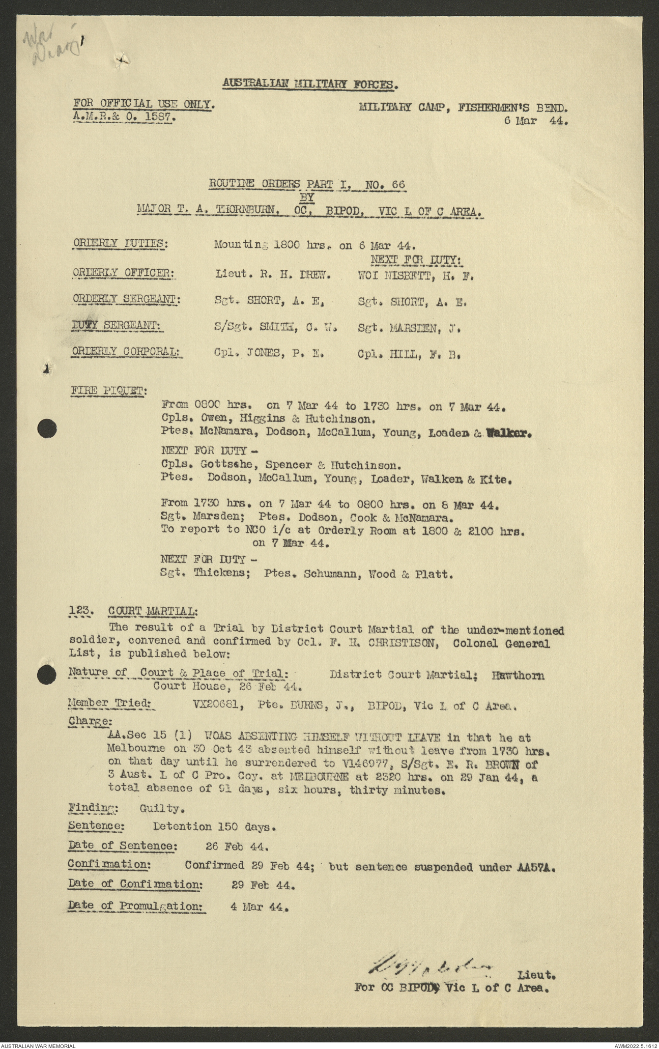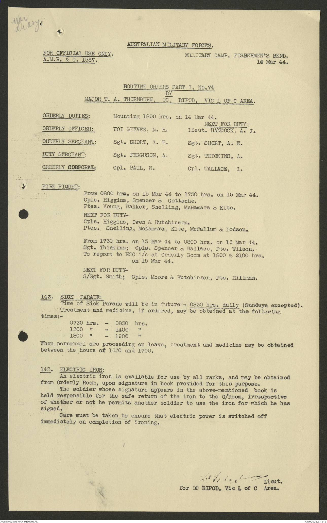 AWM52 10/19/5/14 - [Unit War Diaries, 1939-45 War] Victoria L of C [Lines of Communication] BIPOD [Bulk Issue Petrol and Oil Depot] March - April 1944