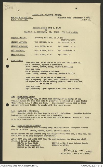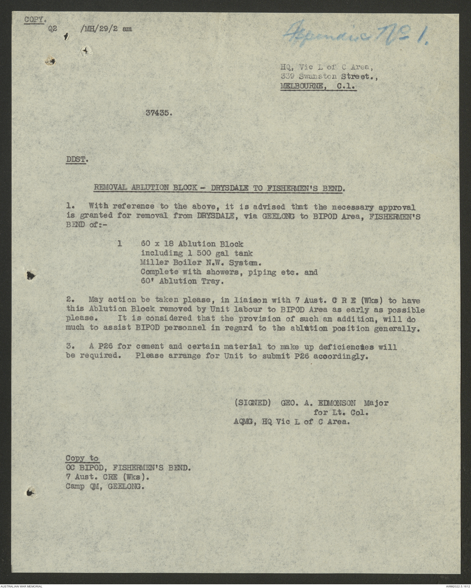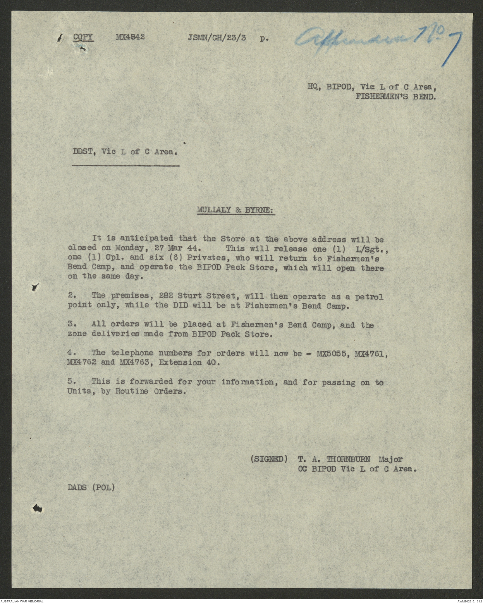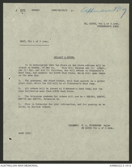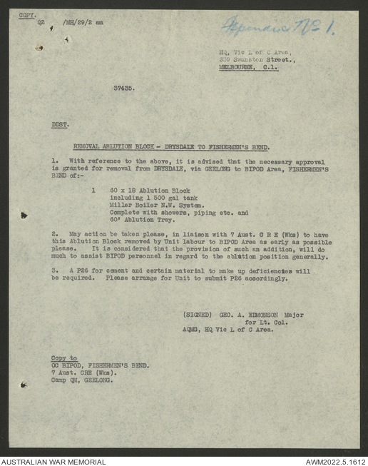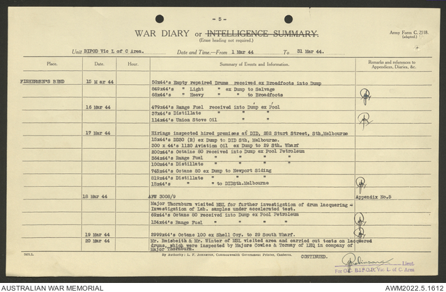 - AWM52 10/19/5 - Victoria Lines of Communication Bulk Issue Petrol and Oil Depot