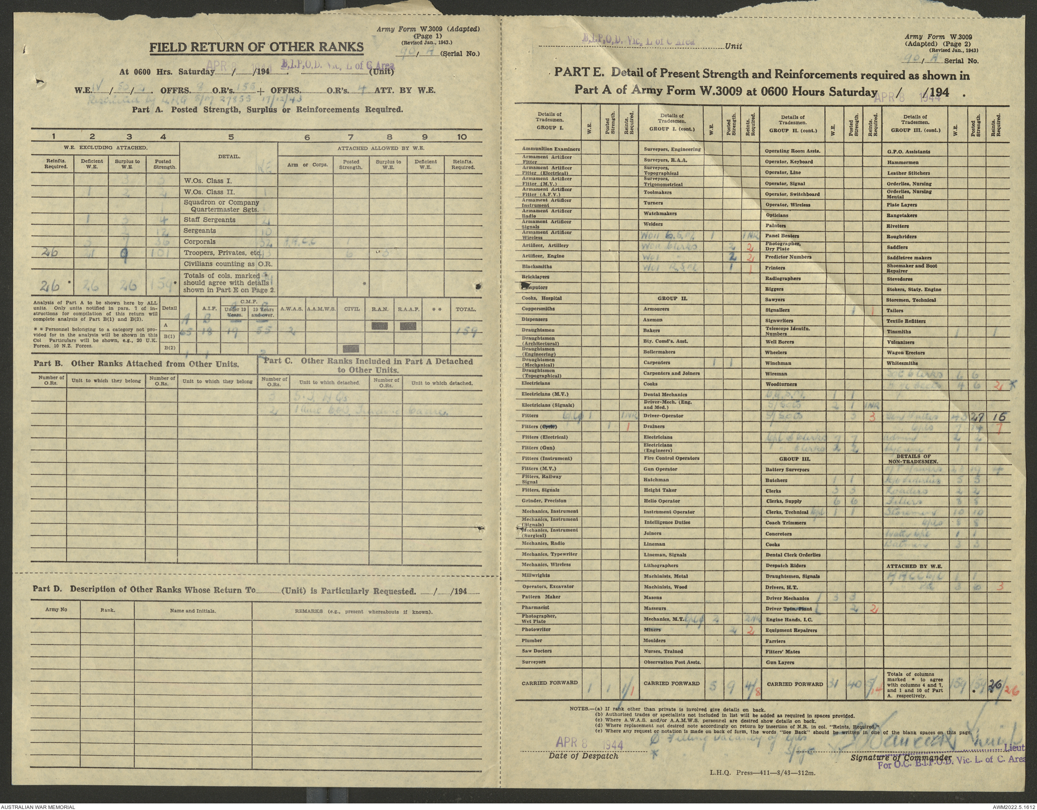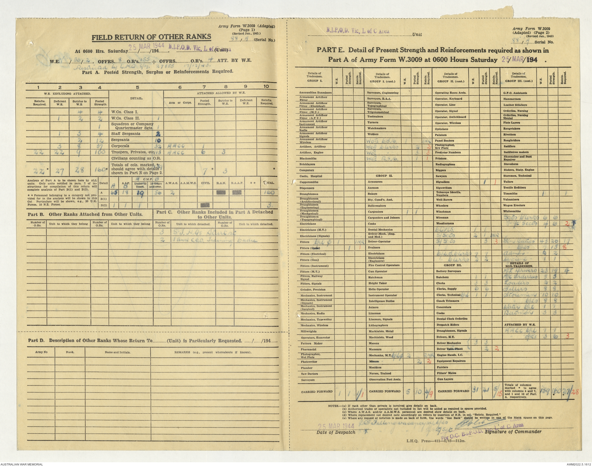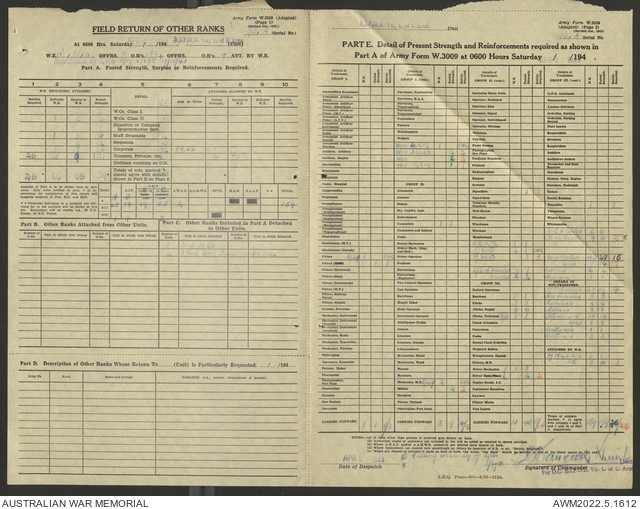 2nd AIF (Australian Imperial Force) and CMF (Citizen Military Forces) unit war diaries, 1939-45 War