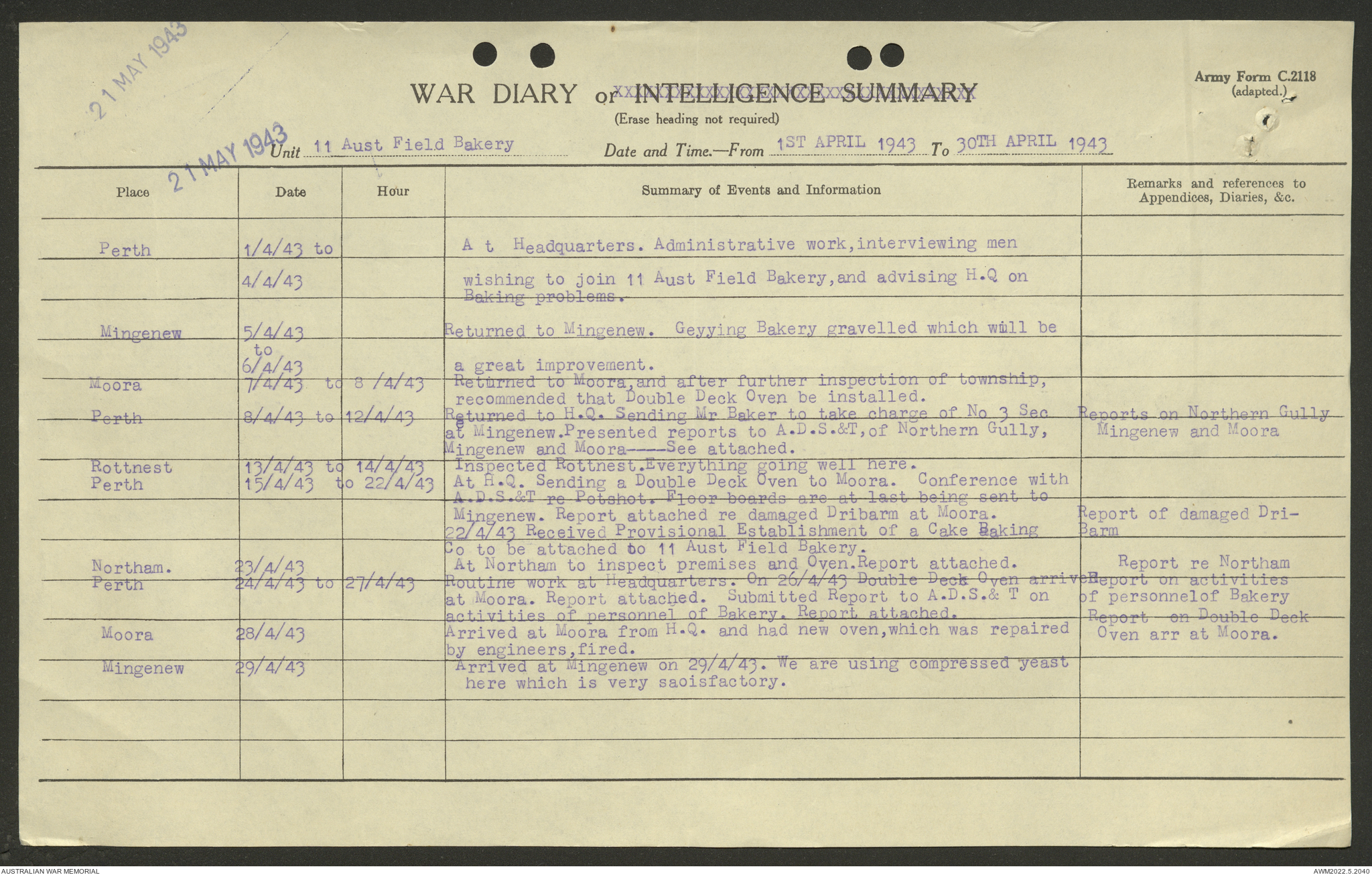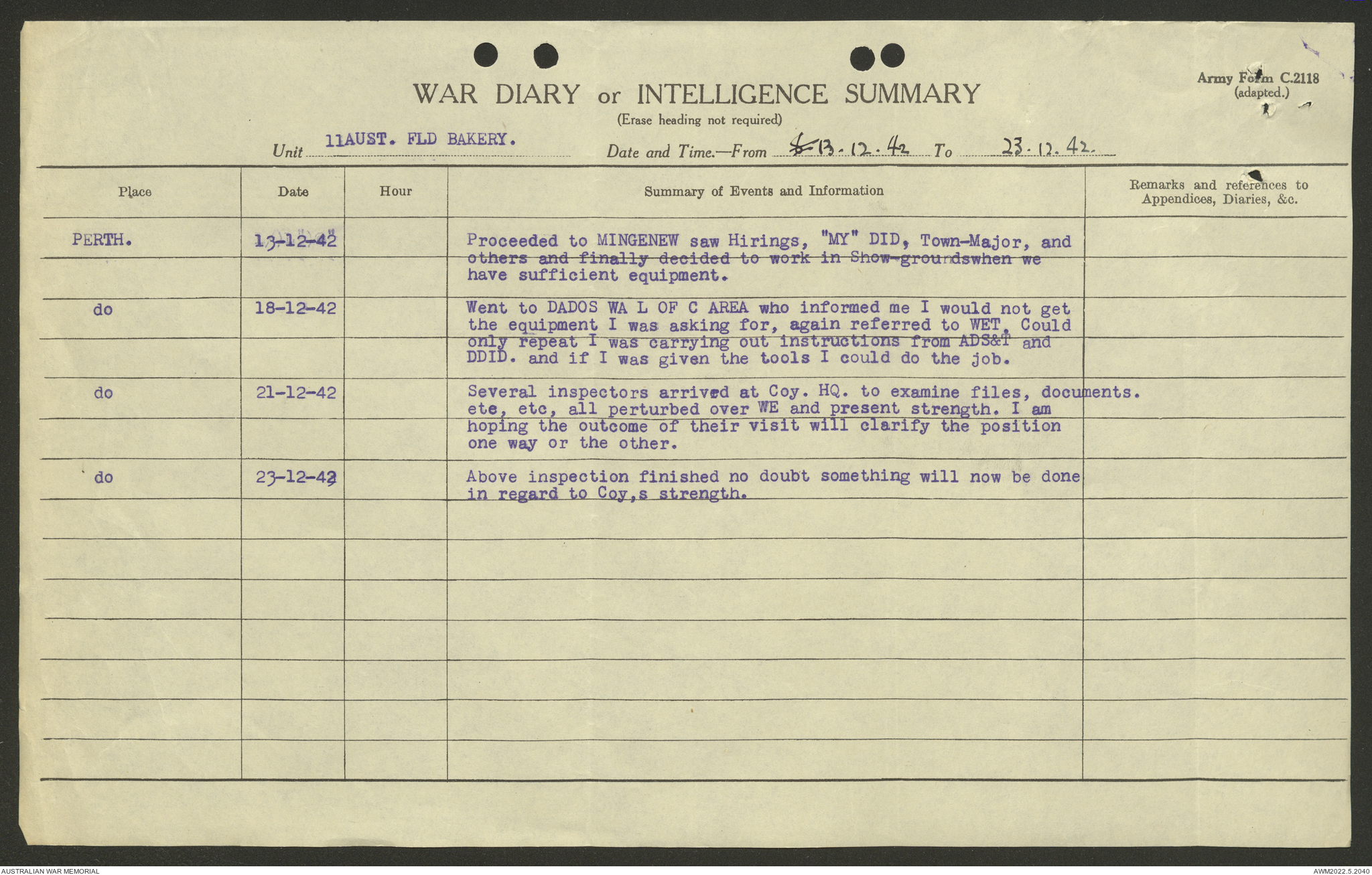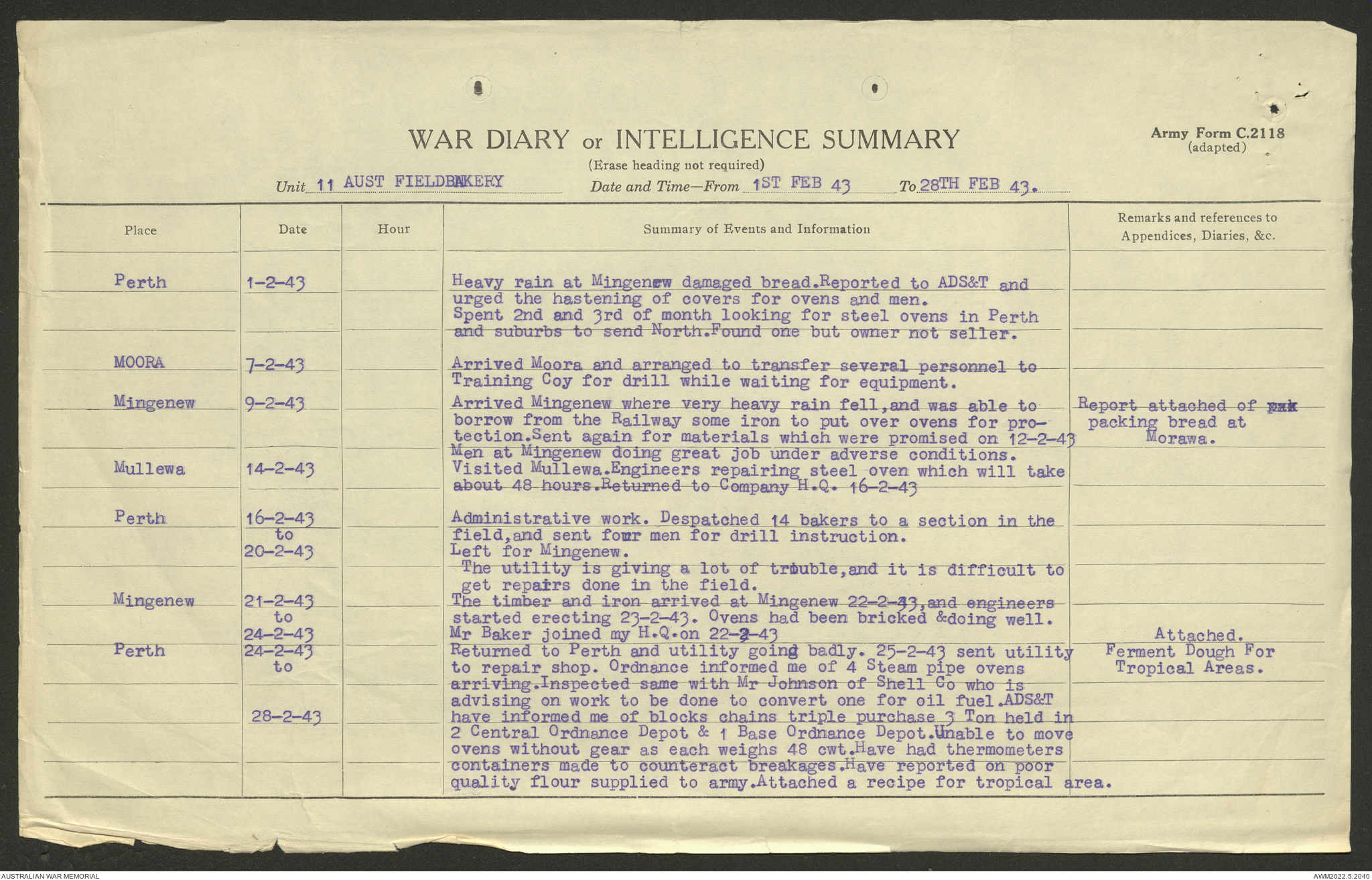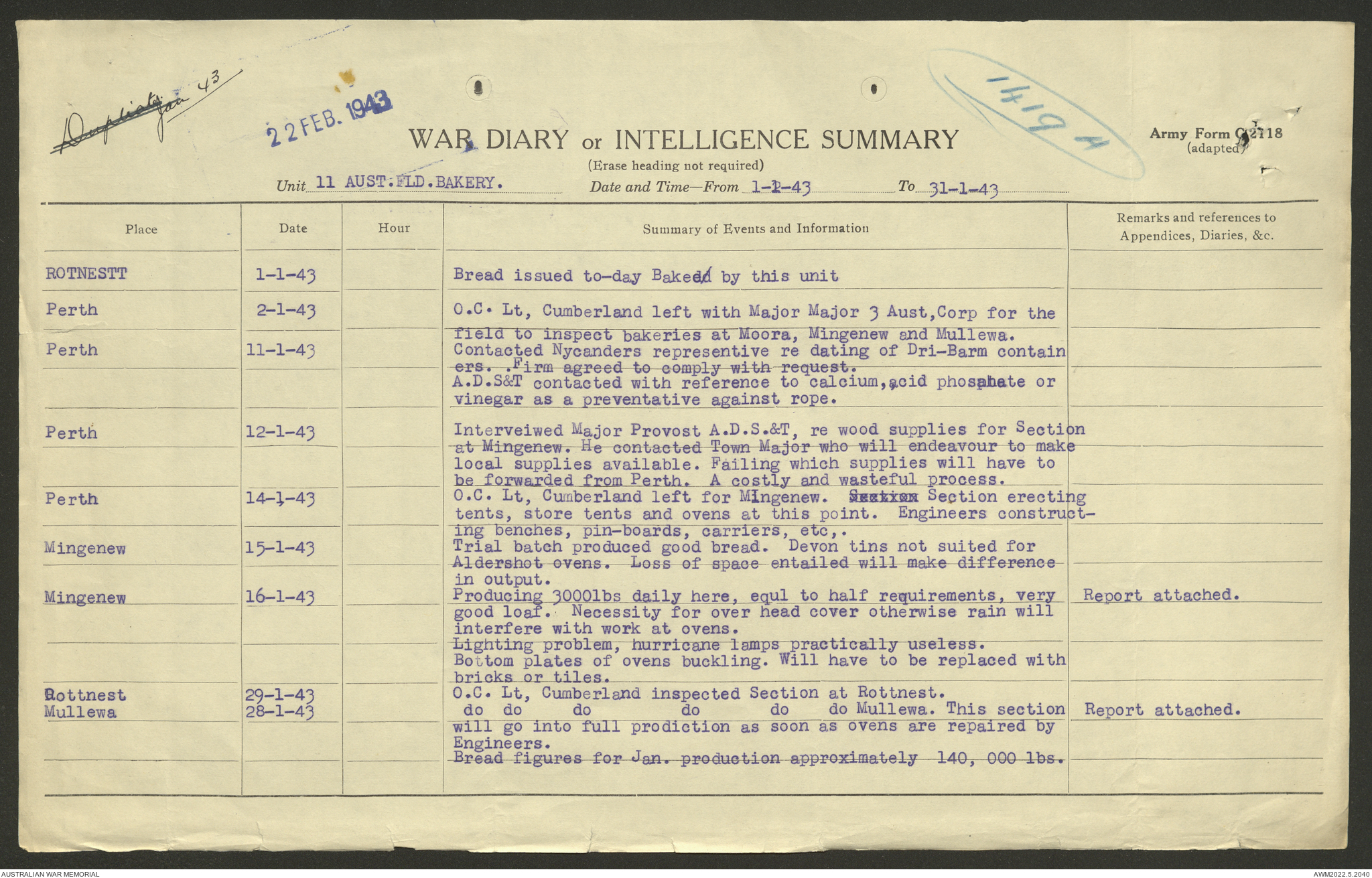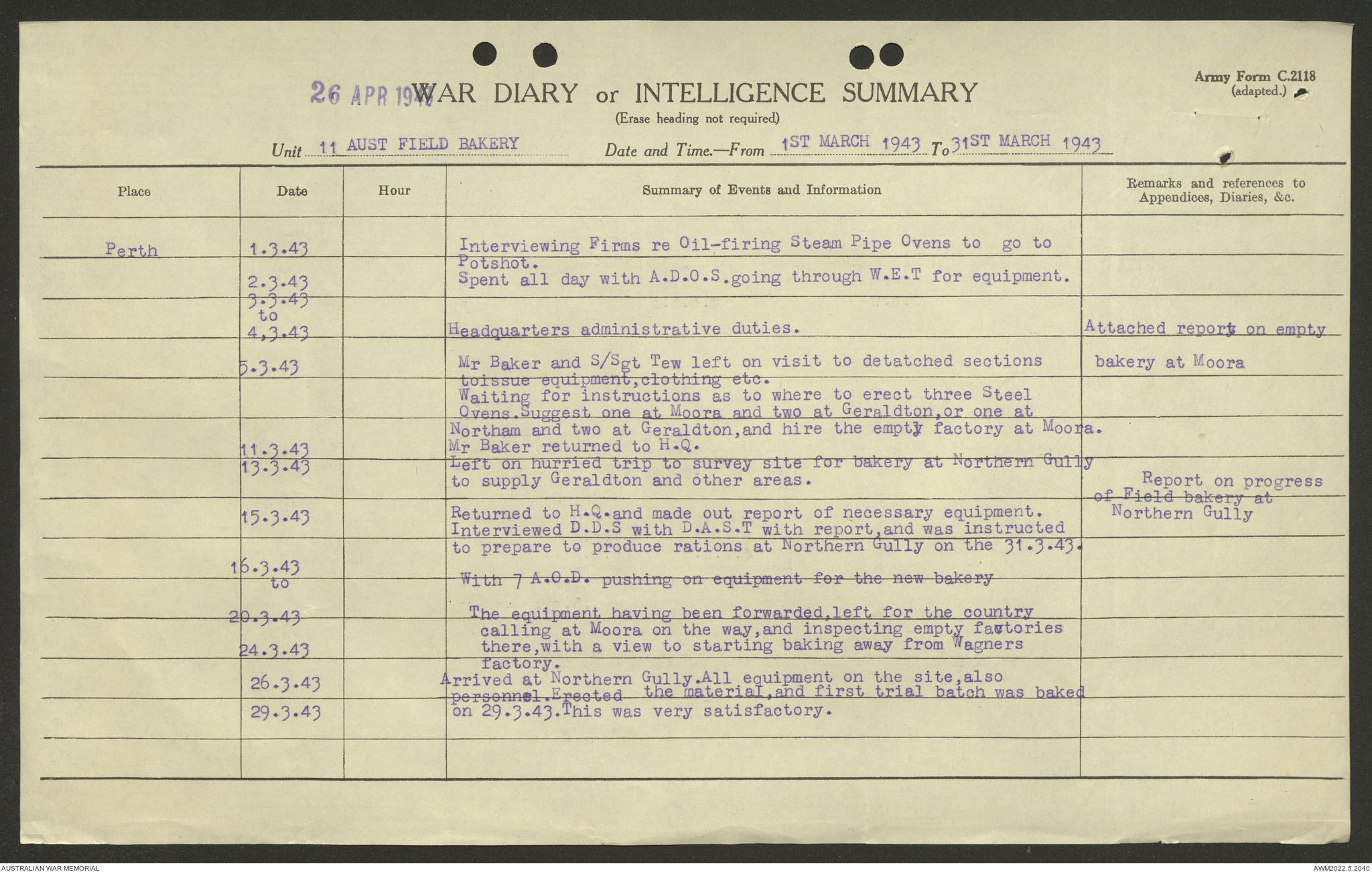 AWM52 10/27/13/1 - [Unit War Diaries, 1939-45 War] 11 Australian Field Baking Company, November 1942 - April 1943