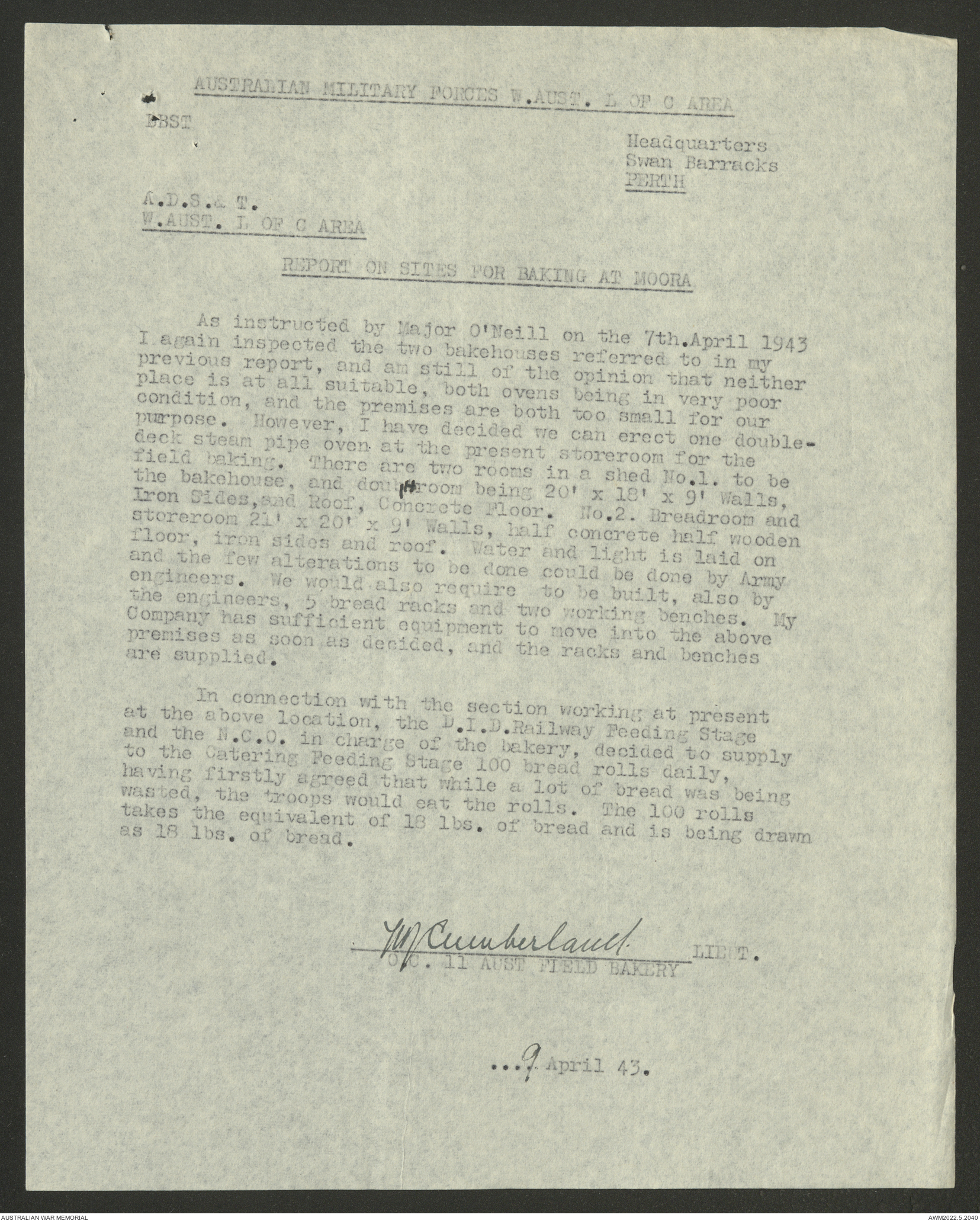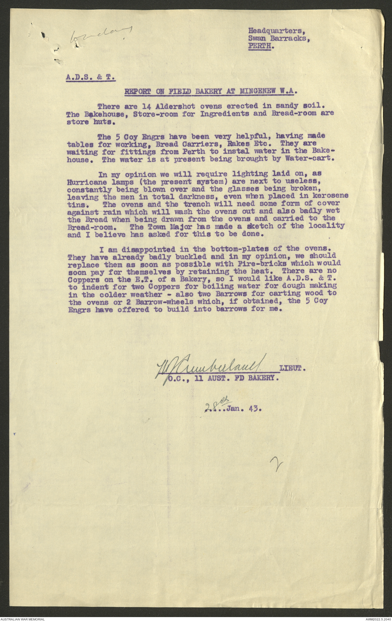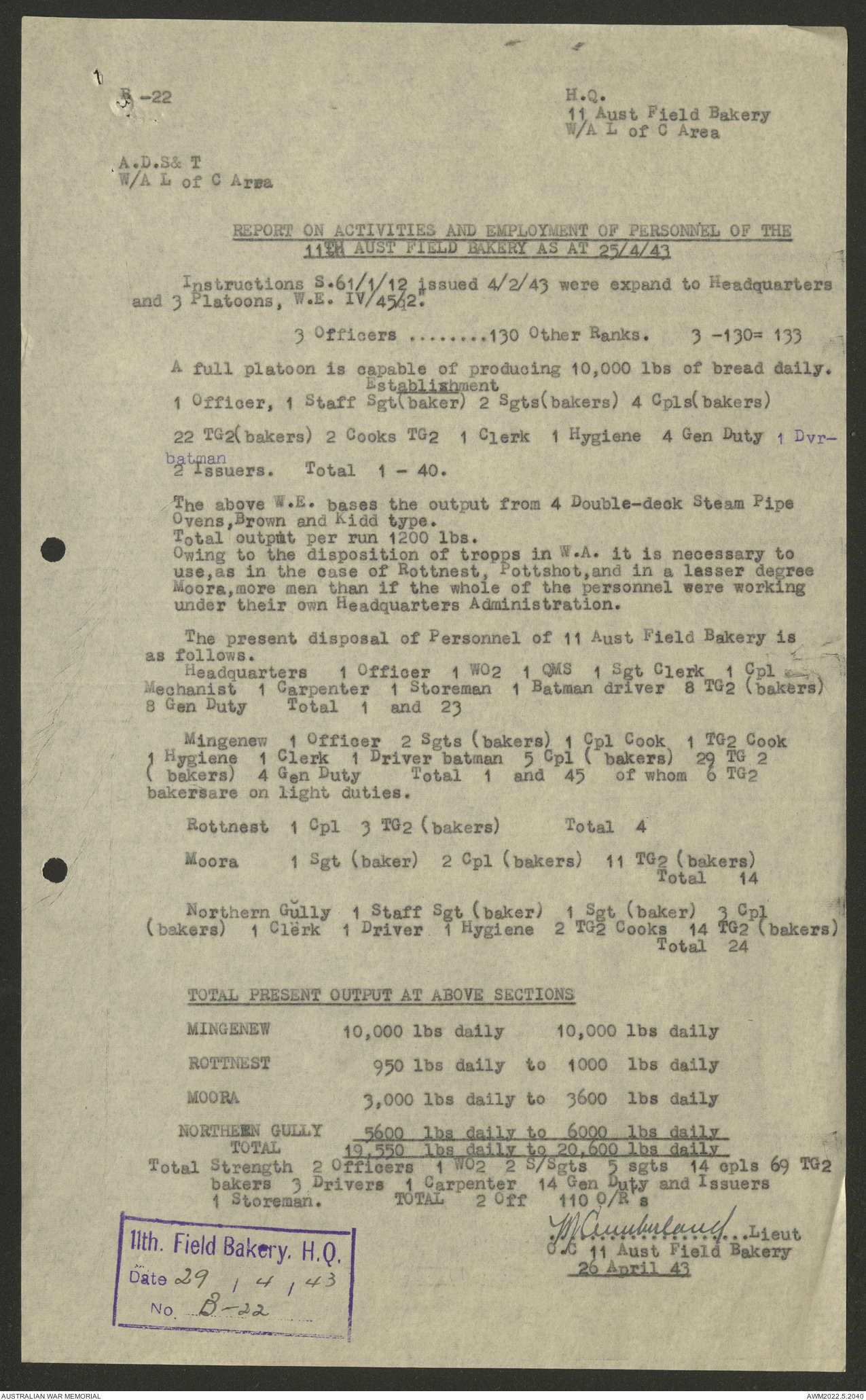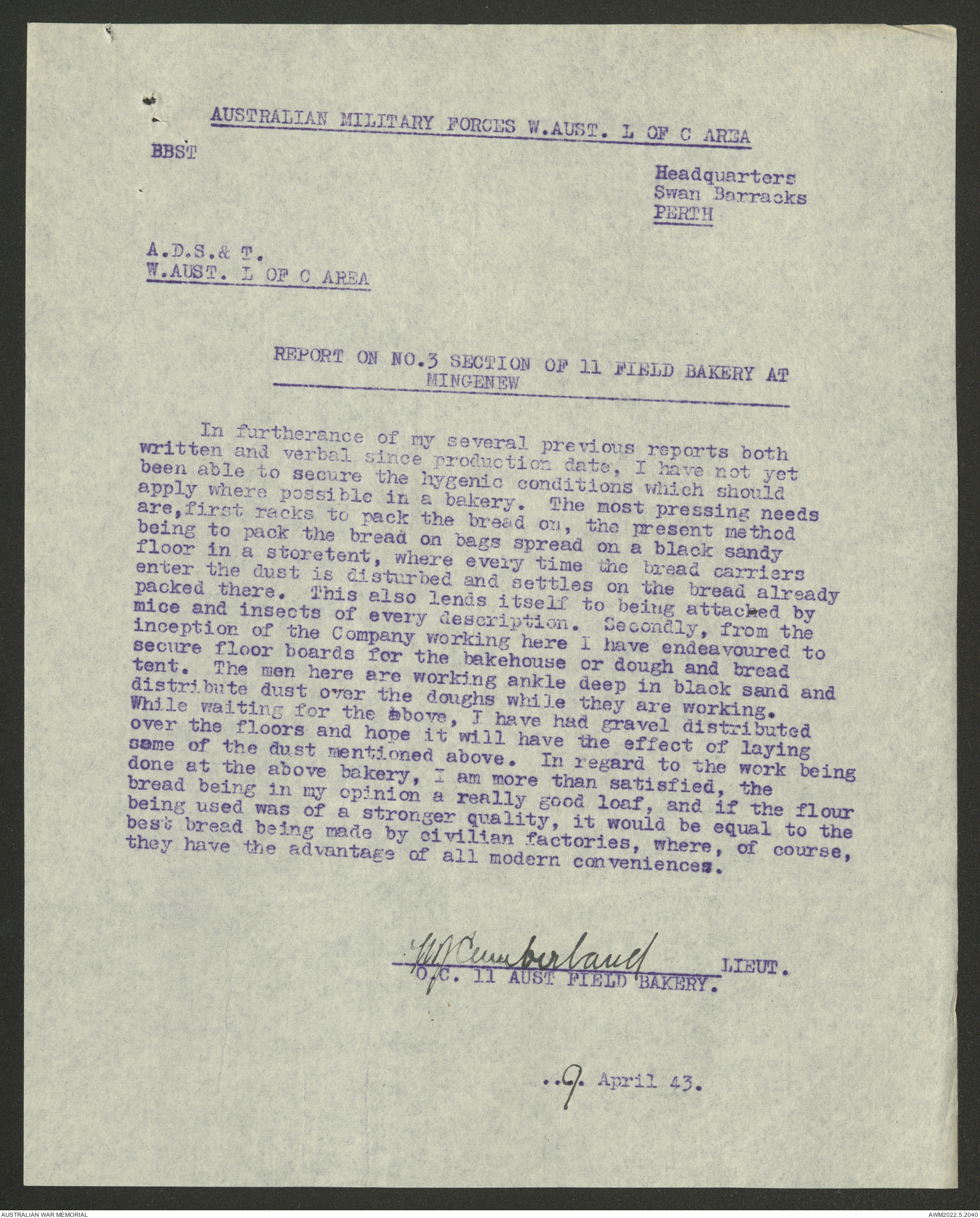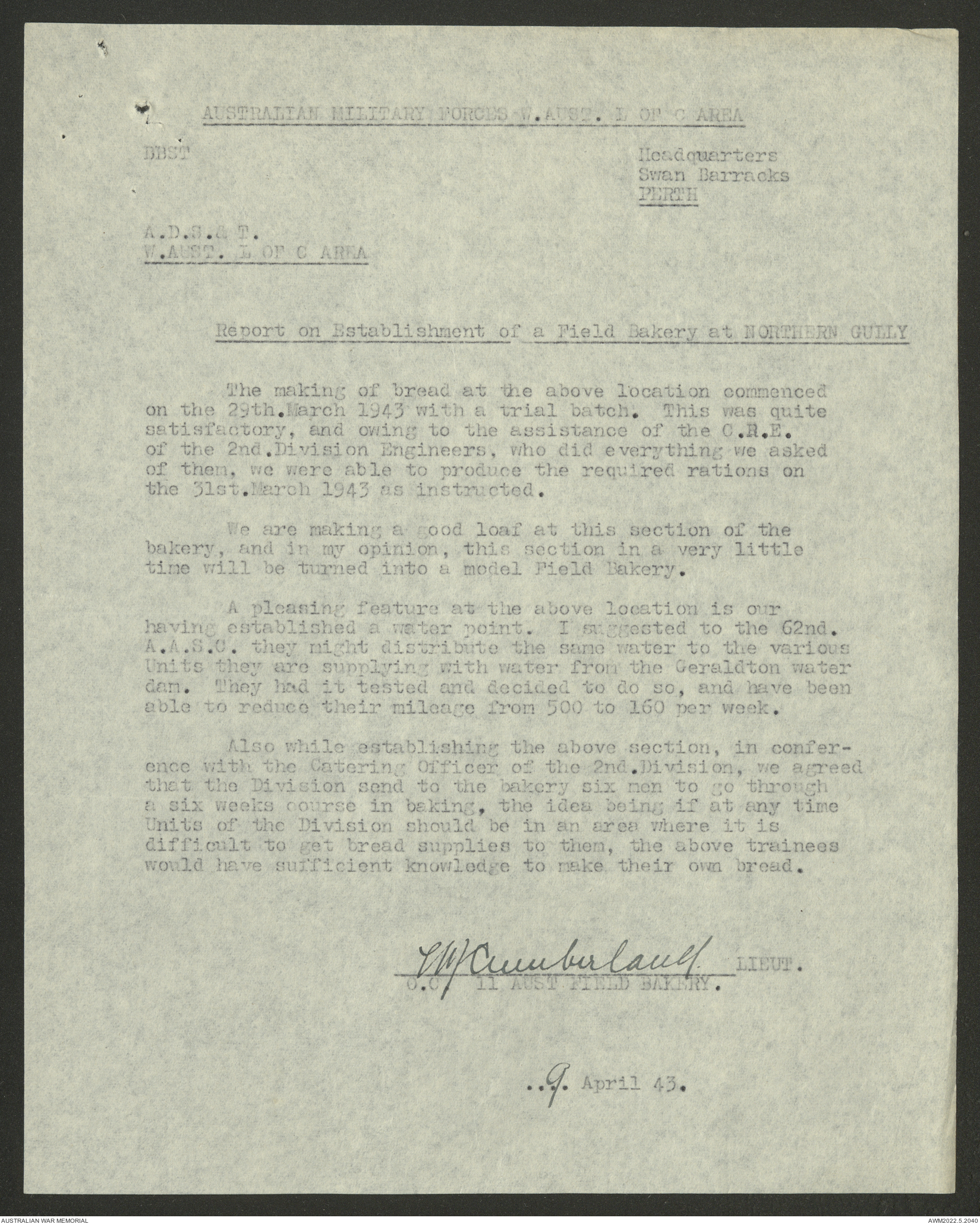 AWM52 10/27/13/1 - [Unit War Diaries, 1939-45 War] 11 Australian Field Baking Company, November 1942 - April 1943